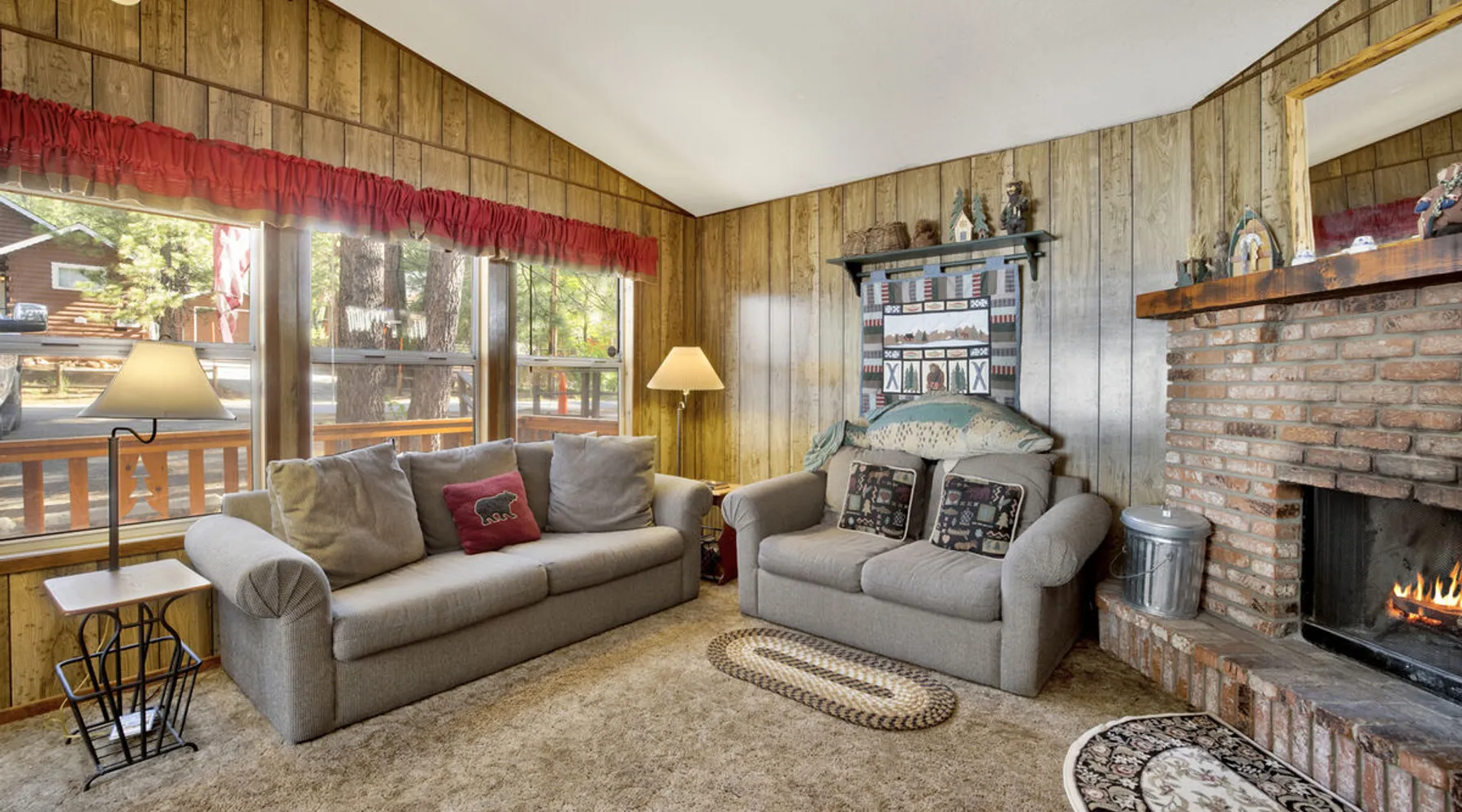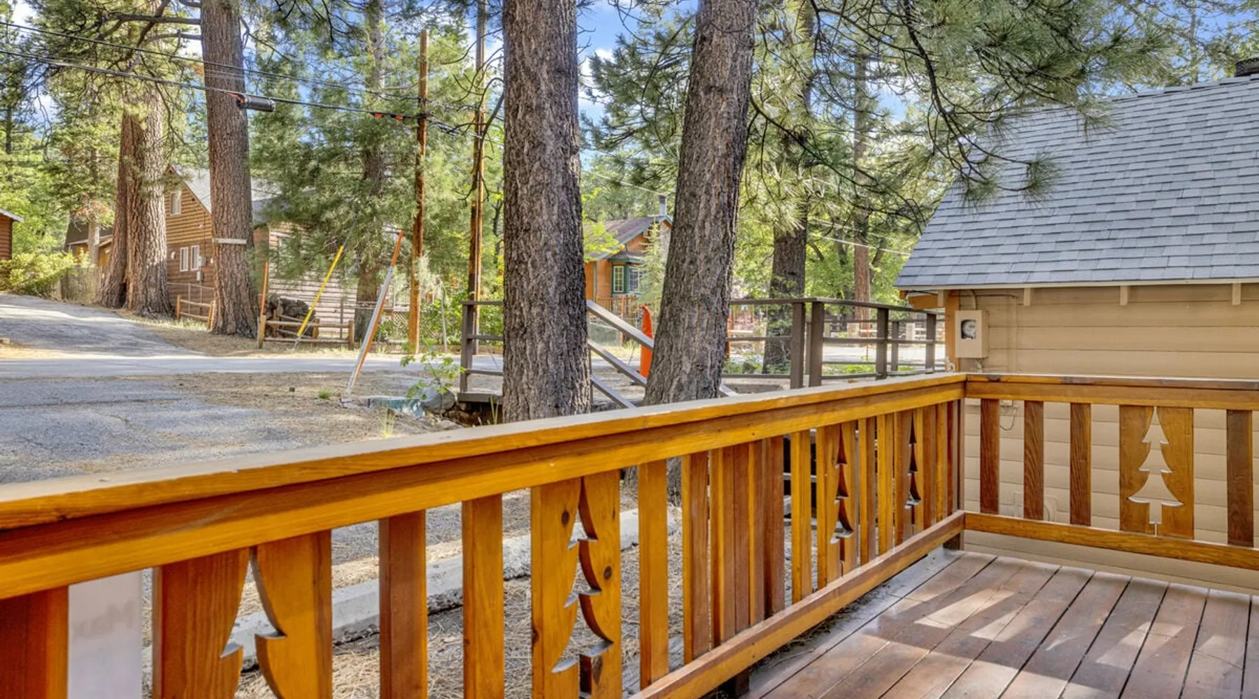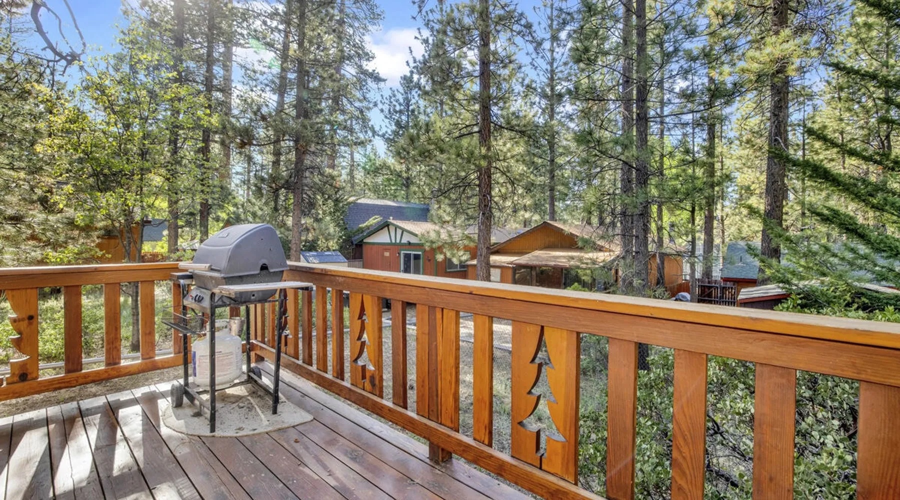 Cedar Pines is the perfect escape destination for a group of friends of family vacation to the mountains. boasting the necessities from home along with a cozy single story layout, and a prime forest location in lower Moonridge near Bear Mountain Resort for year round golf, skiing, and the local Zoo. Furnished with the comforts from home and within a short car ride to the lake, marina and Village shops your group will have the best of Big Bear right at your fingertips. The space Cedar Pines Retreat | Relaxing Moonridge Cottage Cedar Pines is the perfect escape destination for a group of friends of family vacation to the mountains. boasting the necessities from home along with a cozy single story layout, and a prime forest location in lower Moonridge near Bear Mountain Resort for year round golf, skiing, and the local Zoo. Furnished with the comforts from home and within a short car ride to the lake, marina and Village shops your group will have the best of Big Bear right at your fingertips. The cozy and warm entry living room has comfy couches sat around a toasty wood burning fireplace, a great spot to snuggle up and watch your favorite movie on the flat screen TV with Cable and hi speed WIFI internet available for your use. The open floor plan leads to a cute dining table for four, breakfast bar seating, and the practical kitchen with cookware and utensils, and general appliances including a dishwasher to whip up your home- cooked meals. Being a single level cabin both bedrooms and baths are easily accessible, made up for your arrival with warm linens and blankets plus fresh towels for your group. Venturing outside you will love the spacious fenced yard, with outdoor patio furnishings and redwood decks, there is a Propane BBQ available for your grilling experience plus ample flat paved parking year round. Cedar Pines comes fully stocked with your vacation stay in mind from head to toe, pairing a great central Big Bear location along with a comfy and relaxing atmosphere, you will love your time here as this cabin is the perfect destination choice for your next alpine vacation in the mountains! Sleeping Arrangements: Bedroom 1: Queen Bed, Private Full Bath, TV w/ Cable, Deck Access Bedroom 2: Queen Bed Bathroom Arrangements: Private Full Bath-Bedroom 1 Hallway Full Bath- -Sleeps 4 -2 Car Driveway Parking -2 Pets Welcome w/ Additional Fee -798 Square Feet Other things to note Big Bear Vacations & Cabins House Rules and Policy Information *Please read all rules and policies completely- Your booking/request to book constitutes your understanding and agreement of the below Policies & Information* **Reservation Holder Must Be 21+** **Electronic Rental Agreement & Good Neighbor Policy Required** **Guests must provide ID for Cabin Access** Our Big Bear Vacations team is looking forward to hosting you here in the mountains! We are your longest standing local vacation experts with years of dedicated experience and knowledge brought forth within our exceptional customer service and support staff to ensure a 5 star experience for every guest. Our team offers 24/7 support along with local on site offices and experience packages. Big Bear GOOD NEIGHBOR POLICY is enforced at all times during your stay and includes removing trash from the property to local trash sites, washing dishes to alleviate wild animals being attracted to neighborhoods. NO PARTIES OR EVENTS, No Over Occupancy, No Loud Music, and No Street Parking is allowed in Big Bear homes at any time. This policy along with a rental agreement will be emailed to you immediately after booking and is REQUIRED by the City of Big Bear Lake for all rentals in Big Bear. If found in violation of these policies guests will be visited by staff and Code Enforcement officers who may or may not issue fines or evictions to the violating party members. No Smoking is allowed in any Big Bear homes. Check-in time is 4:00 pm Check-out time is 10:00 am There is no early arrival or later departure availability during peak season and holidays. Contact our office the morning of arrival or departure to confirm early arrival or later departure availability for your stay. (Fee Applies) Winter Snow & Parking- During winter months the driveways, steps, porches, decks, and other outdoor areas at your property may not be accessible due to snow or ice. Our teams are on fixed routes for snow and work alongside city and county resources to clear roads, driveways, walkways etc. Guests should be prepared in winter months to shovel themselves in or out of the property and off of the street in these snowstorm events. As there is no street parking allowed in Big Bear it is extremely important that guests make every attempt to get vehicles off the street for the snowplows. California Law requires that vehicles traveling to Big Bear from November thru April have snow chains in their vehicles however we also recommend proper footwear, an emergency kit, and an extra snow shovel. Pet Policy- Pet Friendly Homes ONLY Pet Fees $35/Pet Nightly Fee + Tax Pet Policy ~All dogs on the property must be registered and acknowledges with the front desk ~Dogs may not be left unattended in the home at any time ~Pet owners are responsible for cleanup of pets or are subject to an added cleaning fee Service Animals Are Welcome! California Penal Code: (a) Any person who knowingly and fraudulently represents himself or herself, through verbal or written notice, to be the owner or trainer of any canine licensed as, to be qualified as, or identified as, a guide, signal, or service dog, shall be guilty of a misdemeanor punishable by imprisonment in the county jail not exceeding six month, by a fine not exceeding one thousand dollars ($1,000), or by both that fine and imprisonment. Emotional support animals, comfort animals, and therapy dogs are not service animals under Title II and Title III of the ADA. Though individually owned and decorated all homes will be equipped with clean linens, blankets, pillows, a