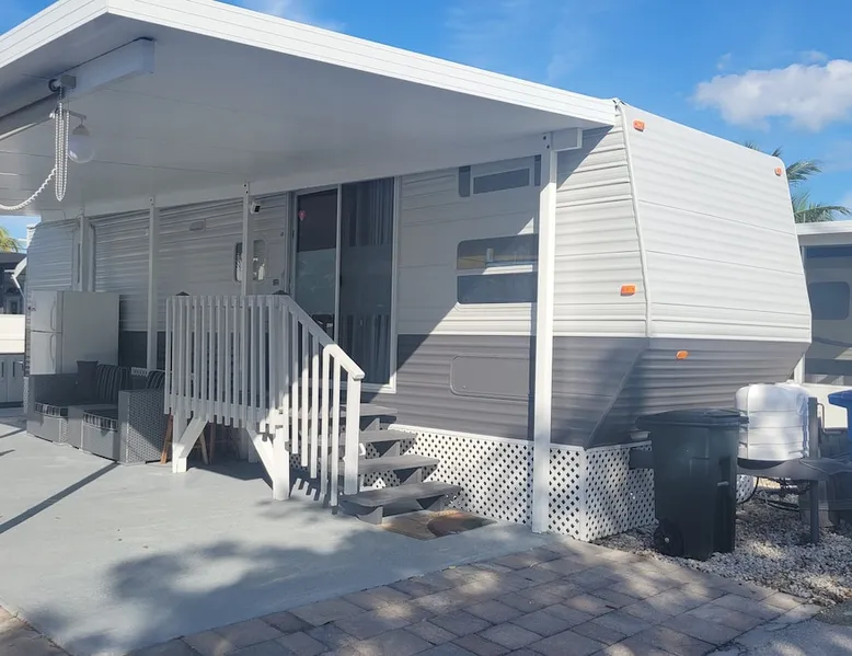 Key Largo Tropical Oasis is in a bayside community where you can enjoy the most beautiful sunsets in the Florida Keys. It has a king size bed in the master bedroom, the other w/twins. It includes microwave, fridge, stove, oven, pots, pans, tableware, towels, linens and grill. Dedicated WIFI/2 roku tv's . This family friendly gated community has 24 hr security with private boat ramp and large heated pool with beautiful views of the bay. A Laundry and public facilities are just steps away. The space Basics are provided. You will need to bring replacement essentials such as garbage bags, toilet paper, paper towels etc. There are 2 roku televisions in trailer. Guest access lockbox, contact ahead for combo Other things to note contact ahead for wifi password If you are planning to bring a boat, please check with us to make sure it fits at the unit. This is a requirement. A boat less than 17-18' should fit. The width of the parking area is about 9'. The association has a separate schedule of fees. There is a $10 fee at check in and if you bring a vessel there is a $25 impact fee for ramp use and a $25 fee for golf cart. 1 vehicle is included with reservation. if there is a second vehicle there may be an additional fee charged by the association. All guests must comply with Calusa Campground rules and regulations there is a hold on a credit card for common element damages as a security deposit to the association. No pets allowed. No smoking inside. smoking ok outside, please dispose of properly.