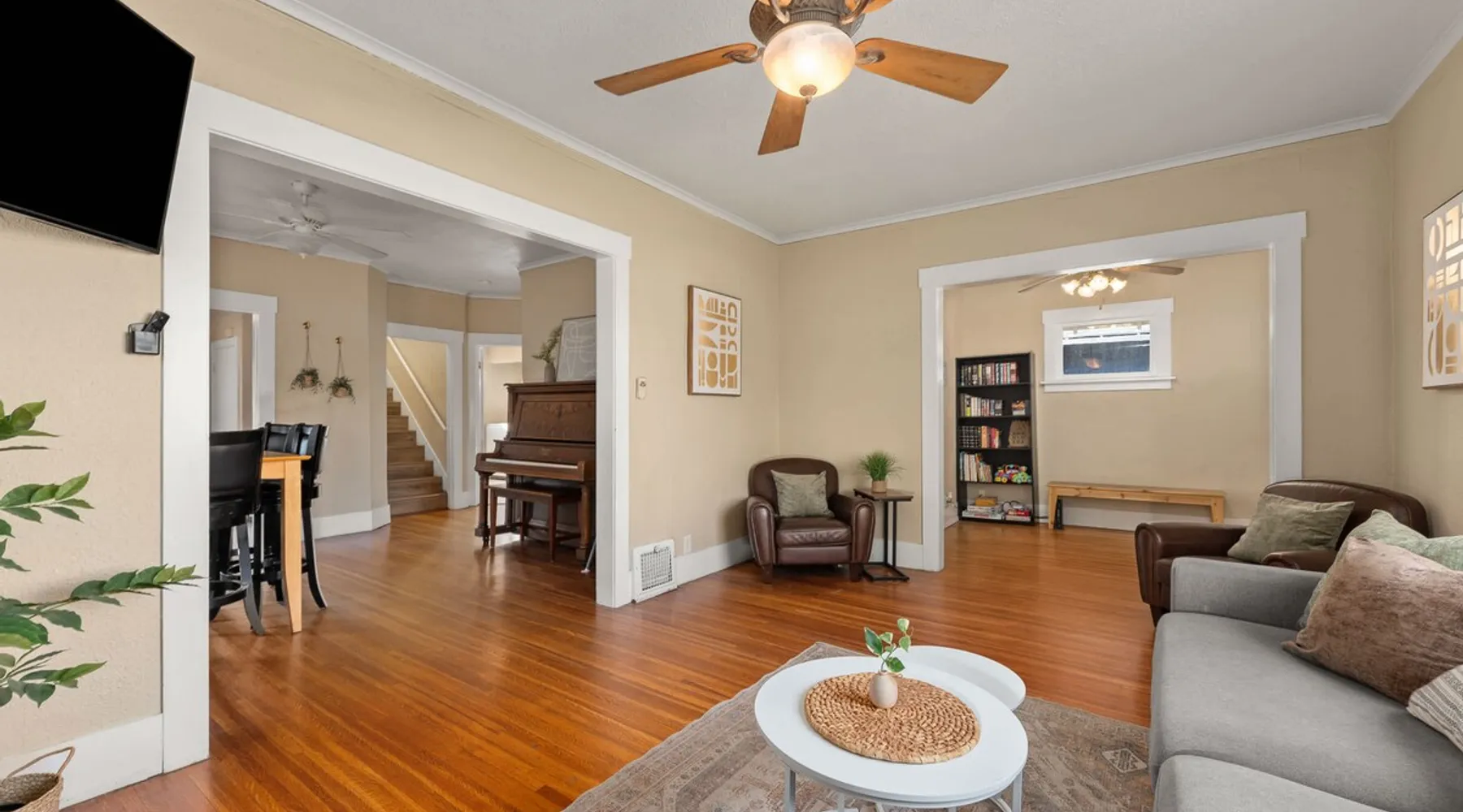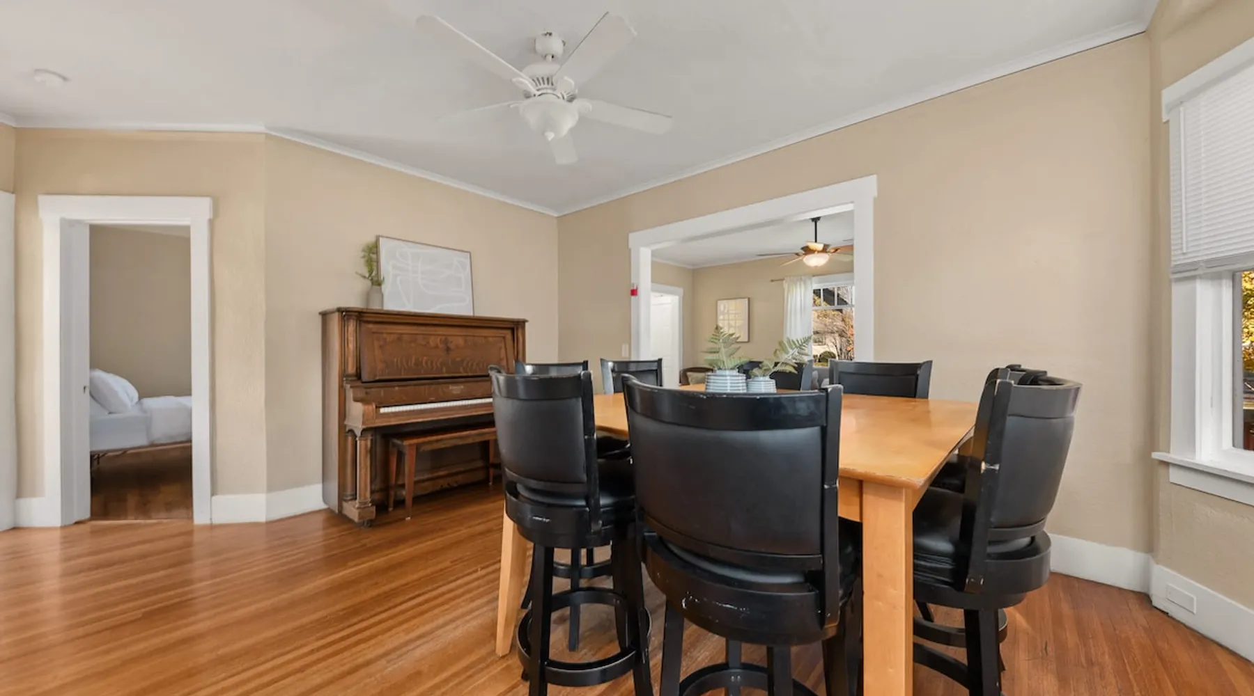 Welcome to our cute and cozy home in Spokane, perfect for families and groups! With 5 bedrooms, 2 bathrooms, a fully furnished kitchen and dining room, and 2 living areas, this charming home offers plenty of space to relax and unwind. You'll love the unique touches like a piano and library, and the convenient location near downtown Spokane makes it easy to explore the city's restaurants and attractions. Come experience the comfort and character of our home for yourself! Guest access The entire home and yard is available. Parking is available in the driveway and first come first serve along the street. Other things to note The fireplace in the living room is prohibited from being used. -Kitchen is fully stocked with everything you will need to cook and serve food. -High Speed WiFi -Basement bedrooms have none egressed windows. Spokane STR Permit: Z23-573STRN