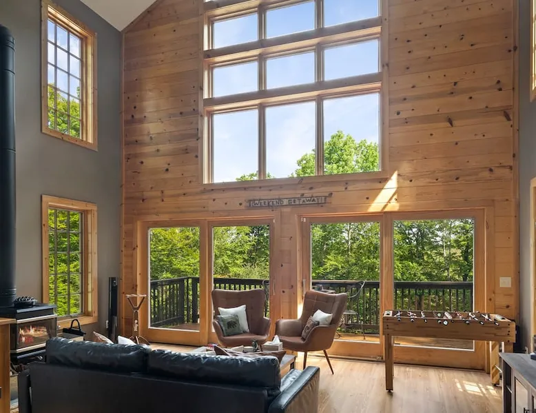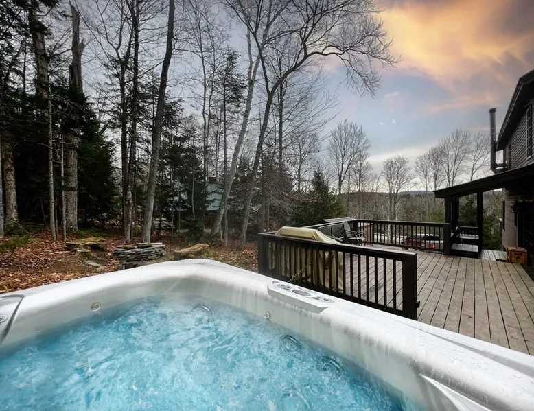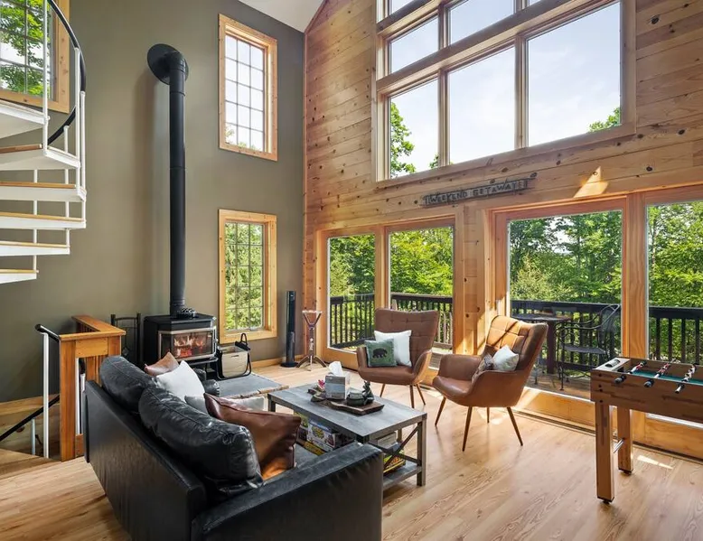 Serene wooded setting with seasonal mountain views. Amazing location that is only a 6 minute drive to the Carinthia Base Lodge and close to restaurants. Great place to work remotely from with high speed internet of 50 mbps download and 30 mbps upload! ** Brand new hot tub added November 2023! ** The space This home features an open floorplan, beautiful exposure with lots of sunlight, open kitchen and dining area, large family/entertainment room with vaulted ceilings and wood stove, spacious living room, floor to ceiling stone fireplace, hardwood floors, master bedroom and living space, expansive deck perfect for entertaining, fire pit and patio. Other things to note - Primary renter must be at least 25 years of age. - Primary guest will be required to execute a rental agreement within 48 hours of booking the property or the reservation will be subject to cancellation. If you enter the property without signing the rental agreement, you agree to all terms of the rental agreement. -During the winter season, you can expect snowy conditions, icy roads, and occasional snowstorms. An All-Wheel Drive (AWD) or Four-Wheel Drive (4WD) vehicle is required to book this property. Please exercise extra caution when driving and ensure your vehicle is adequately prepared for snowy conditions. -Please be aware that inclement weather may lead to power outages or internet disruptions. Unfortunately, we are unable to provide refunds for circumstances beyond our control, such as power or internet loss. -We are unable to make any exceptions from our cancellation policy. We recommend that you explore traveler's insurance as a means to safeguard your travel plans. -Damage waiver- The total cost of your reservation for this Property includes a damage waiver fee which covers you for up to a limited amount, as specified in your rental contract, for Property damage (such as furniture, fixtures, and appliances) as long as you report the incident to the host prior to checking out. Registration details MRT-10126712