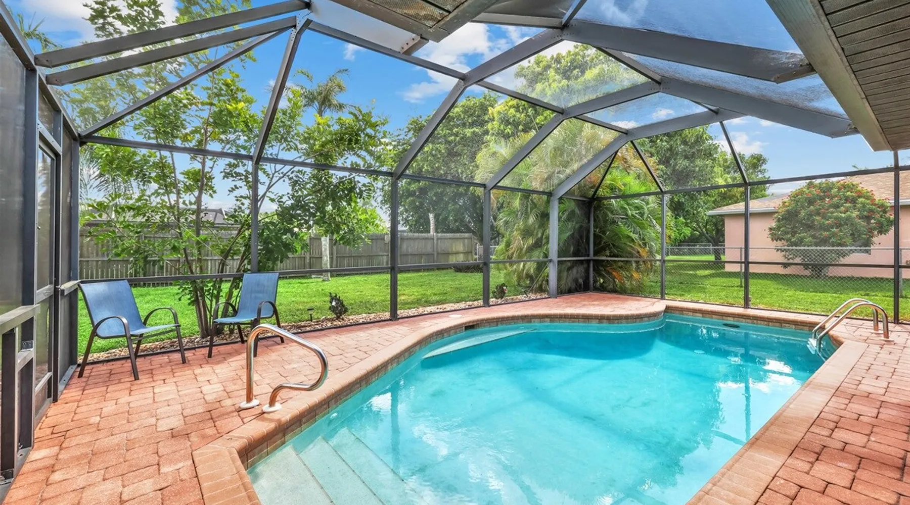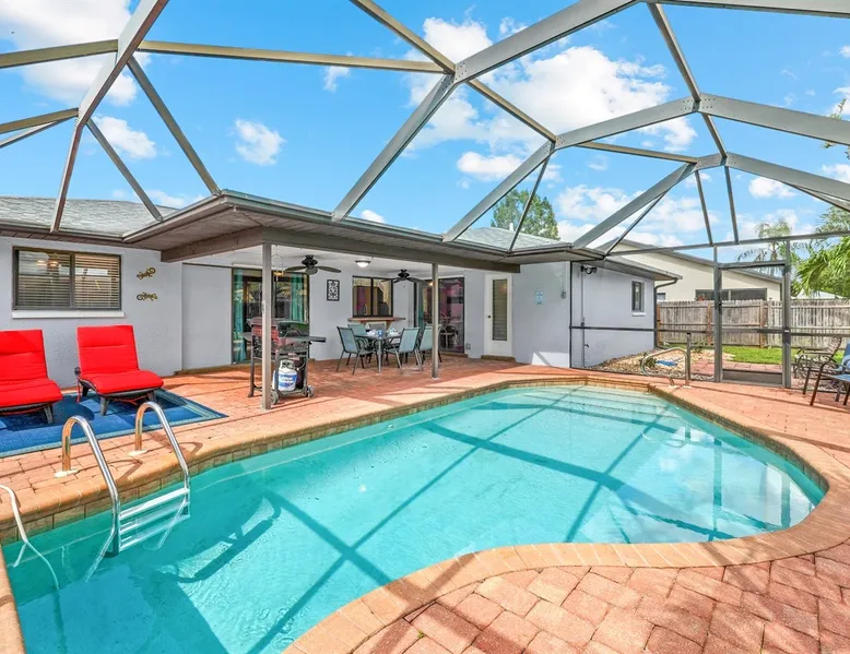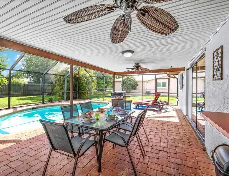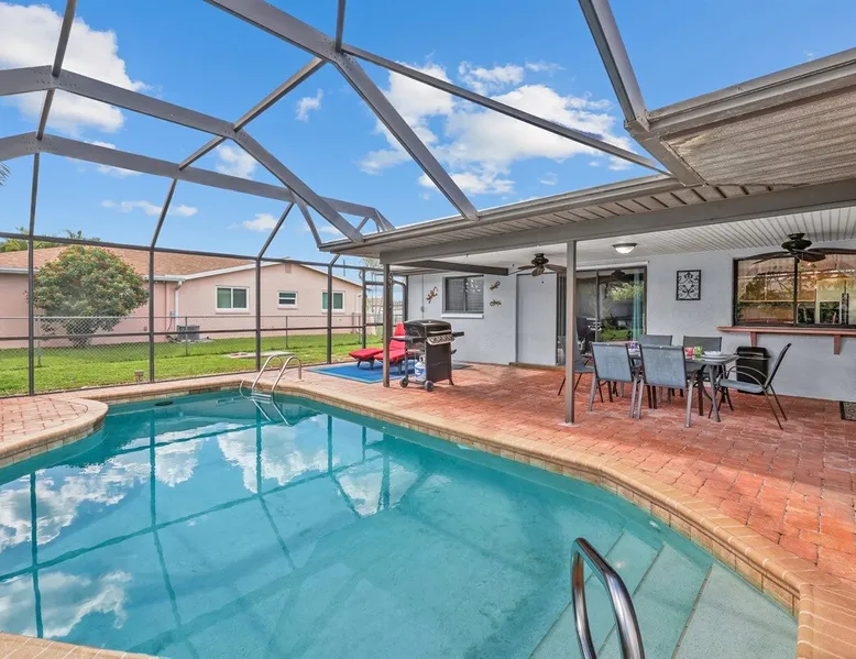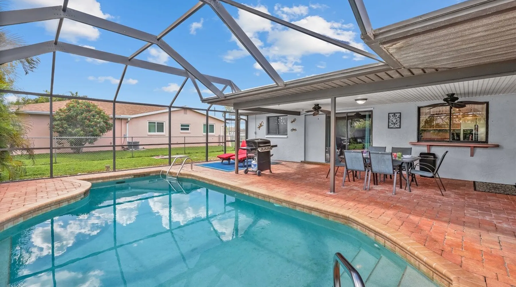 Dream vacation with pool fun. Villa Florida Flair The space This beautiful property is nestled in the heart of Cape Coral. Villa Florida Flair is a simple yet comfortable property equipped with all the basics needed during your stay. The home includes 3 bedrooms, 2 bathrooms, a pool, and more. The master bedroom is equipped with a very comfortable king-size bed. We especially took care of cozy mattresses that give you a relaxed sleep after an exciting day. The master bathroom is equipped with granite countertops and a roomy, tiled bathroom shower. Spend the day relaxing in the heated pool, doesn't matter the weather, you can swim in it year-round, and then head out for a delicious dinner later that night. Villa Florida Flair is situated in a quiet neighborhood but is within a short distance of many great restaurants. Head on over to the bowling alley or cinema center after dinner - they're all nearby. If you're more interested in cooking at home, check out the local grocery store, only five minutes away. You can eat in the large dining room that includes seating for six or grill some steaks outside on the airy lanai. Spend the rest of your evening relaxing with family and watching some TV. A getaway isn't complete without a bit of shopping. If you're interested in some shopping then just take a short minute ride and you'll be sure to come across something you like. The Edison Shopping Mall is just a twelve-minute drive away and is one of the only enclosed malls in Southwest Florida. The kids will love the Sun Splash Waterpark. It takes only 10 minutes to get to Southwest Florida's largest waterpark. It includes waterslides, a lazy river, and even a section for younger kids. It's definitely a place the whole family will enjoy. Don't forget to get the sand toys and umbrella to hit the beach! Fort Myers Beach is only a short 30-minute drive away. Here, you'll be able to relax in the beautiful waters or search for seashells along the coast. Head on down to the fishing pier and try your luck catching a bite. Whether you're looking for a quiet, relaxing vacation or a get-together with the whole family, your stay at Villa Florida Flair will be nothing short of spectacular. You will be required to sign a rental agreement and credit card authorization form, which can be done electronically. You must be at least 25 years old to rent this property. Access to the home will be restricted if requirements are not completed. This property requires an energy contribution payment of $0.22 per KWh plus tax. Please note it when making your reservation. Short Description This beautiful property is nestled in the heart of Cape Coral. Villa Florida Flair is a simple yet comfortable property equipped with all the basics needed during your stay. The home includes 3 bedrooms, 2 bathrooms, a pool, and more. Spend the day relaxing in the heated pool, doesn't matter the weather, you can swim in it year-round, and then head out for a delicious dinner later that night. The Space Spend the day relaxing in the pool, doesn't matter the weather, you can swim in it year-round, and then head out for a delicious dinner later that night. Villa Florida Flair is situated in a quiet neighborhood but is within a short distance to many great restaurants. Head on over to the bowling alley or cinema center after dinner - they're all nearby. If you're more interested in cooking at home, check out the local grocery store, only five minutes away. You can eat in the large dining room that includes seating for six or grill some steaks outside on the airy lanai. Spend the rest of your evening relaxing with family and watching some TV. A getaway isn't complete without a bit of shopping. If you're interested in some shopping then just take a short minute ride and you'll be sure to come across something you like. The Edison Shopping Mall is just a twelve-minute drive away and is one of the only enclosed malls in Southwest Florida. The kids will love the Sun Splash Waterpark. It takes only 10 minutes to get to Southwest Florida's largest waterpark. It includes waterslides, a lazy river, and even a section for younger kids. It's definitely a place the whole family will enjoy. Don't forget to get the sand toys and umbrella to hit the beach! Fort Myers Beach is only a short 30-minute drive away. Here, you'll be able to relax in the beautiful waters or search for seashells along the coast. Head on down to the fishing pier and try your luck catching a bite. Whether you're looking for a quiet, relaxing vacation or a get-together with the whole family, your stay at Villa Florida Flair will be nothing short of spectacular. Features Description You will be required to sign a rental agreement and credit card authorization form, which can be done electronically. The minimum age to place a reservation is 25 years. Access to the home can be restricted if requirements are not completed. This property requires an energy contribution payment of $0.22 per KWh plus tax. A hold of $15 per day is required and will be placed on your card prior to your arrival. The actual amount will be charged after your stay based on your energy consumption. Location Description The home is located in the southeast of Cape Coral where you can find great amenities within a short distance. Experience a day at the Four Mile Cove Ecological Preserve, take a kayaking tour, go have some fun bowling, or just enjoy a family movie night at the movie theater. There are many restaurants, grocery stores, parks, and more to visit during your stay.