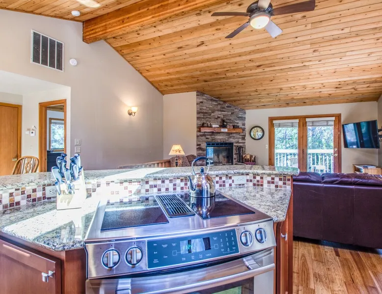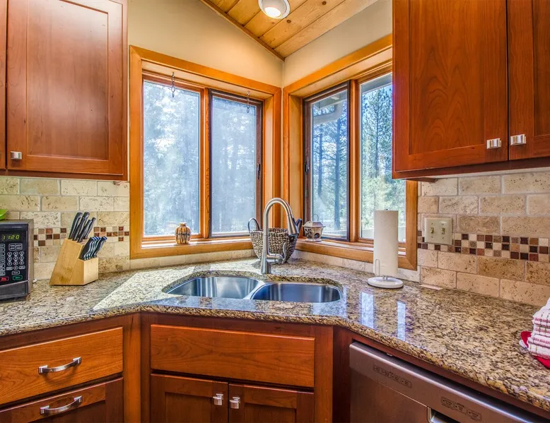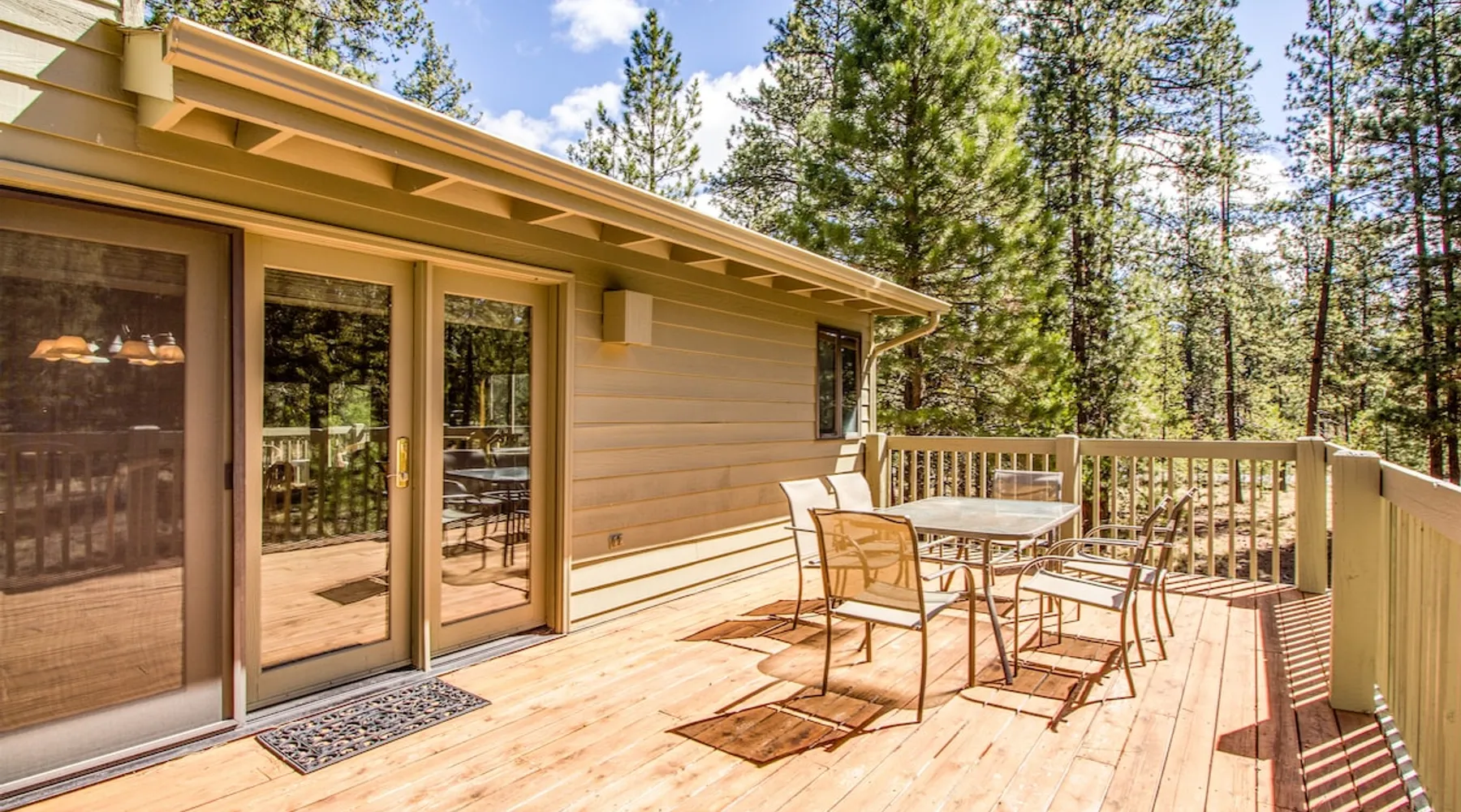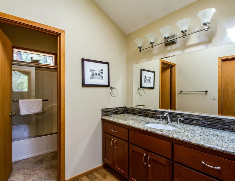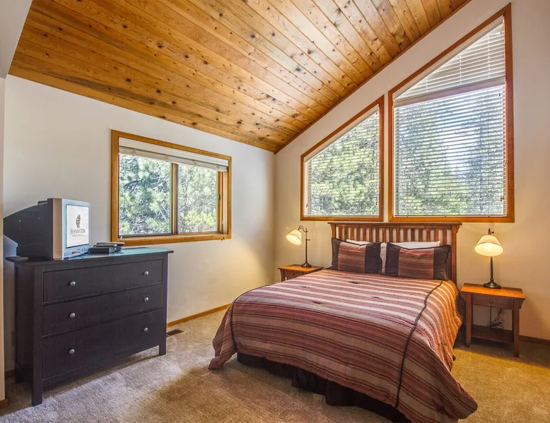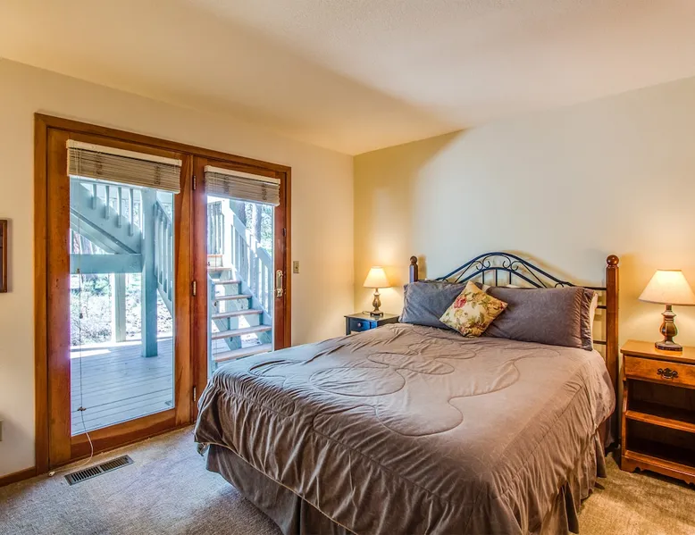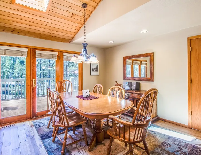 Escape to this newly remodeled Sunriver retreat! Perfect for families, this home features a private hot tub, fully stocked kitchen, great out door space, and bikes for exploring miles of scenic trails. Unwind in stylish, comfortable spaces, enjoy BBQs on the deck, or stargaze from the bubbling spa. Just minutes from The Village, and Mt. Bachelor, it’s your perfect base for adventure and relaxation. The space Welcome to Diamond Peak 4! - 3 Bedrooms, 2 Bathrooms, Sleeps 7 - Private Hot Tub - Cornhole - Enclosed Deck - Bikes This attractive Sunriver vacation rental home boasts a fantastic location and many alluring features, making it a wonderful place to call home during your visit. Situated a short trip down a paved pathway to the playground, picnic area, and ball fields at Fort Rock Park, the setting offers convenient access to all of the excitement of the area while providing a quiet retreat with plenty of outdoor space for entertaining. A beautiful kitchen with granite countertops and stainless steel appliances, vaulted tongue and groove ceilings, hardwood flooring, a private queen ensuite bedroom, and a bonus family room are just a few highlights your group will discover when staying in 4 Diamond Peak! The main living area is on the second story of this 3-bedroom home, along with the kitchen, dining, Ensuite bedroom, and a full bathroom. A Queen bed, vaulted ceilings, large windows, and a TV adorn the ensuite bedroom. Curl up to watch a movie or the big game on the TV in the living room, or send the kids downstairs to the family room to do the same while the rest of the group enjoys a glass of wine out on the large, upper deck. A gas BBQ grill, patio, and lounge seating are available for your use. Downstairs on the entry level are 2 guest bedrooms and a full bathroom in addition to the family room. One of the bedrooms has a comfortable Queen bed and access to the spacious lower deck, where you will find a private hot tub and additional patio seating! The second bedroom accommodates two with a Twin Bunk bed, while the family room has a TV/DVD player and offers a futon for up to two additional guests. A washing machine and dryer are made available for your convenience. Ready for game time? Use the cornhole available for guests' use. And, when you are ready to explore Sunriver, be sure to take a bike ride along the miles of paved pathways winding throughout the area on one of the 2 adult bikes provided with the home. Family reunion? Great! Book this home along with our 21 Diamond Peak and 23 Diamond Peak homes, and you will have room for the whole family. This home, along with most Sunriver homes, is not air-conditioned. With our cool mountain evenings and ice-cold rivers and lakes to keep you cool, this is a great house for a slow-paced, ice cream and iced beer kinda summer. *Fireplace not available for use Guest access Home access information will be sent 7 - 10 days prior to arrival. All homes are set up for self check-in, no need to stop by the office, just go straight to the home. Other things to note AGE RESTRICTIONS: Guests must be 23 years or older to rent Bennington homes and the person reserving must occupy the home the whole reservation.