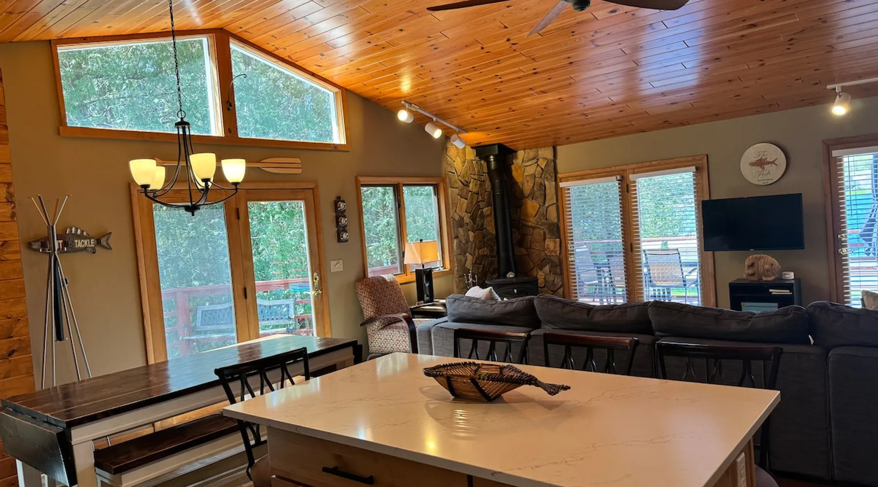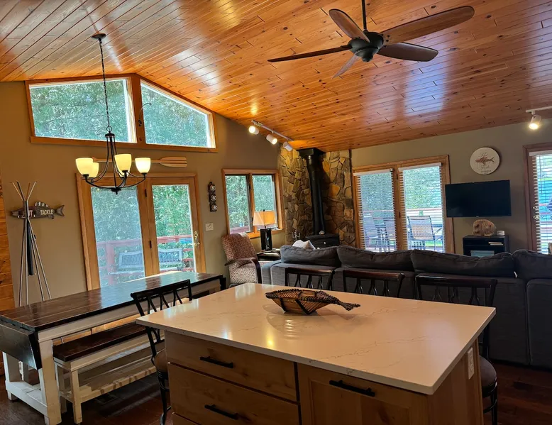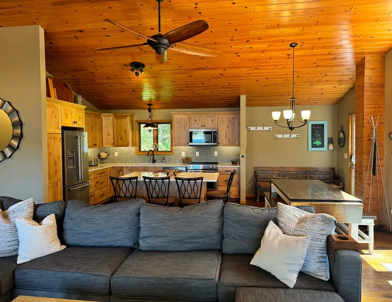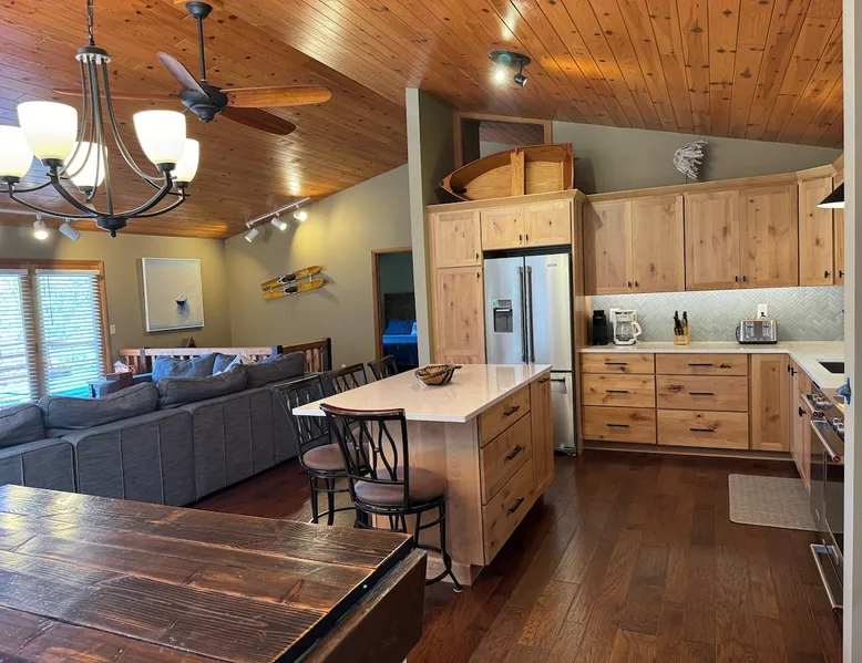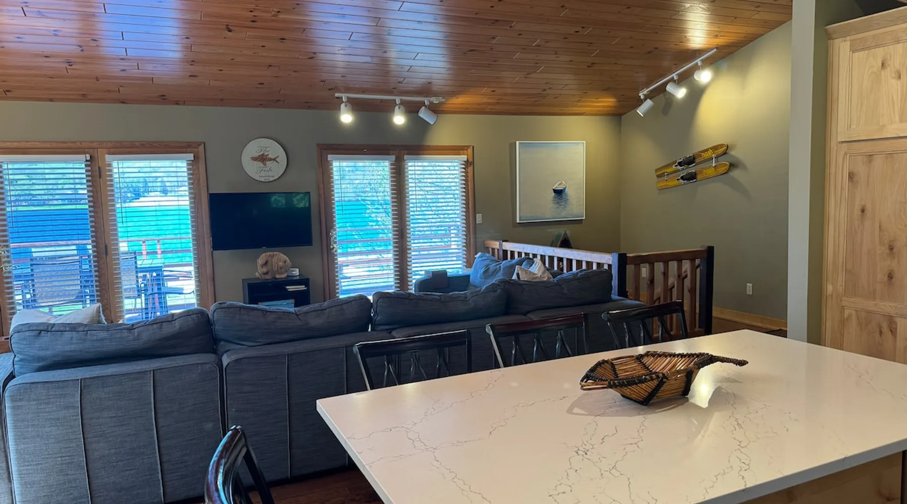 The Flying Fish is a family friendly, fully equipped 4 bedroom, 2 bath home on the hidden gem, all sports, Intermediate Lake. Great place to relax or for a change of scenery for virtual work! Dock your boat at the house and access the entire Upper Chain of lakes or head to nearby Schuss/Shanty or Boyne Mountain for winter fun! Tons to do both inside & out all year long. Plenty of nearby fun and central up north location is ideal for day trips as well! Kitchen newly remodeled in spring 2024! The space We have thought of everything. In the summer, bring your boat and dock it right at the house or rent a boat down the street and dock it at the house. We also provide kayaks and 2 stand-up paddle boards (1 kid sized) to enjoy the lake, beach toys, yard games, and fire pit outside. In the winter or on rainy days, there is plenty of indoor fun included too! Foosball table and a whole closet of board games and puzzles. Video games galore (wii, Game Cube, PS3 and XBox 360), cable TV, Netflix, Amazon Firestick, and wifi. Fully stocked kitchen, new pots and pans and even some gourmet items including Kitchen Aid mixer, blenders, etc. If we don't have something you would like, please let us know. We are continually trying to improve the home and the amenities! Need a change of scenery during the work week? Take advantage of the strong WiFi, desk, printer, and several other available work spaces for all your virtual work and school needs. Located within walking distance to grocery, restaurants, bar, and boat rental. Explore the Upper Chain of Lakes from the front yard or travel down the street for Torch Lake and the entire Lower Chain of Lakes. Central Lake is located approximately 30 minutes from Charlevoix and 45 minutes from Traverse City and Petoskey. A week at the Flying Fish offers plenty of relaxation and fun at the beach and on the lake, as well as a chance to explore all that northern Michigan has to offer. Spend a long weekend in the fall for great color tours, apple picking (King Orchards has what seems like miles of Honey Crisp trees!), or touring local vineyards. In the winter, we are located 15 minutes from Shanty Creek and 1/2 an hour from Schuss Mountain and Boyne Mountain! Plenty of cross-country, hiking, and mountain bike trails nearby as well. Mammoth Distilling is within walking distance, Torch Lake Cellars, Shorts Brewery, Bee Well Meadery, and Hello Vino wine bar are each about 15 minutes away and all are fabulous places to spend a couple hours! There is also a new Torch Lake Tour of local wineries, distilleries, breweries, and meaderies with transportation available (search for Torch Lake Tour for further information). Guest access Guests can choose a 4-8 digit code for door entry using the Nest door lock. They will have access with this code throughout their stay. Other things to note We are happy to host guests who do not have previous reviews, so please feel free to send a message to request to book. We only allow instant book for those with previous positive reviews. We have 2 pack-and-plays, a strap to the chair high chair, and many toys for young children because we remember what a pain it was to bring all that when traveling with infants and toddlers! There is plenty to do for older kids (and adults!) too with the foosball table, game closet, beach toys, fishing poles, child-sized and adult-sized Stand-Up Paddleboards, kayaks, and video games. We strive to be very family oriented, and offer plenty for adults of the family to do too :-) We have hosted small family birthday parties, bridal showers, ladies' weekends etc at the house, but do not think it is suited for events like weddings. Please inquire about parties prior to booking.
