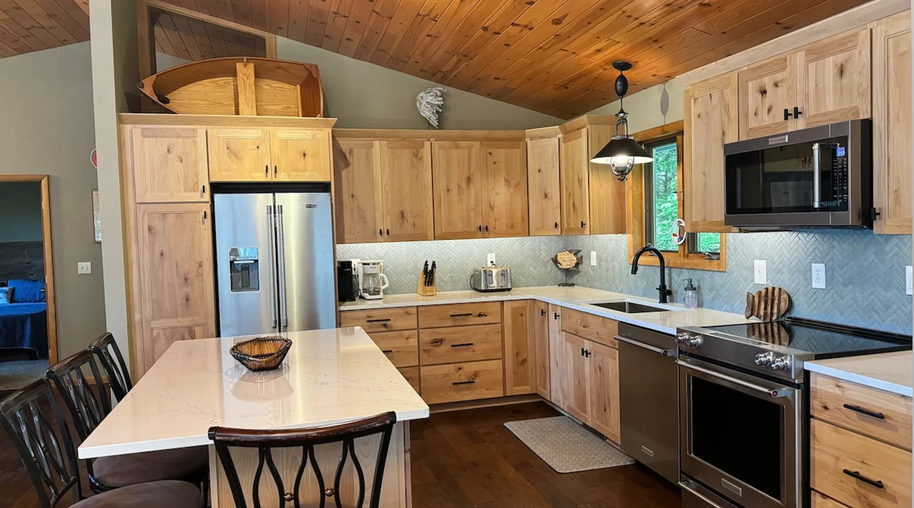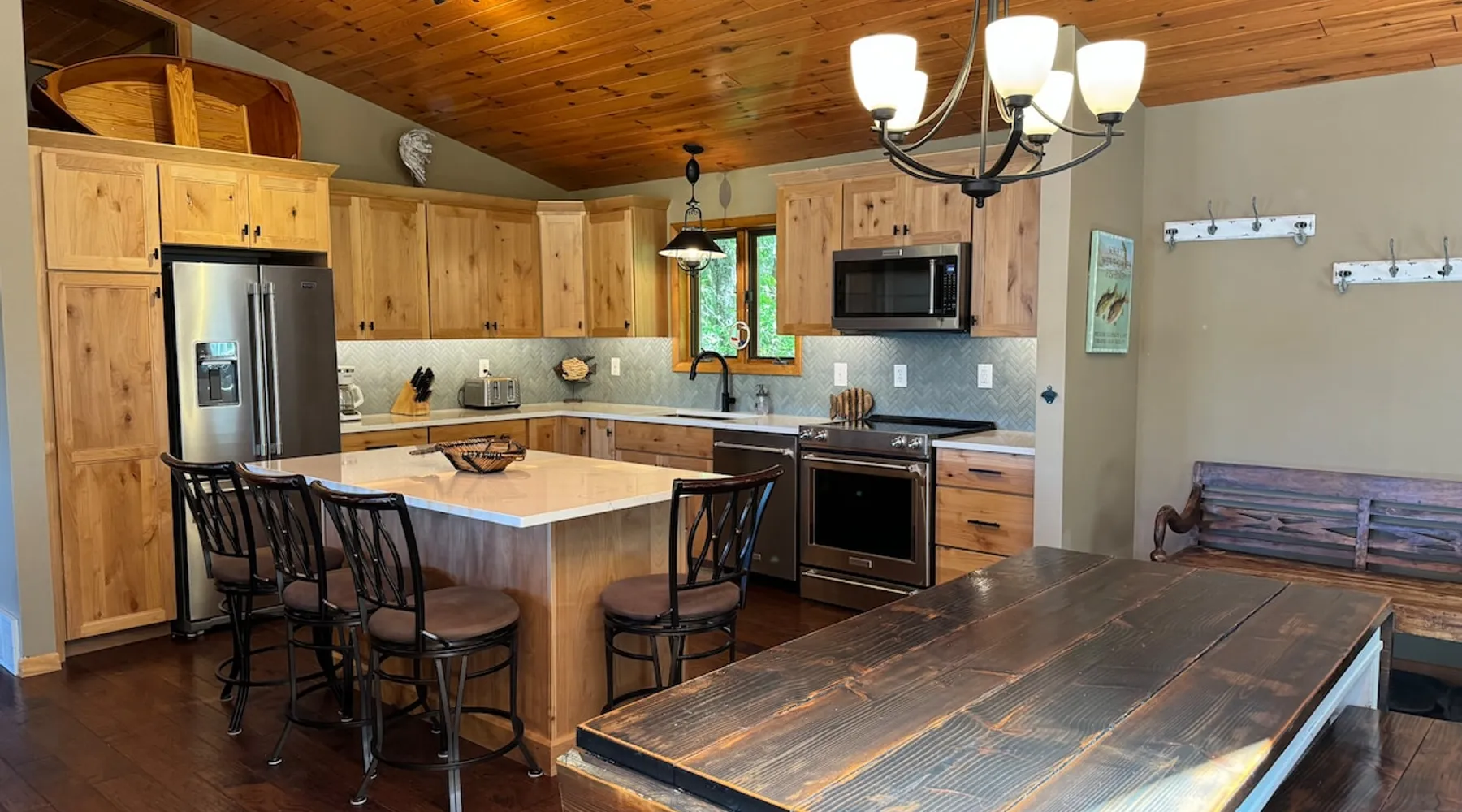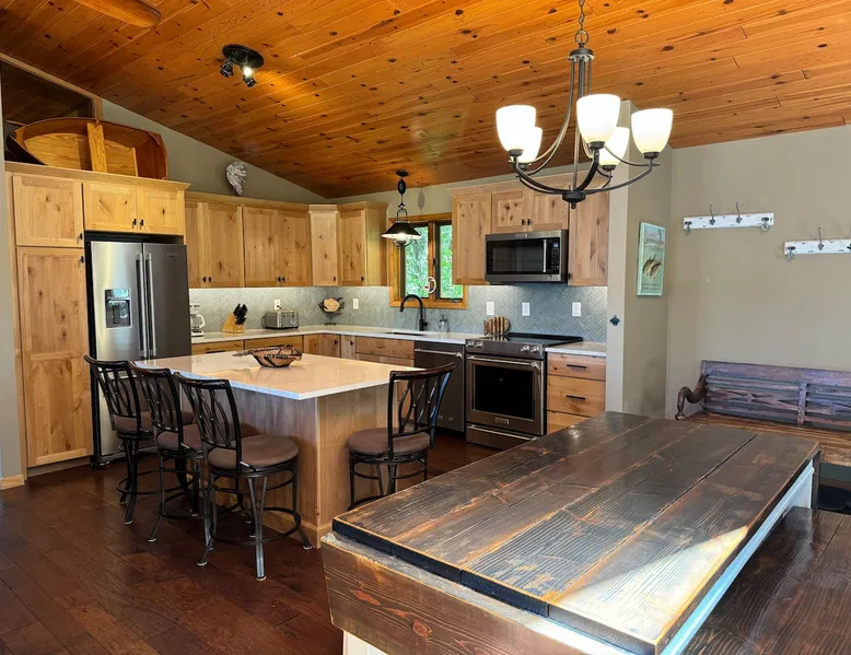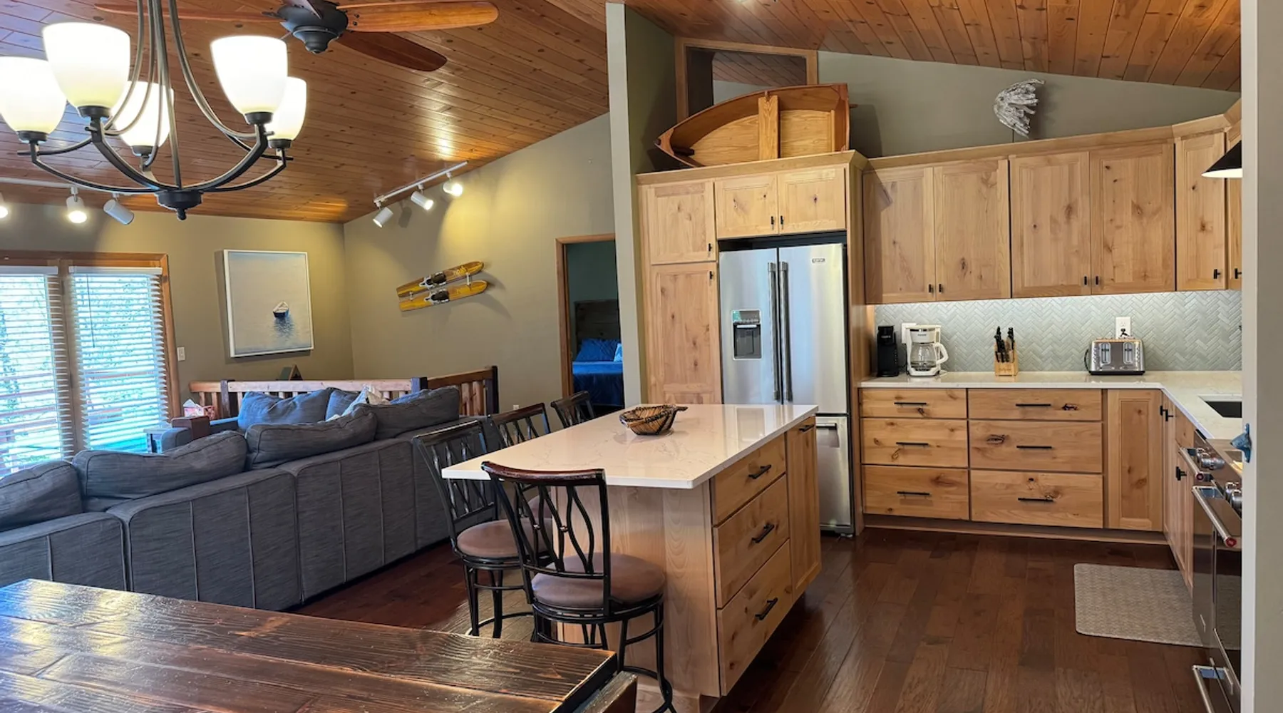 The Flying Fish is a family friendly, fully equipped 4 bedroom, 2 bath home on the hidden gem, all sports, Intermediate Lake. Great place to relax or for a change of scenery for virtual work! Dock your boat at the house and access the entire Upper Chain of lakes or head to nearby Schuss/Shanty or Boyne Mountain for winter fun! Tons to do both inside & out all year long. Plenty of nearby fun and central up north location is ideal for day trips as well! Kitchen newly remodeled in spring 2024! The space We have thought of everything. In the summer, bring your boat and dock it right at the house or rent a boat down the street and dock it at the house. We also provide kayaks and 2 stand-up paddle boards (1 kid sized) to enjoy the lake, beach toys, yard games, and fire pit outside. In the winter or on rainy days, there is plenty of indoor fun included too! Foosball table and a whole closet of board games and puzzles. Video games galore (wii, Game Cube, PS3 and XBox 360), cable TV, Netflix, Amazon Firestick, and wifi. Fully stocked kitchen, new pots and pans and even some gourmet items including Kitchen Aid mixer, blenders, etc. If we don't have something you would like, please let us know. We are continually trying to improve the home and the amenities! Need a change of scenery during the work week? Take advantage of the strong WiFi, desk, printer, and several other available work spaces for all your virtual work and school needs. Located within walking distance to grocery, restaurants, bar, and boat rental. Explore the Upper Chain of Lakes from the front yard or travel down the street for Torch Lake and the entire Lower Chain of Lakes. Central Lake is located approximately 30 minutes from Charlevoix and 45 minutes from Traverse City and Petoskey. A week at the Flying Fish offers plenty of relaxation and fun at the beach and on the lake, as well as a chance to explore all that northern Michigan has to offer. Spend a long weekend in the fall for great color tours, apple picking (King Orchards has what seems like miles of Honey Crisp trees!), or touring local vineyards. In the winter, we are located 15 minutes from Shanty Creek and 1/2 an hour from Schuss Mountain and Boyne Mountain! Plenty of cross-country, hiking, and mountain bike trails nearby as well. Mammoth Distilling is within walking distance, Torch Lake Cellars, Shorts Brewery, Bee Well Meadery, and Hello Vino wine bar are each about 15 minutes away and all are fabulous places to spend a couple hours! There is also a new Torch Lake Tour of local wineries, distilleries, breweries, and meaderies with transportation available (search for Torch Lake Tour for further information). Guest access Guests can choose a 4-8 digit code for door entry using the Nest door lock. They will have access with this code throughout their stay. Other things to note We are happy to host guests who do not have previous reviews, so please feel free to send a message to request to book. We only allow instant book for those with previous positive reviews. We have 2 pack-and-plays, a strap to the chair high chair, and many toys for young children because we remember what a pain it was to bring all that when traveling with infants and toddlers! There is plenty to do for older kids (and adults!) too with the foosball table, game closet, beach toys, fishing poles, child-sized and adult-sized Stand-Up Paddleboards, kayaks, and video games. We strive to be very family oriented, and offer plenty for adults of the family to do too :-) We have hosted small family birthday parties, bridal showers, ladies' weekends etc at the house, but do not think it is suited for events like weddings. Please inquire about parties prior to booking.