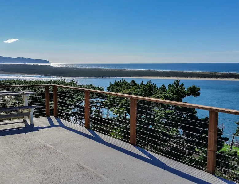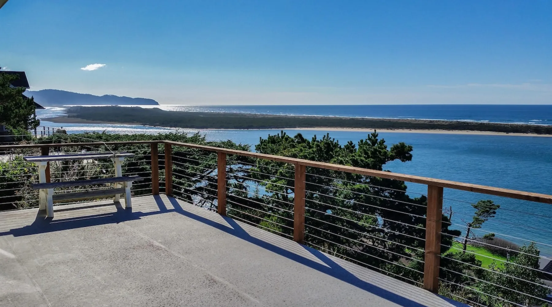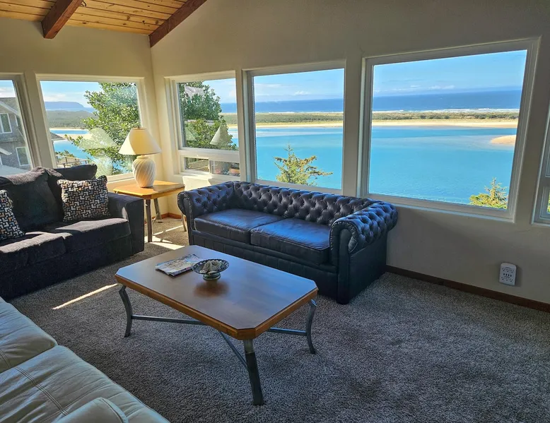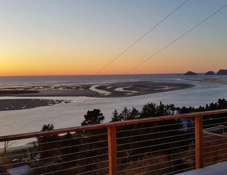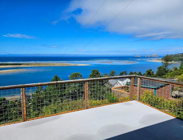 Beautiful home with gorgeous views of Netarts Bay and the Pacific Ocean with HOT TUB! The space BEAUTIFUL BAY AND OCEAN VIEW RETREAT! Enjoy spectacular bay and ocean views in this contemporary 3 bedroom, 2 1/2 bathroom home in Netarts, Oregon. Just minutes from the beach! The Vista View Retreat features a commanding straight-on view of Netarts Bay, the Pacific Ocean, and Three Arch Rocks in Oceanside. The perfect place to take advantage of the breath-taking sunsets and witness the drama of coastal storms as they roll in. Contemplate the sea or lose yourself in a novel from the comfort of the upper room that is dedicated to enjoying the gorgeous view and watching TV. Warm yourself by a crackling fire in the living room while listening to the sounds of the ocean and visiting with family and friends. Walk down the spiral staircase and snuggle into the sofa downstairs and watch an old movie or a football game on the over-sized flat screen smart TV. Sip wine, create a gourmet meal, and have long, luxurious chats in this well-appointed kitchen. While you are cooking, you can still enjoy the ocean views and the ever-changing hue of the bay as the sun sets or the storms roll in. There is a gas grill for your use stored in the garage space. Drift off to the sound of the ocean and the smell of salt air. The master bedroom has a private bath, queen bed, and view of the Three Arch Rocks. The 2nd bedroom has a queen bed and a full bathroom just outside the door. For additional sleeping there is a bunk bed located downstairs that has a double bed on the bottom and a twin on the top. Bring your beach clothes to layer for sunny or stormy weather. No matter which, be ready for fun-filled days. Watch the sun set over the ocean, take a long deep breath and exhale. Welcome to your home away from home - The Vista View Retreat! ** Note: Up to 2 dogs are welcome to come! There is a $65 pet fee for the additional cleaning required after your departure. ** Note: Your nightly rate includes damage insurance should anything accidentally break or get ruined during your stay. ** Note: I send out a rental acknowledgment to sign electronically after a booking is made. It is very straightforward and simple, but if you would like a copy of the contract beforehand, just let me know! :-) Registration number: STVR#851-15-00018
