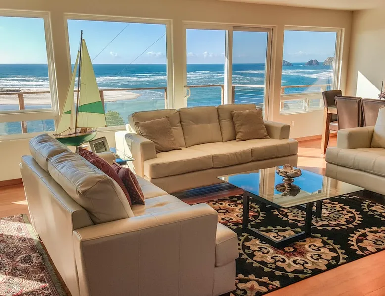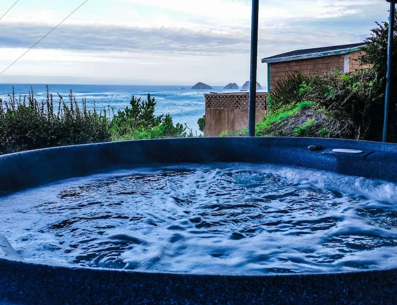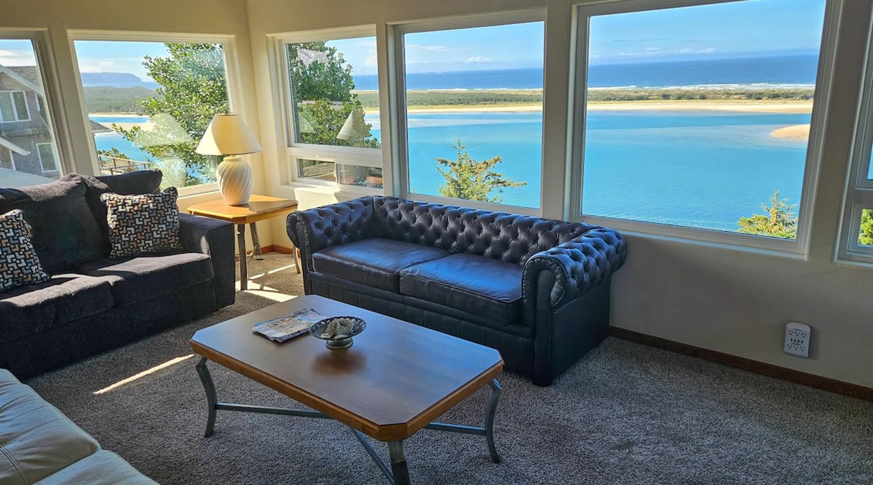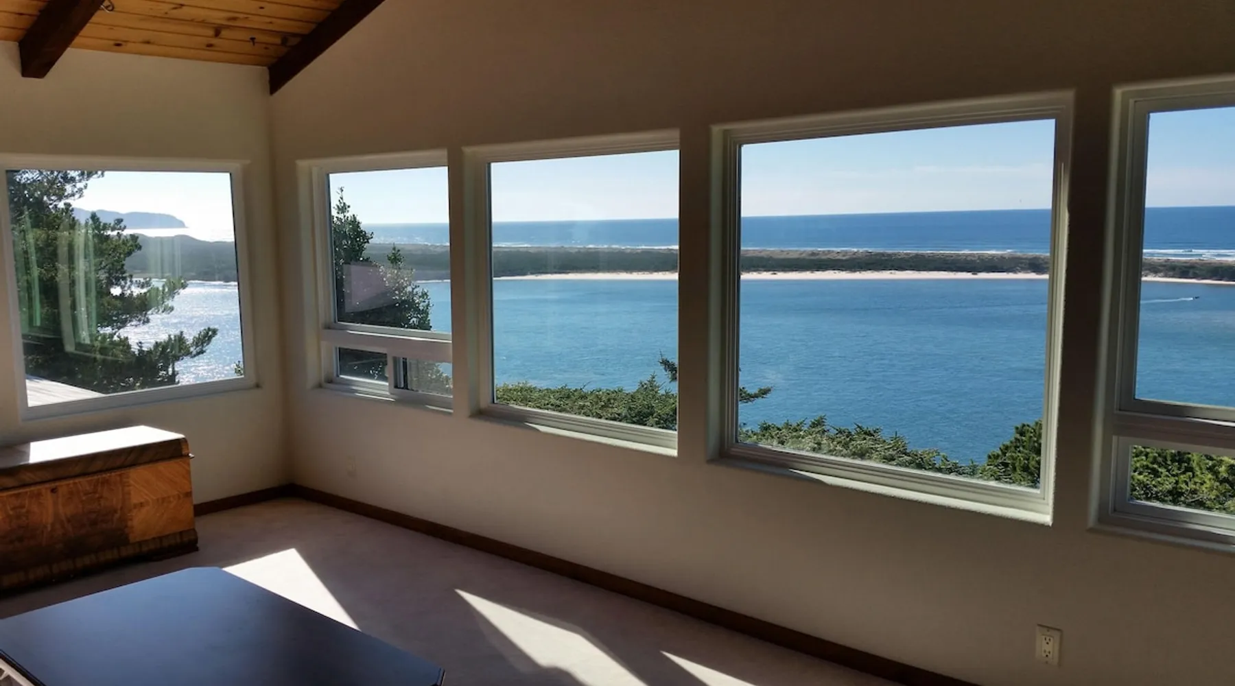 Beautiful home with gorgeous views of Netarts Bay and the Pacific Ocean with HOT TUB! The space BEAUTIFUL BAY AND OCEAN VIEW RETREAT! Enjoy spectacular bay and ocean views in this contemporary 3 bedroom, 2 1/2 bathroom home in Netarts, Oregon. Just minutes from the beach! The Vista View Retreat features a commanding straight-on view of Netarts Bay, the Pacific Ocean, and Three Arch Rocks in Oceanside. The perfect place to take advantage of the breath-taking sunsets and witness the drama of coastal storms as they roll in. Contemplate the sea or lose yourself in a novel from the comfort of the upper room that is dedicated to enjoying the gorgeous view and watching TV. Warm yourself by a crackling fire in the living room while listening to the sounds of the ocean and visiting with family and friends. Walk down the spiral staircase and snuggle into the sofa downstairs and watch an old movie or a football game on the over-sized flat screen smart TV. Sip wine, create a gourmet meal, and have long, luxurious chats in this well-appointed kitchen. While you are cooking, you can still enjoy the ocean views and the ever-changing hue of the bay as the sun sets or the storms roll in. There is a gas grill for your use stored in the garage space. Drift off to the sound of the ocean and the smell of salt air. The master bedroom has a private bath, queen bed, and view of the Three Arch Rocks. The 2nd bedroom has a queen bed and a full bathroom just outside the door. For additional sleeping there is a bunk bed located downstairs that has a double bed on the bottom and a twin on the top. Bring your beach clothes to layer for sunny or stormy weather. No matter which, be ready for fun-filled days. Watch the sun set over the ocean, take a long deep breath and exhale. Welcome to your home away from home - The Vista View Retreat! ** Note: Up to 2 dogs are welcome to come! There is a $65 pet fee for the additional cleaning required after your departure. ** Note: Your nightly rate includes damage insurance should anything accidentally break or get ruined during your stay. ** Note: I send out a rental acknowledgment to sign electronically after a booking is made. It is very straightforward and simple, but if you would like a copy of the contract beforehand, just let me know! :-) Registration number: STVR#851-15-00018
