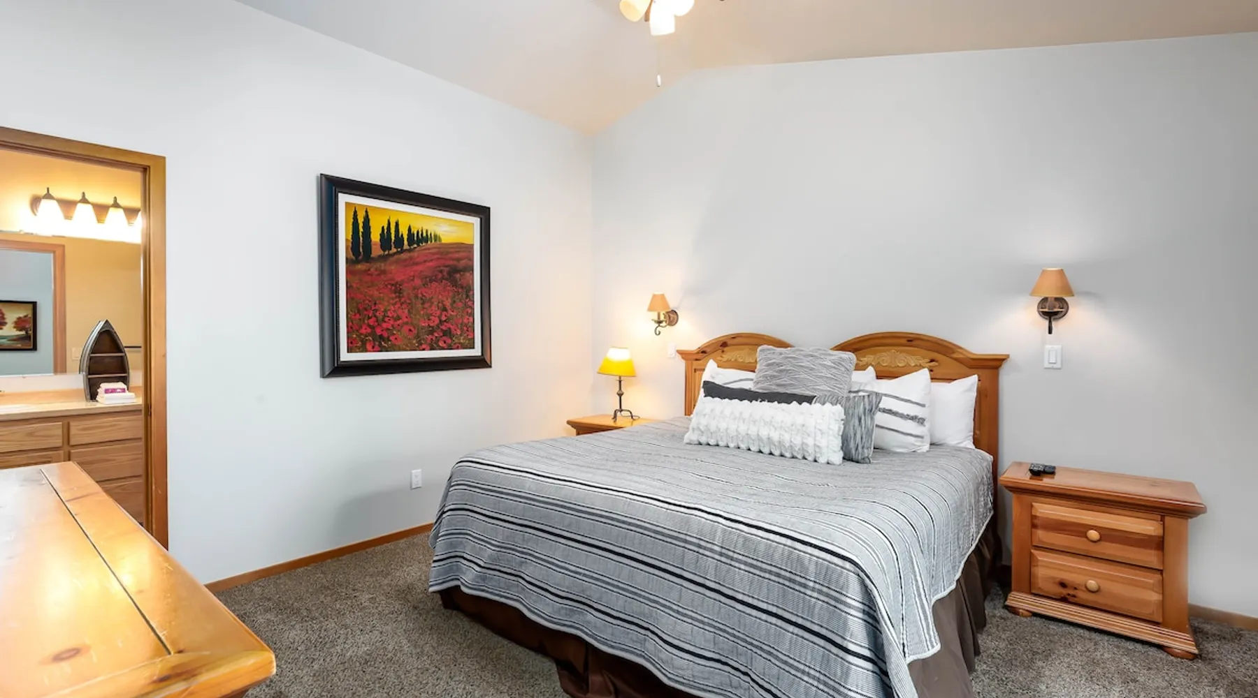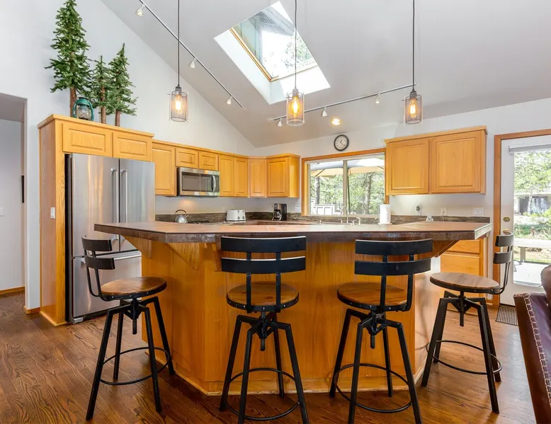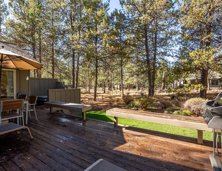 Step away from the hustle and reconnect with what matters. This 4BR retreat features A/C, a gas fireplace, fully stocked kitchen, bikes, ping pong, and a private hot tub. With 3 king bedrooms (1 ensuite on main level) and a fun bunk room, there’s space for everyone — even your dogs. Whether you're here to explore or unwind, this home is designed for real rest, real connection, and real memories. The space Step Away. Slow Down. Reconnect. Welcome to your peaceful retreat in the heart of Central Oregon — a thoughtfully designed four-bedroom home where comfort meets intention. Whether you're gathering the whole family or spending time with close friends, this home gives you space to unplug from life’s hectic pace and reconnect with what truly matters. Inside, you’ll find a fully stocked kitchen ready for shared meals and spontaneous snacks, a cozy living room with a gas fireplace perfect for unwinding, and air conditioning to keep you cool and comfortable. The main level features a serene king ensuite bedroom, a second king bedroom, and a full bathroom — ideal for guests who prefer single-level living. Upstairs, a third king bedroom and a cheerful bunk room share another full bathroom. Aside from Ping Pong, both the young and the young-at-heart can have fun playing the new arcade game in the garage. Outside, soak up the good life — take a bike ride through the fresh mountain air, or sink into your own private hot tub, now enhanced with a privacy wall, under a sky full of stars. And yes — your well-behaved dogs (2 max) are welcome to join the fun. A pet fee applies. We created this home to be more than just a getaway. It's a place to breathe deeper, laugh louder, and savor time with the people who matter most. From cozy mornings to peaceful nights, your stay is designed to help you slow down — and truly enjoy it all. Family reunion? Great! Book this home along with our 16 Red Cedar, 20 Red Cedar, 23 Red Cedar and 27 Red Cedar Lane homes for room for the whole family. Guest access Home access information will be sent 7 - 10 days prior to arrival. All homes are set up for self check-in, no need to stop by the office, just go straight to the home. Other things to note AGE RESTRICTIONS: Guests must be 23 years or older to rent Bennington homes and the person reserving must occupy the home the whole reservation.
