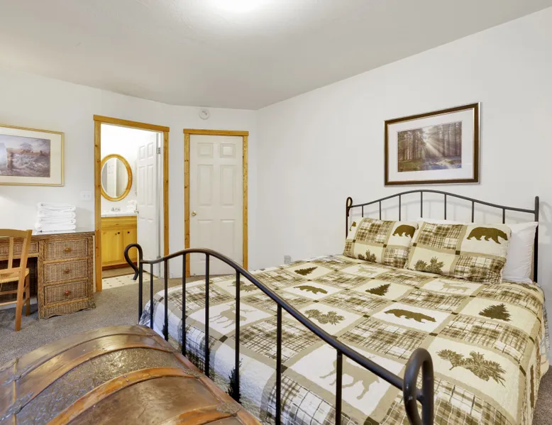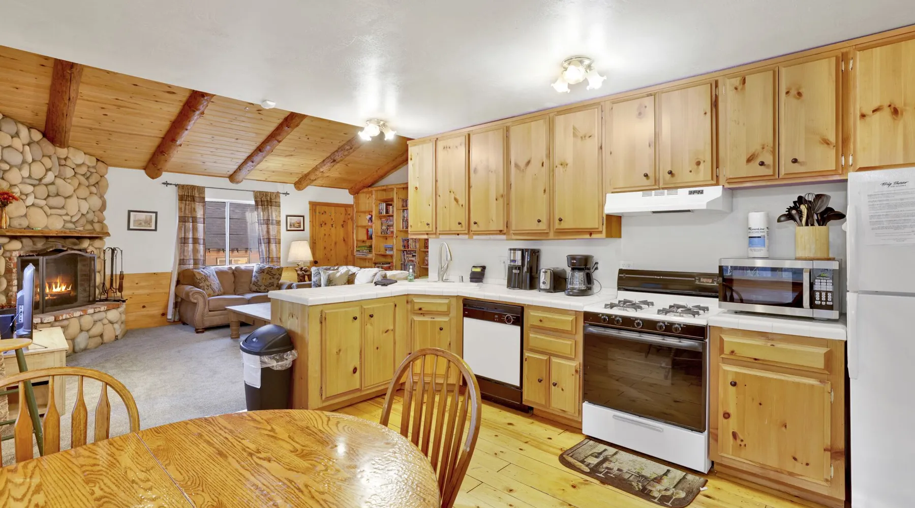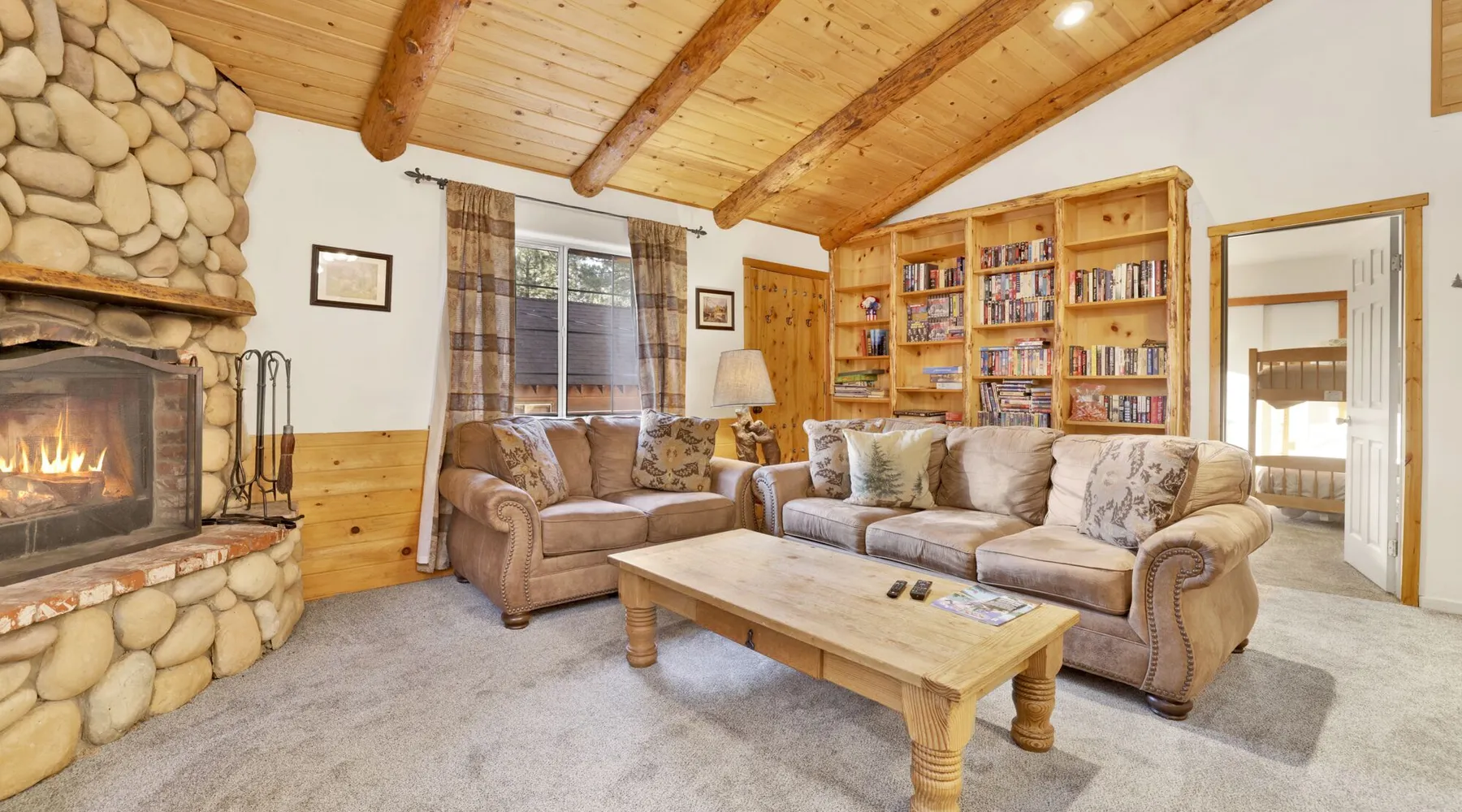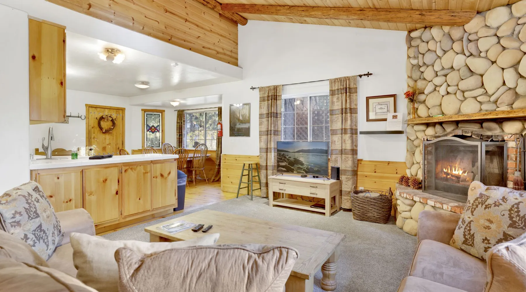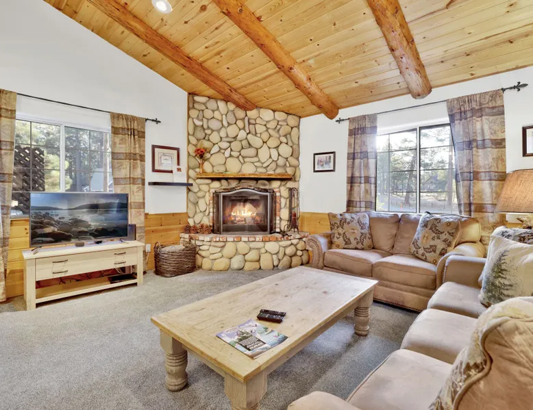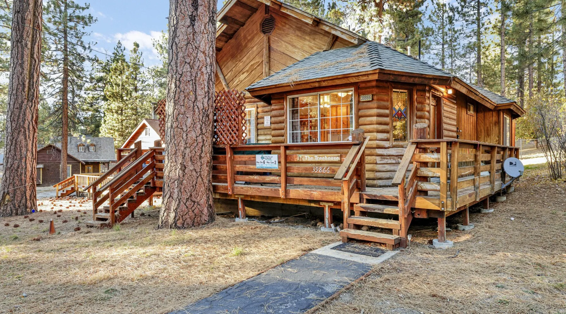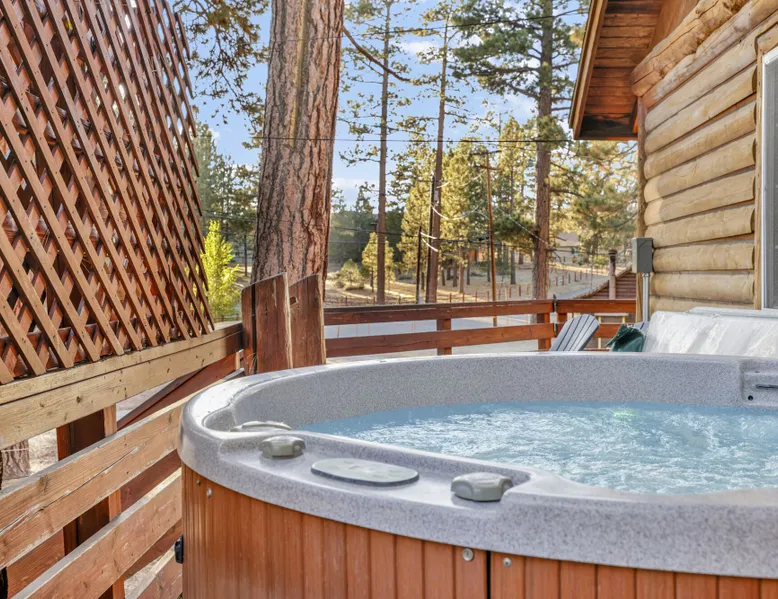 Forest Treehouse Chalet | Private Hot Tub | Walk to Lake Welcome to Forest Treehouse. Prefect for a group of friends or a small family to enjoy the best of Big Bear our fabulous single story log cabin retreat is set back on a spacious central property within a short walk to the shores of Big Bear Lake and features all that you would need to experience a memorable and relaxing vacation. Hop in the car and you are under ten minutes to the ski resorts, grocery stores, and local activities. Knotty pine beamed ceilings and big open windows greet you in the cozy living room as you enter you retreat- you will love snuggling up here on the couch together as you pop on a movie on the Streaming TV and warm your toes in front of the toasty fireplace to watch the snow falling outside. Being a spacious single level retreat you will have quick and easy access to the equipped kitchen and dining room areas, both are furnished with all that you need to whip up your home cooked meals and slope side snacks for the group. Two comfortable bedrooms and bathrooms are available when you are ready for a great night of sleep, each is made up with linens, blankets, and fresh towels for your arrival. Venture to the great outdoors where you can enjoy a wrapped sun deck with patio furnishings, a natural gas BBQ, and your own private hot tub under the stars where you can relax and unwind in the evenings. The private forested property offers plenty of space for relaxing and safe snow play right on site. Stroll just a block to the lake shore or Holloways Marina for activities or hop in the car and you are just ten minutes to the grocery stores or ski resorts- this is an incredible year-round location no matter the season you choose to visit the mountains. Come experience your new home away from home at Big Bear here at Forest Treehouse! Sleeping Arrangements: Bedroom 1: Queen Bed, Work Desk, Private Full Bath Bedroom 2: Queen Bed + Twin/Twin Bunk Bed Bathroom Arrangements: Private Full Bath- Bedroom 1 Hallway Full Bath -Sleeps 6 -2 Car Driveway Parking -NO PETS ALLOWED- Fines Imposed for Pets Found on Premises -1,148 Square Feet City Permit #: VRR-2024-2462