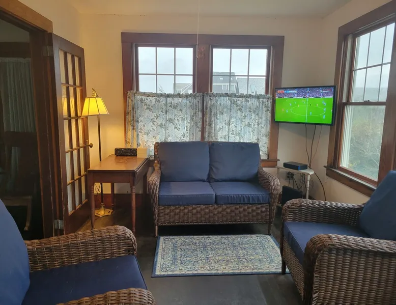 Waterfront cottage located on the dune at East Sandwich Beach. This cottage sleeps 6 with a combined living room-dining room extending the entire front facing Cape Cod Bay with new windows to enjoy your view. Your pet is welcome with prior permission The space Sited right on the dunes of East Sandwich Beach is this vintage cottage with private path to the beach. Waterfront 3 bedroom cottage with an open dining/living area with lots of windows at East Sandwich Beach. Enjoy 150 feet of frontage as the cottage sits on an extra large lot. Full sized bed in one room and 2 twins in each of the other bedrooms. Full kitchen, cable TV and internet. Bathroom has a tub with a hand held shower valve and there is a brand new enclosed outside shower with dressing area. Garage on lot that may be used to store belongings. A pet may be allowed with prior permission. Bedroom 1-Full, Bedroom 2- 2 twins, Bedroom 3- 2 twins Other things to note Sheets and towels are not included and may be brought or rented locally. Look up Dune Tootin linen rentals for pricing.