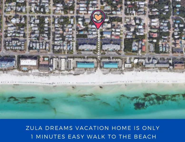 Zula Dreams is a beautiful beach house one minute walk to the white sands of Destin. It features 4 bedrooms and 3 baths and can sleep 16 guests (with queen sleeper in the living room). The beach is literally steps away from our house + we have a private heated pool (with additional fee) in a large fenced backyard and it's close to everything! Smart TVs on all rooms. Free Super Fast WiFi Pool Heating Optional - $50/night. Pets are welcome with a fee - see important info below See more... The space Our beautiful beach house has 4 bedrooms and 3 baths and sleeps 16 guests. The beach is literally steps away from our house. We are the 3rd house from the beach access so it’s not even 1min walk to Pompano public beach access. We welcome any responsible group (additional fees apply if under 25 see below). We are pet friendly! Well behaved Pets are welcome with a $150 pet fee (per pet). If you add the proper amount of pets your total price will reflect the total with everything (other than airbnb fees) including the pet fee. If you plan to bring more than 5, contact us. Our address is 70 Pompano St, Destin FL 32541 We have a beautiful private pool (optional heating with a fee) in our large fenced yard for those times you need a break from the beach. Chaise Lounges, hammock, and a 5 burner gas grill for cookouts (propane provided). Pool can be heated per your request for $50/night x # of nights of your stay (we cannot offer partial stay heating). Pool heating is paid separately after you book - if interested please indicate so in the guests pre-arrival form and we will send you a payment request. Upstairs Kitchen is fully loaded with pots, pans, utilities, blender, toaster, coffee maker and more, ready to prepare yummy meals with a large dining area and breakfast bar seating. A large Florida room with a kitchenette and a bathroom watching over the pool so you don't even have to go into the house for refreshments or a quick break. 60” Smart HD TV and sound system in the living room and Smart HD TV’s in the other rooms. Ready to play? PlayStation 4 with available for your enjoyment. Don't forget to pack your favorite games and blu-rays for some downtime at the house. The kitchen, living room, dining room, Large double level deck, 2 bedrooms and a bathroom are all in the SECOND level of the house. In the main level (where you enter) there are two bedroom, 2 bathrooms, Florida room near the pool with a kitchenette (small fridge, microwave). The Rooms: 1st Bedroom (Upstairs): - King Bed - Shares upstairs hallway bathroom 2nd Bedroom (Upstairs): - King Bed - Shares upstairs hallway bathroom 3rd Bedroom (Downstairs): - King Bed - Shares downstairs hallway bathroom 4th Bedroom (Downstairs): - 2 x Full Over Full bunk beds (sleeps 8) - Shares downstairs hallway bathroom or use pool bathroom 1 Queen sleeper sofa in the living room as an extra bed A pack and play for your tote is also available. We do not provide linens, pillow or blanket for the Pack n Play crib. Bathrooms: One Full Bathroom Upstairs with a tub/shower combo. Two Large bathroom downstairs: Hallway has a soaking tub Florida room one has a walk in shower. Also available: High Speed internet with AC WiFi that even extends into the pool. Smart HD TVs in all rooms. Washer and Dryer. Laundry detergent provided. Beach chairs, beach cart and some beach toys. Front Deck: Beautiful huge deck going out from the living room with swing and rocking chairs and dining table. Second top deck with ocean view. PLEASE NOTE: If the majority of the adult guests are under 25 we require an additional $750 refundable damage deposit paid separately after you book. If everyone are under 21 we do not allow alcohol on the property. We love the beach and we love to host so we bought a beach house in our favorite location and decided to rent it for others to enjoy it while we're not there. We put our hearts into this house to make it beautiful comfortable and fun for every group any time of the year. We are sure you, your family, and friends (even those 4 legged ones) will have a perfect beach vacation. Still have questions? Contact Us! See Our Other Houses on AIRBNB - Click Our Profile Picture for Details. Zula Beach Vacation Homes. Guest access Entire beach house is yours! It is a vacation rental. Other things to note Pool can be heated in the winter for $50xdays of your stay. We are pet friendly! Well behaved Pets are welcome with a $150 pet fee (per pet). If you add the proper amount of pets your total price will reflect the total with everything (other than airbnb fees) including the pet fee. If you plan to bring more than 5, contact us. Super fast internet is available with a killer wireless router to cover the whole house + the pool. We welcome any responsible guests however if the majority of the adult guests are under 25 we require an additional refundable damage deposit paid separately from your booking of $750. If everyone in your group is under 21 we do not allow alcohol on the property. No parties or events are allowed.