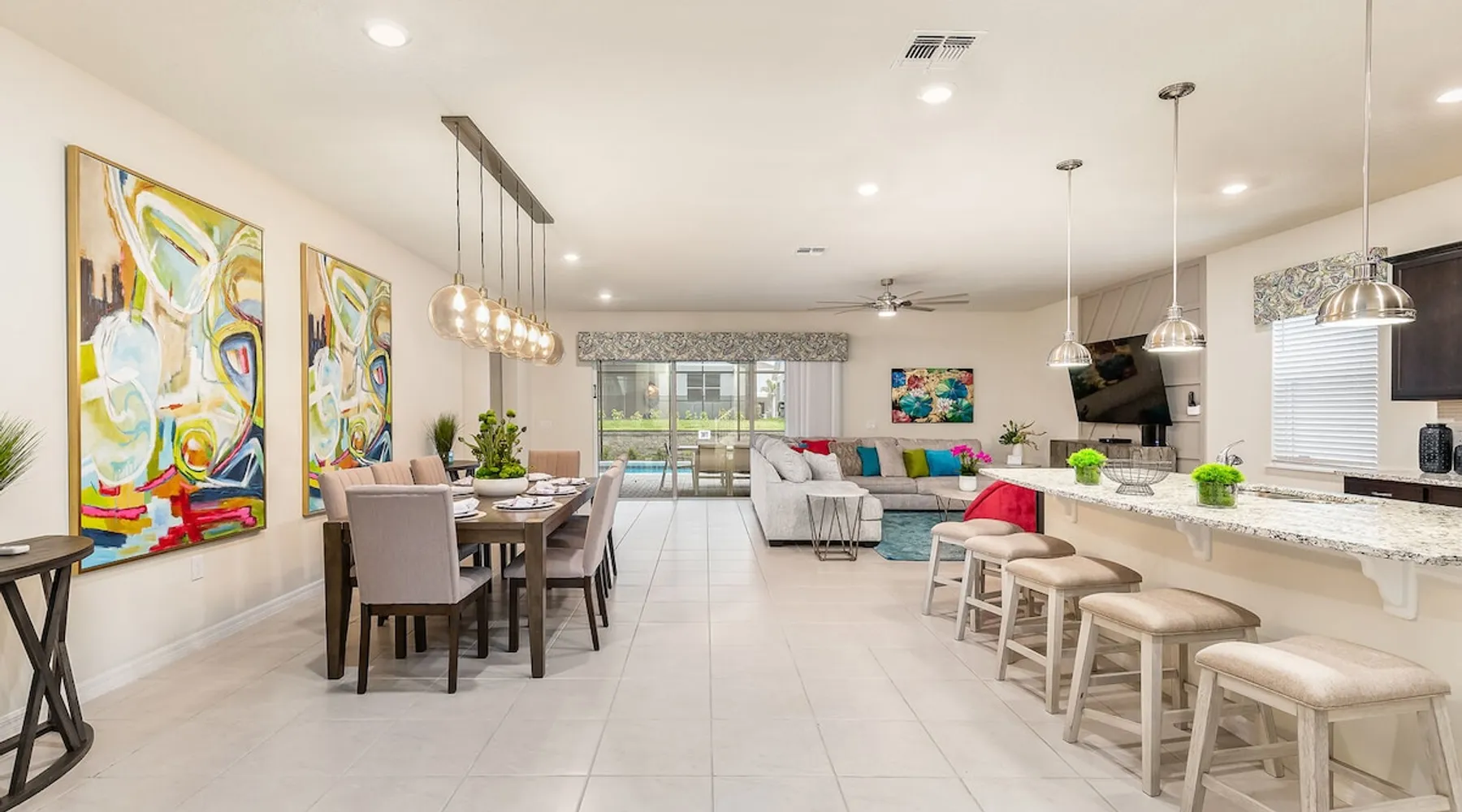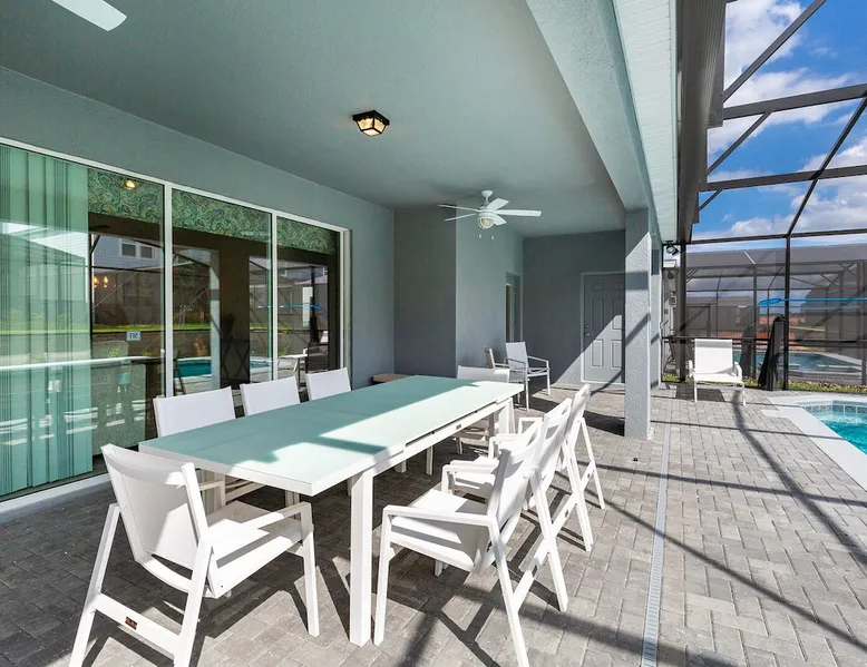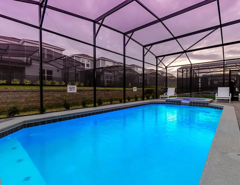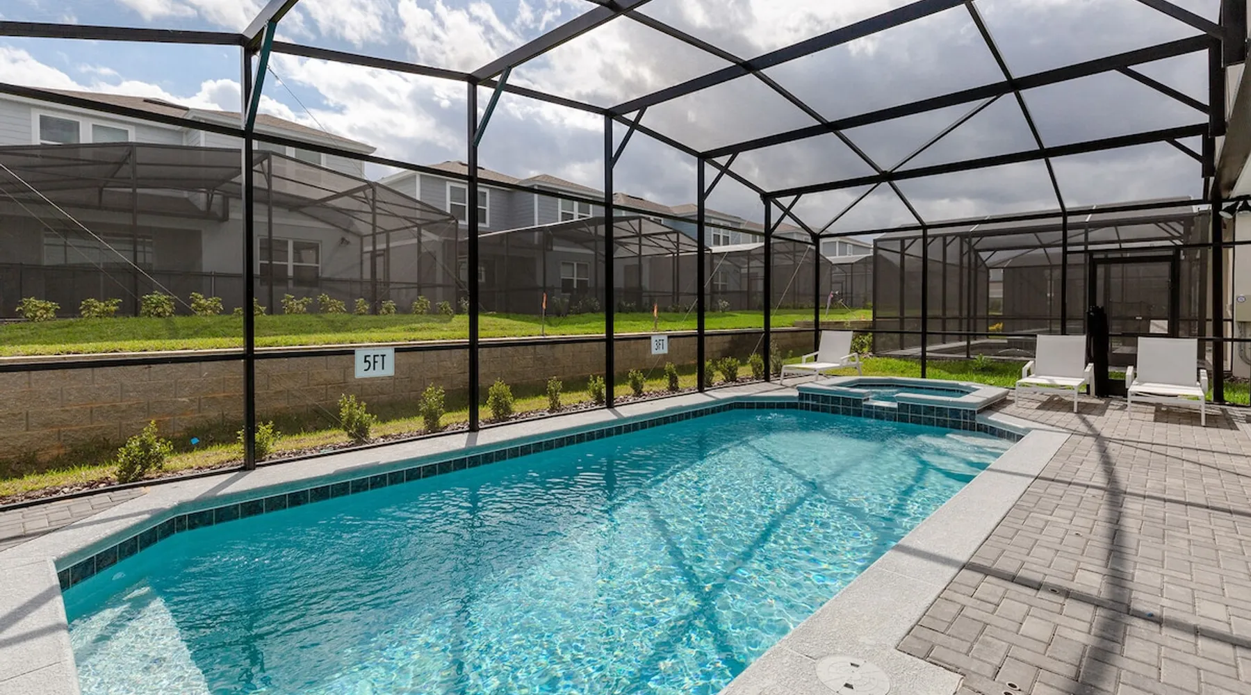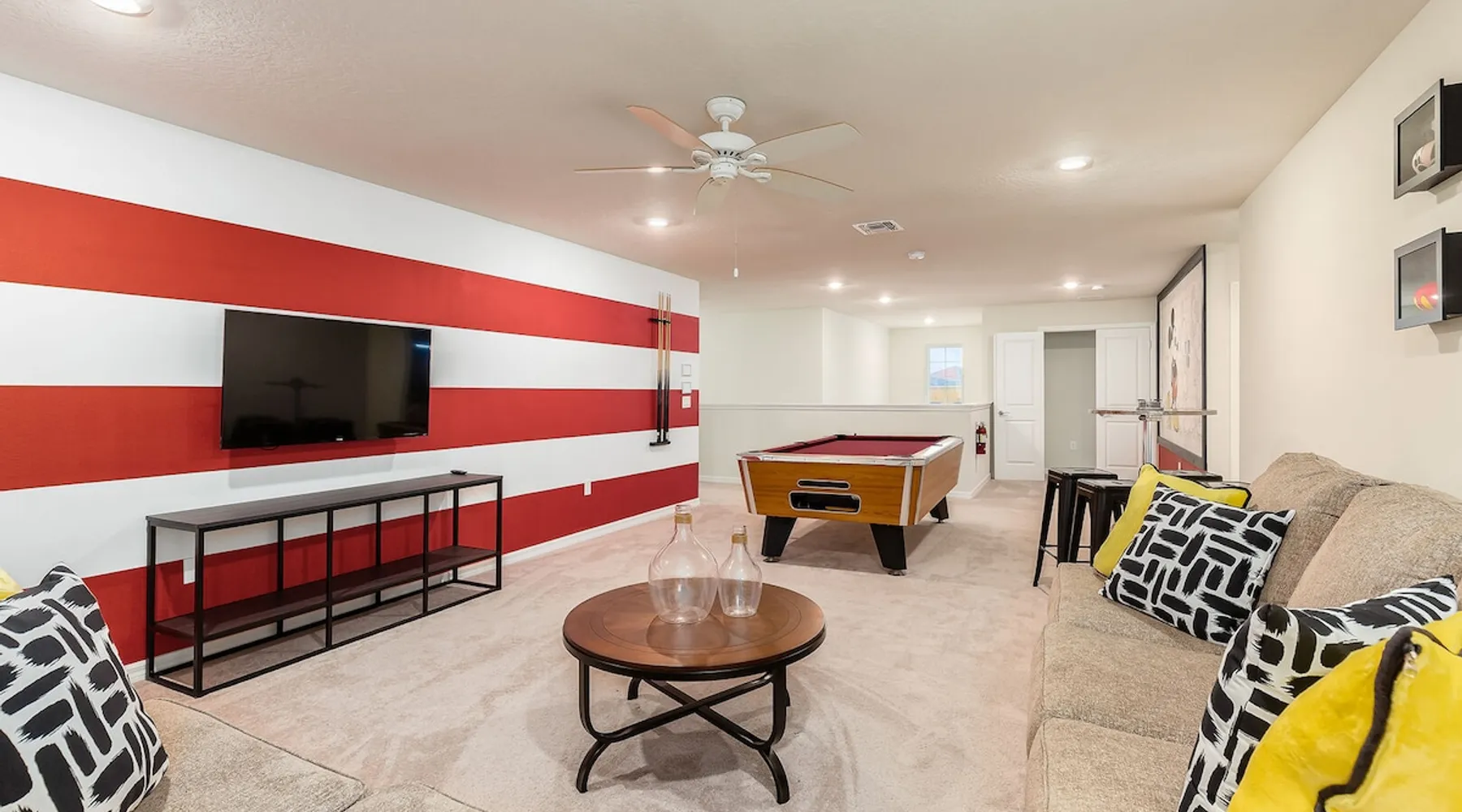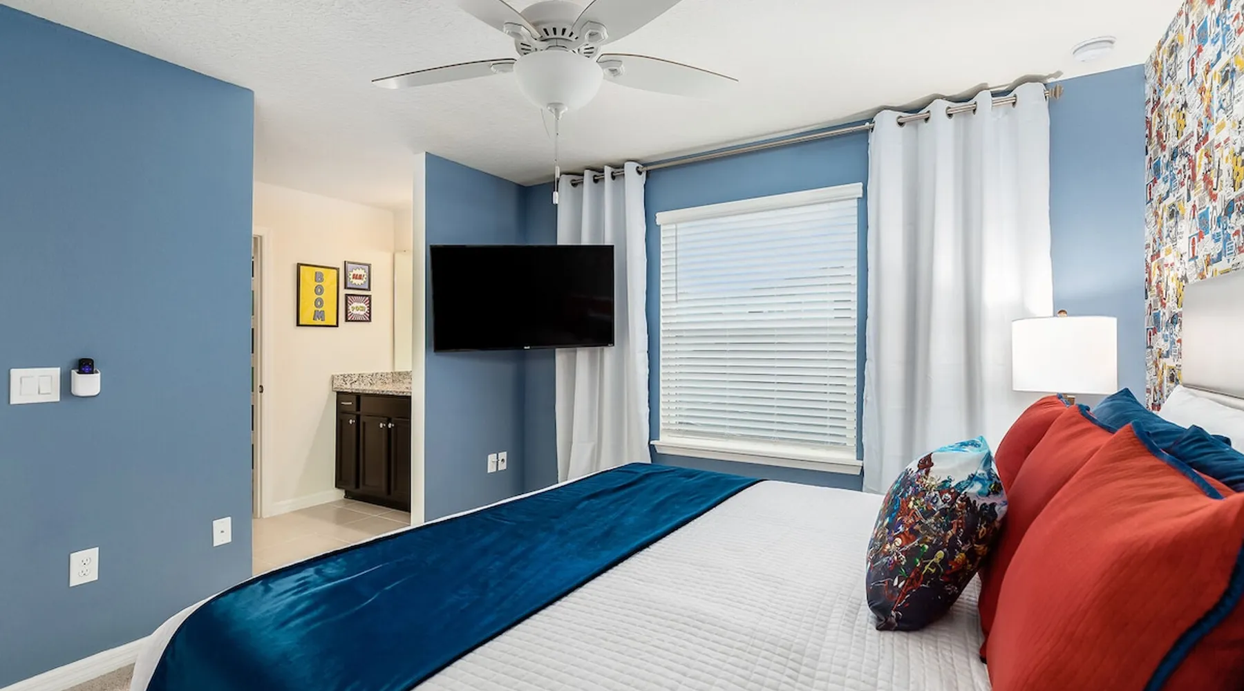 Photos updated: July 2023 Vacation in paradise at Windsor Island Luxury, a 7-bedroom, 6-bath elite villa featuring a game room, loft, custom-built kids rooms, and private screened-in pool situated in Orlando's newest vacation home community, Windsor Island Resort (newly-built, photos coming soon). The space Vacation in paradise at Windsor Island Luxury, an 7-bedroom, 6-bath elite villa featuring a game room, loft, custom-built kids rooms, and private screened-in pool situated in Orlando's newest vacation home community, Windsor Island Resort (newly-built, photos coming soon). Step inside this beautifully-built villa and be greeted by the front foyer that leads to the main area of the home. The fully equipped kitchen features everything you need to create the greatest meals on your magical vacation with kitchen barstool seating for six, perfect for the whole family. Look over to your left and you'll notice a welcoming dining room space. This area offers seating for eight, including two sofa tables and plenty of room for the family to dine at any time of day. The modern-designed gathering room is perfect for lounging after a fun day at the parks with plenty of spacious seating and a 75-inch SMART TV to watch your favorite movies and TV shows on. Don't just admire the view from the living area of your spectacular private screened-in pool deck, become immersed in it as soon as you step past the sliding doors. This modern pool deck comes with the latest furnishings, including an extra-large dining table with room for eight guests. Have a relaxing, well-deserved day by the pool at one of the four sun loungers or two comfy sitting chairs at your leisure. There's even a picnic table for the little ones to enjoy when having a delicious meal by the pool. Head back indoors to discover one of the most thrilling rooms in this home. The first-floor arcade room features some of the most popular arcade games around, like NBA Arcade, Deer Hunter, Basketball Arcade, Dynamo Air Hockey, and many more. Spend time with the family as they challenge one another on these exciting games at the high-top table seating for four, perfect for chowing down on a meal or lounging. For the adults, the upstairs loft features a spacious sectional sofa for lounging and a pub table set with seating for four. Turn on the 75-inch SMART TV for hours of entertainment. Put on your favorite sports team's live game or play your favorite music to enhance the atmosphere. And while the TV plays, test your skills on the pool table amongst your family and friends. There's never a dull moment in this upstairs loft! When it's time to wind down after a day full of fun, choose from one of the seven spacious bedrooms. Choose from the first master suite and bedroom two, both on the first floor, or head upstairs for the rest of the charming bedrooms. Guests even have the option of catching their z's in a superhero-inspired king bedroom, a galaxy-inspired king bedroom, and for the little ones, a mischievous character-inspired room will be the talk of the vacation! All bedrooms come equipped with a 50-inch SMART TV, with the two master bedroom suites featuring a 55-inch SMART TV. A luxury getaway is a lot closer than you think. Experience Orlando's newest vacation home community in style and book your stay at Windsor Island Luxury today! Disclaimer: This is a brand new rental community. Some amenities are still under construction and are not available for use yet.