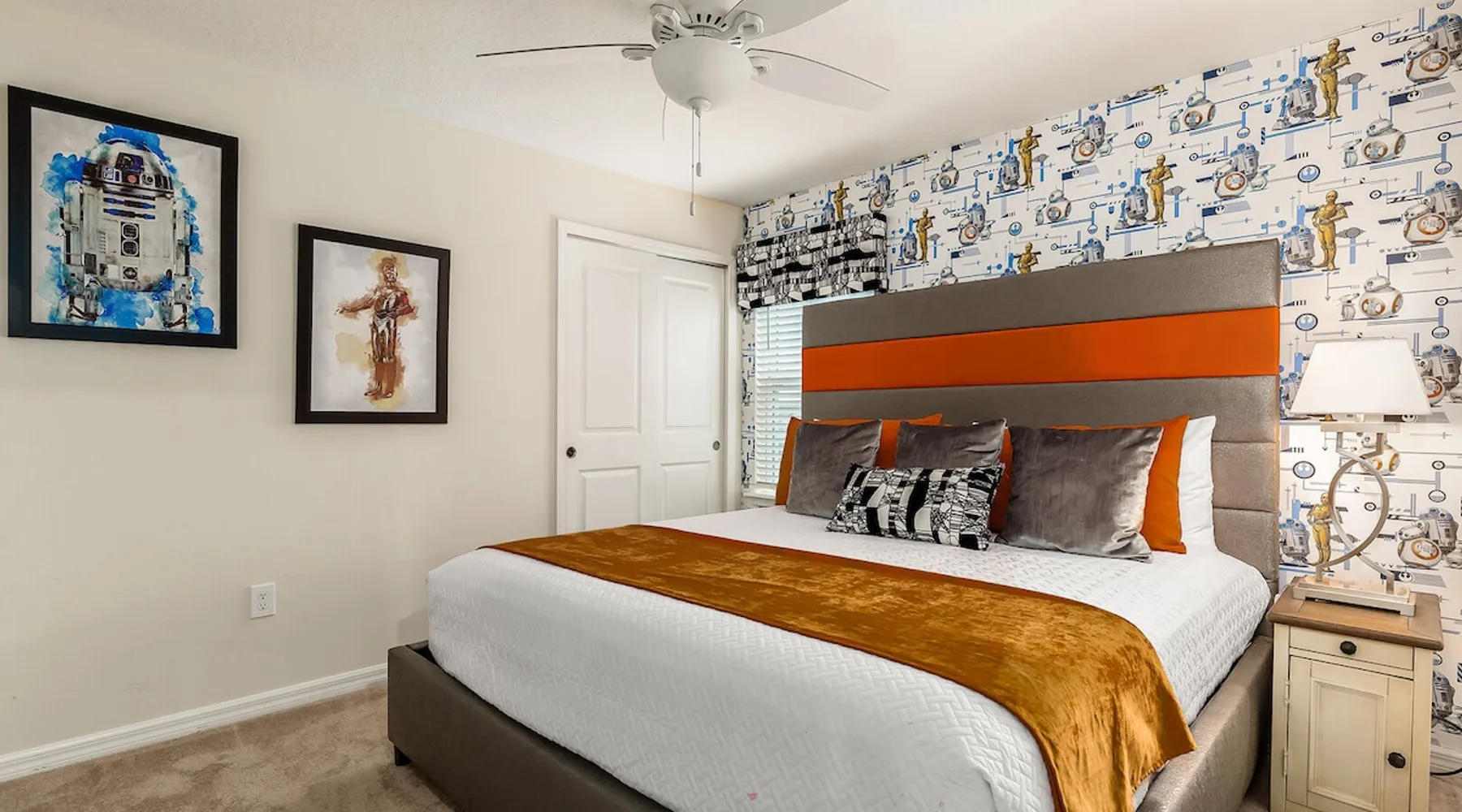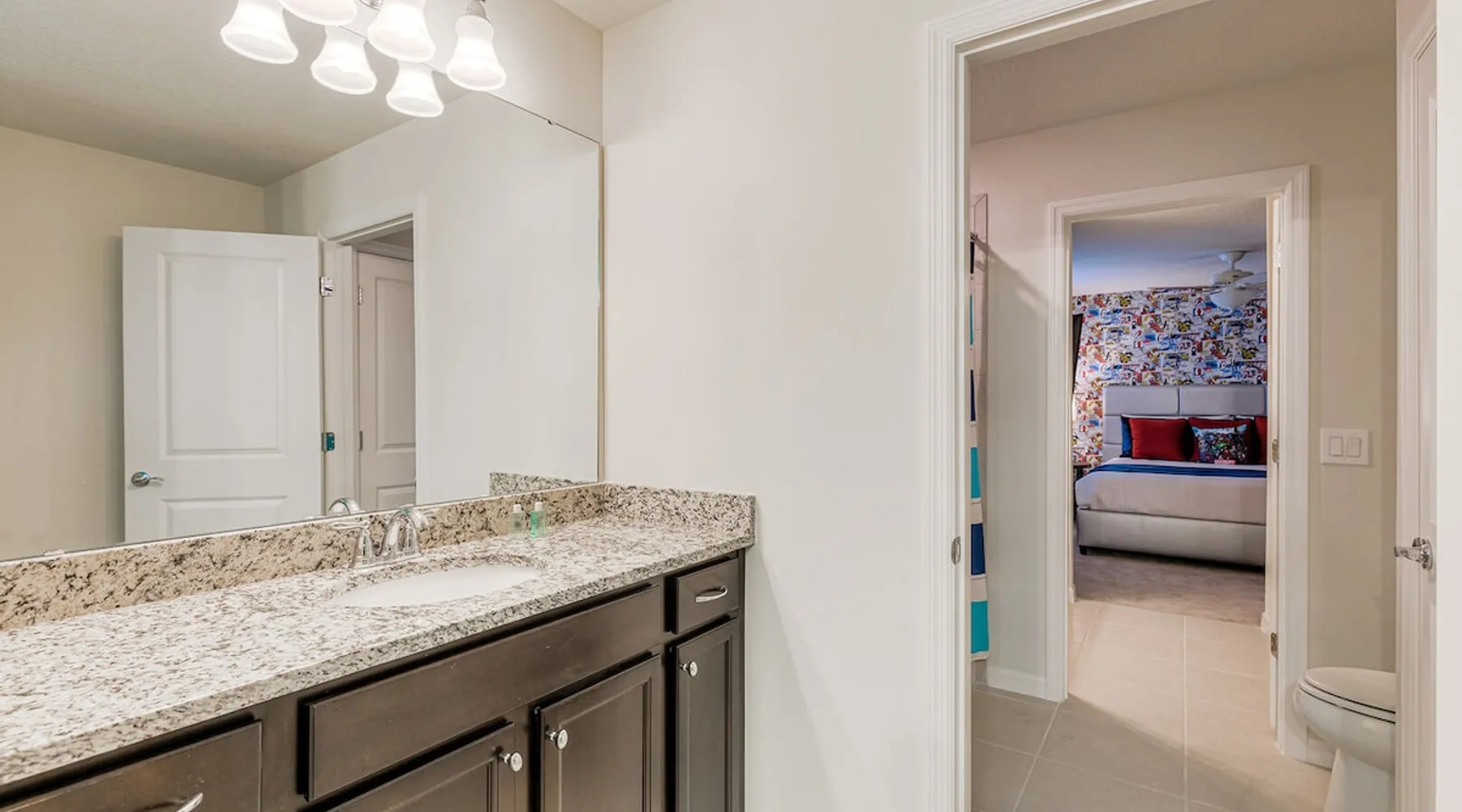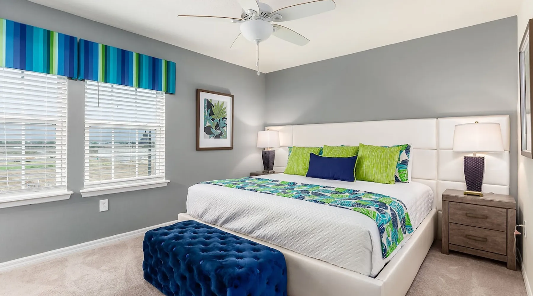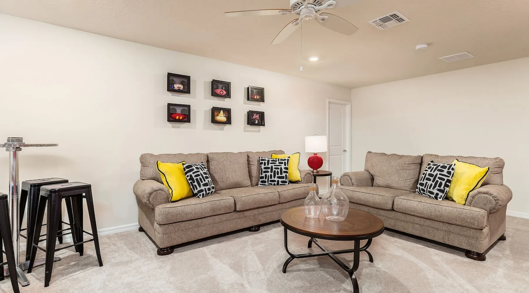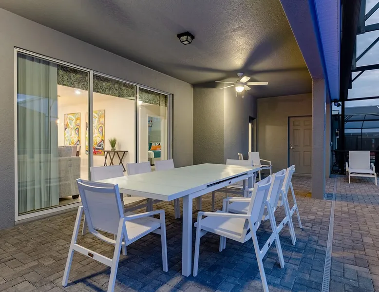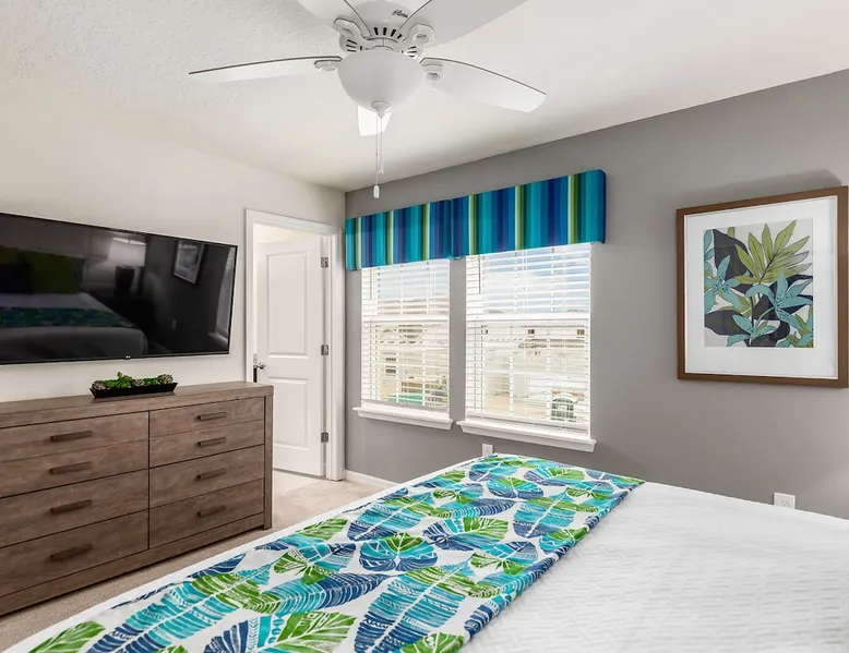 Photos updated: July 2023 Vacation in paradise at Windsor Island Luxury, a 7-bedroom, 6-bath elite villa featuring a game room, loft, custom-built kids rooms, and private screened-in pool situated in Orlando's newest vacation home community, Windsor Island Resort (newly-built, photos coming soon). The space Vacation in paradise at Windsor Island Luxury, an 7-bedroom, 6-bath elite villa featuring a game room, loft, custom-built kids rooms, and private screened-in pool situated in Orlando's newest vacation home community, Windsor Island Resort (newly-built, photos coming soon). Step inside this beautifully-built villa and be greeted by the front foyer that leads to the main area of the home. The fully equipped kitchen features everything you need to create the greatest meals on your magical vacation with kitchen barstool seating for six, perfect for the whole family. Look over to your left and you'll notice a welcoming dining room space. This area offers seating for eight, including two sofa tables and plenty of room for the family to dine at any time of day. The modern-designed gathering room is perfect for lounging after a fun day at the parks with plenty of spacious seating and a 75-inch SMART TV to watch your favorite movies and TV shows on. Don't just admire the view from the living area of your spectacular private screened-in pool deck, become immersed in it as soon as you step past the sliding doors. This modern pool deck comes with the latest furnishings, including an extra-large dining table with room for eight guests. Have a relaxing, well-deserved day by the pool at one of the four sun loungers or two comfy sitting chairs at your leisure. There's even a picnic table for the little ones to enjoy when having a delicious meal by the pool. Head back indoors to discover one of the most thrilling rooms in this home. The first-floor arcade room features some of the most popular arcade games around, like NBA Arcade, Deer Hunter, Basketball Arcade, Dynamo Air Hockey, and many more. Spend time with the family as they challenge one another on these exciting games at the high-top table seating for four, perfect for chowing down on a meal or lounging. For the adults, the upstairs loft features a spacious sectional sofa for lounging and a pub table set with seating for four. Turn on the 75-inch SMART TV for hours of entertainment. Put on your favorite sports team's live game or play your favorite music to enhance the atmosphere. And while the TV plays, test your skills on the pool table amongst your family and friends. There's never a dull moment in this upstairs loft! When it's time to wind down after a day full of fun, choose from one of the seven spacious bedrooms. Choose from the first master suite and bedroom two, both on the first floor, or head upstairs for the rest of the charming bedrooms. Guests even have the option of catching their z's in a superhero-inspired king bedroom, a galaxy-inspired king bedroom, and for the little ones, a mischievous character-inspired room will be the talk of the vacation! All bedrooms come equipped with a 50-inch SMART TV, with the two master bedroom suites featuring a 55-inch SMART TV. A luxury getaway is a lot closer than you think. Experience Orlando's newest vacation home community in style and book your stay at Windsor Island Luxury today! Disclaimer: This is a brand new rental community. Some amenities are still under construction and are not available for use yet.