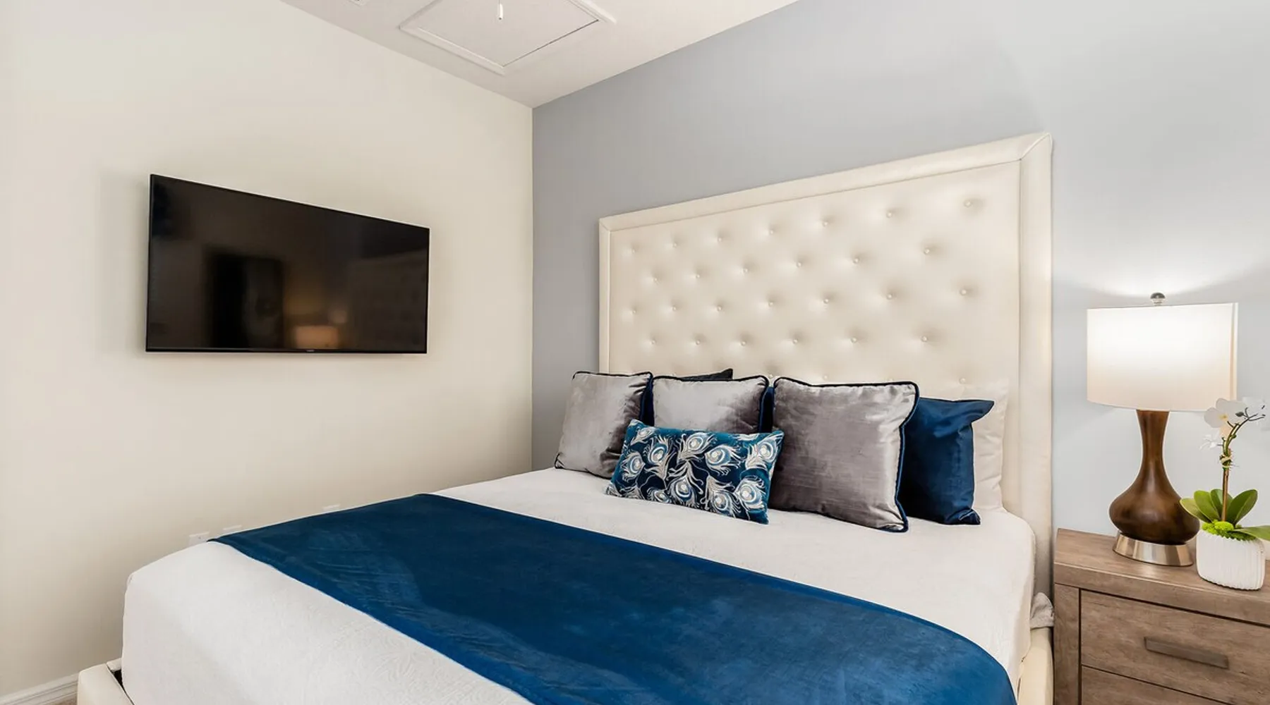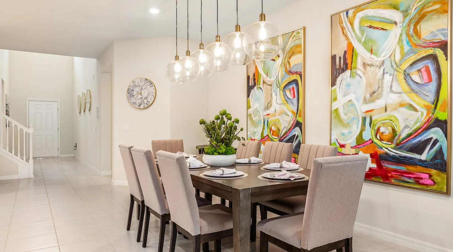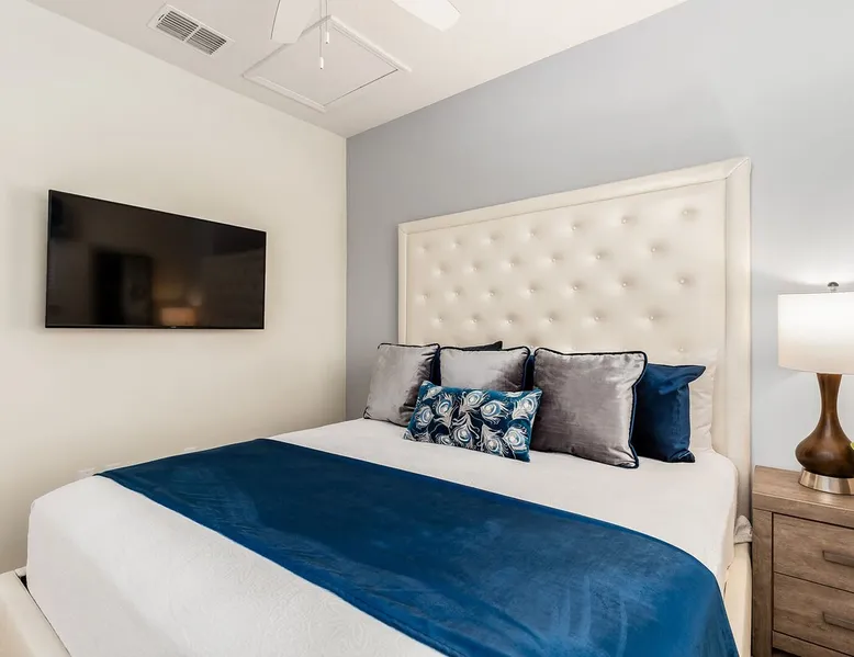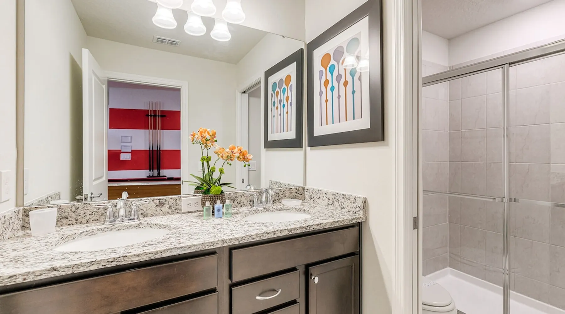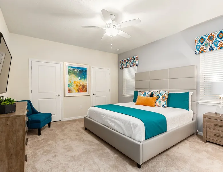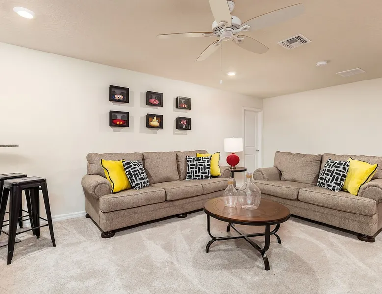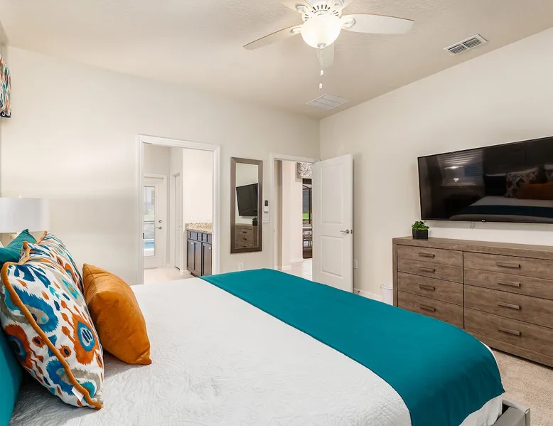 Photos updated: July 2023 Vacation in paradise at Windsor Island Luxury, a 7-bedroom, 6-bath elite villa featuring a game room, loft, custom-built kids rooms, and private screened-in pool situated in Orlando's newest vacation home community, Windsor Island Resort (newly-built, photos coming soon). The space Vacation in paradise at Windsor Island Luxury, an 7-bedroom, 6-bath elite villa featuring a game room, loft, custom-built kids rooms, and private screened-in pool situated in Orlando's newest vacation home community, Windsor Island Resort (newly-built, photos coming soon). Step inside this beautifully-built villa and be greeted by the front foyer that leads to the main area of the home. The fully equipped kitchen features everything you need to create the greatest meals on your magical vacation with kitchen barstool seating for six, perfect for the whole family. Look over to your left and you'll notice a welcoming dining room space. This area offers seating for eight, including two sofa tables and plenty of room for the family to dine at any time of day. The modern-designed gathering room is perfect for lounging after a fun day at the parks with plenty of spacious seating and a 75-inch SMART TV to watch your favorite movies and TV shows on. Don't just admire the view from the living area of your spectacular private screened-in pool deck, become immersed in it as soon as you step past the sliding doors. This modern pool deck comes with the latest furnishings, including an extra-large dining table with room for eight guests. Have a relaxing, well-deserved day by the pool at one of the four sun loungers or two comfy sitting chairs at your leisure. There's even a picnic table for the little ones to enjoy when having a delicious meal by the pool. Head back indoors to discover one of the most thrilling rooms in this home. The first-floor arcade room features some of the most popular arcade games around, like NBA Arcade, Deer Hunter, Basketball Arcade, Dynamo Air Hockey, and many more. Spend time with the family as they challenge one another on these exciting games at the high-top table seating for four, perfect for chowing down on a meal or lounging. For the adults, the upstairs loft features a spacious sectional sofa for lounging and a pub table set with seating for four. Turn on the 75-inch SMART TV for hours of entertainment. Put on your favorite sports team's live game or play your favorite music to enhance the atmosphere. And while the TV plays, test your skills on the pool table amongst your family and friends. There's never a dull moment in this upstairs loft! When it's time to wind down after a day full of fun, choose from one of the seven spacious bedrooms. Choose from the first master suite and bedroom two, both on the first floor, or head upstairs for the rest of the charming bedrooms. Guests even have the option of catching their z's in a superhero-inspired king bedroom, a galaxy-inspired king bedroom, and for the little ones, a mischievous character-inspired room will be the talk of the vacation! All bedrooms come equipped with a 50-inch SMART TV, with the two master bedroom suites featuring a 55-inch SMART TV. A luxury getaway is a lot closer than you think. Experience Orlando's newest vacation home community in style and book your stay at Windsor Island Luxury today! Disclaimer: This is a brand new rental community. Some amenities are still under construction and are not available for use yet.