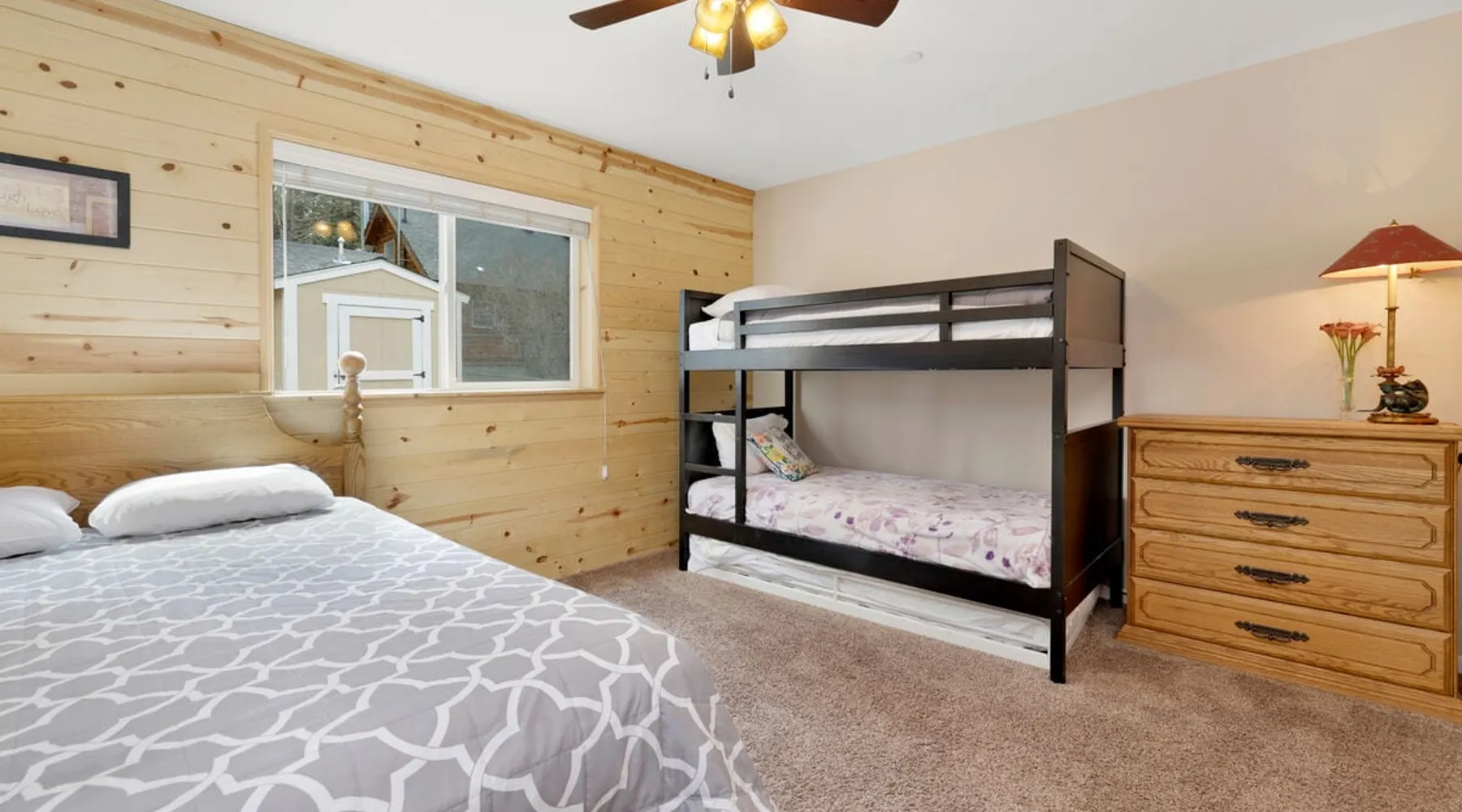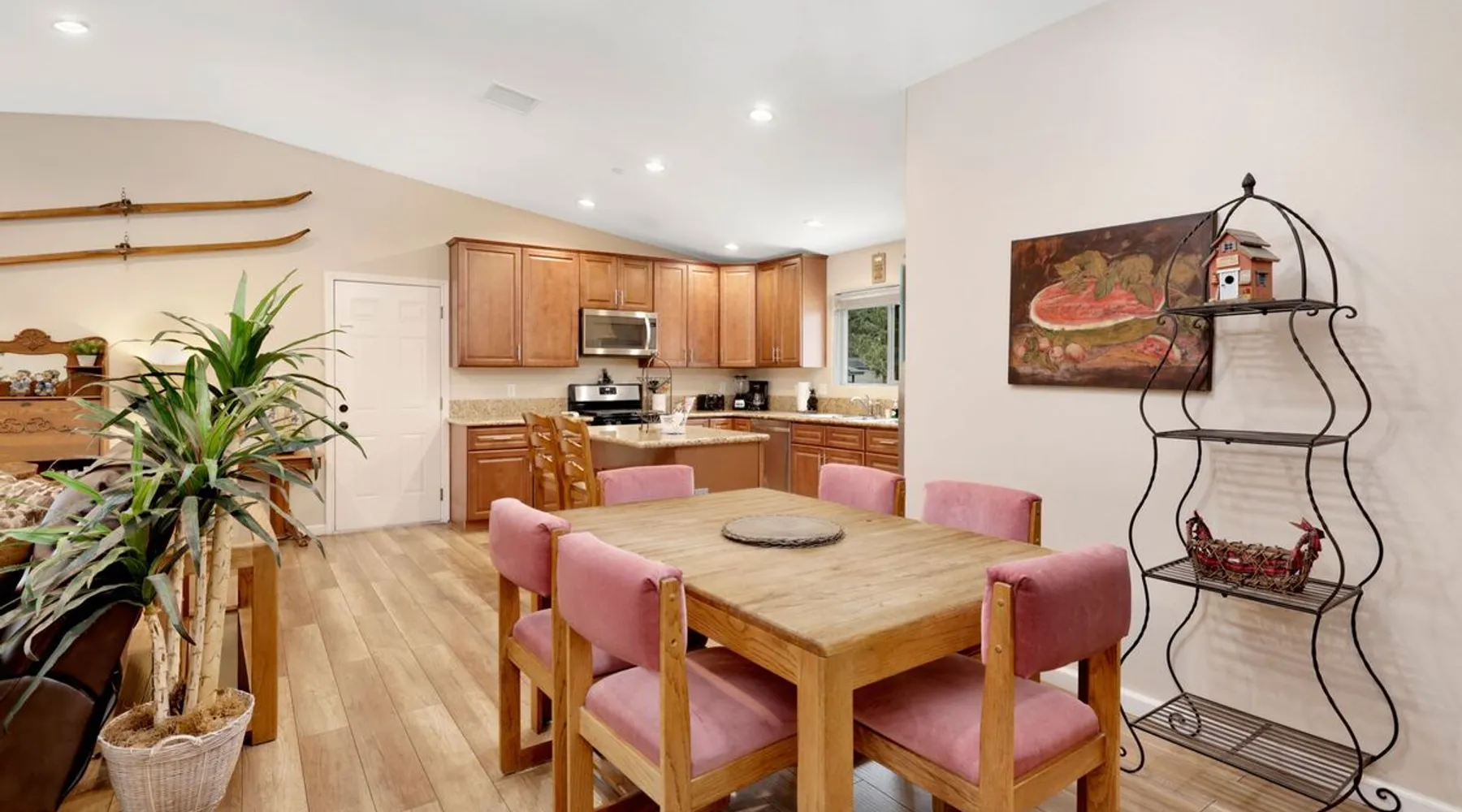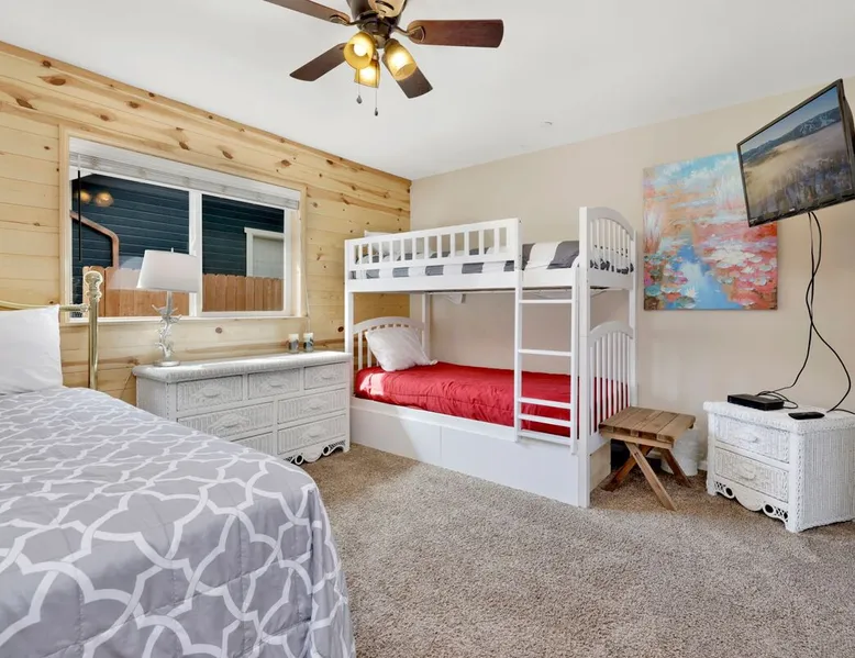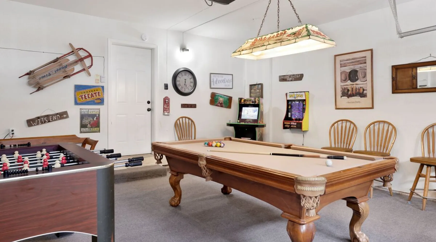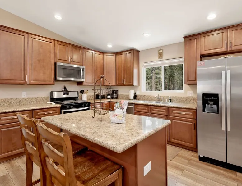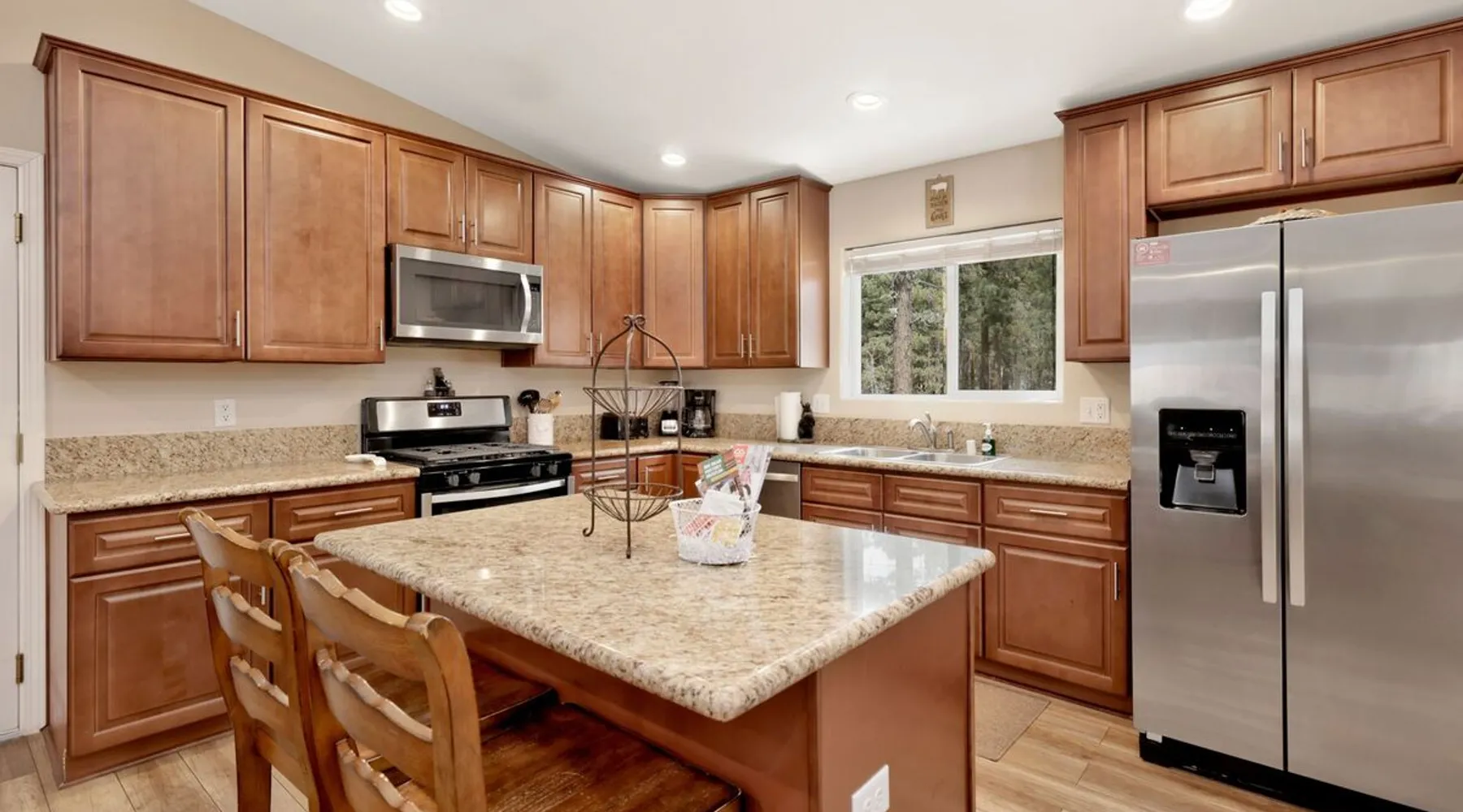 Kit Kat's Hideaway- Central Retreat w/ Hot Tub & Games Welcome to Kit Kat's Hideaway. Our spacious chalet offers the best of Big Bear right at your fingertips paired with the comforts from home and is the perfect setting for a group getaway, family vacation, or couple's trip to the mountains any time of the year. Located within a short stroll to the lake, local parks, or even the Village this getaway chalet offers a prime central location just minutes from activities and adventure. The space Being a single level retreat the open floor plan is perfect for entertaining and staying connected to your group boasting a warm and inviting living room, equipped chef's kitchen and dining area, plus a game room garage packed with hours of entertainment right here at the cabin. Snuggle up on the cozy couch together and warm your toes in front of the toasty fireplace or pop on a movie on the flat screen TV with Cable available. The game room garage is where you'll spend most of your time playing games on the pool table, foosball table, or arcade game- this chalet truly has it all! Venture outside to the great outdoors where you have a relaxing forested oasis all to yourself within the private fully fenced backyard. Relax on the hammock and ready your favorite book or soak up the sun on the cute sun deck, complete with patio furnishings and a propane BBQ grill. Unwind and soak those muscles as you search for shooting stars in your own private hot tub under the pines- you will love spending your evenings here after a fun day out on the mountain. Come experience your new home away from home here at Kit Kat's Hideaway today! Sleeping Arrangements: Bedroom 1: Queen Bed + Twin/Twin Bunk Bed, TV/Cable Bedroom 2: Queen Bed + Twin/Twin Bunk Bed Bedroom 3: Primary Suite: King Bed + Futon, TV/Cable, Private Full Bath, Deck Access Bathroom Arrangements: Hallway Full Bath- Private Full Bath- Bedroom 3 -Sleeps 8 -2 Cars Driveway, 1 Car Garage Parking -2 Pets Welcome w/ Additional Fees -2,145 Square Feet City Permit #: VRR-2024-1473 Registration Details 2024-1473