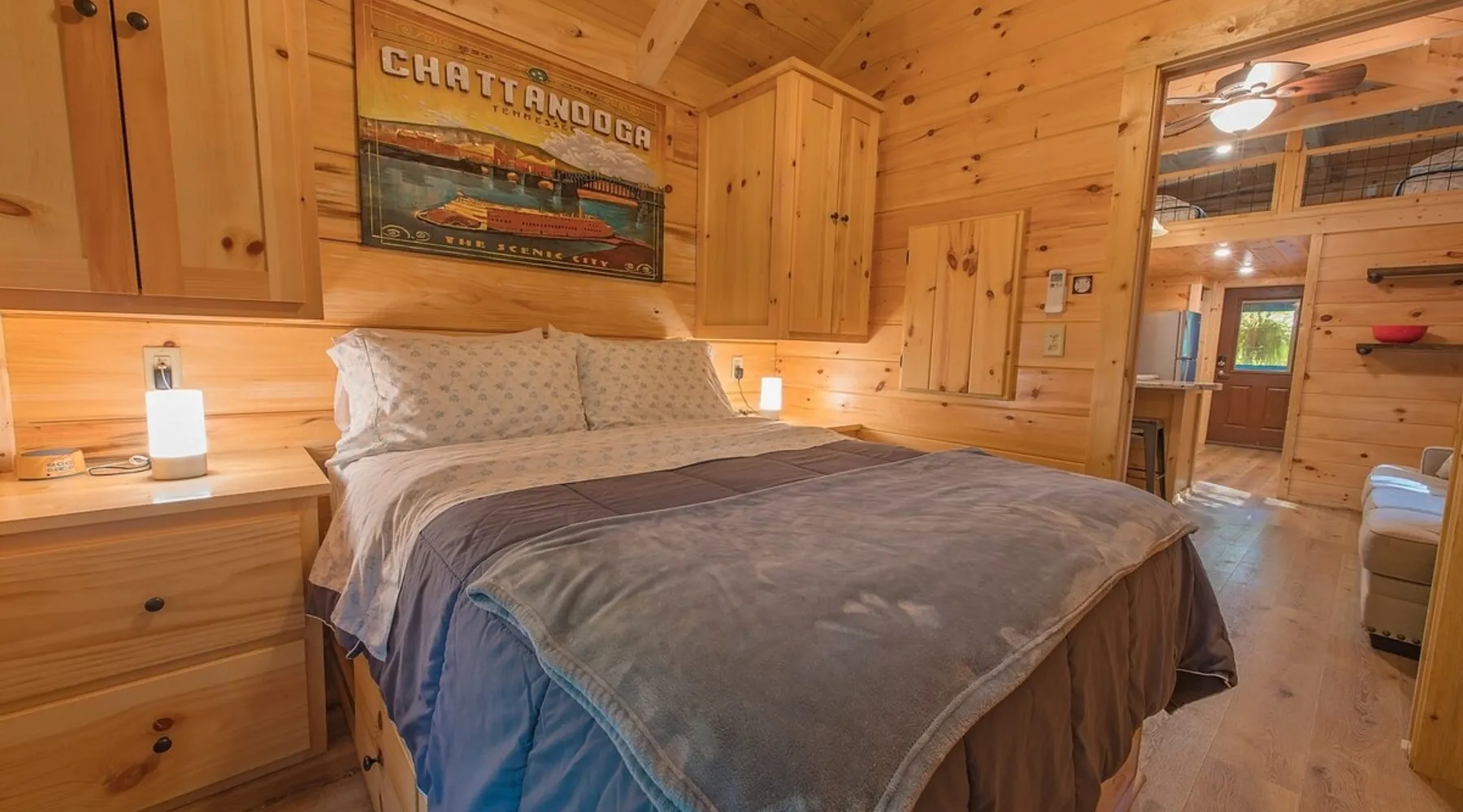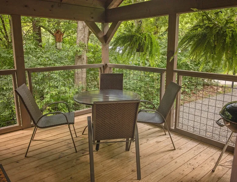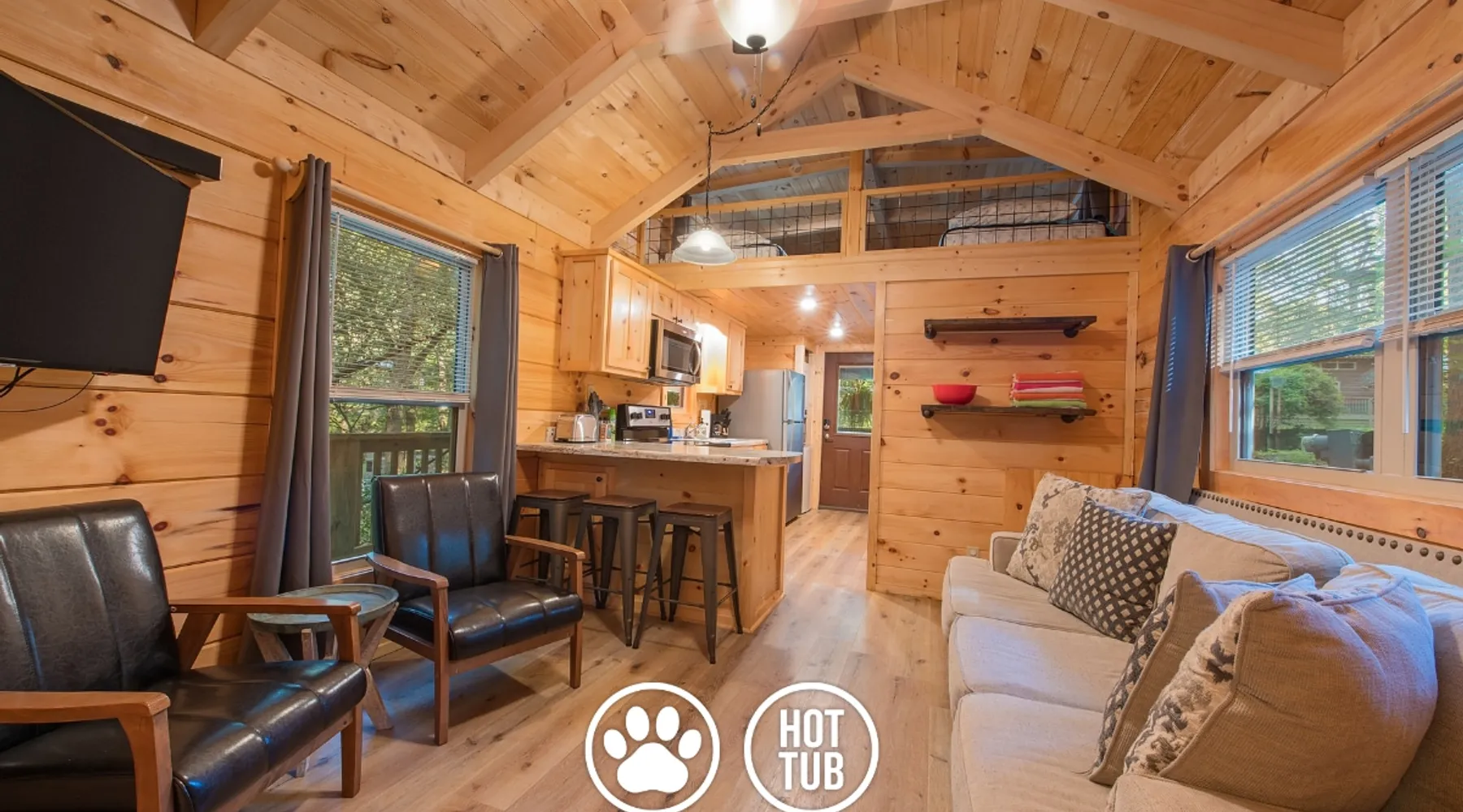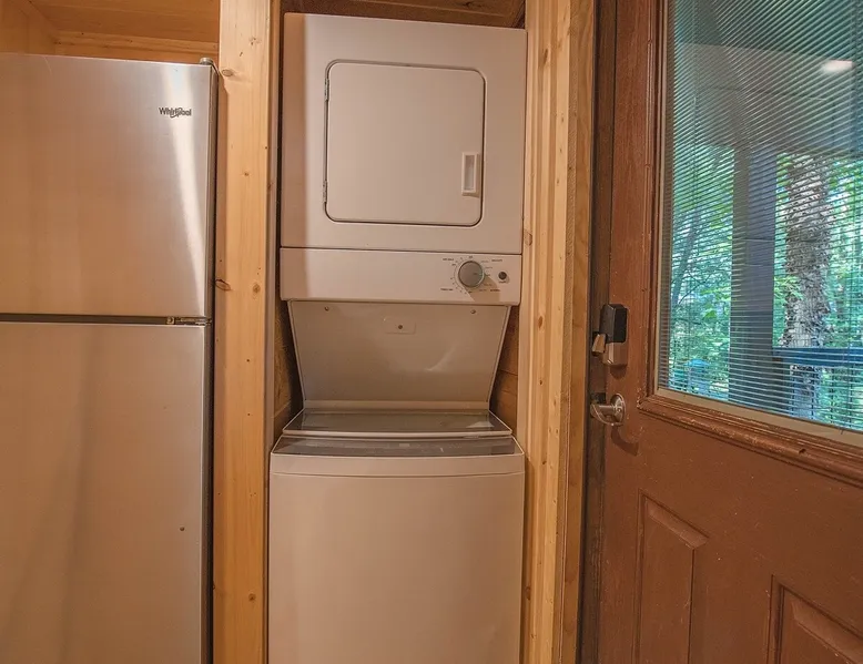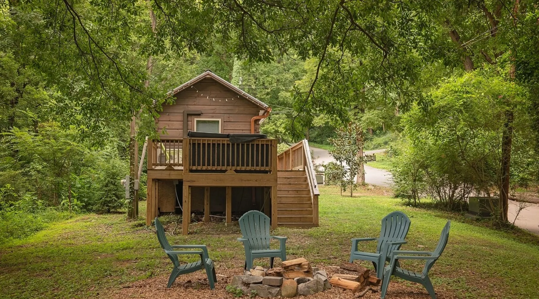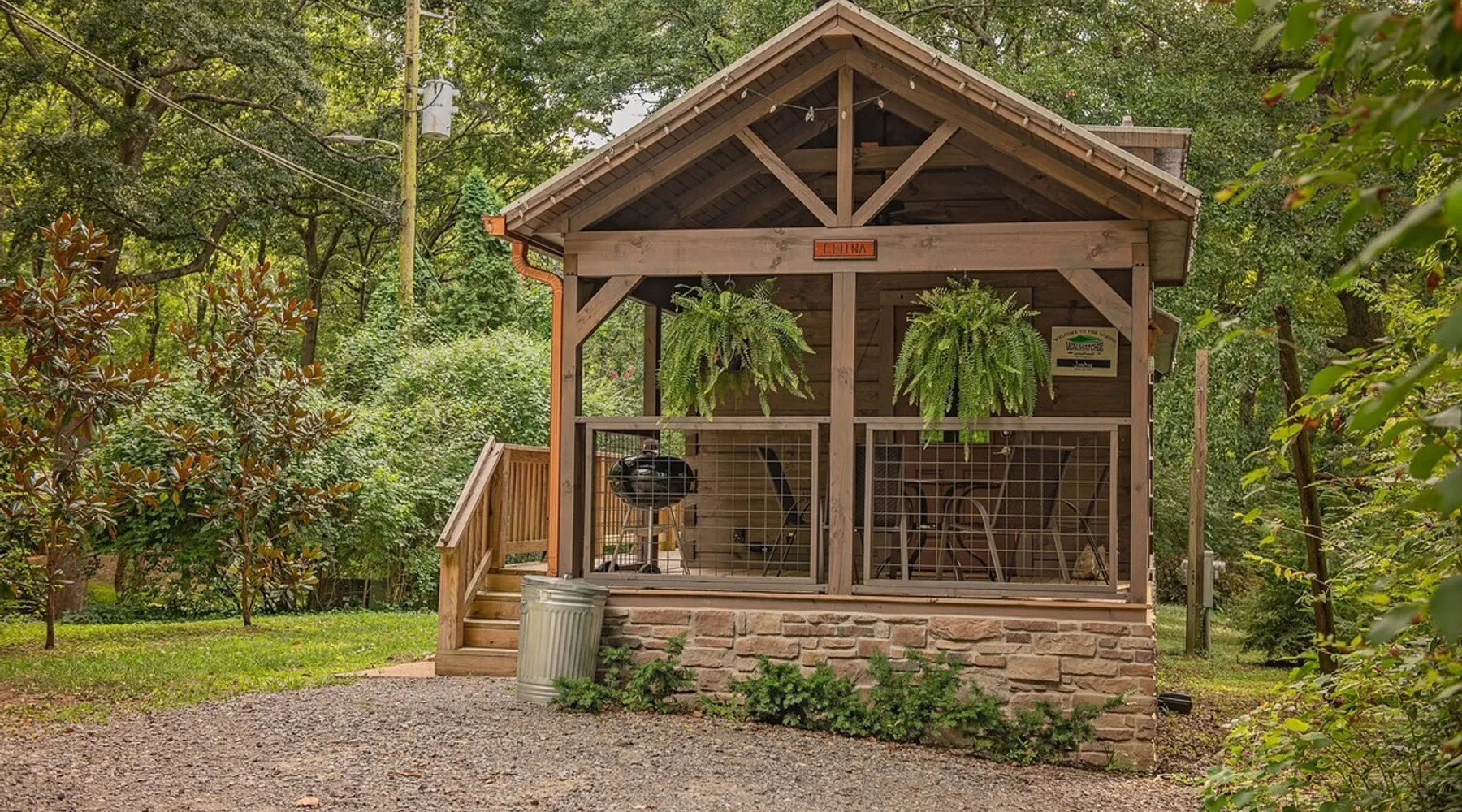Only 5 minutes from downtown Chattanooga, Celina offers a private hot tub, a furnished back deck, a covered front deck with a charcoal grill, and a shared fire pit. It can comfortably accommodate up to 4 guests, with a main bedroom and a sleeping loft. The space Wauhatchie Woodlands is a family-owned collection of quaint, tiny-home, rustic-comfort log cabins on a 14-acre wooded property surrounded by National Park land. This natural setting is nested less than a mile from the city with quick access to downtown Chattanooga, Ruby Falls, Lookout Mountain, and the surrounding area. Named after Frank & Nicole's German host-daughter, Celina is equipped with everything you could ever need to make the most of your time in Chattanooga. Celina is one of our delightful rustic cabins. During your stay, you’ll enjoy a private hot tub, furnished back deck, covered front with charcoal grill, shared fire pit, and an incredibly memorable, charming space surrounded by nature. Celina can comfortably sleep up to 4 guests between the main bedroom and sleeping loft. The cabin is equipped with a full kitchen, smart TV, private washer dryer combo, & more. Starting from the back, you’ll find the fully furnished deck, surrounded by decades-old trees, there awaits a space of pure relaxation, your private hot tub, with easy access to the main bedroom. Just off the deck is the shared fire pit and picnic pavilion, perfect for fireside chats and evening s'mores. Firewood can be purchased on-property. Inside, the main bedroom hosts a queen bed, closets for hanging clothes, lots of drawer storage, and a Smart TV. Just outside the bedroom is your dedicated washer and dryer combo unit on one side and the full bathroom with bathtub on the other. A step further we enter the kitchen, fully stocked for cooking/dining with an electric range, microwave, stove, full-size fridge, dishwasher, and all the dishes you need to whip up a vacation feast. The living room and kitchen feature an open floor plan with vaulted ceilings with the main TV across from the sofa. Up the staircase is the sleeping loft equipped with two twin beds. Kids will love having their own space. For grownups, clearance in the loft is low, just 4' - it’s perfect for sleeping, just watch your head when you get up. The cabin’s covered front porch with dining set is the perfect place for a morning cup of coffee, or grilling out on your dedicated charcoal grill (charcoal not include). We are pleased to allow dogs at Celina Cabin, under specific terms and conditions. See our house rules/notes for more information. Chattanooga is a city known for its railroads. There are active train tracks that border the property to the north and I-24 is about half a mile away. Please note that light sleepers may be affected by the ambient city and train noise. Each cabin has been equipped with a white noise machine to help minimize any disturbance. Pack ‘n Play Travel cribs are available upon request. To make sure your stay at Wauhatchie Woodlands is perfect, our locally based Guest Services representatives are on-call from 8 am to 11 pm, seven days a week. Guest access You’ll have your cabin all to yourself during your stay. Wauhatchie Woodlands is a 14-acre property surrounded by National Forest. Guests have access to trails around the grounds, as well as shared pavilions, community fire pits, and playground. Please be respectful of other guests during your stay. Other things to note Trains & Noise: Chattanooga is a city known for its railroads. There are active train tracks that border the property to the north and I-24 is about half a mile away. Please note that light sleepers may be affected by the ambient city and train noise. Each cabin has been equipped with a white noise machine to help minimize any disturbance. Pet Policy: We are pleased to allow dogs at Celina Cabin, under specific terms and conditions. See our house rules/notes for more information. Deposits: Please note that guests under 21 or guests residing in the Greater Chattanooga Metropolitan Area will be charged a $200 refundable deposit subsequent to receiving their booking confirmation. Please review our policy forbidding parties, events and unregistered guests to ensure your stay abides with this policy and does not jeopardize your deposit. No Smoking: Smoking, vaping, and the use of e-cigarettes are prohibited inside Timberroot properties. Refer to the rental agreement to see these policies and the additional fees that occur if you fail to follow them. Pests: We take great care to ensure our properties are free from pests. Our properties are regularly treated by professional pest control and our staff takes preventative measures to keep pests out. However, as our properties are located in wooded areas, it is possible for guests to encounter insects and/or small woodland creatures like mice. If you do encounter an unwelcome pest inside your lodging, please contact our Guest Services team immediately so that our grounds team can address the problem as quickly as possible. We ask that guests help us prevent pests by keeping doors and window screens closed and maintaining proper cleanliness during their stay. By booking with us, you accept that encountering insects and woodland creatures is a possibility and that no refunds will be issued for such instances. Surveillance Cameras: Please note that for your safety, cabins may have a camera located on the front porch, facing outwards monitoring activity in front of the cabin (including driveway and roads).