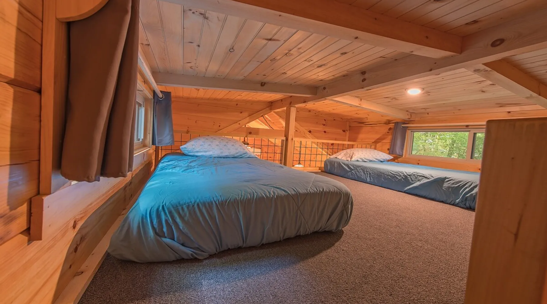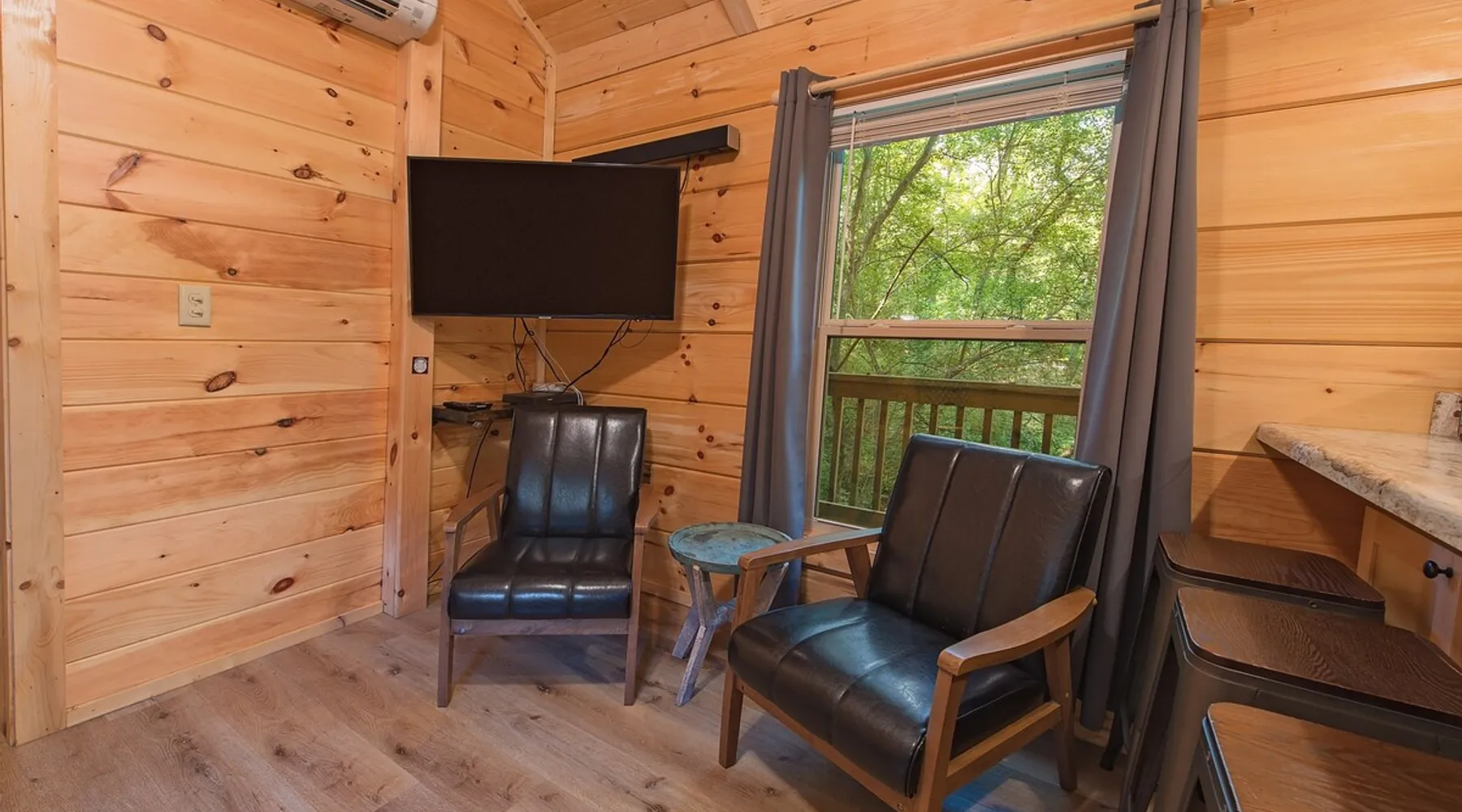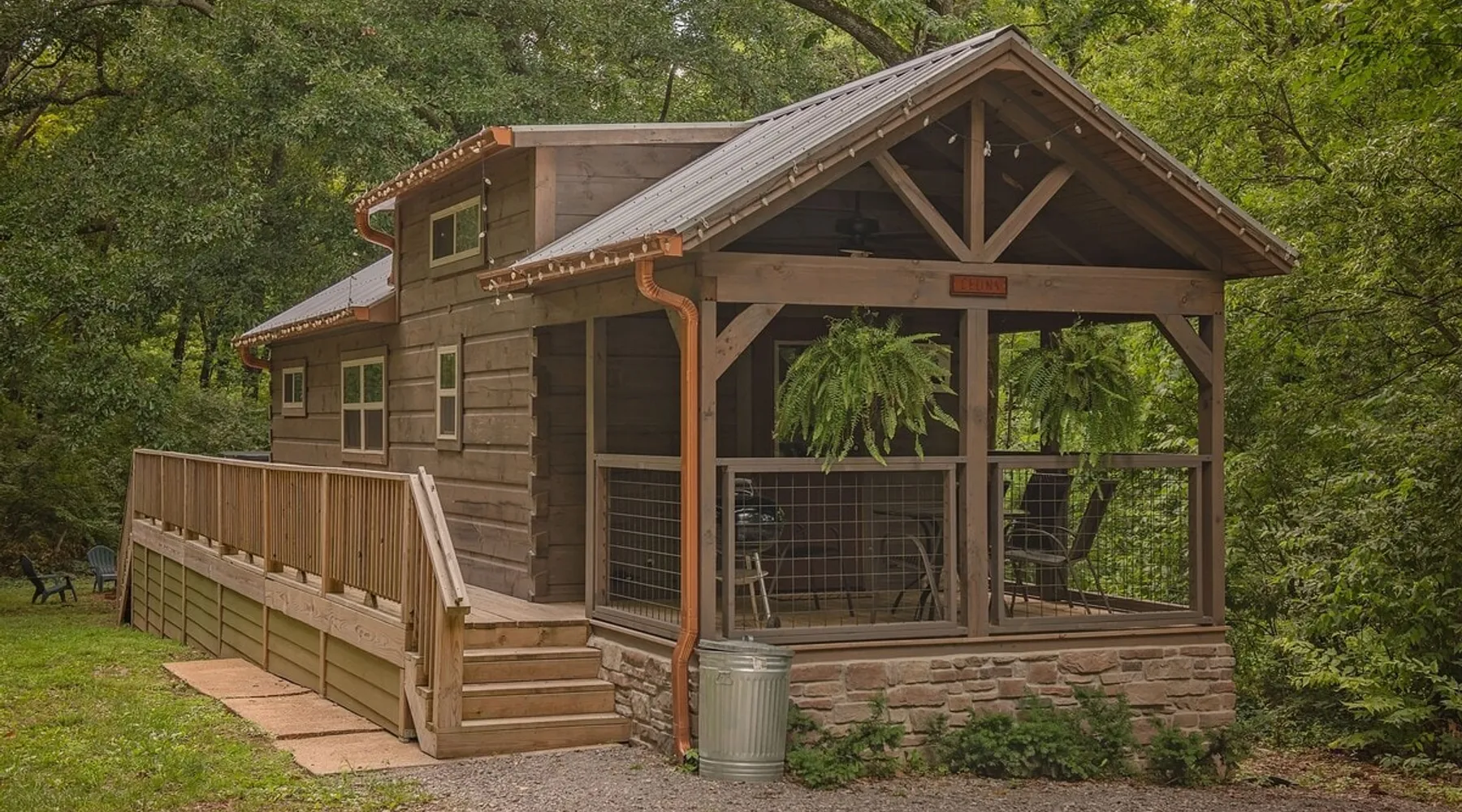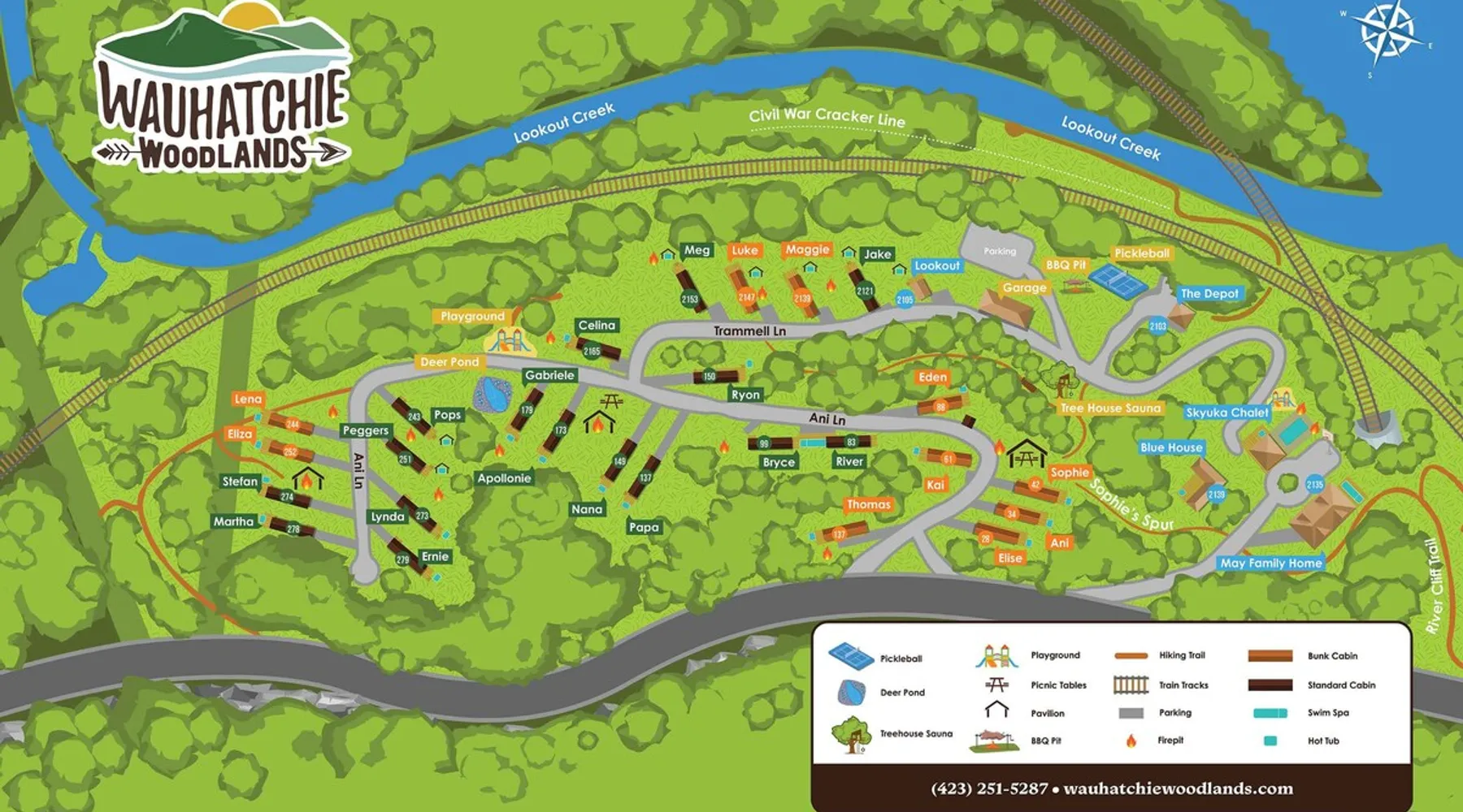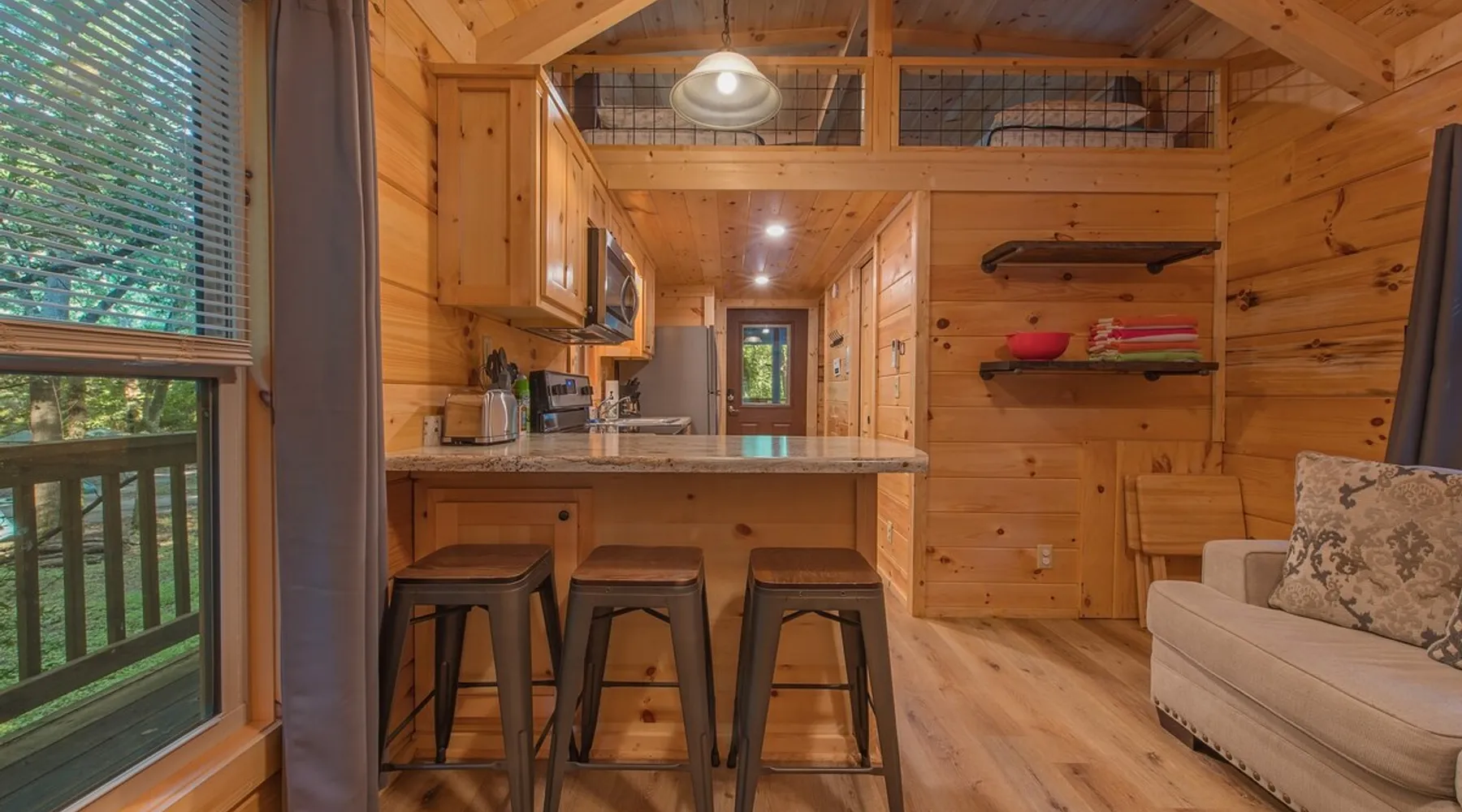 Only 5 minutes from downtown Chattanooga, Celina offers a private hot tub, a furnished back deck, a covered front deck with a charcoal grill, and a shared fire pit. It can comfortably accommodate up to 4 guests, with a main bedroom and a sleeping loft. The space Wauhatchie Woodlands is a family-owned collection of quaint, tiny-home, rustic-comfort log cabins on a 14-acre wooded property surrounded by National Park land. This natural setting is nested less than a mile from the city with quick access to downtown Chattanooga, Ruby Falls, Lookout Mountain, and the surrounding area. Named after Frank & Nicole's German host-daughter, Celina is equipped with everything you could ever need to make the most of your time in Chattanooga. Celina is one of our delightful rustic cabins. During your stay, you’ll enjoy a private hot tub, furnished back deck, covered front with charcoal grill, shared fire pit, and an incredibly memorable, charming space surrounded by nature. Celina can comfortably sleep up to 4 guests between the main bedroom and sleeping loft. The cabin is equipped with a full kitchen, smart TV, private washer dryer combo, & more. Starting from the back, you’ll find the fully furnished deck, surrounded by decades-old trees, there awaits a space of pure relaxation, your private hot tub, with easy access to the main bedroom. Just off the deck is the shared fire pit and picnic pavilion, perfect for fireside chats and evening s'mores. Firewood can be purchased on-property. Inside, the main bedroom hosts a queen bed, closets for hanging clothes, lots of drawer storage, and a Smart TV. Just outside the bedroom is your dedicated washer and dryer combo unit on one side and the full bathroom with bathtub on the other. A step further we enter the kitchen, fully stocked for cooking/dining with an electric range, microwave, stove, full-size fridge, dishwasher, and all the dishes you need to whip up a vacation feast. The living room and kitchen feature an open floor plan with vaulted ceilings with the main TV across from the sofa. Up the staircase is the sleeping loft equipped with two twin beds. Kids will love having their own space. For grownups, clearance in the loft is low, just 4' - it’s perfect for sleeping, just watch your head when you get up. The cabin’s covered front porch with dining set is the perfect place for a morning cup of coffee, or grilling out on your dedicated charcoal grill (charcoal not include). We are pleased to allow dogs at Celina Cabin, under specific terms and conditions. See our house rules/notes for more information. Chattanooga is a city known for its railroads. There are active train tracks that border the property to the north and I-24 is about half a mile away. Please note that light sleepers may be affected by the ambient city and train noise. Each cabin has been equipped with a white noise machine to help minimize any disturbance. Pack ‘n Play Travel cribs are available upon request. To make sure your stay at Wauhatchie Woodlands is perfect, our locally based Guest Services representatives are on-call from 8 am to 11 pm, seven days a week. Guest access You’ll have your cabin all to yourself during your stay. Wauhatchie Woodlands is a 14-acre property surrounded by National Forest. Guests have access to trails around the grounds, as well as shared pavilions, community fire pits, and playground. Please be respectful of other guests during your stay. Other things to note Trains & Noise: Chattanooga is a city known for its railroads. There are active train tracks that border the property to the north and I-24 is about half a mile away. Please note that light sleepers may be affected by the ambient city and train noise. Each cabin has been equipped with a white noise machine to help minimize any disturbance. Pet Policy: We are pleased to allow dogs at Celina Cabin, under specific terms and conditions. See our house rules/notes for more information. Deposits: Please note that guests under 21 or guests residing in the Greater Chattanooga Metropolitan Area will be charged a $200 refundable deposit subsequent to receiving their booking confirmation. Please review our policy forbidding parties, events and unregistered guests to ensure your stay abides with this policy and does not jeopardize your deposit. No Smoking: Smoking, vaping, and the use of e-cigarettes are prohibited inside Timberroot properties. Refer to the rental agreement to see these policies and the additional fees that occur if you fail to follow them. Pests: We take great care to ensure our properties are free from pests. Our properties are regularly treated by professional pest control and our staff takes preventative measures to keep pests out. However, as our properties are located in wooded areas, it is possible for guests to encounter insects and/or small woodland creatures like mice. If you do encounter an unwelcome pest inside your lodging, please contact our Guest Services team immediately so that our grounds team can address the problem as quickly as possible. We ask that guests help us prevent pests by keeping doors and window screens closed and maintaining proper cleanliness during their stay. By booking with us, you accept that encountering insects and woodland creatures is a possibility and that no refunds will be issued for such instances. Surveillance Cameras: Please note that for your safety, cabins may have a camera located on the front porch, facing outwards monitoring activity in front of the cabin (including driveway and roads).