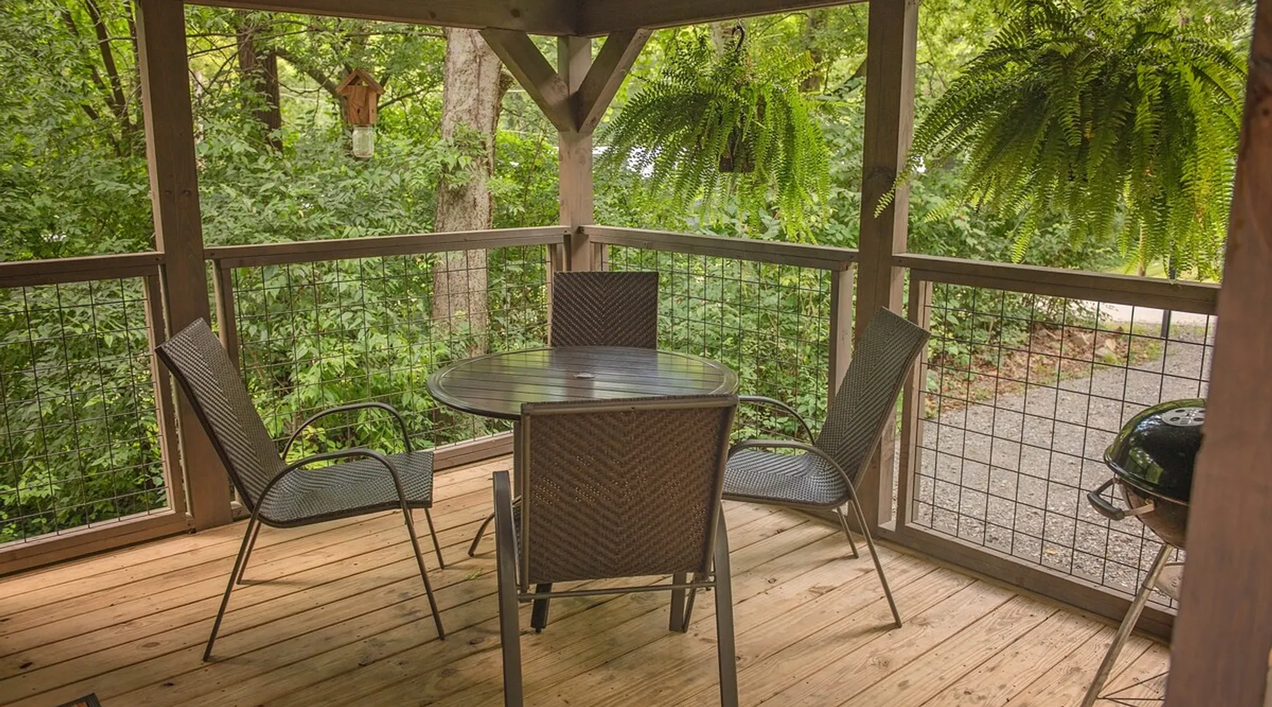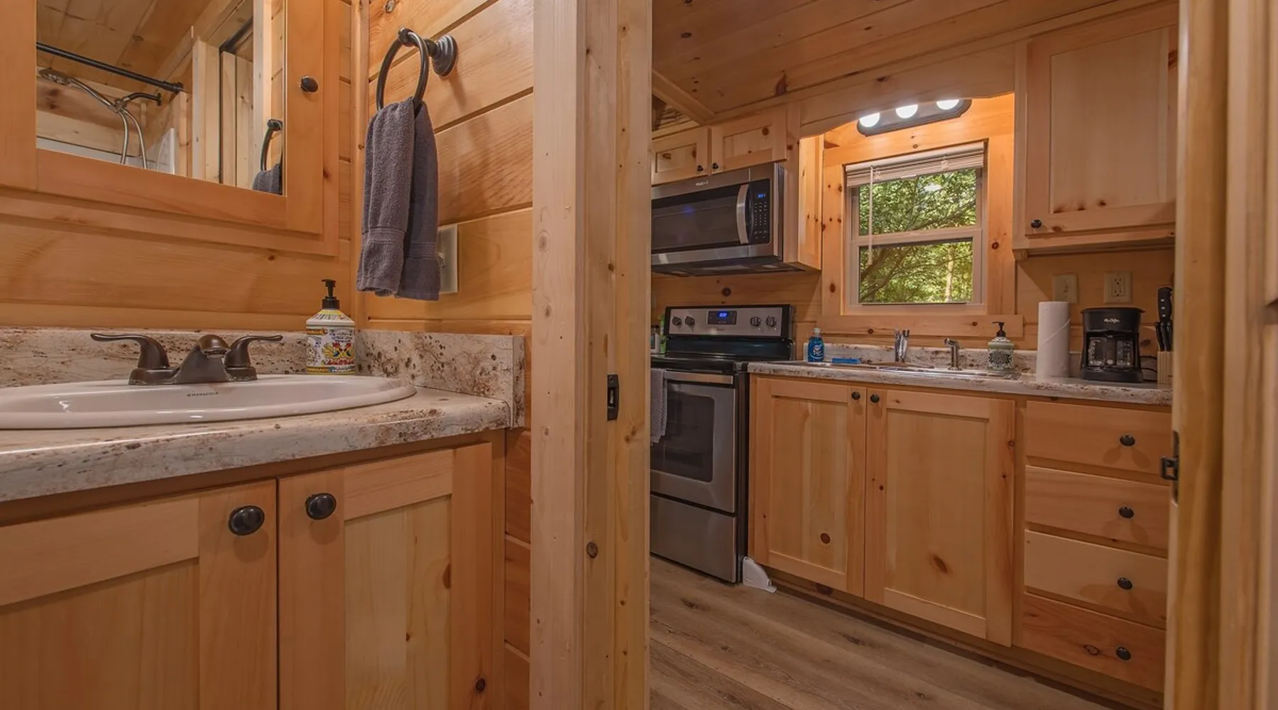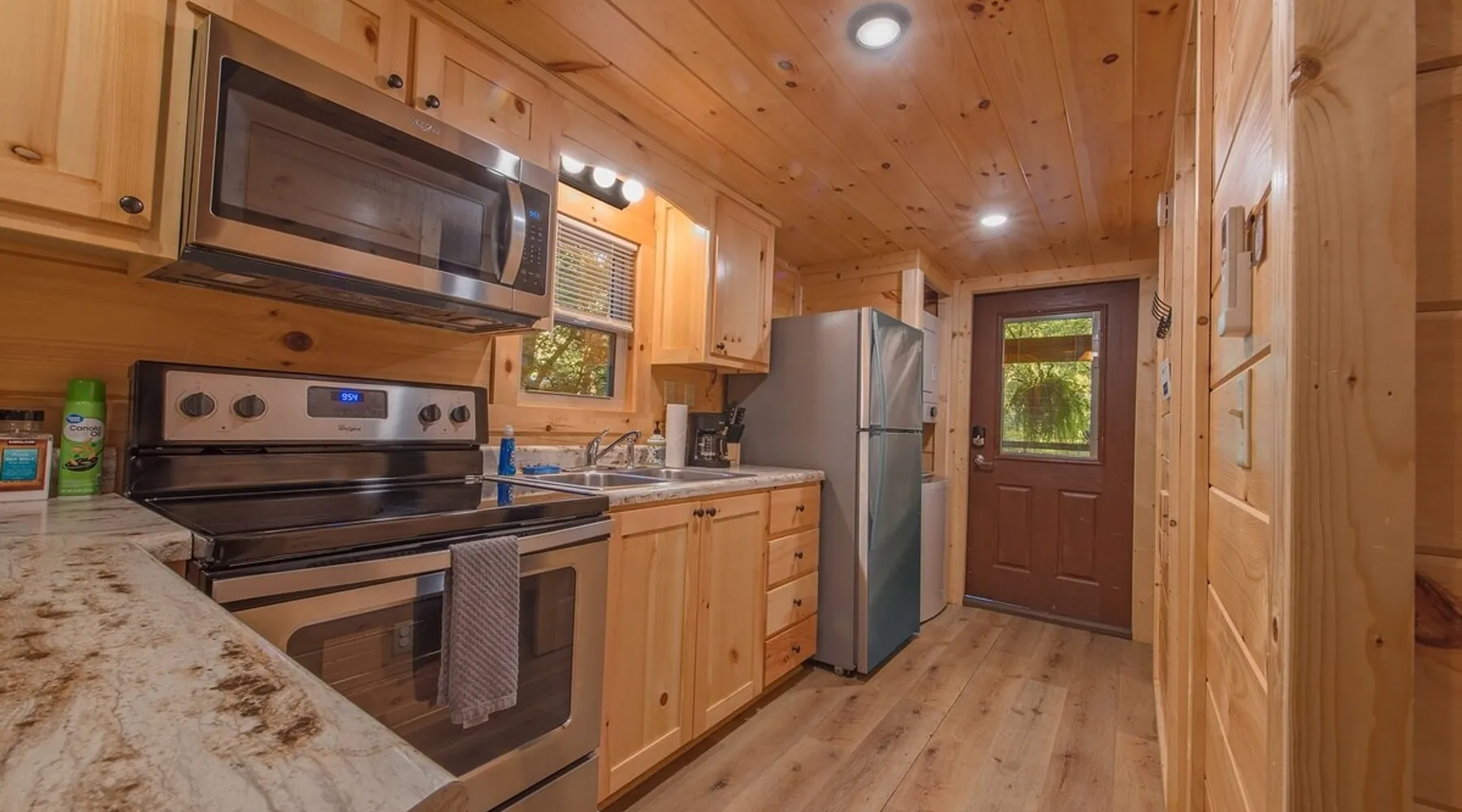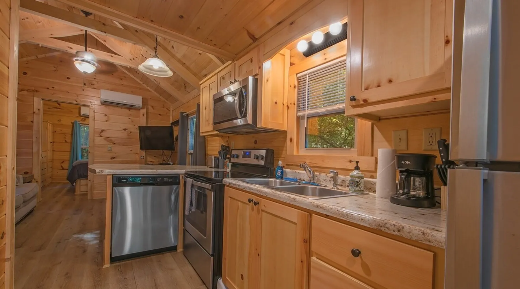 Only 5 minutes from downtown Chattanooga, Celina offers a private hot tub, a furnished back deck, a covered front deck with a charcoal grill, and a shared fire pit. It can comfortably accommodate up to 4 guests, with a main bedroom and a sleeping loft. The space Wauhatchie Woodlands is a family-owned collection of quaint, tiny-home, rustic-comfort log cabins on a 14-acre wooded property surrounded by National Park land. This natural setting is nested less than a mile from the city with quick access to downtown Chattanooga, Ruby Falls, Lookout Mountain, and the surrounding area. Named after Frank & Nicole's German host-daughter, Celina is equipped with everything you could ever need to make the most of your time in Chattanooga. Celina is one of our delightful rustic cabins. During your stay, you’ll enjoy a private hot tub, furnished back deck, covered front with charcoal grill, shared fire pit, and an incredibly memorable, charming space surrounded by nature. Celina can comfortably sleep up to 4 guests between the main bedroom and sleeping loft. The cabin is equipped with a full kitchen, smart TV, private washer dryer combo, & more. Starting from the back, you’ll find the fully furnished deck, surrounded by decades-old trees, there awaits a space of pure relaxation, your private hot tub, with easy access to the main bedroom. Just off the deck is the shared fire pit and picnic pavilion, perfect for fireside chats and evening s'mores. Firewood can be purchased on-property. Inside, the main bedroom hosts a queen bed, closets for hanging clothes, lots of drawer storage, and a Smart TV. Just outside the bedroom is your dedicated washer and dryer combo unit on one side and the full bathroom with bathtub on the other. A step further we enter the kitchen, fully stocked for cooking/dining with an electric range, microwave, stove, full-size fridge, dishwasher, and all the dishes you need to whip up a vacation feast. The living room and kitchen feature an open floor plan with vaulted ceilings with the main TV across from the sofa. Up the staircase is the sleeping loft equipped with two twin beds. Kids will love having their own space. For grownups, clearance in the loft is low, just 4' - it’s perfect for sleeping, just watch your head when you get up. The cabin’s covered front porch with dining set is the perfect place for a morning cup of coffee, or grilling out on your dedicated charcoal grill (charcoal not include). We are pleased to allow dogs at Celina Cabin, under specific terms and conditions. See our house rules/notes for more information. Chattanooga is a city known for its railroads. There are active train tracks that border the property to the north and I-24 is about half a mile away. Please note that light sleepers may be affected by the ambient city and train noise. Each cabin has been equipped with a white noise machine to help minimize any disturbance. Pack ‘n Play Travel cribs are available upon request. To make sure your stay at Wauhatchie Woodlands is perfect, our locally based Guest Services representatives are on-call from 8 am to 11 pm, seven days a week. Guest access You’ll have your cabin all to yourself during your stay. Wauhatchie Woodlands is a 14-acre property surrounded by National Forest. Guests have access to trails around the grounds, as well as shared pavilions, community fire pits, and playground. Please be respectful of other guests during your stay. Other things to note Trains & Noise: Chattanooga is a city known for its railroads. There are active train tracks that border the property to the north and I-24 is about half a mile away. Please note that light sleepers may be affected by the ambient city and train noise. Each cabin has been equipped with a white noise machine to help minimize any disturbance. Pet Policy: We are pleased to allow dogs at Celina Cabin, under specific terms and conditions. See our house rules/notes for more information. Deposits: Please note that guests under 21 or guests residing in the Greater Chattanooga Metropolitan Area will be charged a $200 refundable deposit subsequent to receiving their booking confirmation. Please review our policy forbidding parties, events and unregistered guests to ensure your stay abides with this policy and does not jeopardize your deposit. No Smoking: Smoking, vaping, and the use of e-cigarettes are prohibited inside Timberroot properties. Refer to the rental agreement to see these policies and the additional fees that occur if you fail to follow them. Pests: We take great care to ensure our properties are free from pests. Our properties are regularly treated by professional pest control and our staff takes preventative measures to keep pests out. However, as our properties are located in wooded areas, it is possible for guests to encounter insects and/or small woodland creatures like mice. If you do encounter an unwelcome pest inside your lodging, please contact our Guest Services team immediately so that our grounds team can address the problem as quickly as possible. We ask that guests help us prevent pests by keeping doors and window screens closed and maintaining proper cleanliness during their stay. By booking with us, you accept that encountering insects and woodland creatures is a possibility and that no refunds will be issued for such instances. Surveillance Cameras: Please note that for your safety, cabins may have a camera located on the front porch, facing outwards monitoring activity in front of the cabin (including driveway and roads).