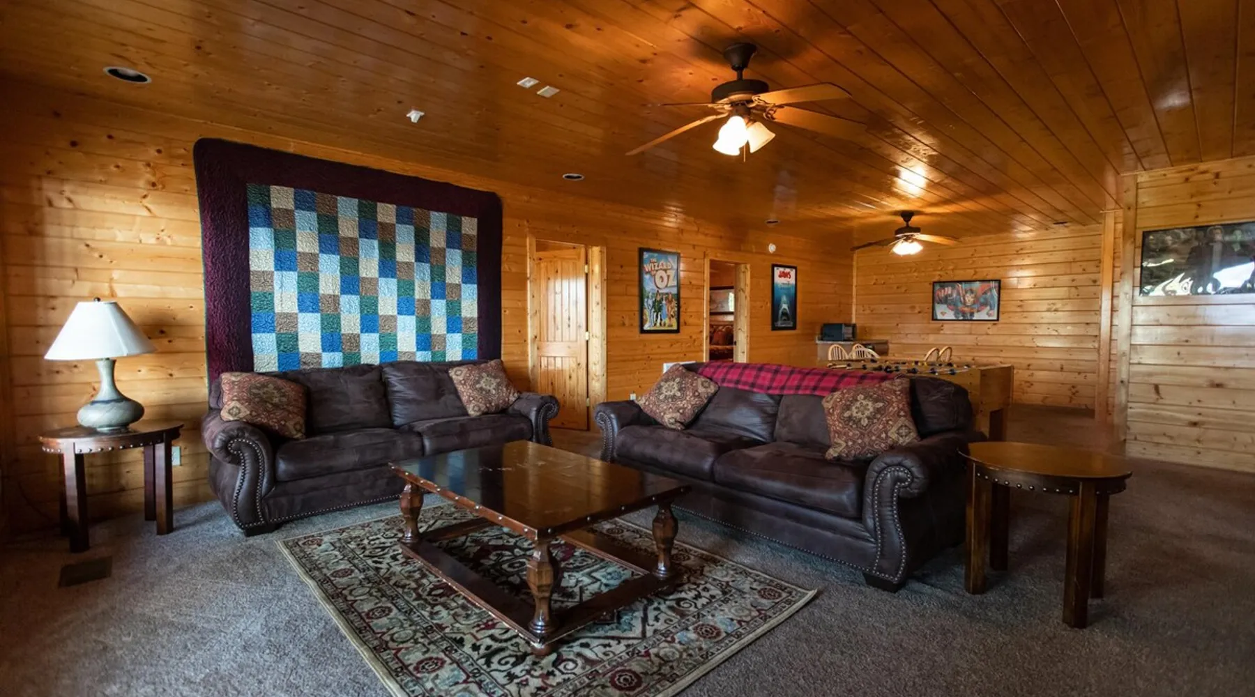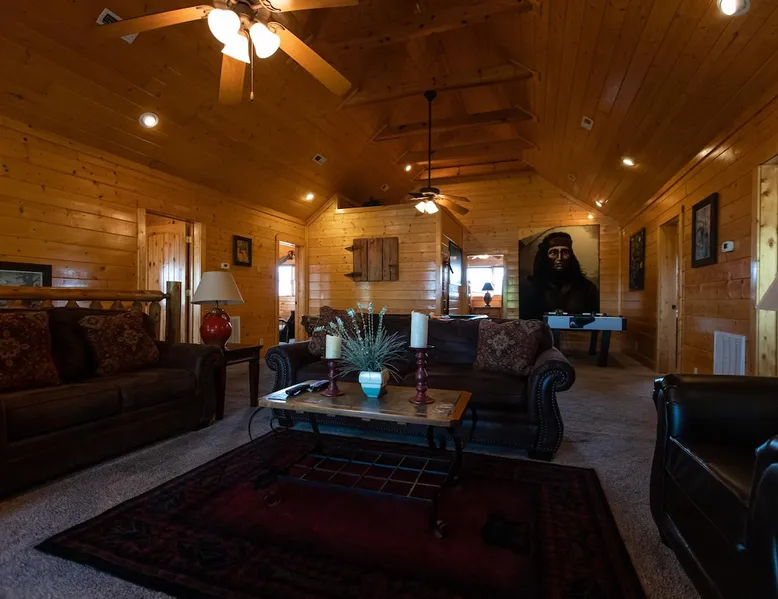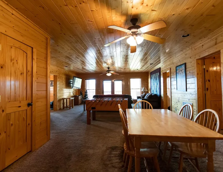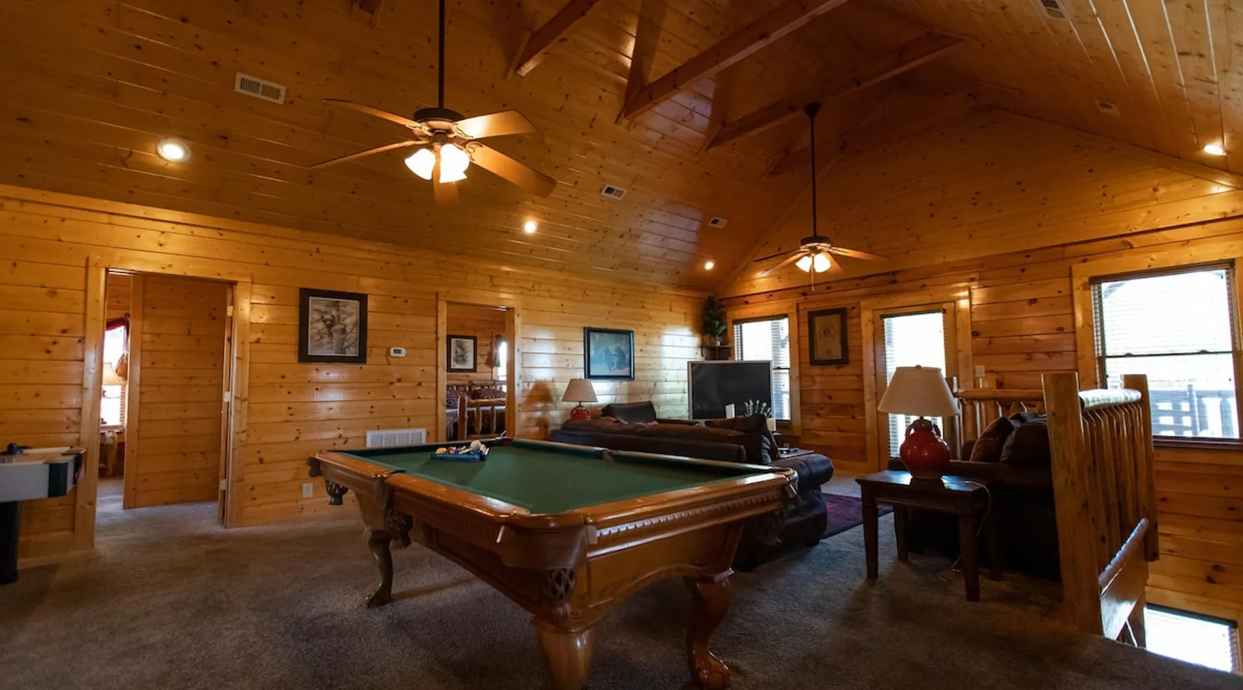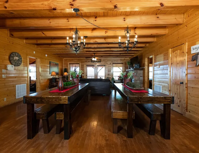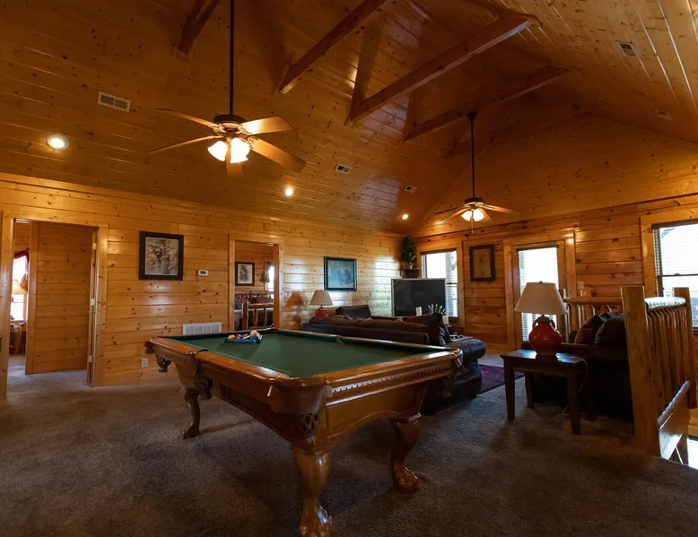 Welcome to Sequoyah Manor, a 12-bedroom luxury cabin that provides the perfect space to bring your entire family together. Located in the popular Preserve Resort on “the peaceful side of the smokies”, you will be close enough to Pigeon Forge to enjoy all the attractions but far enough away to benefit from the peace and quiet. Located in a prime spot at the top of the resort means you will enjoy breath-taking views from every angle and a quick easy walk to the resort pool and pavilion. The space Just imagine sipping your morning coffee from one of the large decks overlooking the gorgeous mountain range or relaxing at the end of the day in the hot tub while breathing in the invigorating mountain air. Unwind together… Three large comfortable dens with sink-into sofas mean there’s plenty of space for family time but also somewhere to escape for a little peace and quiet. Everyone will love their accommodations in one of our 12 bedrooms that are all equally sized and equipped. We offer eleven king suites and one bunk room and each room benefits from its own ensuite private bathroom. When you stay at Sequoyah Manor there’s no arguing over who has the best bedroom – they’re all the best! Eat together… Whether you are preparing a family feast or just a snack, the fully equipped double kitchen has everything you need to cook up the perfect meal and the BBQ/Grill means outdoor cooking can also be on the menu. The two large dining tables provide plenty of space for your entire family to break bread together. Play together… When you’re not out exploring all that Pigeon Forge has to offer, you can spend time chilling and chatting, challenging one another to a game of pool, air hockey or Foosball or watching your favorite movie in the lower-level den with its 70" flat screen TV with sound bar and comfortable couch seating. Whether your idea of the perfect getaway is action packed days or relaxing peace and quiet, Sequoyah Manor has it all! Free Fun Included Every Day! To enhance your vacation experience free admissions to some of the area's most popular attractions are included - with a daily value of $640. You will receive one free ticket per day per group to each of the following: Dollywood, Dolly’s Splash Country, Anakeesta, Titanic Museum, Wonderworks, Beyond the Lens, Country Tonite, Big Creek Expeditions, Top Jump, Crave Golf, Paula Deen’s Adventure Park, Legacy Zipline, Alcatraz East Crime Museum, Rocky Top Coaster, Rowdy Bear Snow Park, Paula Deen’s Lumberjack Feud, Soaky Mountain Water Park, Comedy Barn and The Grand Majestic Theater. Tickets are not cumulative but do reset each day. There is no limit to the number of attractions you can visit in a day. Guest access The entire cabin is yours to enjoy as well as the communal pool, fitness center and pavilion. Other things to note *** Must be 25 or older to rent - Identity verification is required***