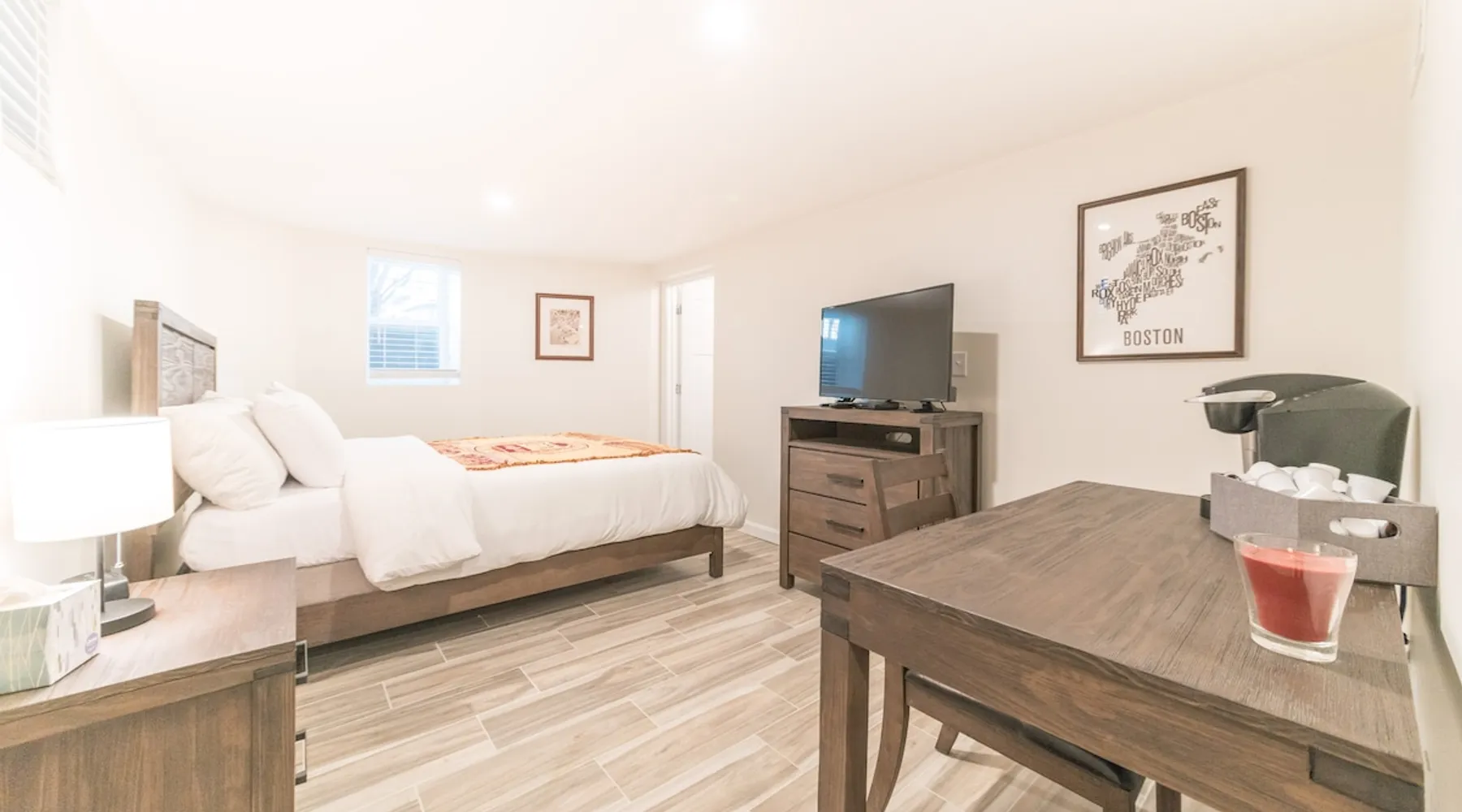 This garden level space is perfect if you're on a budget and desire privacy, comfort and cleanliness. Renovated using top-end finishes including Imported Spanish Tile flooring as well as many other high-end materials. Enjoy peaceful slumbers on our new Gel Memory Foam mattresses and white linen sheets while enjoying streaming services on SmartTV. Located minutes away from Boston Landing Train, easy access to Fenway Park & Copley Sq. The space This room was constructed to host Airbnb guests and is designed for travelers seeking the comfort, convenience and cleanliness they would find in a hotel, but at a fraction of the price. This basement level room is equipped with a Smart TV, Wifi, Queen bed with Memory Foam mattress, keurig coffee maker, mini fridge and private bath. There is NO KITCHEN or access to cooking equipment, however there are so many takeout options in our immediate area that one can get food delivered from any number of restaurants in under an hour. Our home is a classic three-decker. We now do Airbnb on the 2nd floor and in these two basement bedrooms. The basement has a private entrance around the back of our home for added privacy. A unique access code is generated for each reservation that provides access to the foyer door and then your unit door. Walk through the comfortable foyer area and you will find a large finished basement with two separate units on opposite sides of the house, each designed like a hotel room with private access and en-suite bathroom. We are in the Allston/Brighton neighborhood of Boston. Guest access We use smart locks with unique access codes for each reservation. To enter the unit you go down the back stairs into the foyer and will see the signs pointing straight ahead for the Boston College unit and to the right for the Harvard unit. We have two identical units on this level, each with their own access doors like two individual hotel rooms. We offer coin operated laundry for guests to use. The laundry units are in the foyer area of the basement entrance. This foyer area is a shared space. Off-street parking is available for free, however it must be reserved at the time of booking. Unrestricted street parking is available all weekend. Mon-Friday 8am-6pm there is a loosely enforced 2-hour restriction on street parking without a resident sticker. Other things to note The room is located in the basement of our home but was recently constructed to the highest standard and meets all required building and safety codes. There are two similar rooms in our basement (each with their own bathroom, and each with their own unique door lock codes) that share a private entrance from the rest of the house and common area foyer. We are located in the Brighton neighborhood of Boston, 4 miles from Downtown. We are close to several buses and the Boston Landing train stop is right down the road, about a 5-minute walk. The Boston Landing inbound train goes to Fenway, Back Bay (Downtown) and South Station. You can find a link to the train schedule by going to MBTA (dot com) and selecting the Worcester commuter train. Registration Details STR-413793