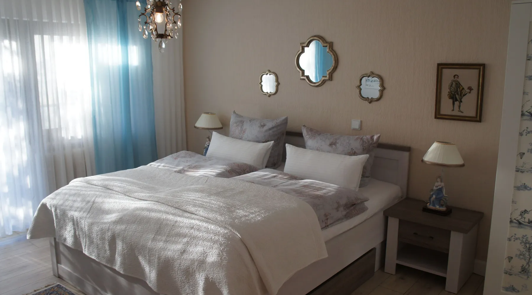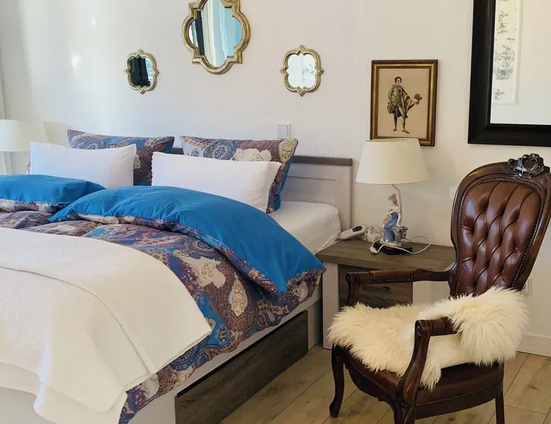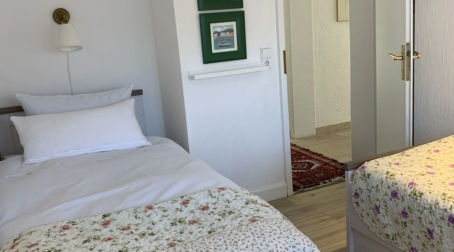 Haus Sonnenschein is located in the picturesque town of Mespelbrunn. Our cozy apartment is an ideal location to explore Mespelbrunn and the Bavarian Spessart. We have lovingly furnished the apartment, so you feel at home. The first bedroom has a comfortable 1.80 meter double bed, the second bedroom is also open for 2 people with two single beds. In the living room there is a sofa with plenty of seating for comfortable hours and even the third bedroom (in the living room) also with single bed. The spacious kitchen is fully equipped and thanks to the dishwasher is also provided for washing dishes. The kitchen is equipped with fridge & freezer, ceramic hob, oven, dishwasher, crockery, cutlery, pots, pans, toaster, kettle, coffee maker (coffee, coffee filter and various teas are ready! ) The nearest supermarket is 2.5 km from the property and various restaurants can be found within a 5-minute walk. The apartment has its own access & parking. Also particularly suitable for Frankfurt trade fair visitors. The Mespelbrunn Castle with its picturesque moat is 3 km away. Among the most popular attractions in the area include hiking and cycling.