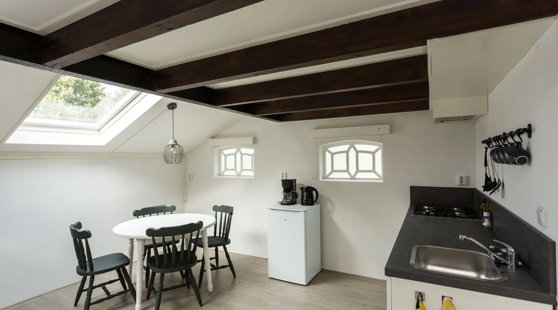 Welcome to the Lytshús Donia guesthouse! We offer a complete home with its own entry. The house has its own kitchen and bathroom. Also, you have access to a lovely sunny private terrace. The house has central heating and a cozy pellet stove. The space Behind our farm is the "lytshús". (formerly used as a stable for small cattle) We have converted this space into a beautiful, bright and sunny holiday home for 2 people. The home features a living room with a fully equipped kitchen. The bathroom has a toilet, sink and shower. The sleeping area is upstairs, and is equipped with a double bed. A beautiful private terrace has been built in front of the house. Upon arrival, the beds will be made for you and bath towels will be provided for you. There is a tea towel and a towel in the kitchen, and dishcloths are provided. Guest access As a guest, you have access to the entire lytshús with terrace. The home has a private entrance. Other things to note The house is less suitable for very tall people (above two meters) due to quite low ceiling in the kitchen and shower room