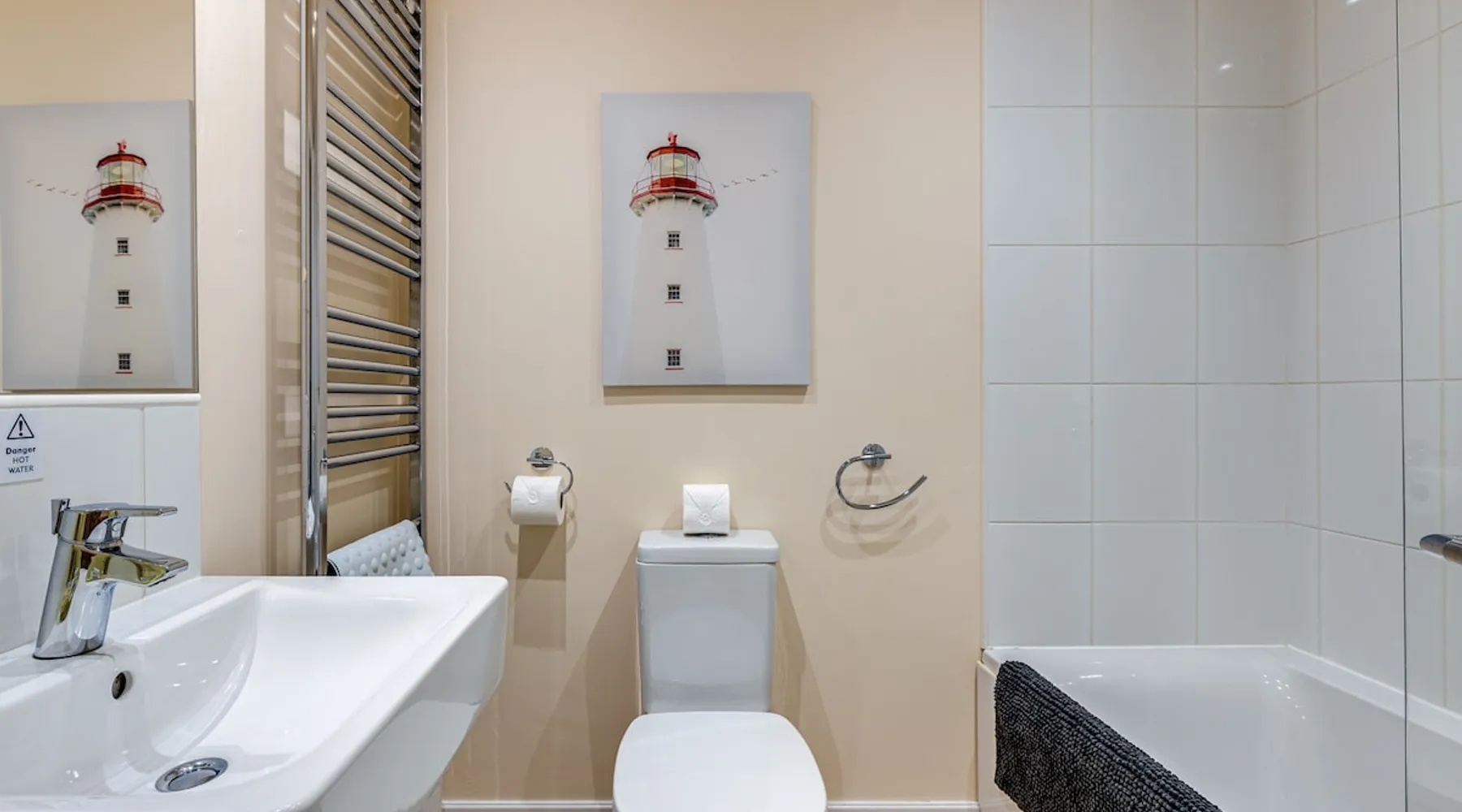 Luxury very well equipped 3 bedroom spacious cottage at The Bay Resort, Filey with fastwi- fi. The Bay, Filey is a 5 * award-winning, peaceful, holiday village with direct access to 5 miles of stunning beach. Free access to swimming pool, sauna, steam room, gym, children's play area and football area. Other facilities include, tennis courts, table tennis, beauty room,dog friendly pub/restaurant and small shop. The space Large hall with downstairs toilet, leading into a large open plan kitchen, dining and living area, with plenty of seating for 6. Patio doors lead out onto a patio with furniture and brick bbq area. Upstairs there are 3 bedrooms one with ensuite and a bathroom. Guest access Guests have access to the whole cottage