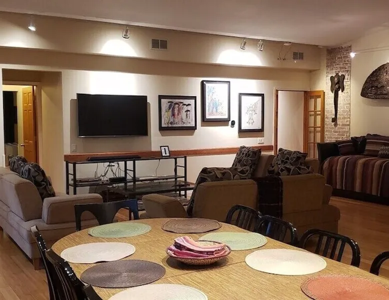 Spacious, bright art filled 'loft' but with full walls for privacy in each bedroom - this is the perfect space for a family visit to Chicago, a girl's getaway or midweek business trip. The space Bachelor & Bachelorette groups love our space - but note that as live in owner's we're pretty particular about welcoming only the best behaved, so if your group is looking for a beautiful, comfortable space, and especially if you imagine sitting together around the dining table over a dinner or brunch together (we can even suggest local caterers) - we are THE vacation rental for you! **If you're a group that's coming ONLY to bar hop and party all night - we might not be the space for you.... (we're a family friendly building and aren't keen on lots of drunken guests stumbling in at 3 AM ;-( ** Located at the crossroads of Lincoln Park - Old Town & River North - Old Town Chicago, Mag Mile, Fulton Market, Wicker Park & Wrigleyville are all just minutes away - without any of the urban noise and congestion. Guest access This is a private apartment, all of the listed amenities are yours to use during your stay. The apartment has an extremely well stocked chef's kitchen with table service for us to 10 guests, you'll find a board games cabinet, a smart TV, free wifi... the beds are freshly made and there's plenty of fluffy bath linens for your group. Other things to note Bachelor & Bachelorette groups love our space - but note that as live in owner's we're pretty particular about welcoming only the best behaved, so if your group is looking for a beautiful, comfortable space, and especially if you imagine sitting together around the dining table over a dinner or brunch together (we can even suggest local caterers) - we are THE vacation rental for you! **If you're a group that's coming ONLY to bar hop and party all night - we might not be the space for you.... (we're a family friendly building and aren't keen on lots of drunken guests stumbling in at 3 AM ;-( ** Registration details 2555923