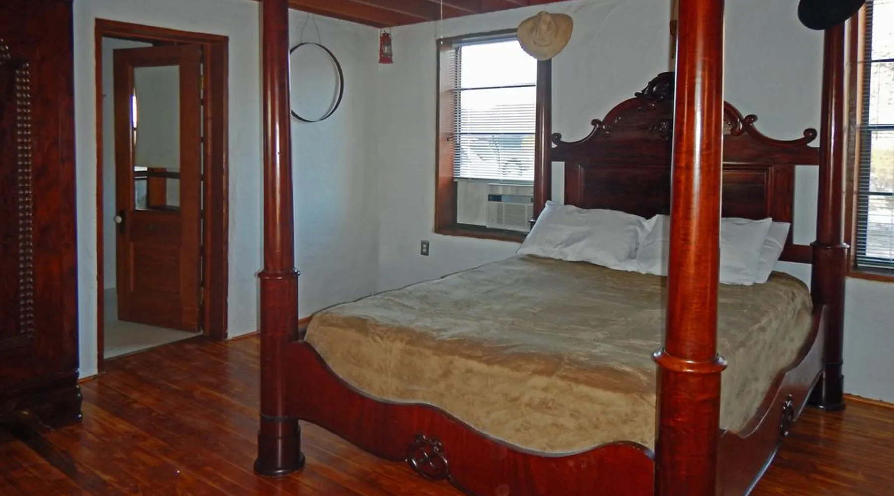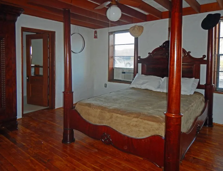 La Paloma Triste: Classic adobe vacation home. Minutes from Terlingua and Big Bend National Park. The space Step back in time at this vintage Terlingua adobe. La Paloma Triste is an ideal escape from the madness of modern life. This is the quintessential Terlingua vacation home. La Paloma Triste (The Sad Dove) is a classic adobe home at Willow Spring and just minutes from Terlingua with excellent views of the Chisos Mountains and Willow Mountain. Built in the 80’s, with antique doors, windows, fixtures, and furnishings reclaimed from much older homes in Mexico and the Southwest, this cozy home blends modern conveniences with genuine rustic charm. Whether relaxing by the wood burning stove or enjoying the views from the porch swing, you’ll feel as if you stepped back in time to the pioneer days of the Wild West. There is plenty of room to relax with two bedrooms, a full kitchen, a large living room, one and a half bathrooms, a spacious porch and covered parking, not to mention forty private acres of pristine desert habitat. The main bedroom features a queen sized four poster bed, antique armoire, antique dresser and a private bath with a shower. The second bedroom has two walls full of windows with breathtaking views of the Chisos Mountains and nearby Bee Mountain. The living room has an antique wood burning stove (wood provided), rustic built-in shelves filled with artifacts and other items of local interests, and comfortable seating. The fully stocked kitchen has a new gas stove, antique sink, rustic shelving, and a classic pine and cedar table that was built by the owners. The large back porch has a porch swing for two with amazing views of the Chisos Mountains and Bee Mountain. The carport protects your vehicle from the west Texas sun and our infrequent storms. Of course, the main attractions are outside. Take time to enjoy the solitude of the Chihuahuan desert and Willow Spring. The area around the house is landscaped with native plants, interesting rocks, and rusty pioneer artifacts that were collected over many years by the original owner. You will also want to visit Big Bend National Park, the Rio Grande River, Big Bend Ranch State Park, Terlingua Ghost Town, and our various restaurants and shops. If you don’t have time on this trip, you’re welcome to return again and again. The views of the night sky are beyond simple description. The Big Bend region has the darkest nights (lowest light pollution) of anywhere in the continental US. As the song says, “the stars at night are big and bright deep in the heart of Texas”. They’re even bigger and brighter here in the Bend. When the moon is out, you’ll be amazed at how bright and clear it shines. When the moon is not out, you’ll be stunned by the countless stars and the light and dark bands of the Milky Way. In the hour or two after sunset and before sunrise, you can often see the International Space Station and other satellites racing across the night sky. Shooting stars are visible throughout the year, especially during the Perseid and Geminid meteor showers. Check out “VisitBigBend.com” for suggestions of things to do and see during your stay. Explore the parks, raft the river, go horseback riding, take scenic drives, go mountain biking, visit the ghost town, eat out, enjoy the local nightlife including live music at several small venues, watch the wildlife, or just relax on the porch with your favorite book. Return home exhausted and inspired from endless adventures or well-rested and refreshed from escaping the rush of modern life. The choices are all yours. Regardless of your plans, La Paloma Triste (The Sad Dove) is an ideal home away from home for your visit the Big Bend.