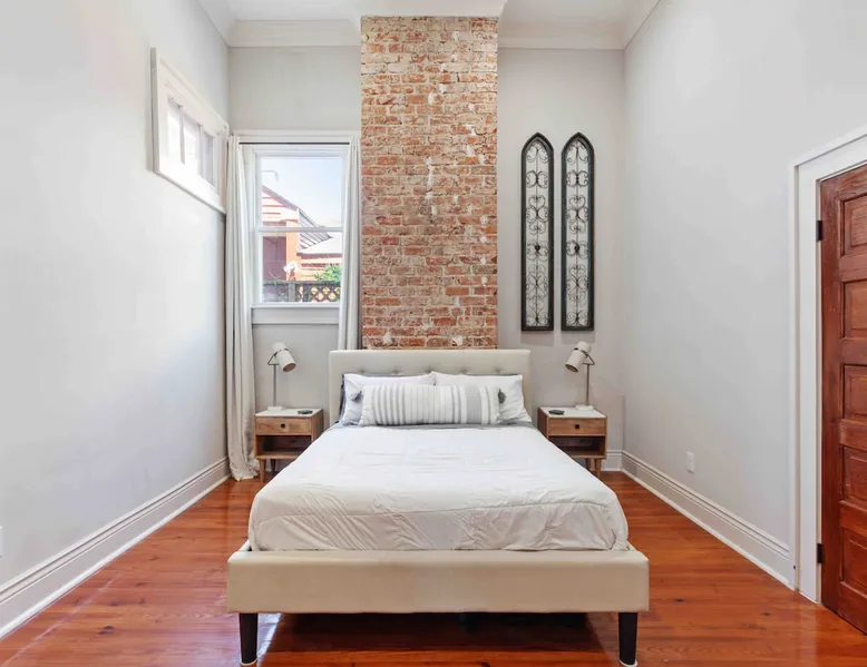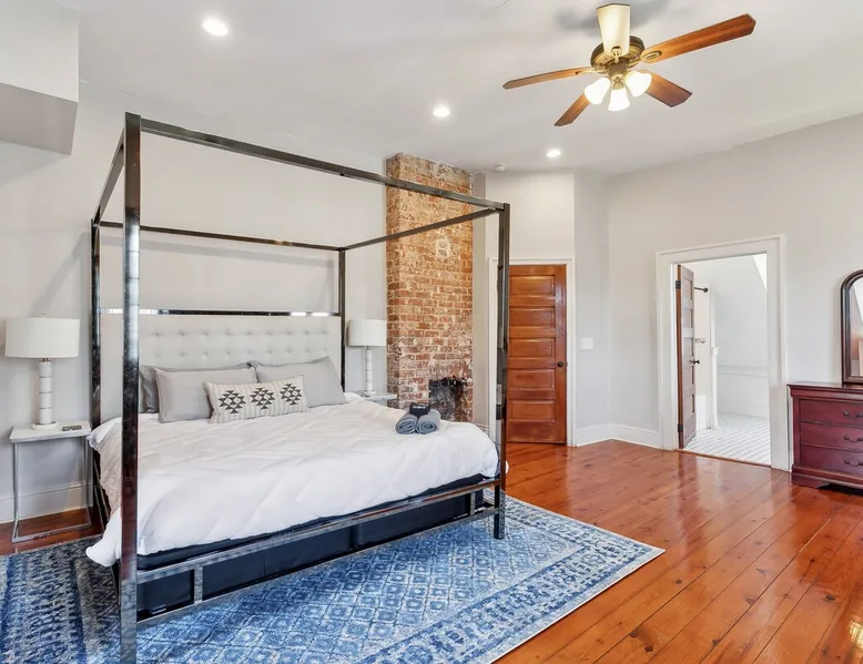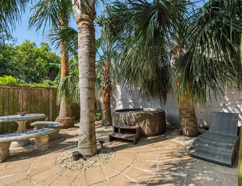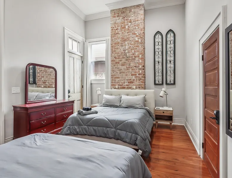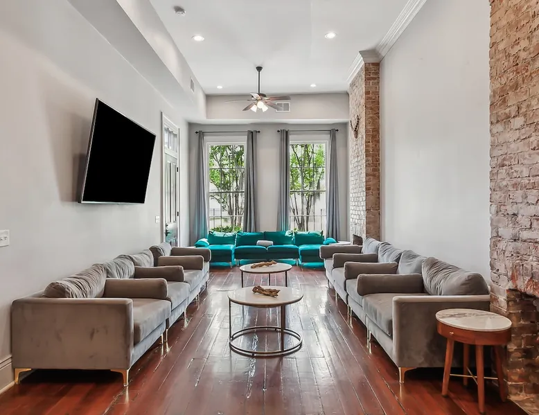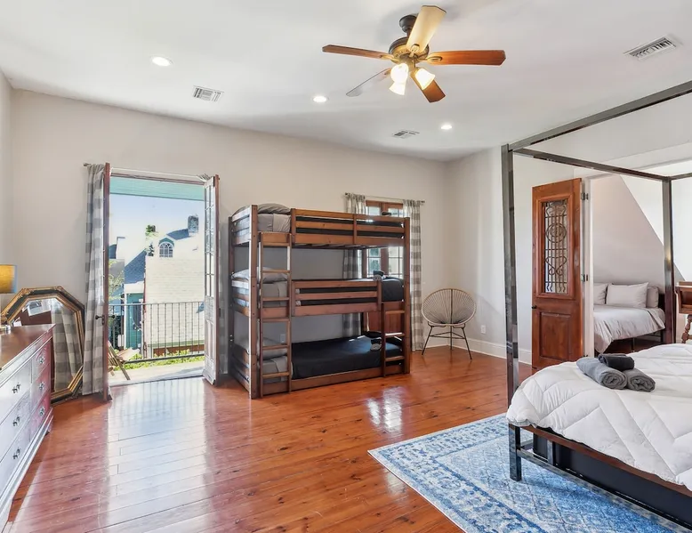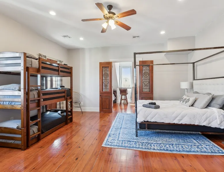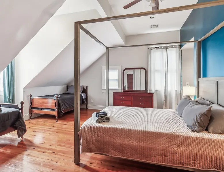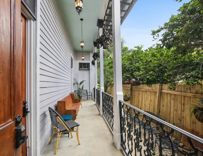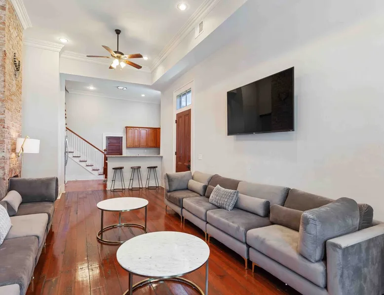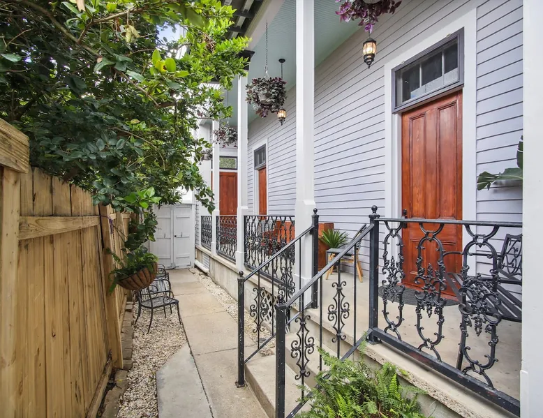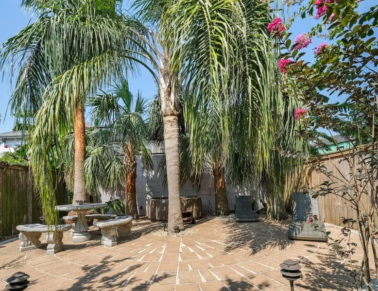 Gorgeous sprawling 1858 Treme antebellum mansion recently converted into a gorgeous 4 suite Bed and Breakfastl! Great location in Historic Treme/7th Ward: 4 blocks to the French Quarter, 8 blocks to heart of Frenchmen Street, and 3 blocks to the Rampart Streetcar line! The space The Creole Complex is a 4 suite massive New Orleans compound on the edge of the French Quarter, Treme, and Marigny. Downstairs has soaring 15' ceilings, over 36’ of seating area in the main room with an 86” smart TV complete with Netflix, prime (with downloaded classic films), and Hulu plus with HBO and Showtime. The kitchen has granite counters, stocked kitchen with essential cookware and coffee, brand new appliances and dishwasher, and all needs covered. The bar room and dining room feature an 8ft cypress dining table with seating for 10. Beautiful natural pecky cypress woodwork on the barn door complement the soaring 15’ ceilings in this area as well. Outside there is a side gallery (thats a New Orleans porch) with new beautiful iron work and hanging ferns. Walk around the sprawling estate wrapped in tropical birds of paradise and haliconia, ferns, and crape myrtles to the rear hot tub in back under the spectacular palm trees on the massive circular patio! There you’ll find the hot tub and tanning chairs and grill - your own private oasis in the city! !!!!! hot tub is drained July - Sept as it is too hot outside for enjoyable use, but is still available by request prior to arrival !!!!! Suite 1 is located up the towering staircase commanding half the building’s second floor footprint. The massive central sleeping room is replete with 3 sets of 1850s cypress french doors, comfortably fitting 3 queen beds and a daybed. Through one set of gorgeous 1850s French doors is a massive walk in closet/bonus room with dormer and desk and seating area, through another is a massive full en suite bathroom. And finally step through another pair of 1850s French cypress doors onto your own private balcony with rooftop and downtown views! Suite 2 is upstairs in the rear with a queen canopy bed, a comfortable and versatile daybed twin and daybed chaise lounge. Dresser and working nook with desk make for a great quiet getaway out of the larger property. Suite 3 is upstairs in the front with another queen canopy bed and matched antique pineapple twin beds. It also has a working nook, plenty of storage and a western sunset view out of the dormer. Suite 4 is downstairs, tucked away off the bar room parlor with soaring 15’ ceilings and is a perfect quiet and cool corner of the estate. It has 2 queen beds and its own private en suite bath. The downstairs has a laundry room available to all guests. The owner Graham’s suite has a door that remains locked during all guest stays and he enters through a back private entrance and is otherwise not connected to the front suites. Guest access Guests have access both the private side yard and private back yard Registration Details 24-XSTR-07278