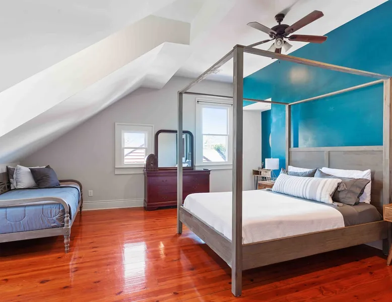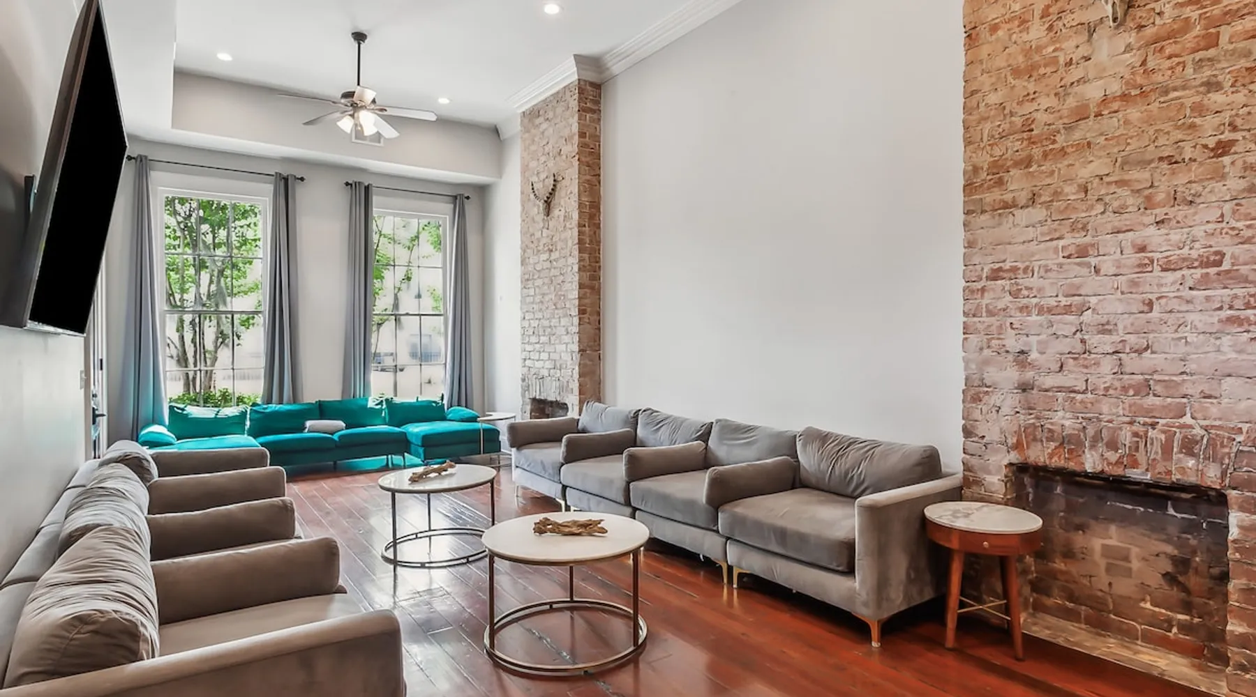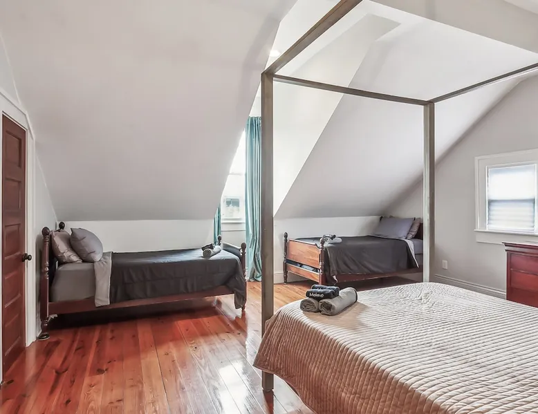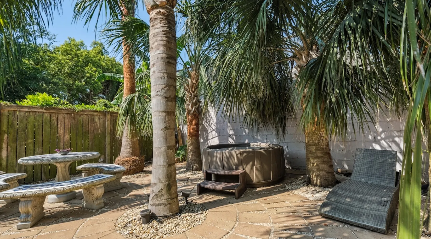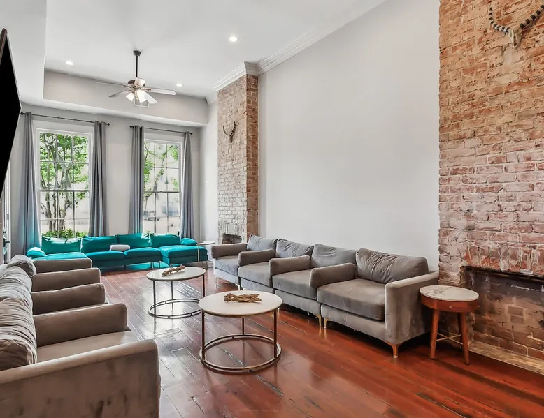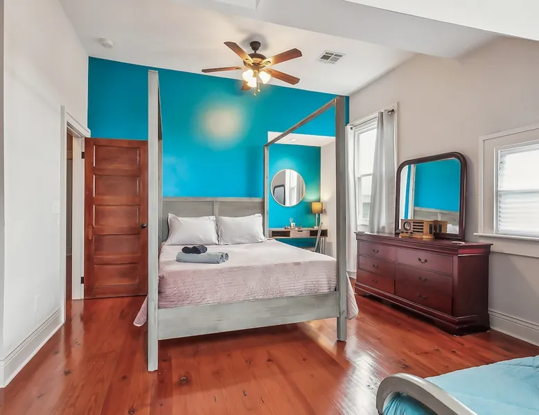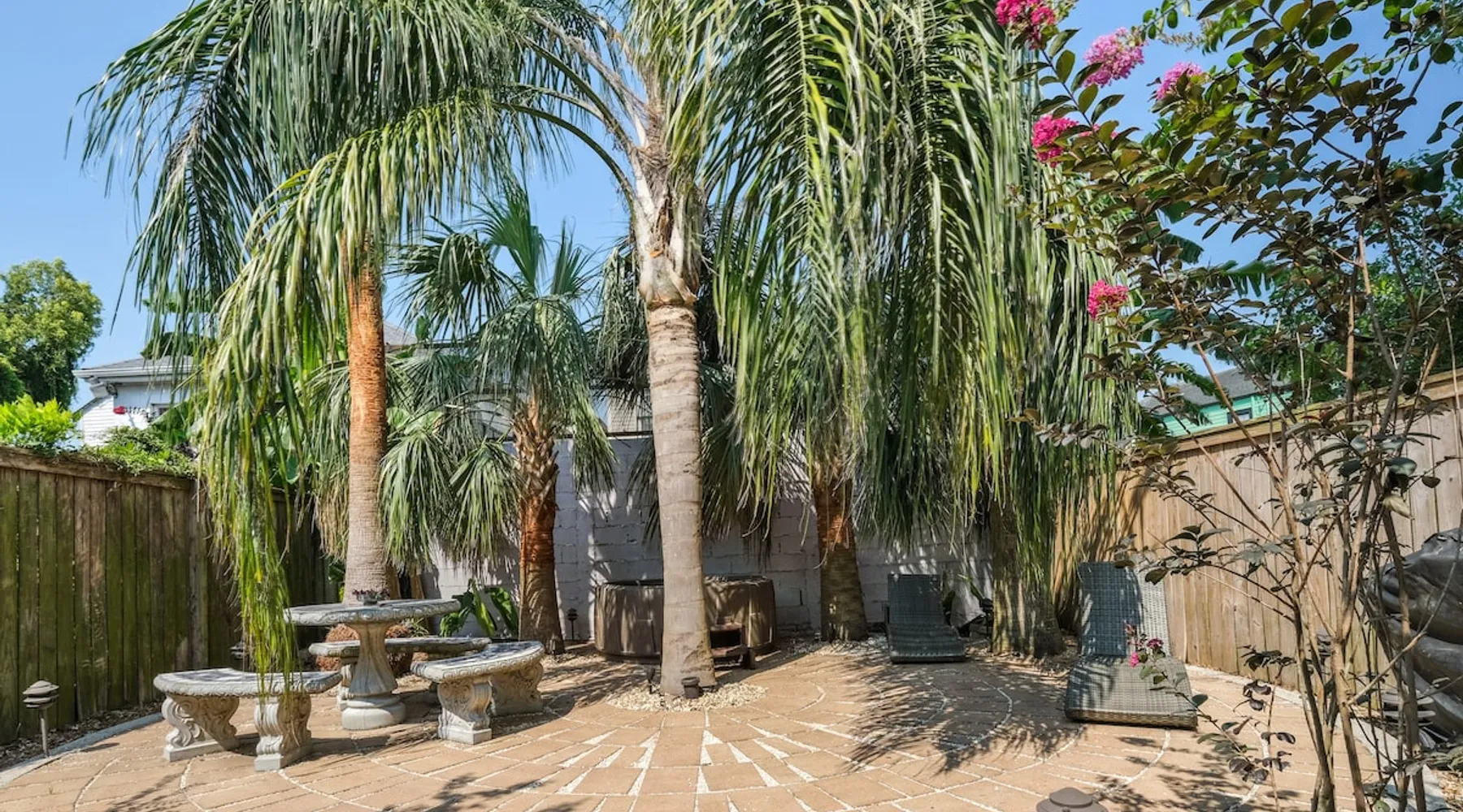 Gorgeous sprawling 1858 Treme antebellum mansion recently converted into a gorgeous 4 suite Bed and Breakfastl! Great location in Historic Treme/7th Ward: 4 blocks to the French Quarter, 8 blocks to heart of Frenchmen Street, and 3 blocks to the Rampart Streetcar line! The space The Creole Complex is a 4 suite massive New Orleans compound on the edge of the French Quarter, Treme, and Marigny. Downstairs has soaring 15' ceilings, over 36’ of seating area in the main room with an 86” smart TV complete with Netflix, prime (with downloaded classic films), and Hulu plus with HBO and Showtime. The kitchen has granite counters, stocked kitchen with essential cookware and coffee, brand new appliances and dishwasher, and all needs covered. The bar room and dining room feature an 8ft cypress dining table with seating for 10. Beautiful natural pecky cypress woodwork on the barn door complement the soaring 15’ ceilings in this area as well. Outside there is a side gallery (thats a New Orleans porch) with new beautiful iron work and hanging ferns. Walk around the sprawling estate wrapped in tropical birds of paradise and haliconia, ferns, and crape myrtles to the rear hot tub in back under the spectacular palm trees on the massive circular patio! There you’ll find the hot tub and tanning chairs and grill - your own private oasis in the city! !!!!! hot tub is drained July - Sept as it is too hot outside for enjoyable use, but is still available by request prior to arrival !!!!! Suite 1 is located up the towering staircase commanding half the building’s second floor footprint. The massive central sleeping room is replete with 3 sets of 1850s cypress french doors, comfortably fitting 3 queen beds and a daybed. Through one set of gorgeous 1850s French doors is a massive walk in closet/bonus room with dormer and desk and seating area, through another is a massive full en suite bathroom. And finally step through another pair of 1850s French cypress doors onto your own private balcony with rooftop and downtown views! Suite 2 is upstairs in the rear with a queen canopy bed, a comfortable and versatile daybed twin and daybed chaise lounge. Dresser and working nook with desk make for a great quiet getaway out of the larger property. Suite 3 is upstairs in the front with another queen canopy bed and matched antique pineapple twin beds. It also has a working nook, plenty of storage and a western sunset view out of the dormer. Suite 4 is downstairs, tucked away off the bar room parlor with soaring 15’ ceilings and is a perfect quiet and cool corner of the estate. It has 2 queen beds and its own private en suite bath. The downstairs has a laundry room available to all guests. The owner Graham’s suite has a door that remains locked during all guest stays and he enters through a back private entrance and is otherwise not connected to the front suites. Guest access Guests have access both the private side yard and private back yard Registration Details 24-XSTR-07278