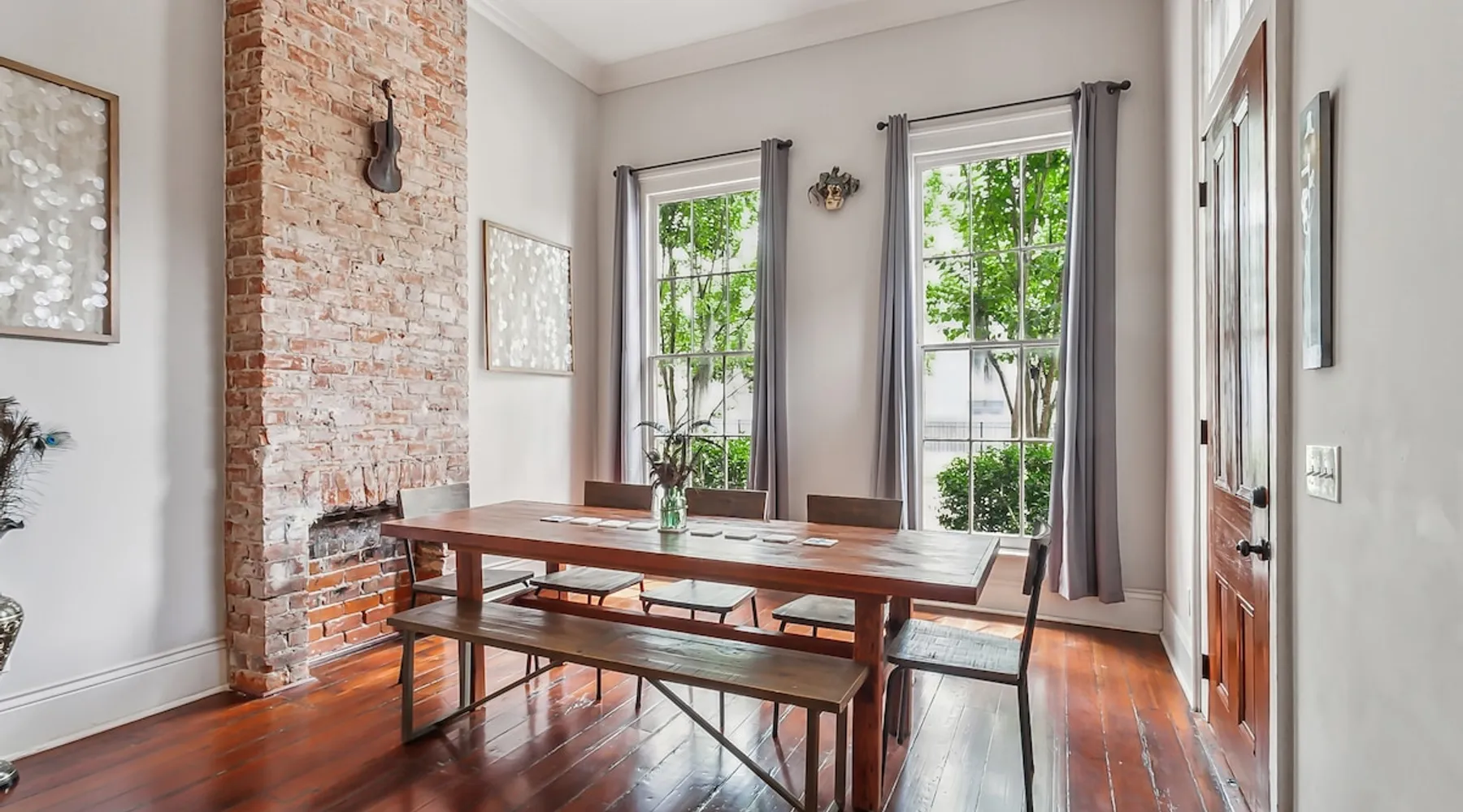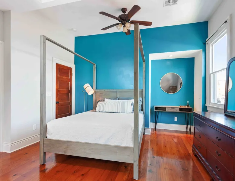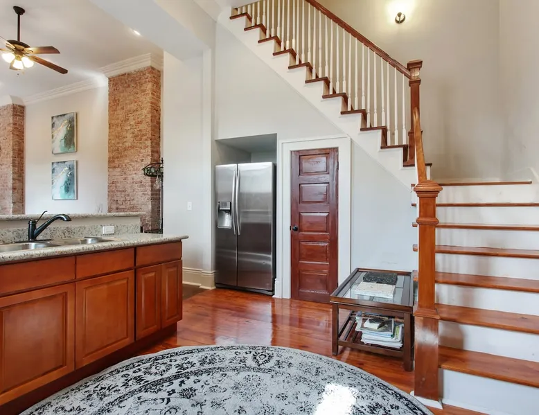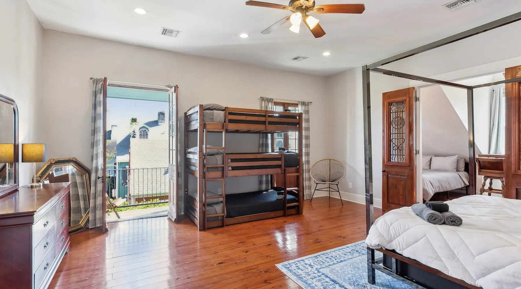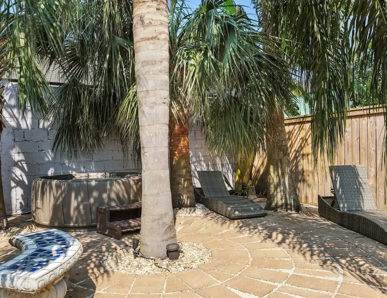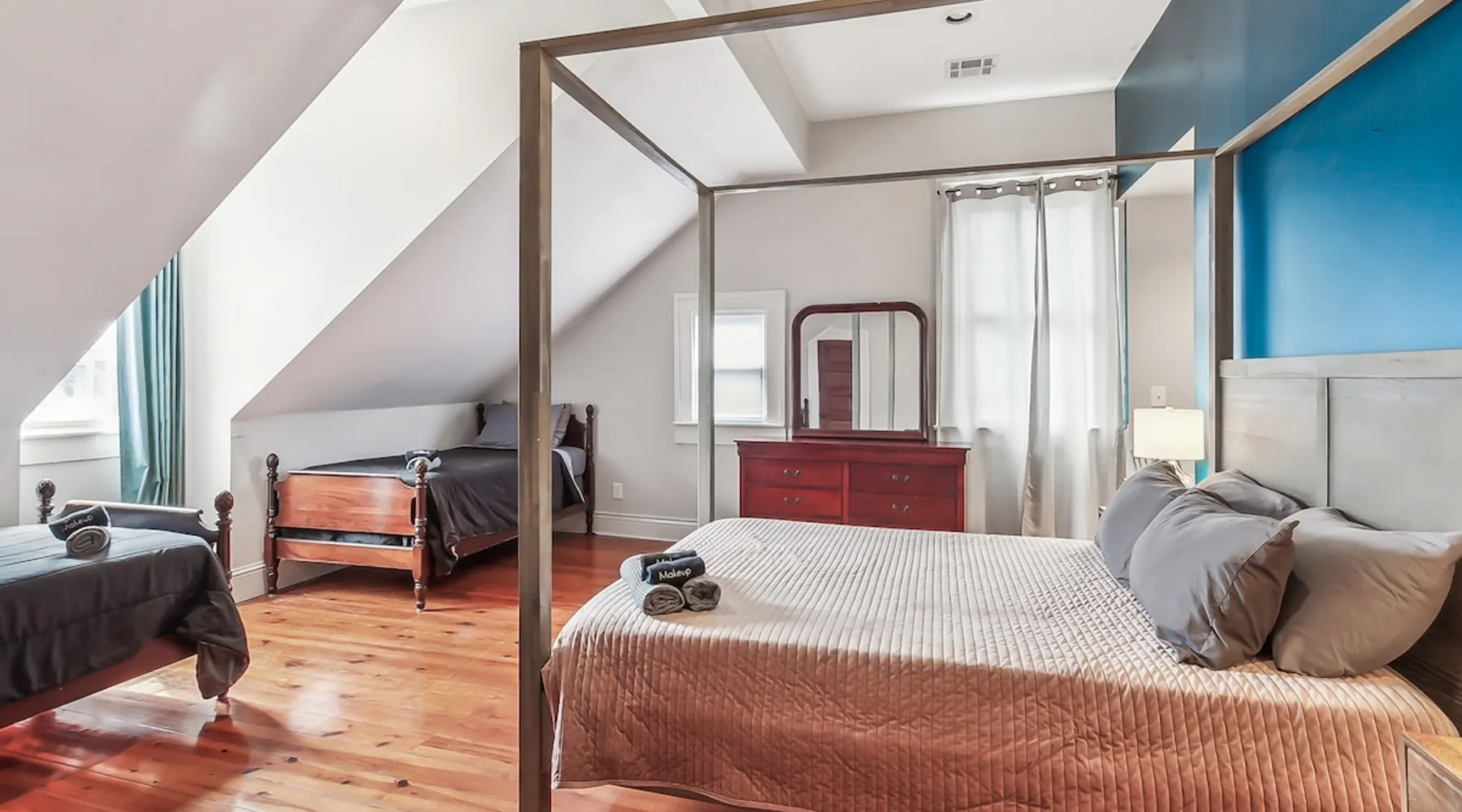 Gorgeous sprawling 1858 Treme antebellum mansion recently converted into a gorgeous 4 suite Bed and Breakfastl! Great location in Historic Treme/7th Ward: 4 blocks to the French Quarter, 8 blocks to heart of Frenchmen Street, and 3 blocks to the Rampart Streetcar line! The space The Creole Complex is a 4 suite massive New Orleans compound on the edge of the French Quarter, Treme, and Marigny. Downstairs has soaring 15' ceilings, over 36’ of seating area in the main room with an 86” smart TV complete with Netflix, prime (with downloaded classic films), and Hulu plus with HBO and Showtime. The kitchen has granite counters, stocked kitchen with essential cookware and coffee, brand new appliances and dishwasher, and all needs covered. The bar room and dining room feature an 8ft cypress dining table with seating for 10. Beautiful natural pecky cypress woodwork on the barn door complement the soaring 15’ ceilings in this area as well. Outside there is a side gallery (thats a New Orleans porch) with new beautiful iron work and hanging ferns. Walk around the sprawling estate wrapped in tropical birds of paradise and haliconia, ferns, and crape myrtles to the rear hot tub in back under the spectacular palm trees on the massive circular patio! There you’ll find the hot tub and tanning chairs and grill - your own private oasis in the city! !!!!! hot tub is drained July - Sept as it is too hot outside for enjoyable use, but is still available by request prior to arrival !!!!! Suite 1 is located up the towering staircase commanding half the building’s second floor footprint. The massive central sleeping room is replete with 3 sets of 1850s cypress french doors, comfortably fitting 3 queen beds and a daybed. Through one set of gorgeous 1850s French doors is a massive walk in closet/bonus room with dormer and desk and seating area, through another is a massive full en suite bathroom. And finally step through another pair of 1850s French cypress doors onto your own private balcony with rooftop and downtown views! Suite 2 is upstairs in the rear with a queen canopy bed, a comfortable and versatile daybed twin and daybed chaise lounge. Dresser and working nook with desk make for a great quiet getaway out of the larger property. Suite 3 is upstairs in the front with another queen canopy bed and matched antique pineapple twin beds. It also has a working nook, plenty of storage and a western sunset view out of the dormer. Suite 4 is downstairs, tucked away off the bar room parlor with soaring 15’ ceilings and is a perfect quiet and cool corner of the estate. It has 2 queen beds and its own private en suite bath. The downstairs has a laundry room available to all guests. The owner Graham’s suite has a door that remains locked during all guest stays and he enters through a back private entrance and is otherwise not connected to the front suites. Guest access Guests have access both the private side yard and private back yard Registration Details 24-XSTR-07278