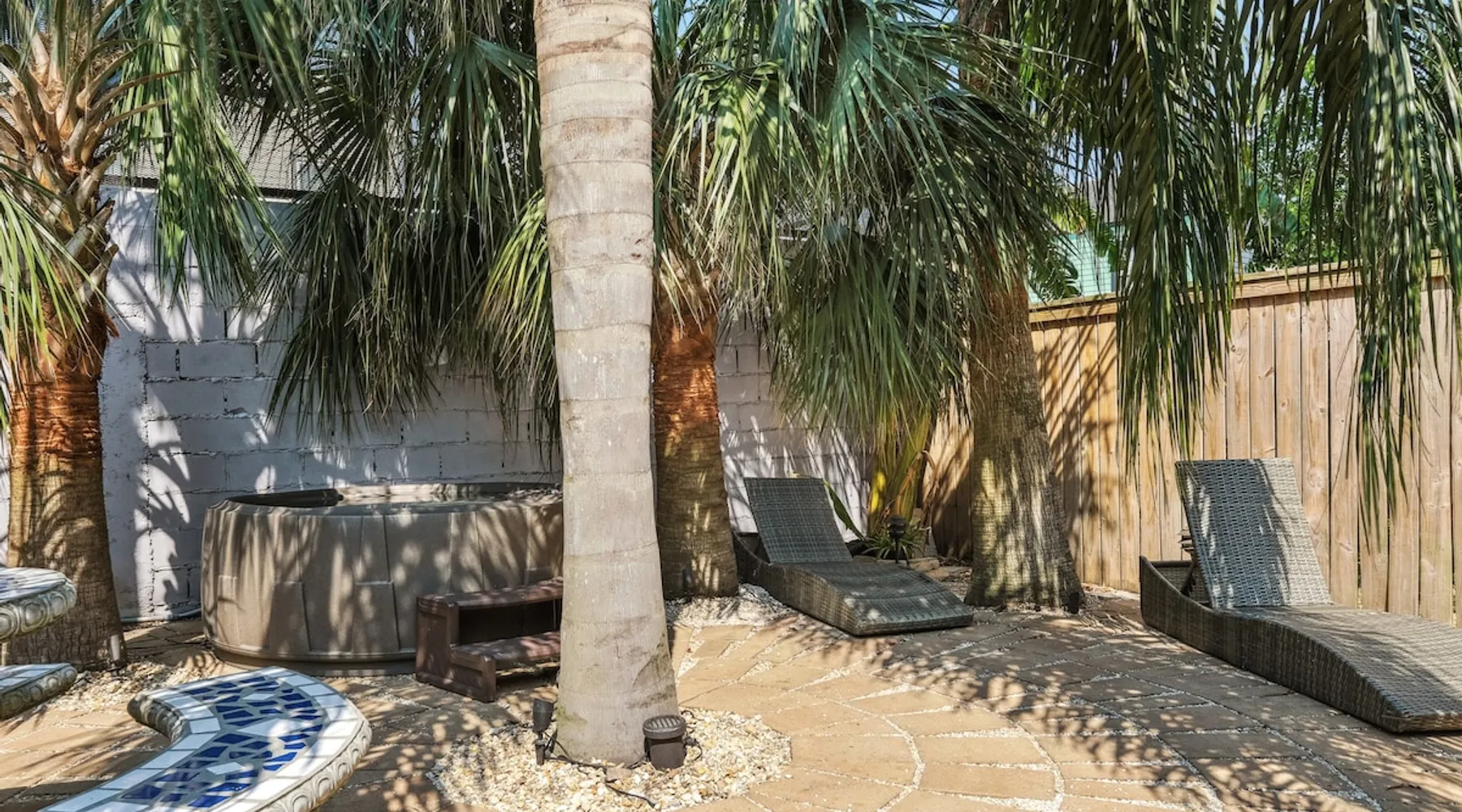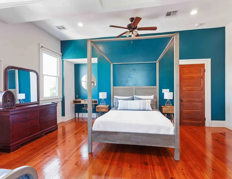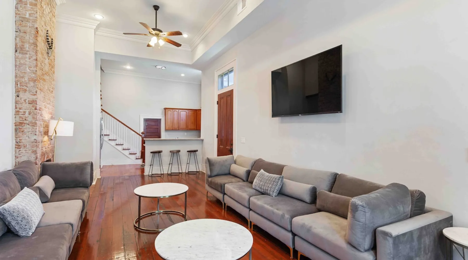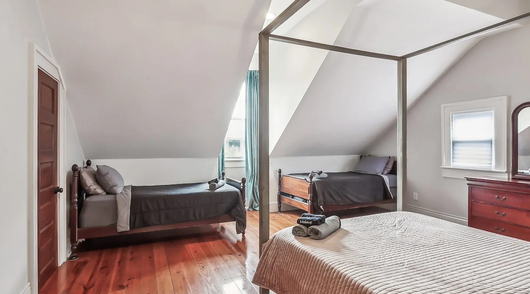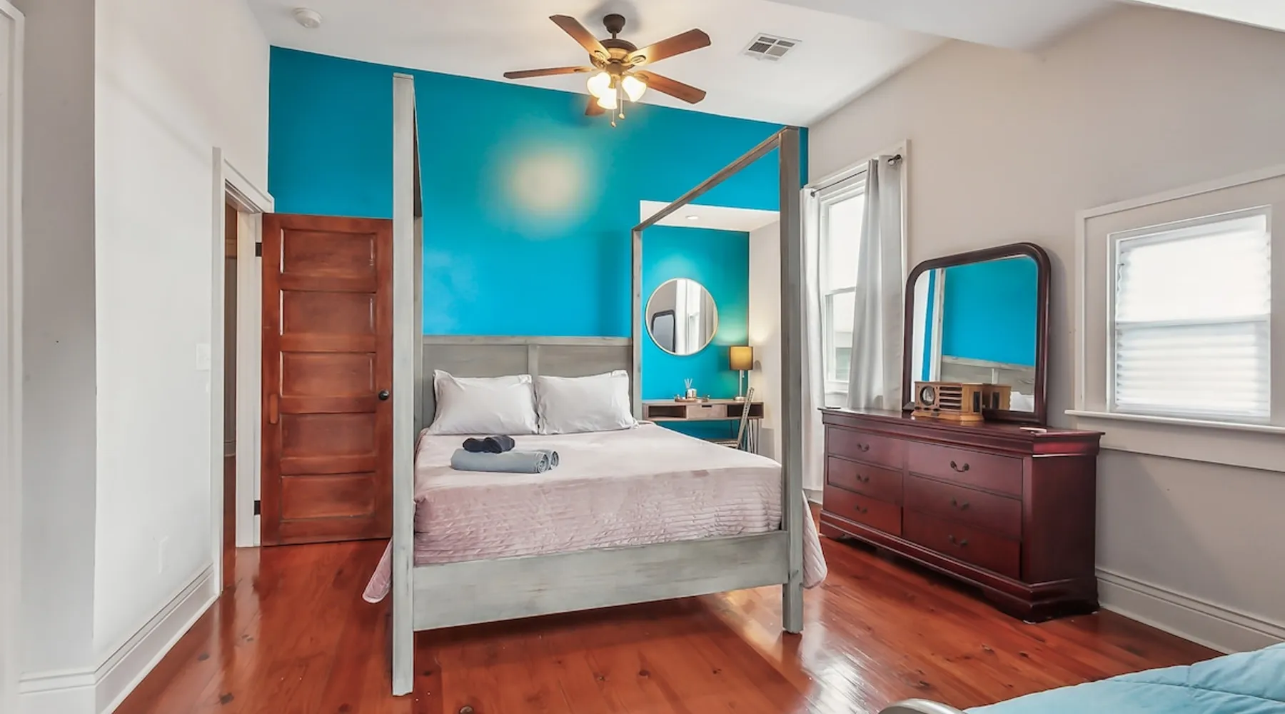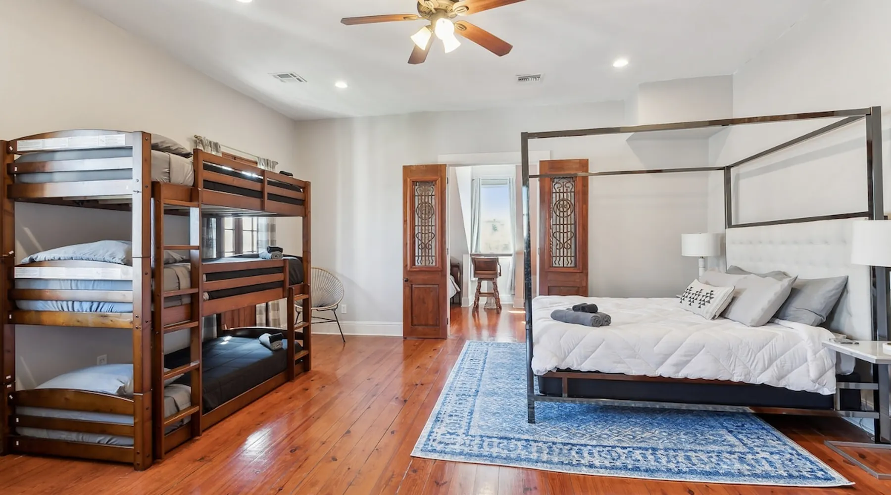 Gorgeous sprawling 1858 Treme antebellum mansion recently converted into a gorgeous 4 suite Bed and Breakfastl! Great location in Historic Treme/7th Ward: 4 blocks to the French Quarter, 8 blocks to heart of Frenchmen Street, and 3 blocks to the Rampart Streetcar line! The space The Creole Complex is a 4 suite massive New Orleans compound on the edge of the French Quarter, Treme, and Marigny. Downstairs has soaring 15' ceilings, over 36’ of seating area in the main room with an 86” smart TV complete with Netflix, prime (with downloaded classic films), and Hulu plus with HBO and Showtime. The kitchen has granite counters, stocked kitchen with essential cookware and coffee, brand new appliances and dishwasher, and all needs covered. The bar room and dining room feature an 8ft cypress dining table with seating for 10. Beautiful natural pecky cypress woodwork on the barn door complement the soaring 15’ ceilings in this area as well. Outside there is a side gallery (thats a New Orleans porch) with new beautiful iron work and hanging ferns. Walk around the sprawling estate wrapped in tropical birds of paradise and haliconia, ferns, and crape myrtles to the rear hot tub in back under the spectacular palm trees on the massive circular patio! There you’ll find the hot tub and tanning chairs and grill - your own private oasis in the city! !!!!! hot tub is drained July - Sept as it is too hot outside for enjoyable use, but is still available by request prior to arrival !!!!! Suite 1 is located up the towering staircase commanding half the building’s second floor footprint. The massive central sleeping room is replete with 3 sets of 1850s cypress french doors, comfortably fitting 3 queen beds and a daybed. Through one set of gorgeous 1850s French doors is a massive walk in closet/bonus room with dormer and desk and seating area, through another is a massive full en suite bathroom. And finally step through another pair of 1850s French cypress doors onto your own private balcony with rooftop and downtown views! Suite 2 is upstairs in the rear with a queen canopy bed, a comfortable and versatile daybed twin and daybed chaise lounge. Dresser and working nook with desk make for a great quiet getaway out of the larger property. Suite 3 is upstairs in the front with another queen canopy bed and matched antique pineapple twin beds. It also has a working nook, plenty of storage and a western sunset view out of the dormer. Suite 4 is downstairs, tucked away off the bar room parlor with soaring 15’ ceilings and is a perfect quiet and cool corner of the estate. It has 2 queen beds and its own private en suite bath. The downstairs has a laundry room available to all guests. The owner Graham’s suite has a door that remains locked during all guest stays and he enters through a back private entrance and is otherwise not connected to the front suites. Guest access Guests have access both the private side yard and private back yard Registration Details 24-XSTR-07278