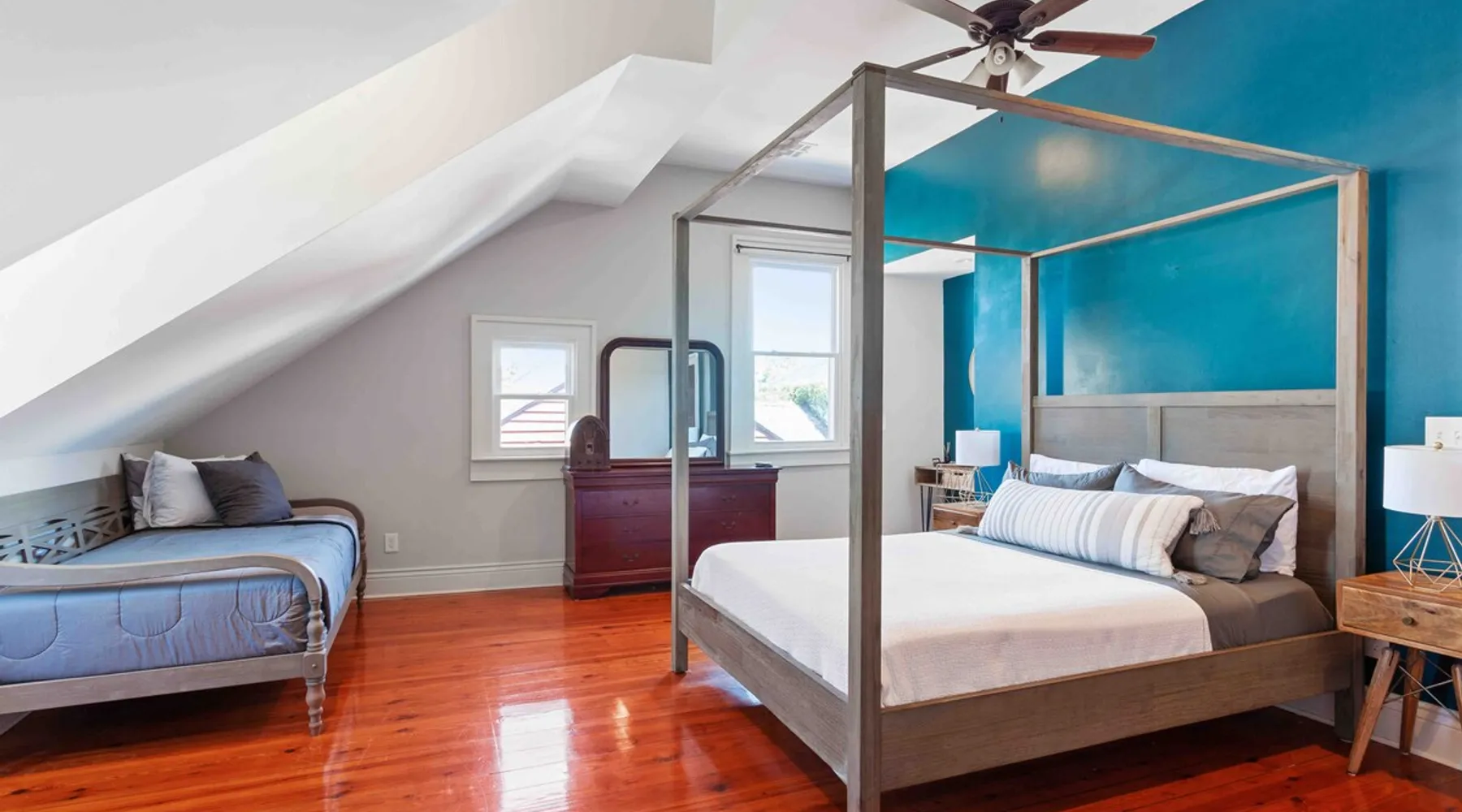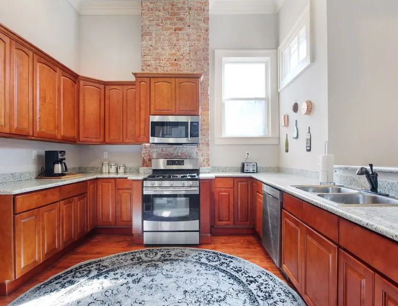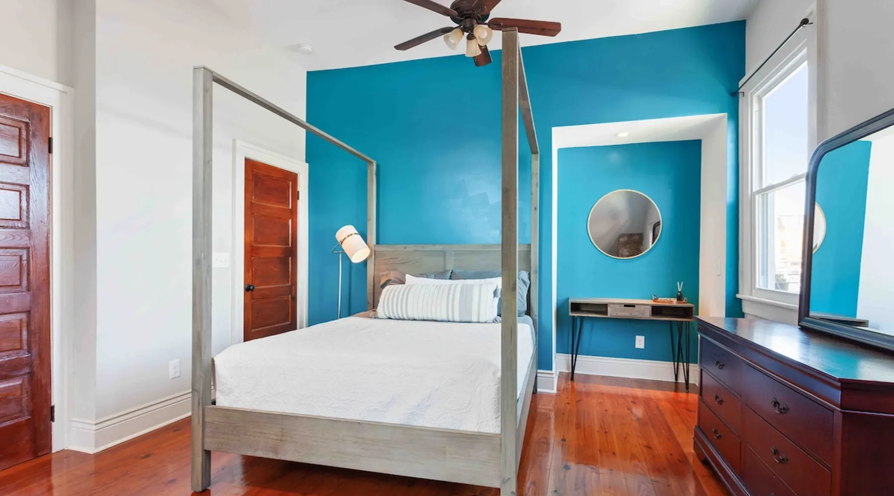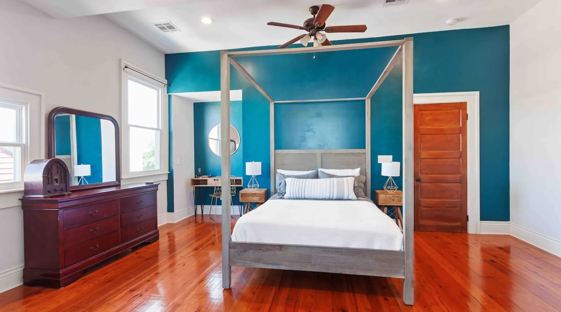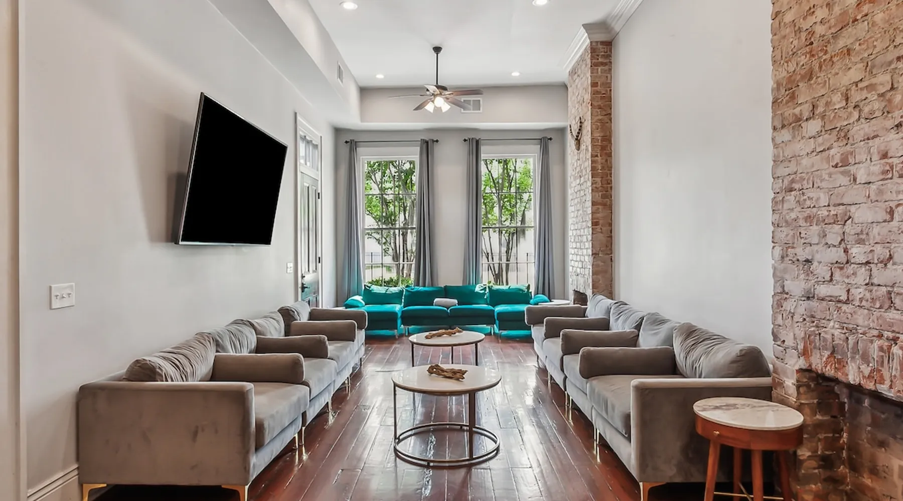 Gorgeous sprawling 1858 Treme antebellum mansion recently converted into a gorgeous 4 suite Bed and Breakfastl! Great location in Historic Treme/7th Ward: 4 blocks to the French Quarter, 8 blocks to heart of Frenchmen Street, and 3 blocks to the Rampart Streetcar line! The space The Creole Complex is a 4 suite massive New Orleans compound on the edge of the French Quarter, Treme, and Marigny. Downstairs has soaring 15' ceilings, over 36’ of seating area in the main room with an 86” smart TV complete with Netflix, prime (with downloaded classic films), and Hulu plus with HBO and Showtime. The kitchen has granite counters, stocked kitchen with essential cookware and coffee, brand new appliances and dishwasher, and all needs covered. The bar room and dining room feature an 8ft cypress dining table with seating for 10. Beautiful natural pecky cypress woodwork on the barn door complement the soaring 15’ ceilings in this area as well. Outside there is a side gallery (thats a New Orleans porch) with new beautiful iron work and hanging ferns. Walk around the sprawling estate wrapped in tropical birds of paradise and haliconia, ferns, and crape myrtles to the rear hot tub in back under the spectacular palm trees on the massive circular patio! There you’ll find the hot tub and tanning chairs and grill - your own private oasis in the city! !!!!! hot tub is drained July - Sept as it is too hot outside for enjoyable use, but is still available by request prior to arrival !!!!! Suite 1 is located up the towering staircase commanding half the building’s second floor footprint. The massive central sleeping room is replete with 3 sets of 1850s cypress french doors, comfortably fitting 3 queen beds and a daybed. Through one set of gorgeous 1850s French doors is a massive walk in closet/bonus room with dormer and desk and seating area, through another is a massive full en suite bathroom. And finally step through another pair of 1850s French cypress doors onto your own private balcony with rooftop and downtown views! Suite 2 is upstairs in the rear with a queen canopy bed, a comfortable and versatile daybed twin and daybed chaise lounge. Dresser and working nook with desk make for a great quiet getaway out of the larger property. Suite 3 is upstairs in the front with another queen canopy bed and matched antique pineapple twin beds. It also has a working nook, plenty of storage and a western sunset view out of the dormer. Suite 4 is downstairs, tucked away off the bar room parlor with soaring 15’ ceilings and is a perfect quiet and cool corner of the estate. It has 2 queen beds and its own private en suite bath. The downstairs has a laundry room available to all guests. The owner Graham’s suite has a door that remains locked during all guest stays and he enters through a back private entrance and is otherwise not connected to the front suites. Guest access Guests have access both the private side yard and private back yard Registration Details 24-XSTR-07278