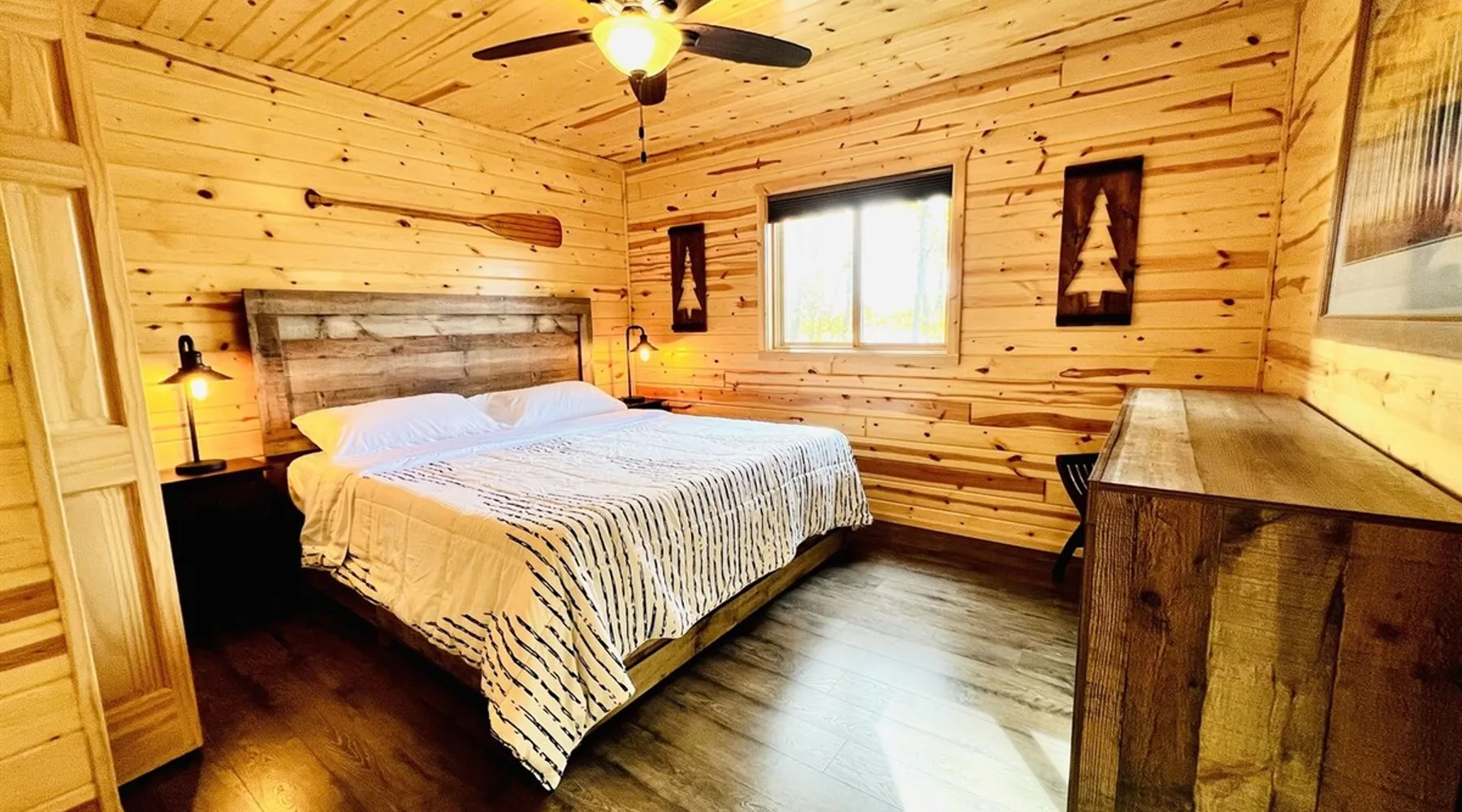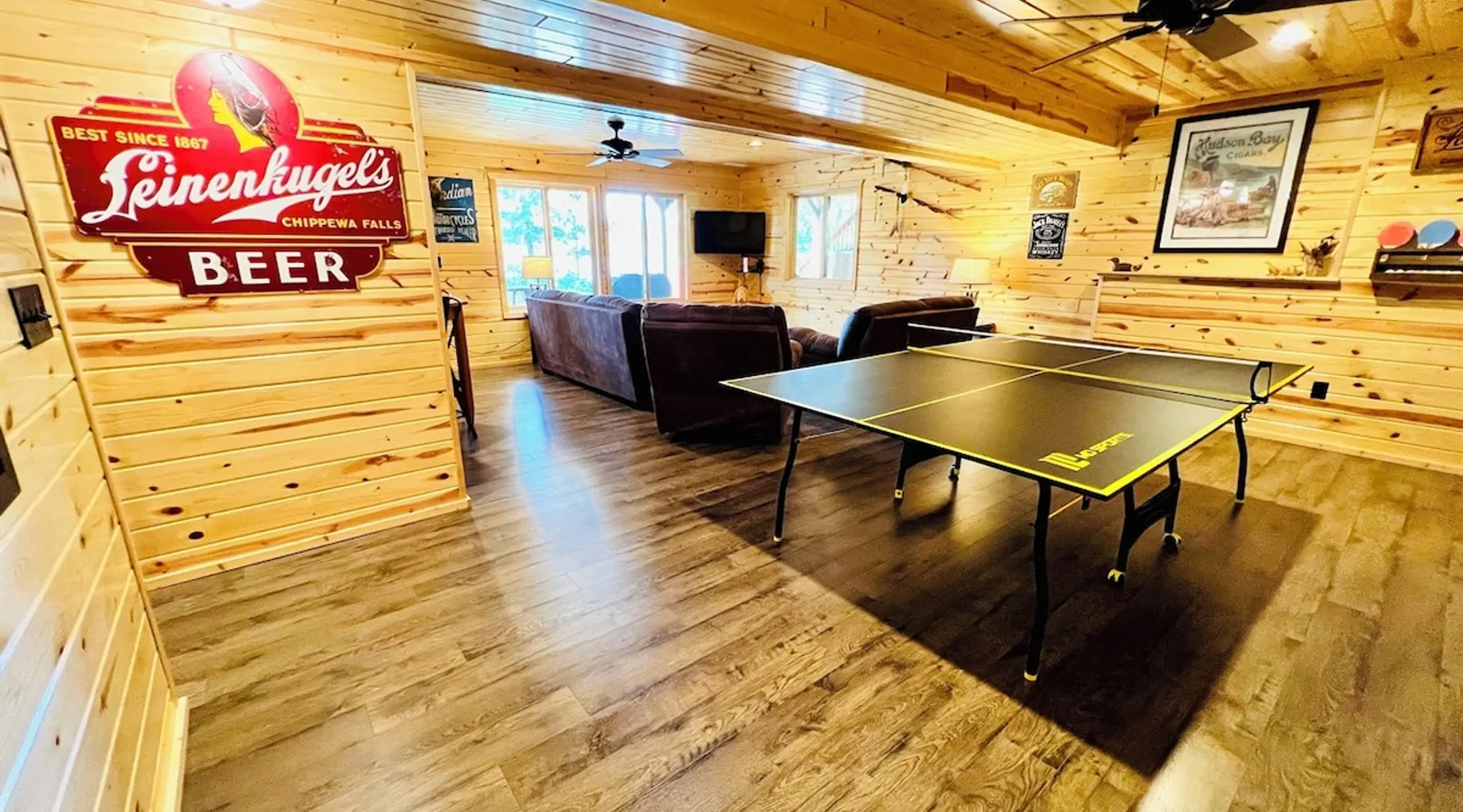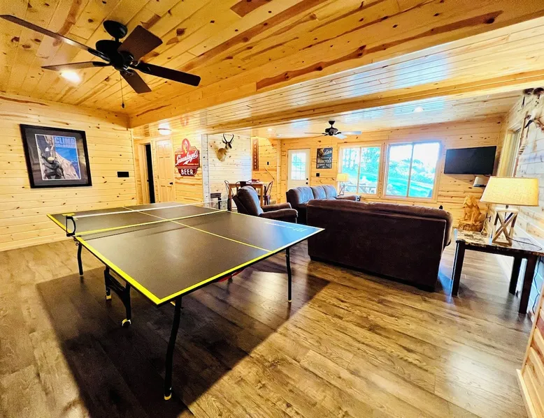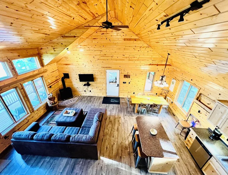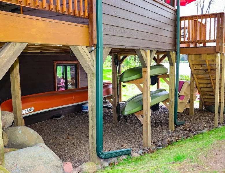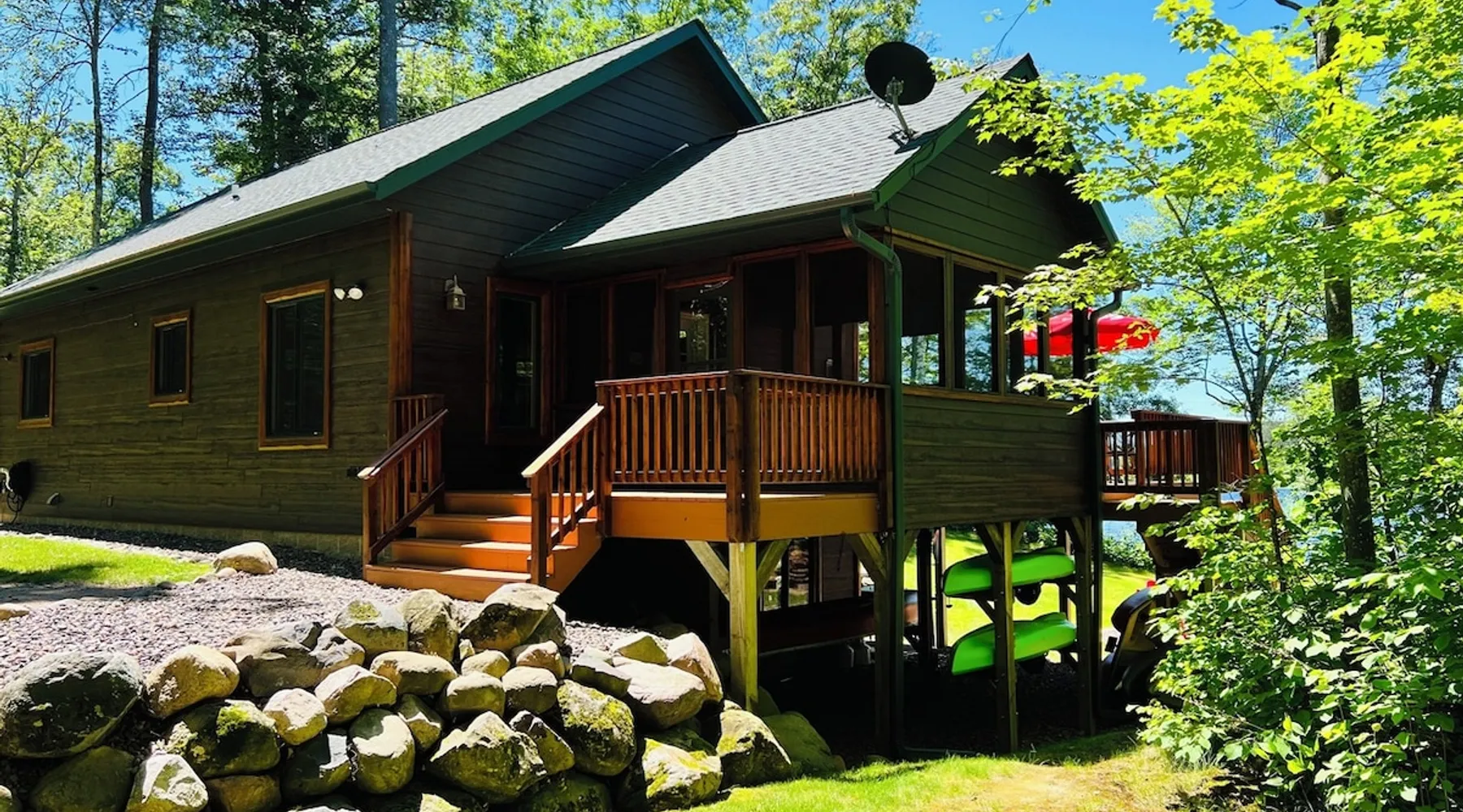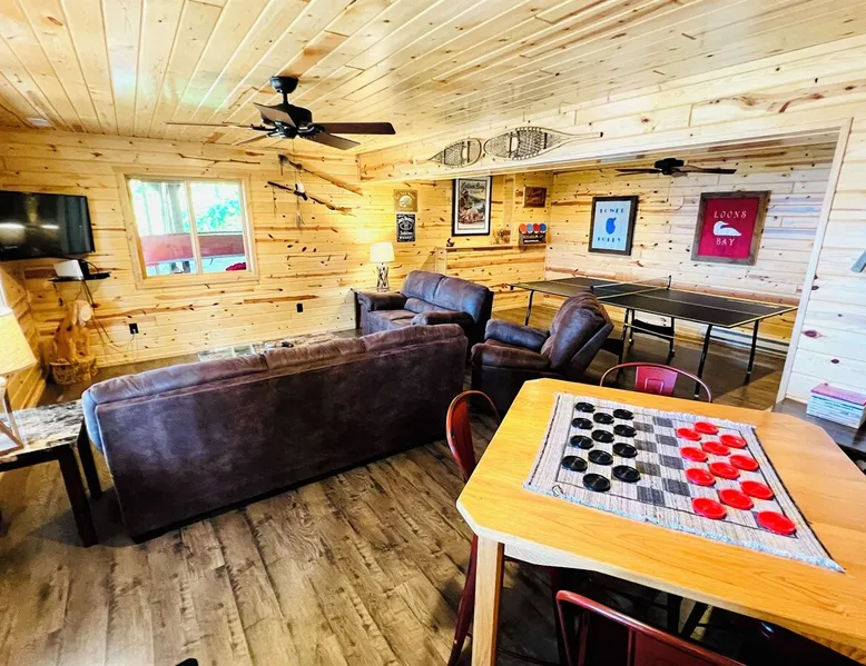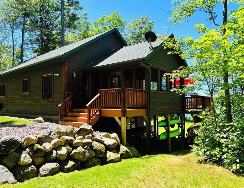 Welcome to Cattail Cabin, at O'Connell Cabin Company, your cozy retreat nestled on the shores of Lower Holly Lake, in Stone Lake, Wisconsin. This open-concept cabin, built in 2018, boasts a perfect blend of modern comfort and rustic charm. The space Cabin Highlights: • Spacious Living: With 3 bedrooms, 2 full bathrooms, and a finished walk-out basement, this 2,000 sq ft haven comfortably sleeps 8 guests. The cozy ambiance, complemented by central air and heating, ensures a delightful stay year-round. Note: The 3rd bedroom is an open loft. Great for kids. Check out the photo gallery! • Scenic Views: Take in the fantastic view of 48-acre Lower Holly Lake from the large deck or unwind in the screened-in porch. The beauty of the lake is right at your doorstep. • Entertainment Galore: The fully finished walk-out basement is a game-lover's paradise, featuring a ping pong table. For those seeking relaxation, the gas fireplace on the main floor provides warmth and charm during the winter months. • Full Kitchen: The complete kitchen, with a spacious center island, is a chef's dream. The dining table, seating 8, is perfect for shared meals and memorable conversations. Perfect Location: Cattail Cabin is ideally situated just a 10-minute drive from the charming town of Stone Lake. Explore pubs, antique stores, a micro-brew/coffee house, and a wine bar, all contributing to the town's unique charm. For those craving more excitement, the bustling town of Hayward is a short 15-minute drive away, known for its food, shopping, year-round events, festivals, and tourist attractions. Outdoor Adventures: The cabin sits on a snowmobile and ATV trail, making it a haven for outdoor enthusiasts. Cattail Cabin, with its own dock, is perfect for kayaking, canoeing, and fishing. This hidden gem offers a quiet escape with amazing fishing opportunities, including Northern Pike and pan fish. For bikers, Northern Wisconsin is home to some of the best biking trails in the world! & The CAMBA (Chequamegon Area Mountain Bike Association) trail system offers over 300 miles of trails that wind through beautiful forests, alongside pristine lakes, and over challenging terrain. Whether you're a seasoned biker or just starting out, these trails have something for everyone. Come stay with us and experience these world-class trails for yourself! Amenities Galore: Your stay includes 2 kayaks, a canoe, a pedal boat, firewood for the fire pit, and a gas griddle for outdoor feasts. We're pet-friendly, ensuring the whole family can enjoy the getaway. Inside, enjoy high-speed internet, Smart HDTVs, a king bed in the master bedroom, laundry facilities, and a collection of books and games. Cattail Cabin is more than a cabin; it's a haven where every detail has been considered to ensure your stay is unforgettable. Book your escape now and experience the tranquility and adventure that await at Cattail Cabin in Stone Lake, Wisconsin! Guest access With the exception of the storage closet in the basement, guests will have access to the entire cabin. Other things to note Parking -- We kindly ask for a 4 vehicle limit. The driveway is the only place to park and it is not very big :-). Dock Install/removal -- We usually take the dock out of the water late October (we wait as long as we can) and we usually put it back in around mid/late April (we try to get it in as soon as we can). If you are looking at dates during either of these times of the year, don't hesitate to reach out to confirm status before booking. If you are thinking of bringing your own boat, ATV's, snowmobiles, etc, get a hold of me so we can talk logistics. The road coming into the cabin is tight, and so is the driveway. Cattail Cabin is one of 4 lakefront properties that we own in the area. Click on my profile picture to view all of our properties!