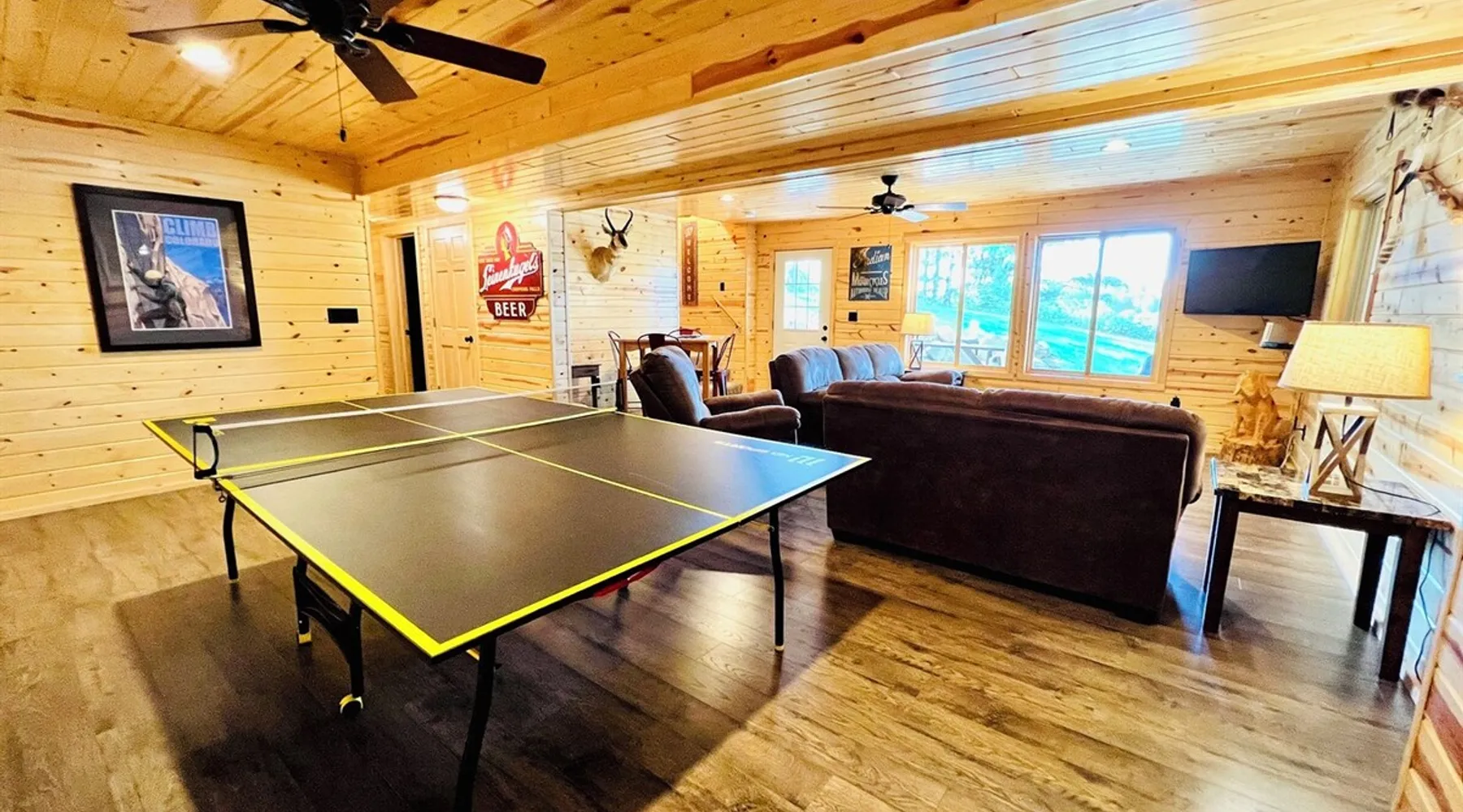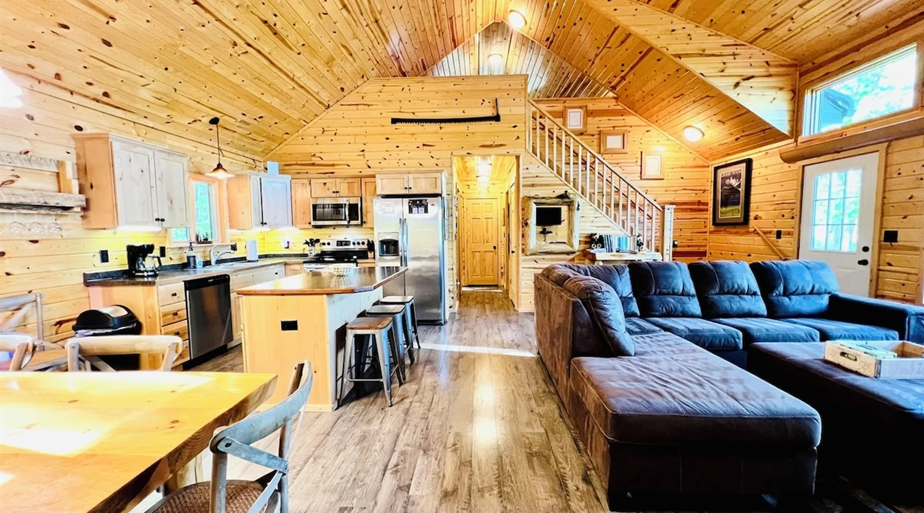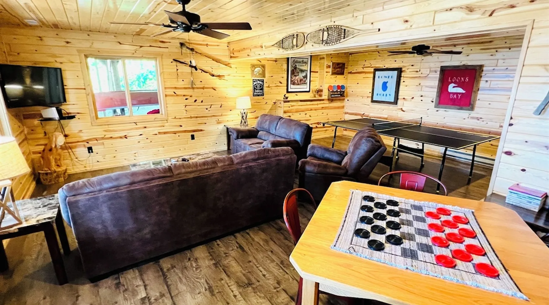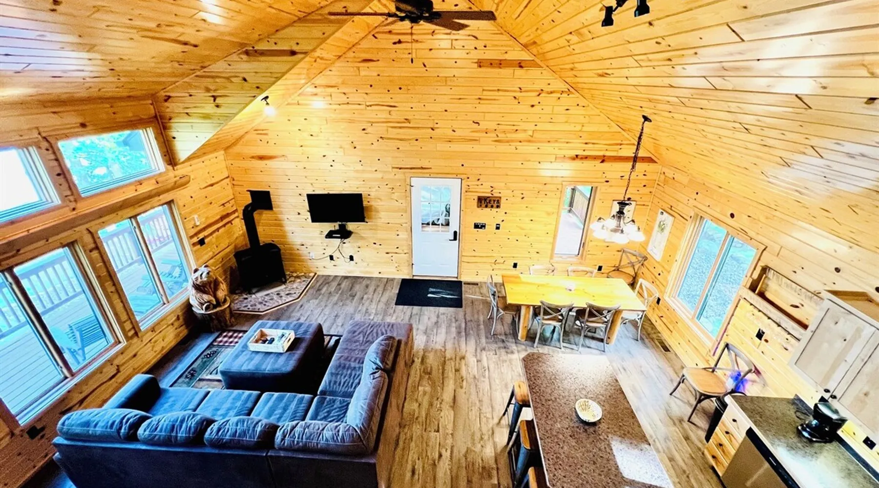 Welcome to Cattail Cabin, at O'Connell Cabin Company, your cozy retreat nestled on the shores of Lower Holly Lake, in Stone Lake, Wisconsin. This open-concept cabin, built in 2018, boasts a perfect blend of modern comfort and rustic charm. The space Cabin Highlights: • Spacious Living: With 3 bedrooms, 2 full bathrooms, and a finished walk-out basement, this 2,000 sq ft haven comfortably sleeps 8 guests. The cozy ambiance, complemented by central air and heating, ensures a delightful stay year-round. Note: The 3rd bedroom is an open loft. Great for kids. Check out the photo gallery! • Scenic Views: Take in the fantastic view of 48-acre Lower Holly Lake from the large deck or unwind in the screened-in porch. The beauty of the lake is right at your doorstep. • Entertainment Galore: The fully finished walk-out basement is a game-lover's paradise, featuring a ping pong table. For those seeking relaxation, the gas fireplace on the main floor provides warmth and charm during the winter months. • Full Kitchen: The complete kitchen, with a spacious center island, is a chef's dream. The dining table, seating 8, is perfect for shared meals and memorable conversations. Perfect Location: Cattail Cabin is ideally situated just a 10-minute drive from the charming town of Stone Lake. Explore pubs, antique stores, a micro-brew/coffee house, and a wine bar, all contributing to the town's unique charm. For those craving more excitement, the bustling town of Hayward is a short 15-minute drive away, known for its food, shopping, year-round events, festivals, and tourist attractions. Outdoor Adventures: The cabin sits on a snowmobile and ATV trail, making it a haven for outdoor enthusiasts. Cattail Cabin, with its own dock, is perfect for kayaking, canoeing, and fishing. This hidden gem offers a quiet escape with amazing fishing opportunities, including Northern Pike and pan fish. For bikers, Northern Wisconsin is home to some of the best biking trails in the world! & The CAMBA (Chequamegon Area Mountain Bike Association) trail system offers over 300 miles of trails that wind through beautiful forests, alongside pristine lakes, and over challenging terrain. Whether you're a seasoned biker or just starting out, these trails have something for everyone. Come stay with us and experience these world-class trails for yourself! Amenities Galore: Your stay includes 2 kayaks, a canoe, a pedal boat, firewood for the fire pit, and a gas griddle for outdoor feasts. We're pet-friendly, ensuring the whole family can enjoy the getaway. Inside, enjoy high-speed internet, Smart HDTVs, a king bed in the master bedroom, laundry facilities, and a collection of books and games. Cattail Cabin is more than a cabin; it's a haven where every detail has been considered to ensure your stay is unforgettable. Book your escape now and experience the tranquility and adventure that await at Cattail Cabin in Stone Lake, Wisconsin! Guest access With the exception of the storage closet in the basement, guests will have access to the entire cabin. Other things to note Parking -- We kindly ask for a 4 vehicle limit. The driveway is the only place to park and it is not very big :-). Dock Install/removal -- We usually take the dock out of the water late October (we wait as long as we can) and we usually put it back in around mid/late April (we try to get it in as soon as we can). If you are looking at dates during either of these times of the year, don't hesitate to reach out to confirm status before booking. If you are thinking of bringing your own boat, ATV's, snowmobiles, etc, get a hold of me so we can talk logistics. The road coming into the cabin is tight, and so is the driveway. Cattail Cabin is one of 4 lakefront properties that we own in the area. Click on my profile picture to view all of our properties!