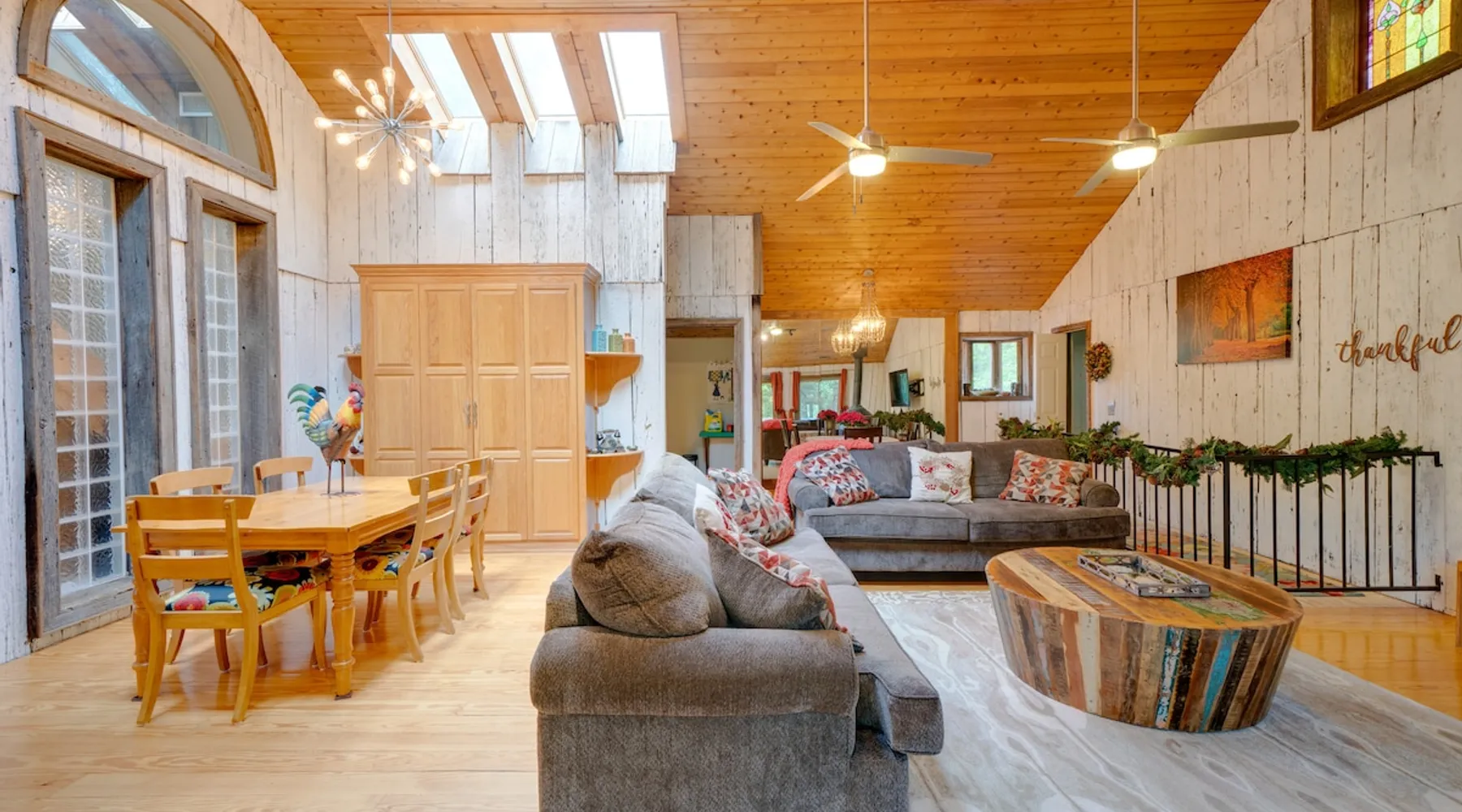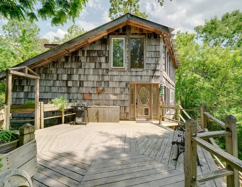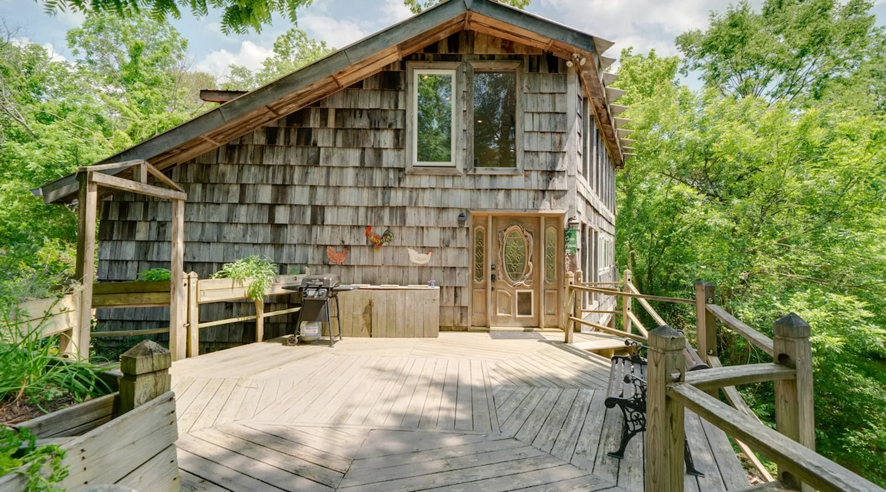 Welcome to Kelly’s Jubilee. Breathtakingly beautiful home. A place to relax and enjoy a perfect retreat from the hustle and bustle of life. Once you’ve rested you can take around a 30-minute drive to Nashville and embrace some of America’s best entertainment. We have priced this place very low so that a couple can afford this as a romantic getaway. After the first two guests, we charge $35 per person. Please be accurate with your guest count. We want to continue to keep our prices low. The space This place is fantastic! Look up Kellysjubilee online to see the Tennessee Crossroads tv show that featured us. The southern living article and a video that shows an aerial view of the property. A feast for your eyes. Beautiful inside and out. The Mansion is a three-story building with an elevator. The bottom floor is not yet completed, so we don't have pictures posted, but there is a full bathroom that large groups may have access to if needed. Also, please note...... we REQUIRE that groups also book the neighboring small treehouse. They ARE separate rentals (with seperate fees) to be clear 💕 the small treehouse is not included in the price. Here is the link for the neighboring treehouse https://abnb.me/tY2pO0VbdN Please note that the weekends are blocked off because it is our most populated rental. We save it the weekends for possible large groups. If you are interested I will unblock it for you so you may rent it at an additional fee 🥰 Both rentals share a deck and there are three hot tubs. One is private for small treehouse, one is private for mansion and one is in the middle to share for large groups. If you are having a party or have a large group and rent only the mansion it’s possible that your reservation will be canceled. I want all of our guests to have the best experience possible. For example, if a couple is renting the small treehouse and next door in the mansion there is a group it could affect the quiet enjoyment of their stay. Groups that rent both treehouses will have an exclusive private experience with no shared decks or hot tubs. It is a win-win for all involved. The Mansion is located on a 50 plus acre property with 7 homes. One of the homes is the original homestead, an authentic log cabin. The land has hiking trails, a labyrinth, A pond to catch and release fish, and a creek that runs year-round. The large 6 person hot tub is on a deck overlooking the creek. On the farm, we have several other cool rentable spaces. An authentic civil war cabin. An Ark that was recently featured in Southern Living magazine and hotel incredible Currently, we live in the four-story lighthouse tower because the renovation is not yet completed. There is even a meeting hall or reception area that seats 50 plus people. Kelly’s Jubilee . Com has discounted prices available ask us for a discount code to further lower the price Other things to note Please note we require a rental contact to be signed after booking via SignRequest. Also, we have one Ring doorbell camera at the front door. The Ring camera will be on during your stay. We REQUIRE that groups also book the neighboring small treehouse. They are separate rentals. I want all of our guests to have the best experience possible. Furthermore, there are several other vacation rentals on this property. We ask that guests do not invade other people's privacy and look in windows or open doors of other buildings. We are more than happy to schedule a time to give you a tour. Please be accurate with your guest count. We charge $35 per person after the first two. If not reported it is $50 per person per day. There is also a resort fee for visitors not spending the night. (We have had issues with guests booking for 2 and planning a party for a large group) This is not allowed. We live on-site. If this happens you will be asked to leave and not given a refund. For your convenience, we have installed a top of the line 3m reverse osmosis water filtration system. This will save you from having to purchase bottled water. Our cleaning fee is VERY low. We do this to save our guests money, in return we ask that you leave it as clean as possible. Such as washing, drying, and PUTTING AWAY dishes that you may use. If the kitchen is used clean the stove, microwave, and coffee maker. Please note that if the house is not left clean we will be deducting a cleaning fee from your security deposit. This property is located in a lush and nature-filled environment. There are many species of animals and insects that live here. It is against the law to spray outside for flying insects because the house is located on the water. Bug spray is a good idea in the summer months to avoid mosquito bites. We do spray inside, but there are still occasional insects, wasps, or bees. There are many wonderful birds to watch, including owls, great blue herons, wild turkeys, cardinals, and songbirds. The koi pond and creek attract many animals. There is a freshwater otter family that lives on the north side of the property. Unfortunately, there is the occasional snake, please be mindful. If hiking beware of poison ivy. To make your stay as enjoyable and as safe as possible we ask that you abide by the following rules. Children must be supervised at ALL times. Hot tub hours: 9 am to 11 pm unless you have rented the treehouse and treehouse mansion together. Then you will not be disturbing another guest. Please limit the number of guests in the hot tub to 4 or 5 people otherwise it overflows. Please shower prior and don't use oils or lotions. No glass or alcoholic beverages in the hot tub. Be mindful of noise levels if there are other guests in the small treehouse. Absolutely no sexual activity in the hot tubs. You will be asked to leave and not given a refund. It is not sanitary nor considerate to other guests.