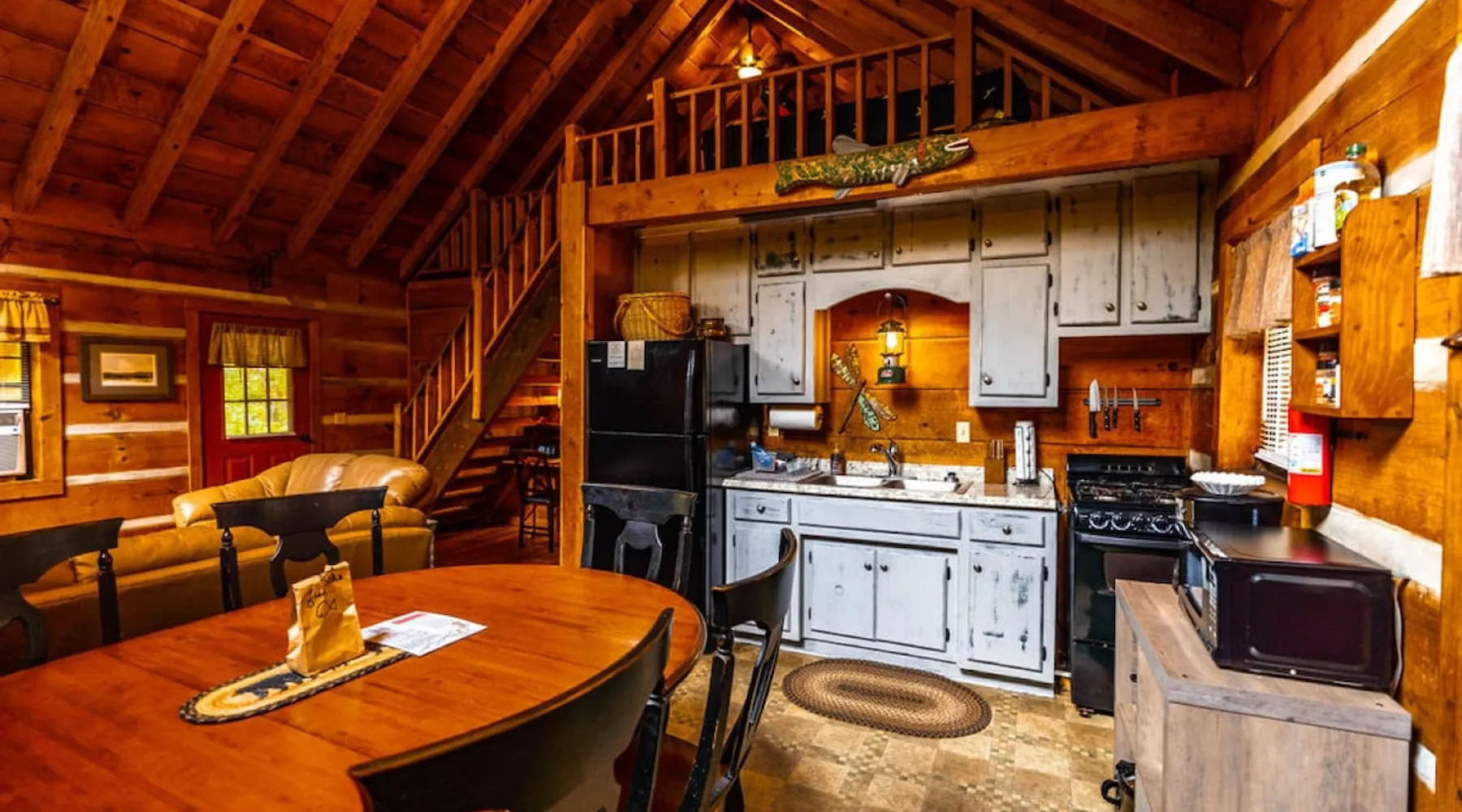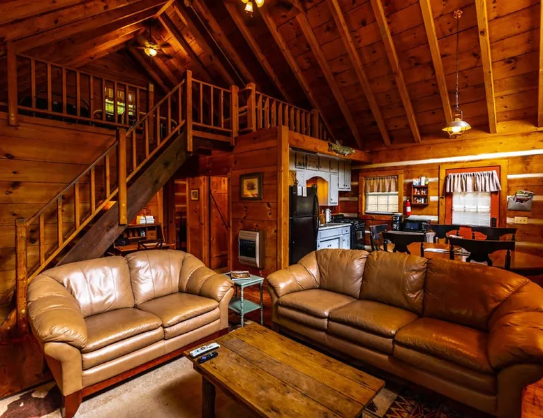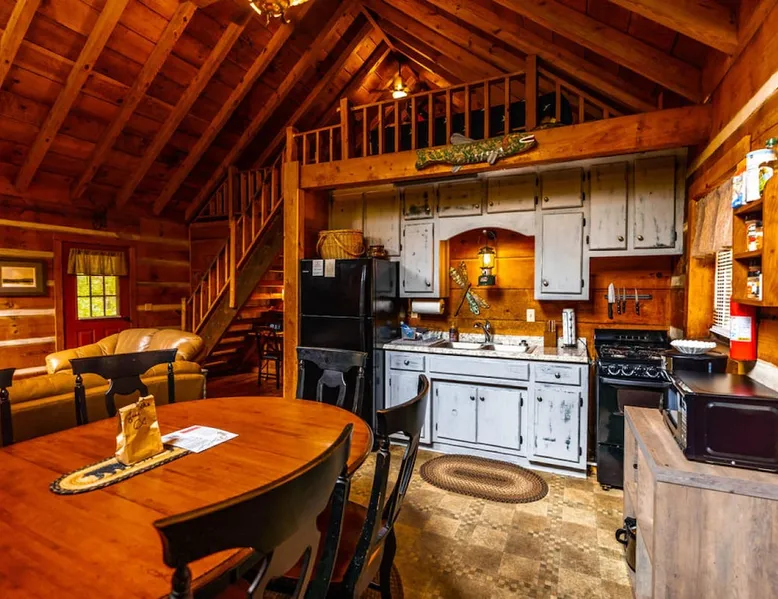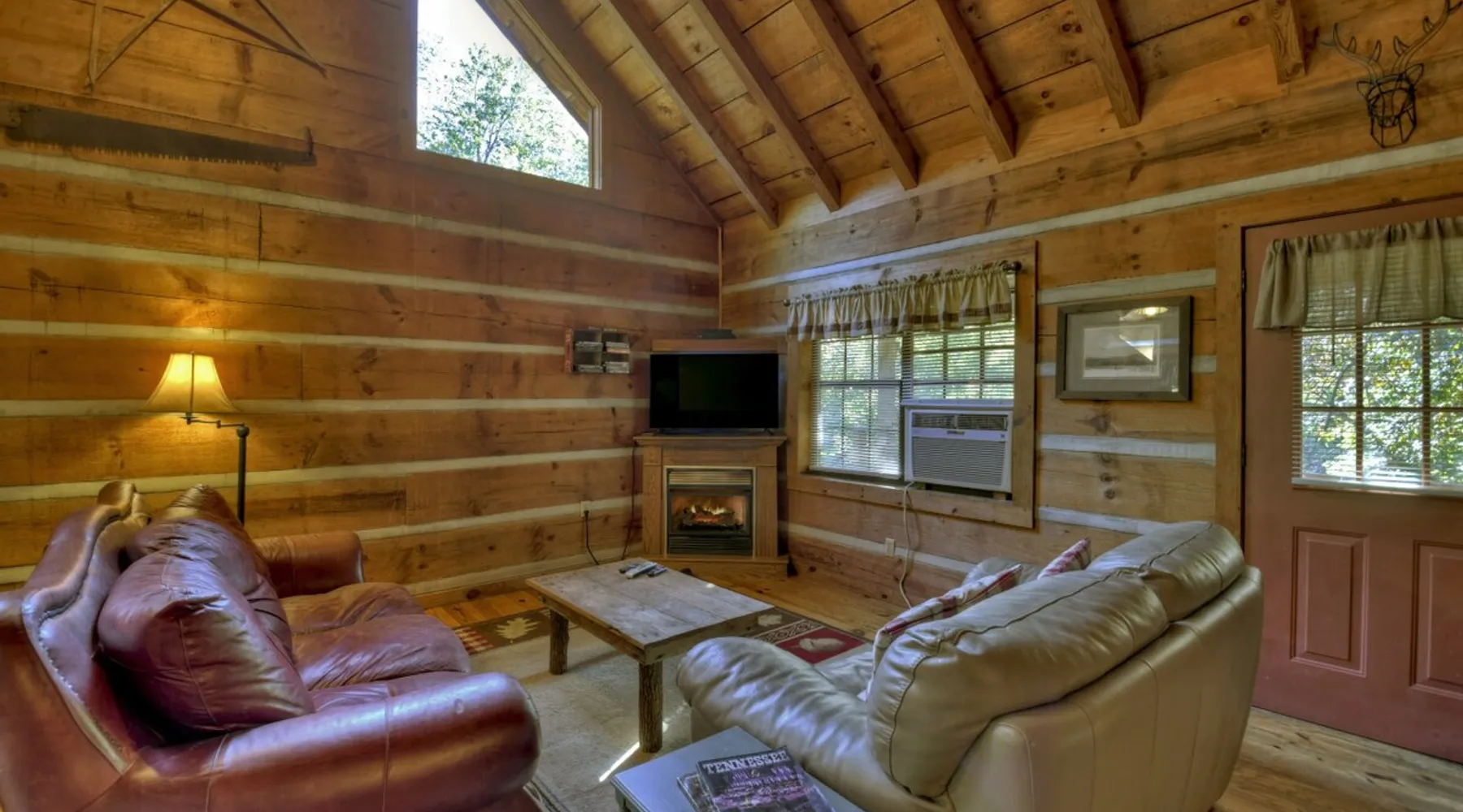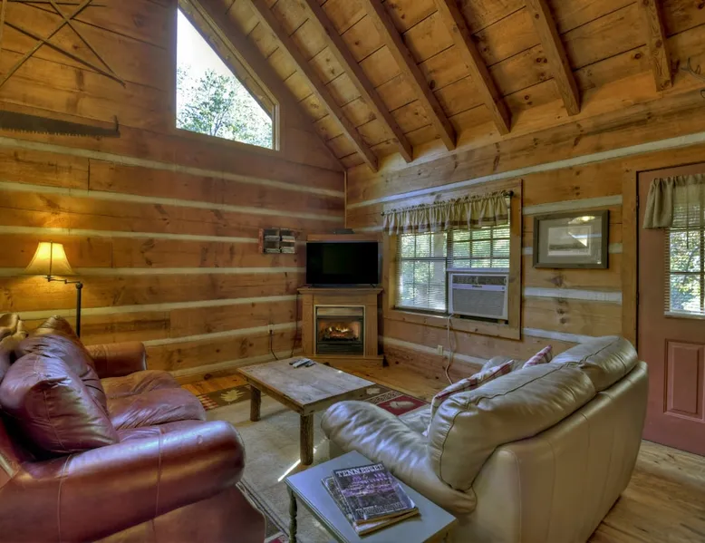 Cabin #1 can sleep up to 8 guests comfortably, making it ideal for a family getaway. There are three bedrooms in total; the first contains a queen-size bed, the second has a double bed, and the sleeping loft is comprised of a double bed and 2 twins. Our scenic property offers 8.5 acres of serenity with 4 rustic/modern cabins (with HOT TUBS) and 3 high-end glamping tents. Also included: the use of our "Lodge" building which includes: Pool Table, Ping-Pong, Juke-Box Style Music System & more The space The charming interior boasts a rustic vibe thanks to the wooden decor, and features a couple of sofas in the living room for guests to kick back and enjoy some down time together in front of the TV, which is set up with Roku streaming tv's and a DVD player. A fireplace keeps guests warm in winter while the AC keeps you cool in summer. The kitchen is equipped with everything you might need to prepare a hearty home-cooked meal, which can be enjoyed at the dining table for 6. Outside, there's a covered wooden porch with a hot tub! Also on the porch are a couple of rocking chairs, the best place to enjoy your morning morning coffee. There's lots of lawn space around the cabin where you will find a gas grill, forestry style charcoal grill and a picnic table. Shared facilities on site include a horseshoe pit, fire rings / pits for evening camp fires, a stocked fishing pond, and the use of our "Lodge" building. Come and enjoy your Tennessee vacation at our lovely Copperhill Cabin! Oh, and let's not forget one of the most important parts of your stay, you will get to meet "Rona" - The Welcome Dog. Everybody loves Rona! You can also BOOK THE ENTIRE PROPERTY for up to 38 people for your next reunion, retreat, wedding, birthday extravaganza, or just because you can! Here's the link: airbnb.com/h/minimountainresort Book the stay that you and your family will remember for a lifetime! Guest access Access everything within the cabin and on the porch. The stocked catch & release fishing pond, large fire rings, small stream and "The Lodge" are all accessable to guests. Other things to note PETS: We are dog friendly with the following restrictions…. * We have a pet who roams the property. She is small and friendly and will approach you and/or Your dog in a friendly manner. It is imperative that your pet be other dog friendly. All pets must be approved before making a reservation and additional pet fee of $75, for two well-behaved pets (two dogs 45 lbs and under OR one larger dog allowed) * No pit bulls, rottweilers, Dobermans, mastiffs, chows or wolf-mixes allowed. * In cabins, pets must not be left alone or unsupervised unless they are secured in your portable kennel. LODGE: The Lodge is open to all guests to use. There is a pool table, ping pong table, surround sound with Spotify, large screen TV, table games and more. The Lodge is open until 11 PM each night. Please respect the equipment in The Lodge so that others can enjoy them too. Broken pool sticks, ping pong paddles, etc. can result in damage fees. During the winter months, the Lodge will be closed if temperatures drop below 35 degrees Fahrenheit. The Lodge closes at 11 pm. There are rules to using the music system posted. Please abide by the posted rules for music selection.