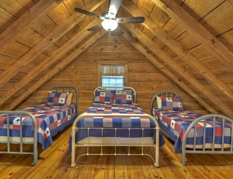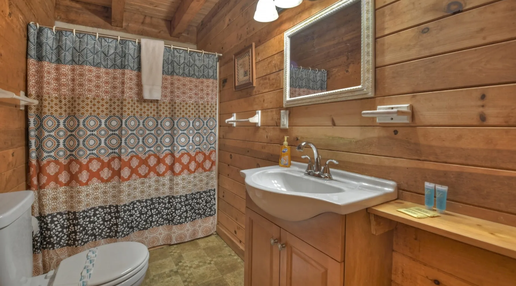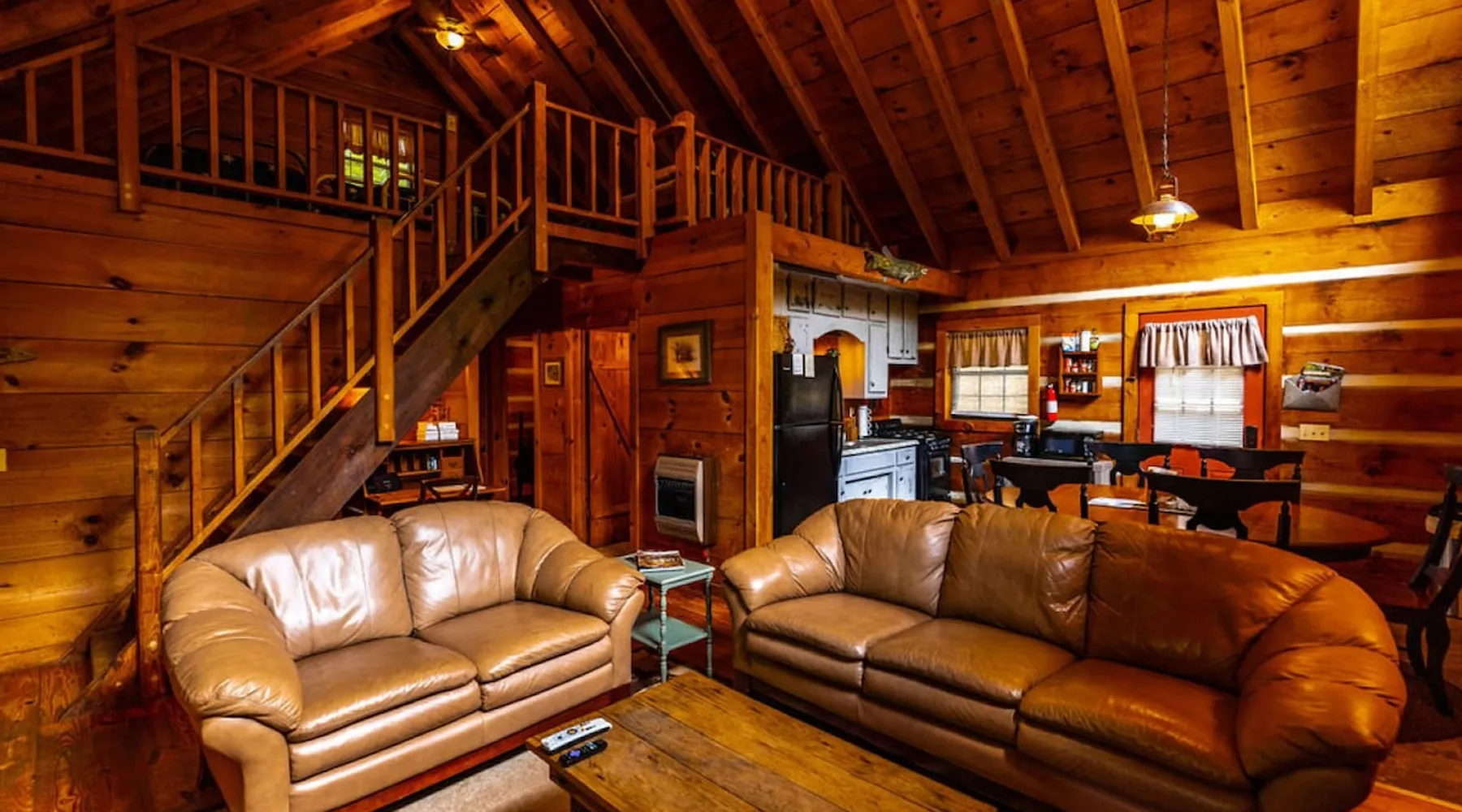 Cabin #1 can sleep up to 8 guests comfortably, making it ideal for a family getaway. There are three bedrooms in total; the first contains a queen-size bed, the second has a double bed, and the sleeping loft is comprised of a double bed and 2 twins. Our scenic property offers 8.5 acres of serenity with 4 rustic/modern cabins (with HOT TUBS) and 3 high-end glamping tents. Also included: the use of our "Lodge" building which includes: Pool Table, Ping-Pong, Juke-Box Style Music System & more The space The charming interior boasts a rustic vibe thanks to the wooden decor, and features a couple of sofas in the living room for guests to kick back and enjoy some down time together in front of the TV, which is set up with Roku streaming tv's and a DVD player. A fireplace keeps guests warm in winter while the AC keeps you cool in summer. The kitchen is equipped with everything you might need to prepare a hearty home-cooked meal, which can be enjoyed at the dining table for 6. Outside, there's a covered wooden porch with a hot tub! Also on the porch are a couple of rocking chairs, the best place to enjoy your morning morning coffee. There's lots of lawn space around the cabin where you will find a gas grill, forestry style charcoal grill and a picnic table. Shared facilities on site include a horseshoe pit, fire rings / pits for evening camp fires, a stocked fishing pond, and the use of our "Lodge" building. Come and enjoy your Tennessee vacation at our lovely Copperhill Cabin! Oh, and let's not forget one of the most important parts of your stay, you will get to meet "Rona" - The Welcome Dog. Everybody loves Rona! You can also BOOK THE ENTIRE PROPERTY for up to 38 people for your next reunion, retreat, wedding, birthday extravaganza, or just because you can! Here's the link: airbnb.com/h/minimountainresort Book the stay that you and your family will remember for a lifetime! Guest access Access everything within the cabin and on the porch. The stocked catch & release fishing pond, large fire rings, small stream and "The Lodge" are all accessable to guests. Other things to note PETS: We are dog friendly with the following restrictions…. * We have a pet who roams the property. She is small and friendly and will approach you and/or Your dog in a friendly manner. It is imperative that your pet be other dog friendly. All pets must be approved before making a reservation and additional pet fee of $75, for two well-behaved pets (two dogs 45 lbs and under OR one larger dog allowed) * No pit bulls, rottweilers, Dobermans, mastiffs, chows or wolf-mixes allowed. * In cabins, pets must not be left alone or unsupervised unless they are secured in your portable kennel. LODGE: The Lodge is open to all guests to use. There is a pool table, ping pong table, surround sound with Spotify, large screen TV, table games and more. The Lodge is open until 11 PM each night. Please respect the equipment in The Lodge so that others can enjoy them too. Broken pool sticks, ping pong paddles, etc. can result in damage fees. During the winter months, the Lodge will be closed if temperatures drop below 35 degrees Fahrenheit. The Lodge closes at 11 pm. There are rules to using the music system posted. Please abide by the posted rules for music selection.