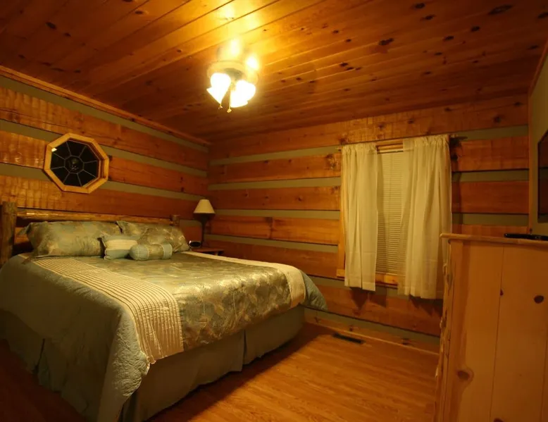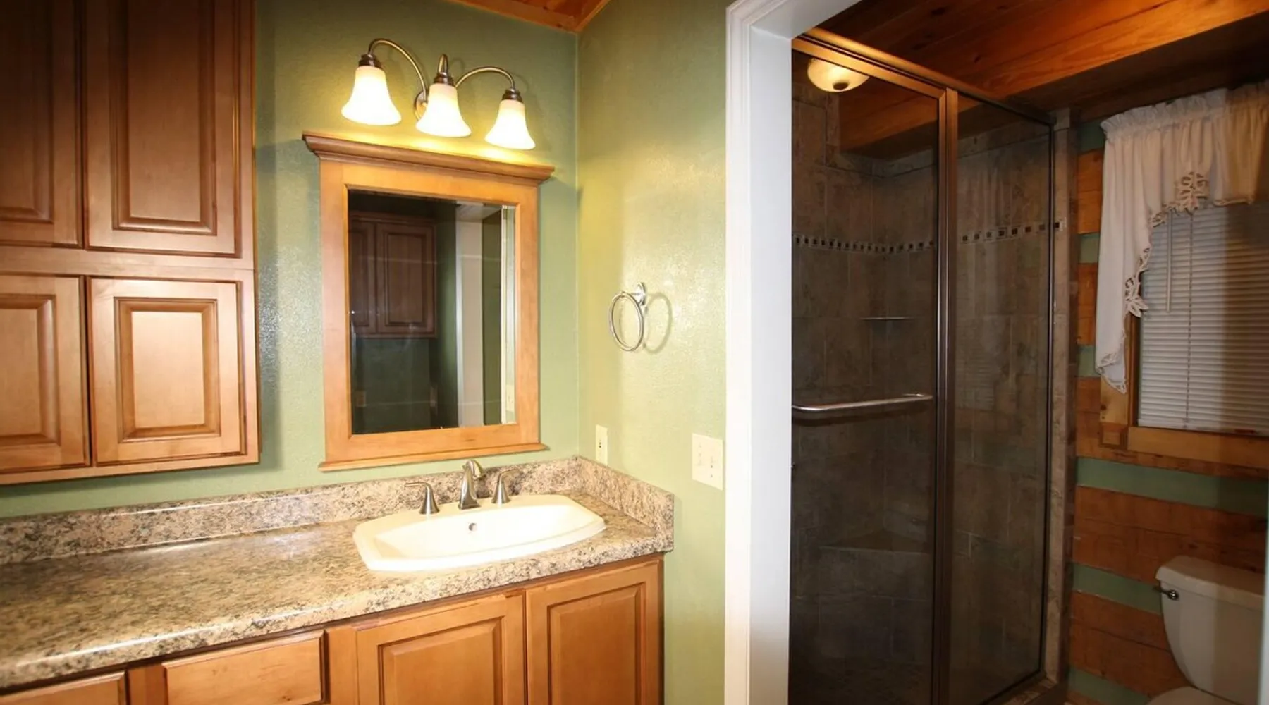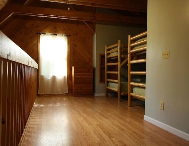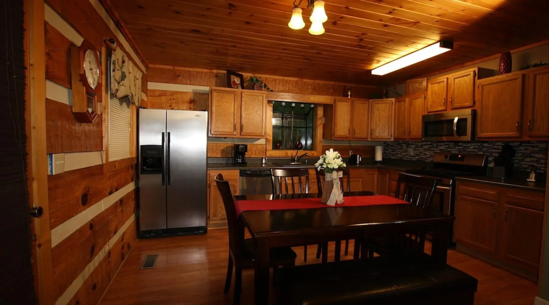 Welcome to Cub Creek, a 3-bedroom luxury cabin that provides the perfect space to enjoy family time together. Conveniently located just 5 miles from the main Pigeon Forge Parkway you will be just minutes away from all the local attractions. This hand-hewn log cabin provides the perfect base for spending your days exploring then heading back to the cabin for a little peace and tranquility. The space Just imagine sipping your morning coffee from the front porch swing while listening to the sounds of the small creek. Unwind together… This comfortable two-level home means there’s plenty of space for family time but also somewhere to escape for a little peace and quiet. Everyone will love their accommodations in one of the 3 bedrooms. Cub Creek offers two king bedrooms and one queen bedroom plus a loft with 2 sets of twin bunk beds. The unique fenced in yard provides a safe space for your family to enjoy outside. Let the kids play on the playground while the adults relax in the hot tub or at night you can gather the family around the fire pit for smores. Eat together… Whether you are preparing a family feast or just a snack, the fully equipped kitchen has everything you need to cook up the perfect meal and the BBQ/Grill and picnic table means outdoor cooking and eating can also be on the menu. Play together… When you’re not out exploring all that Pigeon Forge has to offer, you can spend time chilling and chatting, challenging one another to a game of air-hockey or Foosball or try to beat the highest score on the 60-game arcade. Bring your popcorn because the theater room equipped with projector screen, sound system and tiered theater seating will feel just like you are at the movies. Whether your idea of the perfect getaway is action packed days or relaxing peace and quiet, Cub Creek is the perfect place for your family to make memories together! Free Fun Included Every Day! To enhance your vacation experience free admissions to some of the area's most popular attractions are included - with a daily value of $640. You will receive one free ticket per day per group to each of the following: Dollywood, Dolly’s Splash Country, Anakeesta, Titanic Museum, Wonderworks, Beyond the Lens, Country Tonite, Big Creek Expeditions, Top Jump, Crave Golf, Paula Deen’s Adventure Park, Legacy Zipline, Alcatraz East Crime Museum, Rocky Top Coaster, Rowdy Bear Snow Park, Paula Deen’s Lumberjack Feud, Soaky Mountain Water Park, Comedy Barn and The Grand Majestic Theater. Tickets are not cumulative but do reset each day. There is no limit to the number of attractions you can visit in a day. Guest access There is a wheel chair ramp to access the cabin and the yard. All rooms downstairs, with the exception of the queen bedroom, have door openings large enough to accommodate a wheel chair. The tiled shower includes a seat. The upstairs is not accessible by wheelchair. Other things to note Must be 25 or older to rent - photo ID required