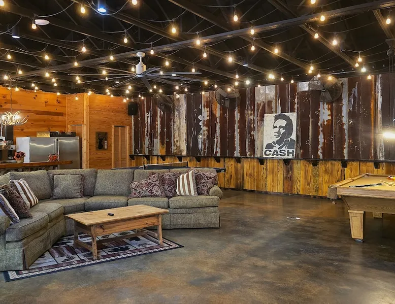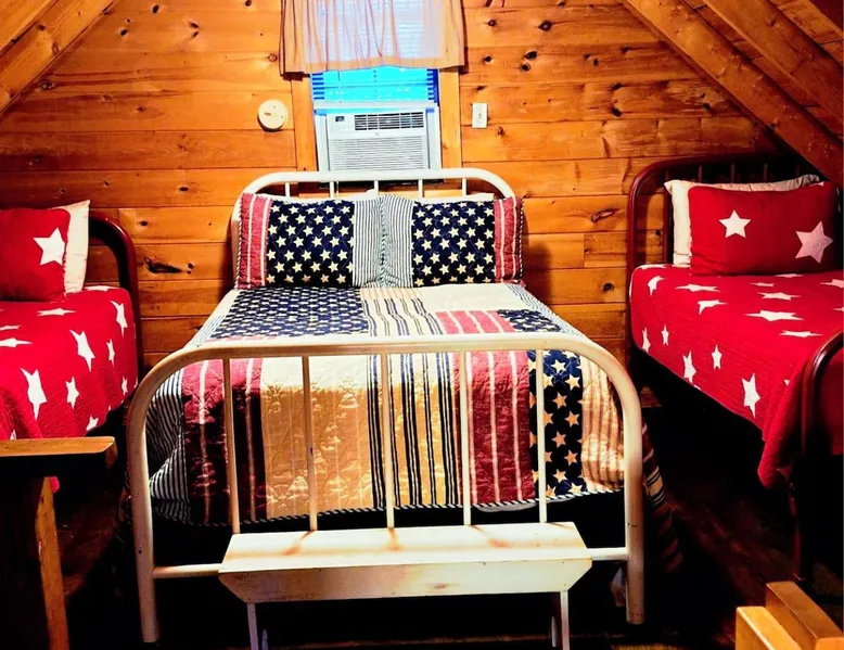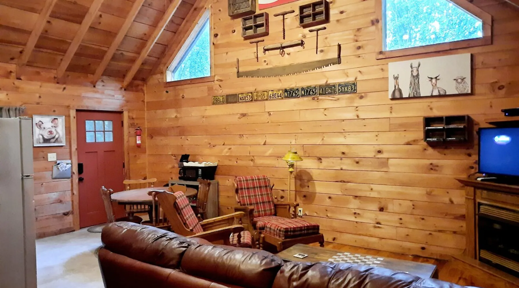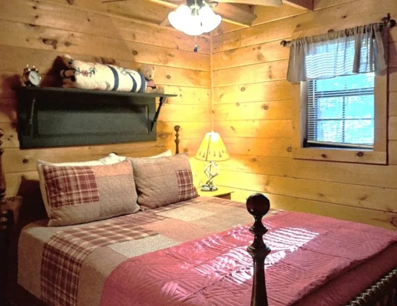 Seeking adventure? A quiet reprieve? We've got it all in Copperhill! Cabin #4 can sleep up to 8 guests comfortably, making it ideal for a family getaway. The charming interior boasts a rustic vibe thanks to the wooden decor, and features a couple of sofas in the living room for guests to kick back and enjoy some down time together in front of the TV, which is set up with Roku streaming tv's and a DVD player. Use The Lodge (pool and ping pong tables, juke box system, fire rings & more)! The space Wander the grounds or fish (catch & release) at the 1/2 acre stocked pond. The property is great for grabing a blanket and having a piknic or stargazing in the large open area. Guest access Access everything within the cabin and on the porch. The stocked pond, large firepit and small stream are all accessable to guests. Fishing poles are also available at no additional charge. Other things to note PETS: We are dog friendly with the following restrictions…. * We have a pet who roams the property. She is small and friendly and will approach you and/or Your dog in a friendly manner. It is imperative that your pet be other dog friendly. All pets must be approved before making a reservation and additional pet fee of $75, for two well-behaved pets (two dogs 45 lbs and under OR one larger dog allowed) * No pit bulls, rottweilers, Dobermans, mastiffs, chows or wolf-mixes allowed. * In cabins, pets must not be left alone or unsupervised unless they are secured in your portable kennel. LODGE: The Lodge is open to all guests to use. There is a pool table, ping pong table, surround sound with Spotify, large screen TV, table games and more. The Lodge is open until 11 PM each night. Please respect the equipment in The Lodge so that others can enjoy them too. Broken pool sticks, ping pong paddles, etc. can result in damage fees. During the winter months, the Lodge will be closed if temperatures drop below 35 degrees Fahrenheit.