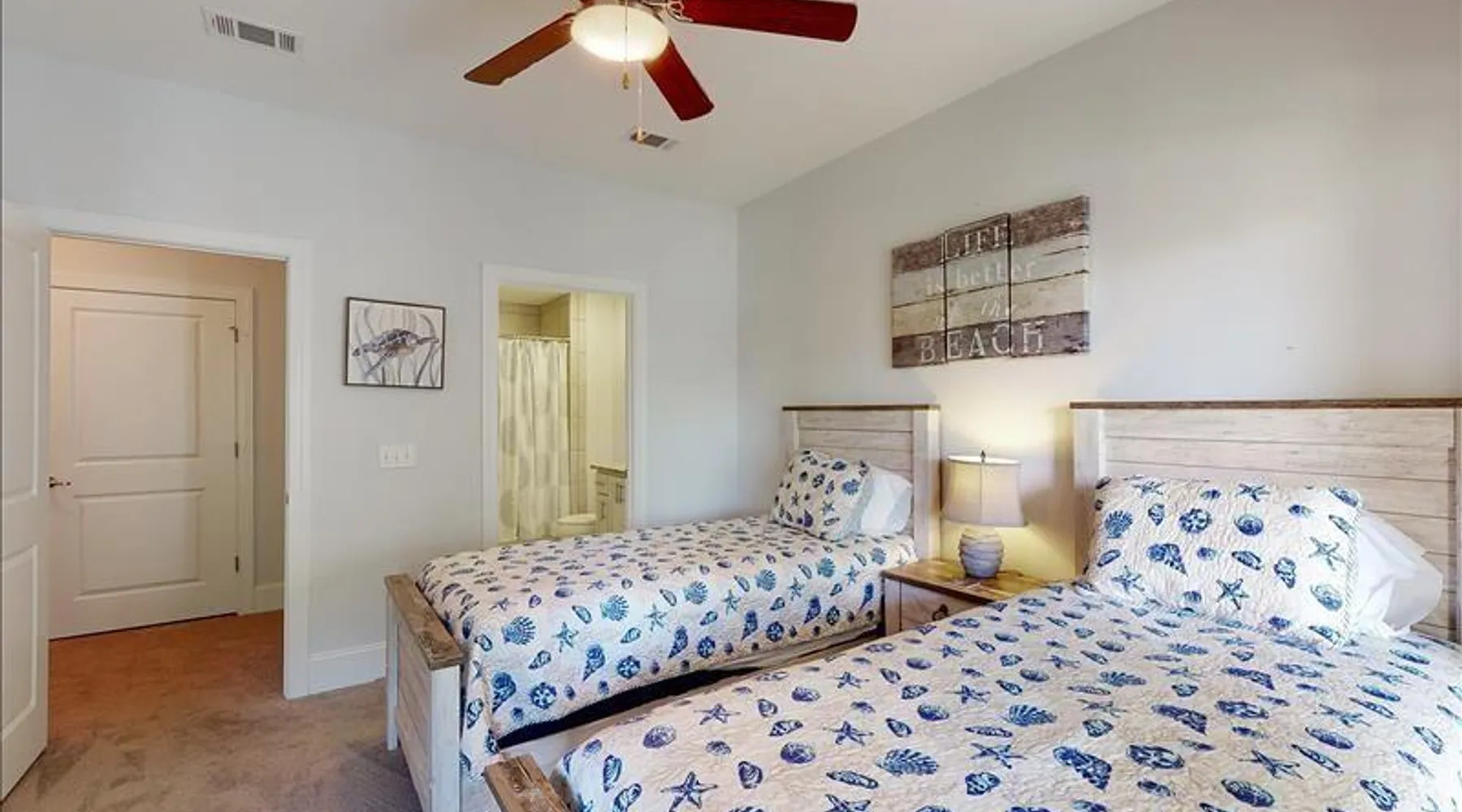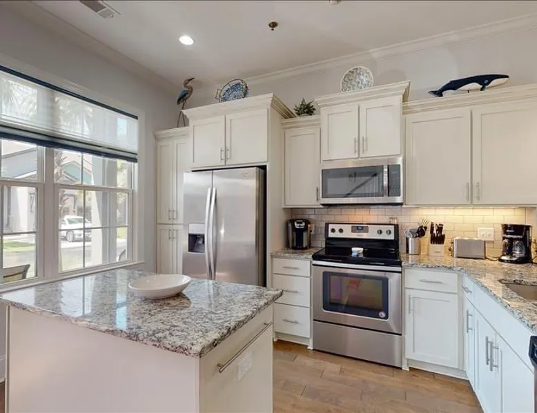 Garden Cottage 70 Island Time Cottage Come stay a while! The space This 3 bedroom, 3.5 bathroom cottage-style townhome, decorated in rich tones and colorful artwork, will be sure to make any vacation brighter! The first floor is home to a large master bedroom (King) with en suite bathroom, with access to the screened-in porch, as well as a fully equipped kitchen. The kitchen boasts stainless steel appliances and both a standard and a Keurig coffee machine, as well as a bar top perfect for entertaining. Off the kitchen, you will find the spacious living room, perfect for unwinding after a day at the beach, as well as access to the lower screened-in porch and outdoor patio with gas grill. The first floor also includes a powder room and a convenient laundry closet. The second-floor houses two bedrooms (KING & 2 XL TWINS) each with a private bath and access to the upper balcony, perfect for enjoying the fresh air. This cottage is conveniently located just steps from The Cottages North Beach Access. In addition, guests have access to The Cottages at Jekyll Island's million-dollar amenities, which include Clubhouse, zero-entry pool and fitness, beach deck, beach and a community firepit. 2 Parking Spaces - No trailers of any kind allowed. Linens included. 2 KING & 2 XL TWINS This cottage is the "Heron" floorplan and accommodates 6. Coffee maker: Keurig and standard coffee pot NO SMOKING NO PETS If our no pet or no smoking policy is broken, a $1000 fine will be charged AND you will be asked to vacate the property without a refund. THE COTTAGES BEACH ACCESS: The Cottages beach is approximately 2000 linear feet and has a dune area and seawall that runs the length of the Cottages oceanfront property. There are 3 dune crossovers to the sand area landside of the seawall that are always accessible, and that area can be used for recreational purposes. The access to the beach over the seawall is centrally located at the pool & clubhouse. At high tide, the water is at the seawall. The tides change every 6 hours from low to high tide. A tide chart will help you plan your beach time. The nearest beach park with ocean access all day is Oceanview Beach Park, appx 2 miles south just past the Holiday Inn. You may view all Jekyll Beaches by visiting the Jekyll Island website under the Beaches tab. DUE TO STORMS THAT CAN CAUSE DAMAGE TO THE BEACH CROSSOVER TO THE OCEAN, WE DO NOT GUARANTEE BEACH ACCESS ON-SITE MANAGEMENT IS LOCATED IN THE CLUBHOUSE