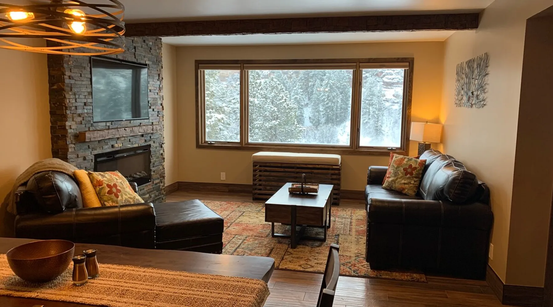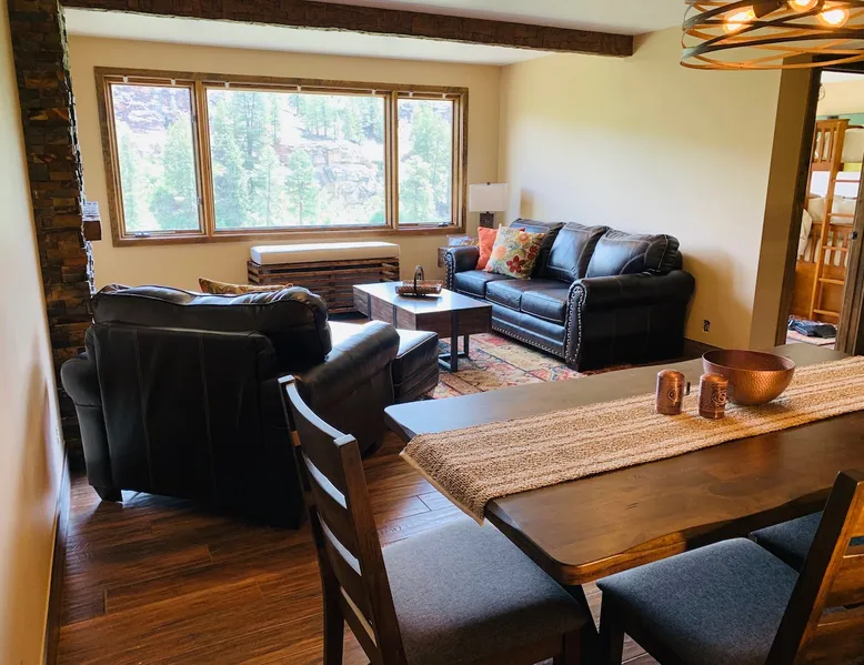 This unit was remodeled with all new kitchen, stainless steel appliances, all new furniture, new queen bunk with twin lofted bunk and twin trundle, and second bedroom with King. This two-bedroom, two-bath is UNIQUE as one of the only custom multi-bedroom units in the Tamarron Lodge with access to Glacier Club Fitness and amenities, Golf Course, a premier Durango golf destination, with discounted golf tee times. The space The charm of this cozy condo is undeniable. It was renovated with a hip and fun interior with artwork to be inviting and colors to make you right at home in Durango. Guest access The condo and all the amenities are yours to access. Other things to note This is one of the few units in the original Tamarron lodge that have been converted to a 2B/2B unit with in unit laundry. Get the rustic and cozy feel of a cabin with all the amenities of a resort. Tamarron Lodge is located in the GLACIER community. This unit is 20 minutes north of Durango downtown and 10 minutes from Purgatory Resort. This is a sought after area far enough from Durango to have the sounds and landscape of the San Juan Mountains while still close enough to drive into town for an afternoon or evening at local shops and restaurants.