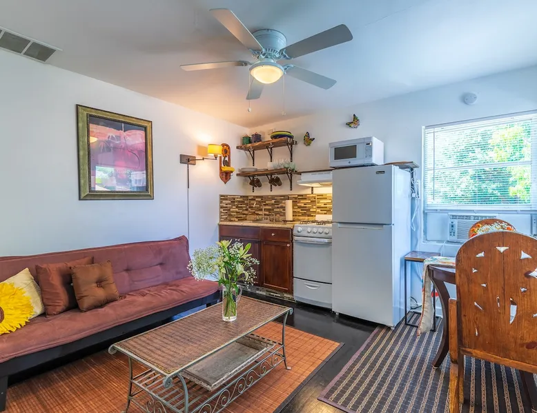 Beautifully elegant suite with a relaxing touch. A pleasant mix of Hispanic and Modern decor in a newly renovated living area complete with all necessities such as free wifi and parking. The suite is located MINUTES away from all of Sarasota's famous hotspots! It is down the street from Jungle Gardens. A 10minute walk to The Ringling Museum. 10minute drive to Downtown, 15 minute drive to both Siesta Key and St. Armand's Circle. It could not be located more ideally! Come relax in Arcadia! The space Come relax in the epitome of tranquility in our completely renovated guest suite located right in the center of one of the most historic and charming neighborhoods in all of Florida! Sapphire Shores Arcadia offers all of the comforts of a prime, relaxing suite while also being located close to all of the hotspots of Sarasota including Jungle Gardens, Selby Gardens, Marina Jacks, Lido Key, Siesta Key, and Downtown. Sapphire Shores Arcadia boasts a stylish space complete with full renovations on the entire space and entrance. The space has been designed specifically for your comfort and tranquility. The space is designed for the perfect getaway for one to two guests to come relax in one of the nicest cities in all of the U.S. Once you arrive you will find yourself wanting to walk through the historic Bay Shore Rd where you can imagine yourself traveling back through history beneath the ancient oak trees of Sarasota as they flank the expansive mansions of the street. None more so well known than the famous Ca d’Zan Mansion, lying within the equally famous Ringling Museum. Or perhaps you may simply desire to visit the Sarasota Bay on the other end of Bay Shore and behold one of the most breathtaking sunsets our world has to offer. Our cozy suite is one unit of a two unit home. It is physically separated from the main house, allowing our guests complete and total privacy in their vacation. Guests will have their own private kitchen and dining area, bathroom, and bedroom as well as parking and a private outdoor patio and garden beneath a lychee tree. A Roku TV is also provided that comes with Sling TV, Netflix, Hulu, and Amazon Prime Video. These are all for you Kitchen equipment such as microwaves and stoves will be provided. Please use to your hearts content! All the features and amenities of Sapphire Shores Arcadia are for your use only. Guest access The guests will have access to all of the suites amenities including private kitchen and accessories, bathroom, bedroom with TV. The TV comes with Hulu, Netflix, and Amazon Video available for the guests to use freely. Guests have total access to all three video streaming platforms free of charge with the exception of any purchased/rented content on Amazon Video to which the guest may purchase through their AirBnB reservation. Beach accessories such as towels and chairs are also provided for your use. Private parking along with a private garden are also included. The white shell parking on the right side of the house in front of the wooden gates is your own personal parking space. Your living space is through the wooden doors that leads into the garden. Make yourself at home! Other things to note Guests have their own personal parking. It is the white shell space directly in front of the Wooden Doors on the right side of the house.