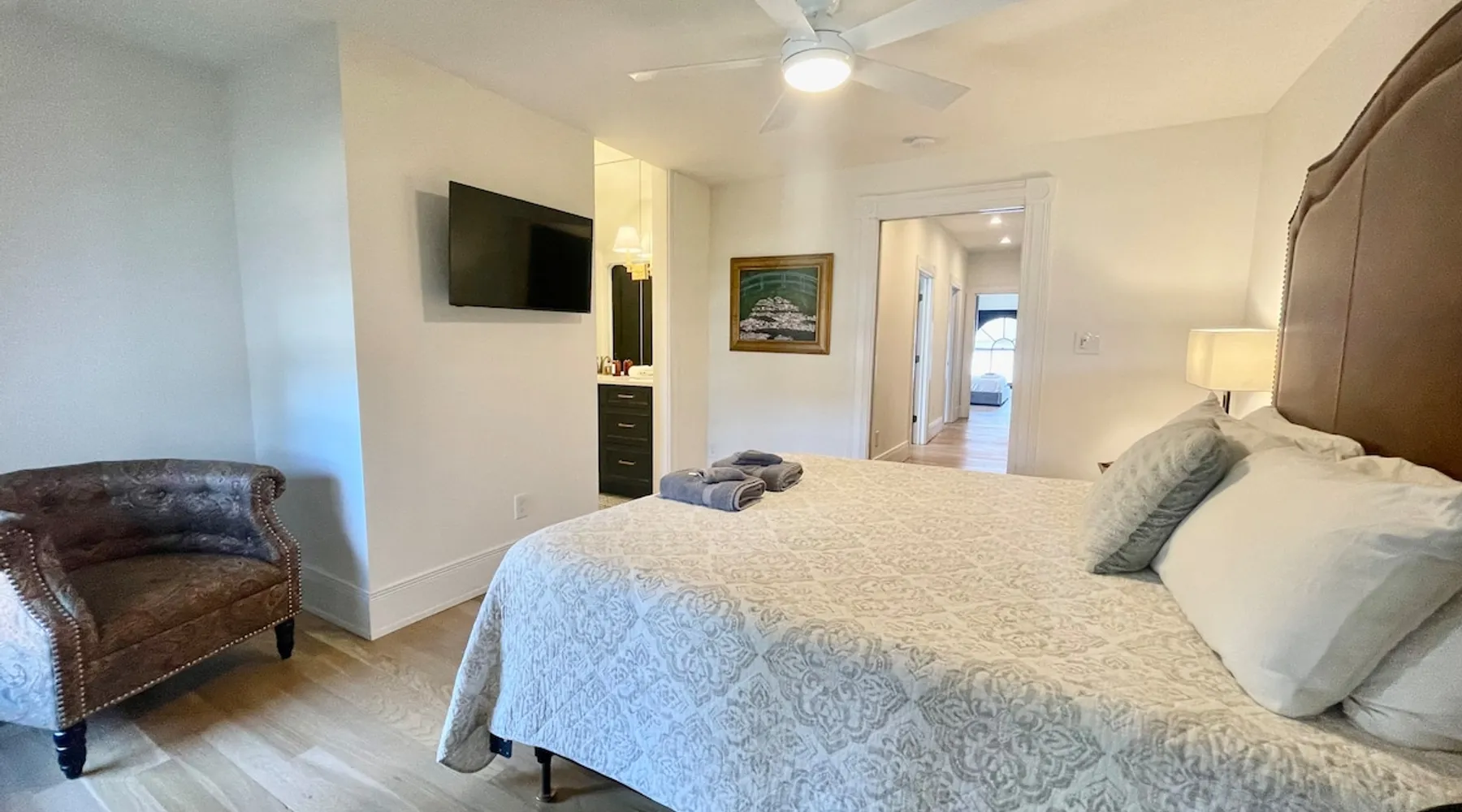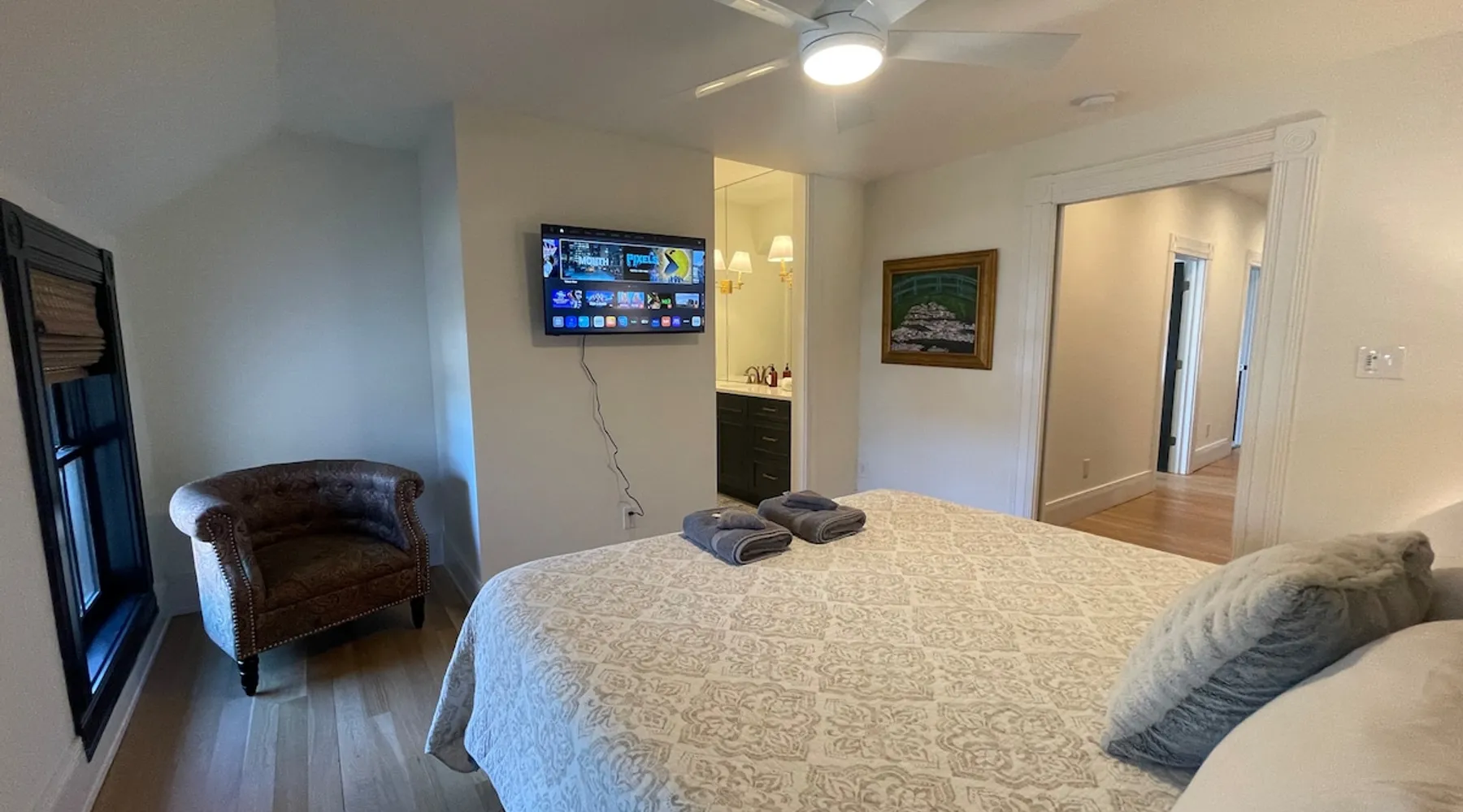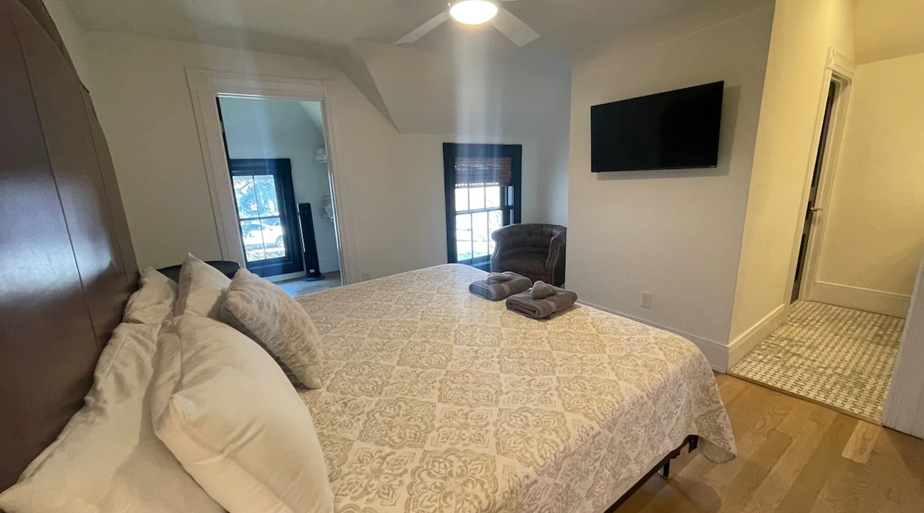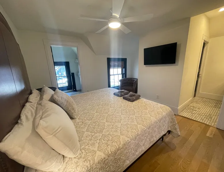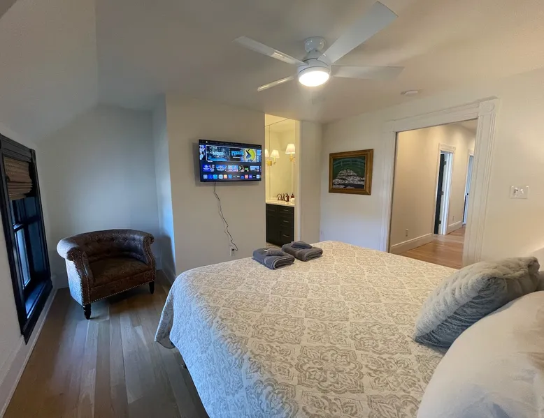 Walk to Big Ears Festival this Spring! Experience beautiful East Tennessee in epic fashion by staying in this elegantly decorated 3-story townhome. Perfect for groups of 9-12 who want to be downtown. Just steps from multiple breweries, restaurants, and shops. ✔ Highly Walkable Location ✔ 3 Bedrooms + Bunk Room ✔ Luxury Bathrooms ✔ Fully Equipped Kitchen ✔ Smart TV's ✔ High-Speed Wi-Fi ✔ Washer/Dryer The space Note: If bringing a pet, please make sure to read the pet fee information under additional rules. The pet fee is a separate charge from the reservation. Your group will enjoy high ceilings, large windows, and impressive artwork throughout. Ideal for larger groups with enough space to spread out, as well as to gather together. ✺ LIVING ROOM ✺ Relax on a comfy sofa and watch your favorite movie or show with friends or family. There is a 1/2 bathroom just off the Kitchen & Dining room area. ✔ Comfortable Sofa with Pillows ✔ 55" Smart TV ✔ Coffee table ✺ KITCHEN & DINING ✺ The kitchen features custom cabinetry w/ Stainless steel appliances and offers plenty of working areas with spacious countertops and island. Grab some fresh ingredients from the nearby Three Rivers Grocery Market and prepare some delicious homemade meals. ✔ Dining Seating for 8 + Island seating for 3 ✔ Microwave ✔ Stove ✔ Oven ✔ Refrigerator/Freezer ✔ Dishwasher ✔ Keurig Coffee Maker ✔ Toaster ✔ Sink - Hot & Cold Water ✔ Glasses ✔ Silverware ✔ Pots & Pans ✔ Cooking Utensils ✺ GUEST BEDROOM #1 ✺ ✔King-Size Beds with Pillows, Linens, and Sheets ✔ Closets with Hangers and Shelves ✔ Night Stand with a Reading Lamp ✺ GUEST BEDROOM #2 ✺ ✔(2) Twin Beds with Pillows, Linens, and Sheets ✔ Night Stand with a Reading Lamp ✺ Hall Bathroom✺ ✔ Large Vanity & Mirror ✔ Plenty of lighting ✔ Walk-in Marble Shower w/ Glass surround ✔ Towels ✔ Hair Dryer ✔ Essential Toiletries ✺ MASTER BEDROOM w/ Ensuite Bathroom ✺ ✔ King-Size Bed with Oversized Headboard complete w/ Pillows, Linens, and Sheets ✔ Walk-in Closet with Hangers and Shelves ✔ Night Stand with a Reading Lamp ✔ Luxury Full Bathroom w/ Walk-in Marble shower ✔ Towels ✔ Hair Dryer ✔ Essential Toiletries ✺ 3rd Floor Bunk Room ✺ The Bunk room features (2) Queen sized bunk beds + (1) Twin Bed & a Full bathroom ✔ (2) Queen Beds with Pillows, Linens, and Sheets ✔ (1) Twin Bed with Pillows, Linens, and Sheets ✔ 55" Smart TV ✔ Full Bathroom Guest access Guests will have access to the entire 3 story townhome. Other things to note * There is a constructions near by - likely to hear loud noises during the day. **You agree that the pet fee charge is a separate charge than the reservation fee. More details in the House Rules. Take note: We have not had any issues, but as a precaution we do ask that guests please be sure to lock your car and ensure no valuables are left inside vehicles. Additionally, due to the size of the home the Hot Water can run out quickly if multiple showers or appliances are running continuously, and it is advised the guests spread out shower use accordingly. IMPORTANT NOTICE: Guests will be provided a link to our Guest Portal to complete within the first 48 hours after booking to verify booking details. For any questions regarding the Guest Portal feel free to send us a message. ALL RESERVATION CHANGES OR CANCELLATIONS are best completed within the FIRST 48 HOURS after confirmed booking. All guests please take into consideration our strict cancellation policy. If there is a chance you would need to cancel your reservation it may benefit you to purchase travel insurance to insure you receive your desires reimbursement. Halo Hospitality is NOT responsible for insuring our guests. The area may have some homeless individuals occasionally passing through or nearby. While it hasn’t posed any issues for past guests, we always want to be transparent so you can make the best decision for your comfort.