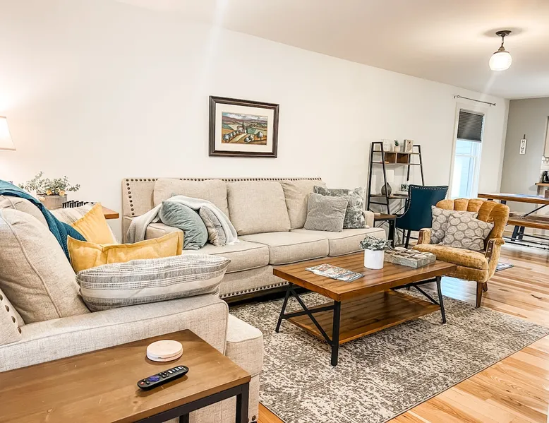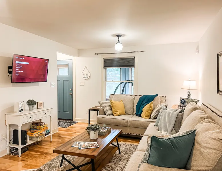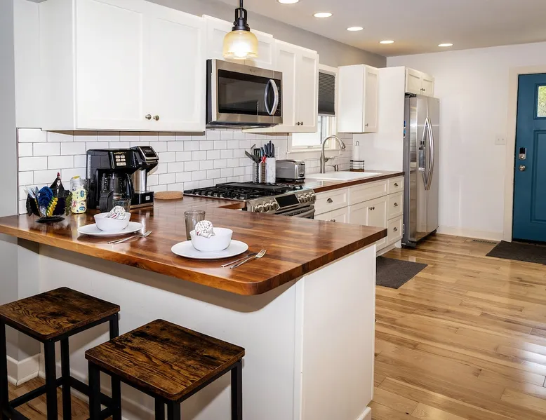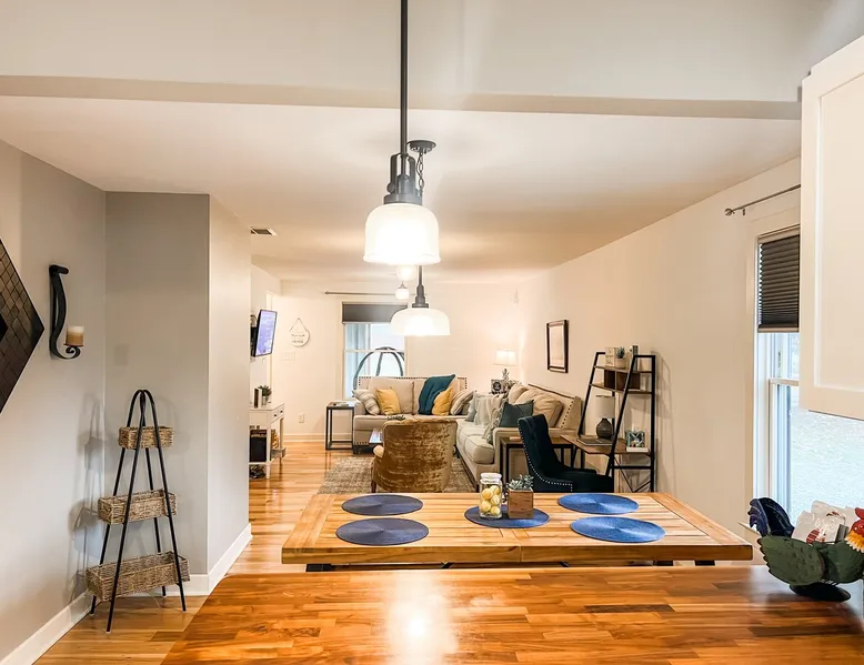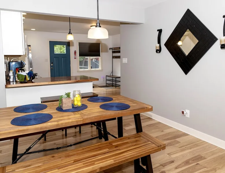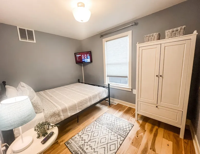 Book your getaway at this completely remodeled 1920's farmhouse - conveniently located on the line Indianapolis and Brownsburg/Hendricks County. Easy access to I-74, I-65, and I-465 and 16 miles from the airport (IND). Race fan? This house is 2.5 miles from Lucas Oil Indianapolis Raceway Park and 7 miles from Indianapolis Motor Speedway. Enjoy the outdoors? Spend a day at nearby Eagle Creek where you can hike, swim, fish, and boat. Enjoy the lake views and fresh seafood at Rick's Cafe Boatyard. The space Contact host for pricing for Monthly Specials between January 2024-March 2024! Get ready to cozy up in this charming farmhouse that's just calling your name. Step inside and you'll find an open layout that connects the chill living room, dining area, and a updated kitchen – it's all about good vibes and relaxation. And if you're bringing your work along, don't worry, we've got a dedicated laptop-friendly zone set up. When it's time to catch some Z's, you've got two bedrooms on the main level, both with queen-sized beds that are just waiting for you to dive into. No need to wait for the bathroom either – there are two on the same level. One comes with a tub/shower combo for those soak-worthy moments, and the other keeps it sleek with a shower. Upstairs, there's another bedroom that's got three twin beds, and let's not forget about that huge walk-in closet. This is a great room for kids! Got some laundry to do? No sweat, we've got a washer and dryer ready to roll. And for all your entertainment needs, we've hooked you up with Smart TVs so you can stream to your heart's content. Plus, the WIFI is totally on point. Now, let's talk about the great outdoors. This farmhouse sits pretty on an entire acre, surrounded by peaceful horse pastures. The front porch is perfect for just chilling, and if you're in the mood for some outdoor fun, there's a firepit and picnic area that's totally yours to enjoy. You'll love the one of a kind mural of Indiana to use as a backdrop for insta-worthy shots of your group. Parking? No problem at all – the circular driveway has got you covered, and there's even space for those bigger vehicles. If you're rolling in with an RV or a boat, just shoot a message to the host and they'll give you more information. Long story short – this farmhouse is all about good times and feeling right at home. Don't wait too long, book your spot now and get ready for some serious relaxation. Guest access Guests have acces to the entire home and acre property. No access to garage and barn. No street parking but there is plenty of parking in the large driveway. Guests can access the house with a smart lock - code provided before checkin. Other things to note Exterior security cameras at front door, back door, and driveway. Please remember that you're staying in a house, not a hotel. Please treat the space with respect and be mindful of neighbors. If any problems arise, we will do our best to take action ASAP, but there is no one living on site 24/7. Please note our properties are privately owned homes, and therefore sometimes appliances or household systems (HVAC, Plumbing, etc) may unexpectedly malfunction. While we will do everything in our power to address any functionality issues as quickly as possible, we cannot offer refunds- full or partial, cancellations, or alternate accommodations unless the property is deemed uninhabitable. Thank you for understanding!