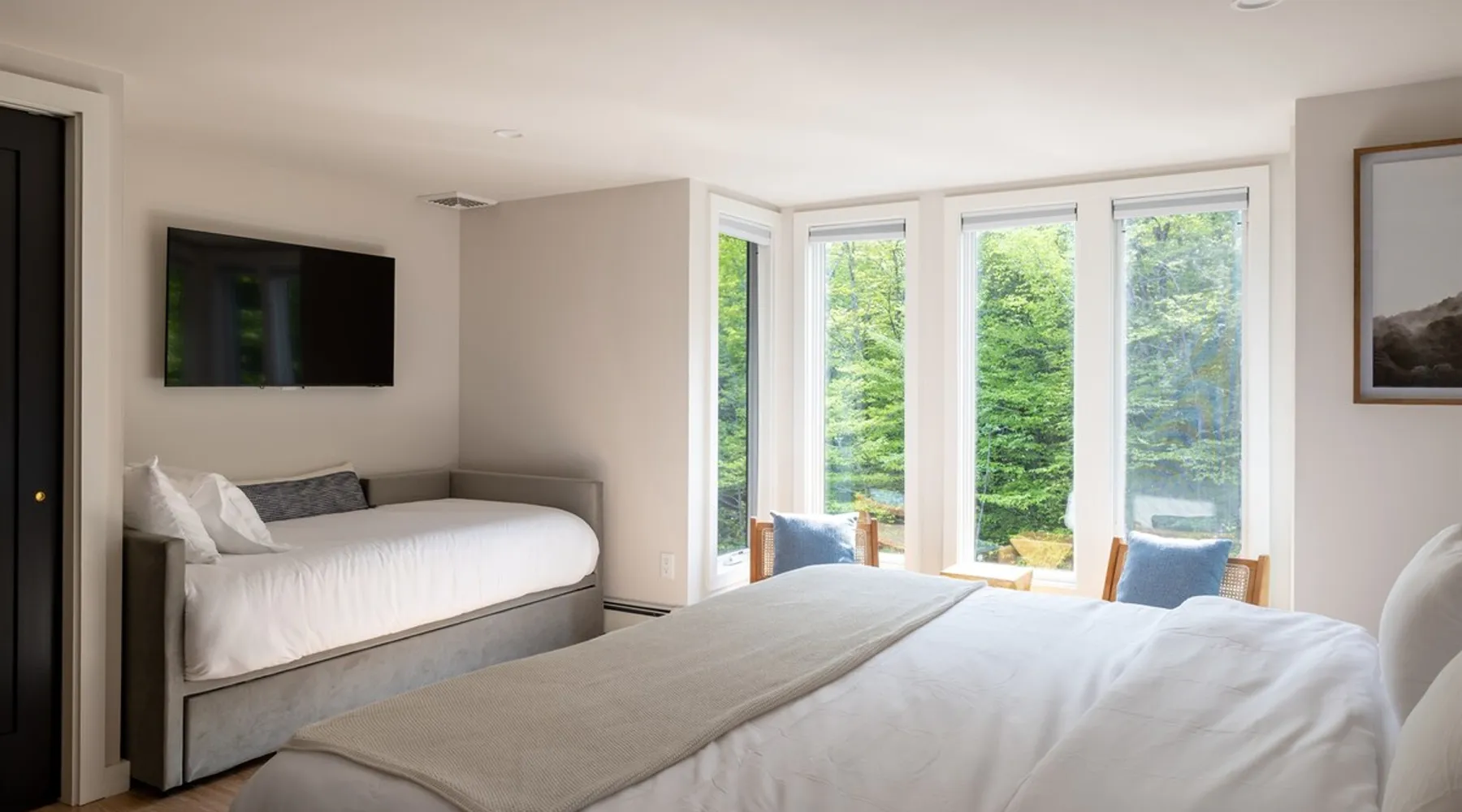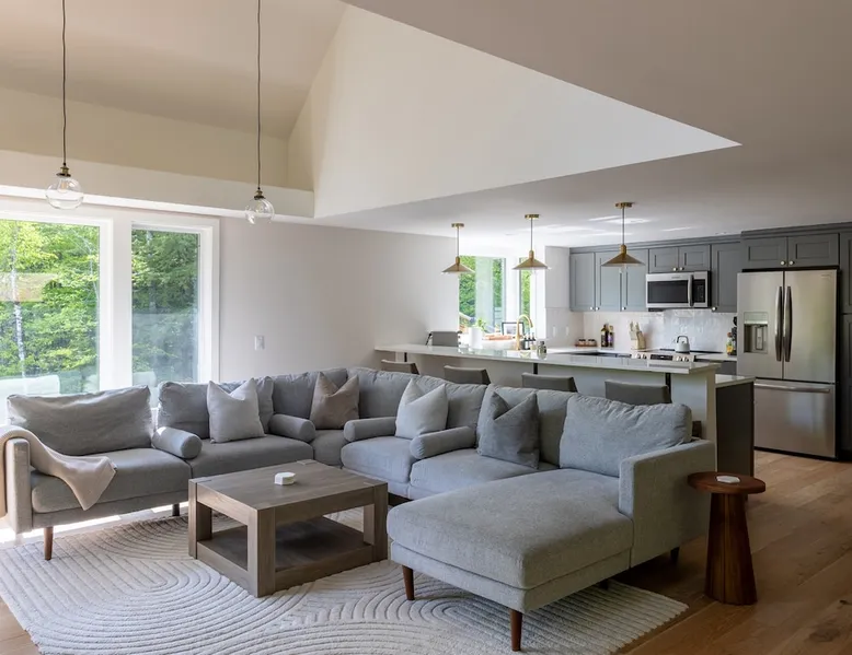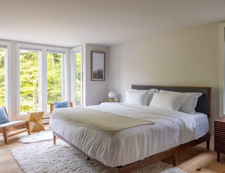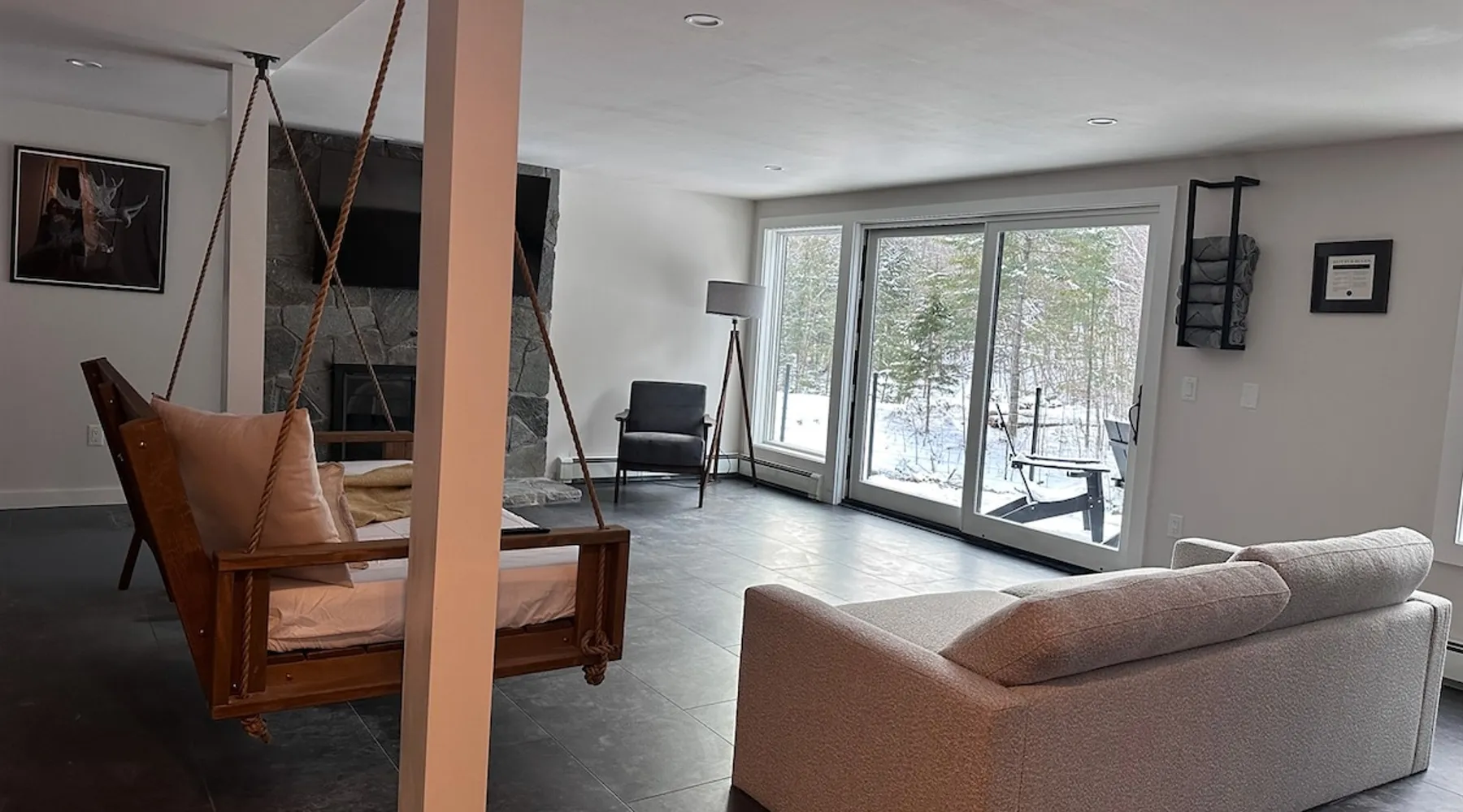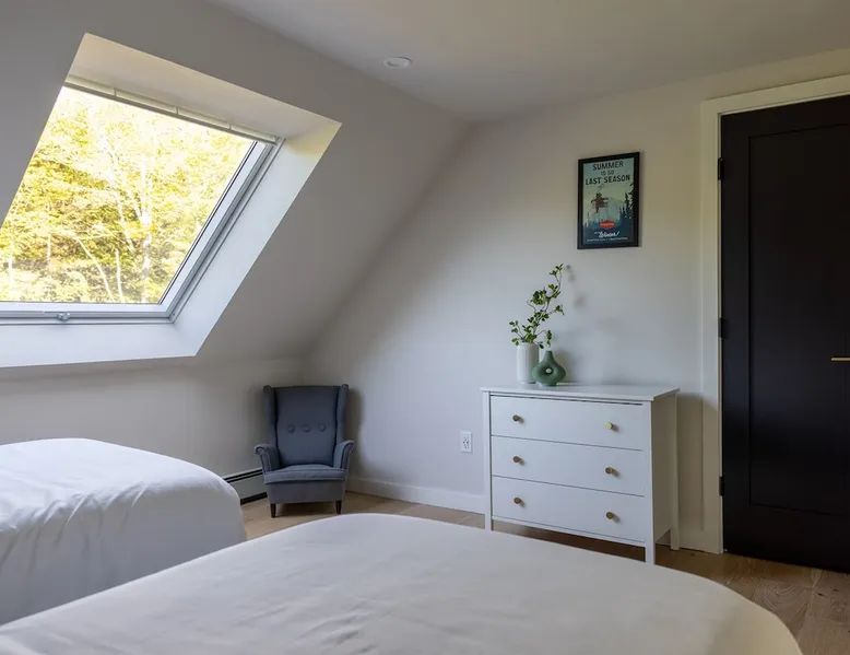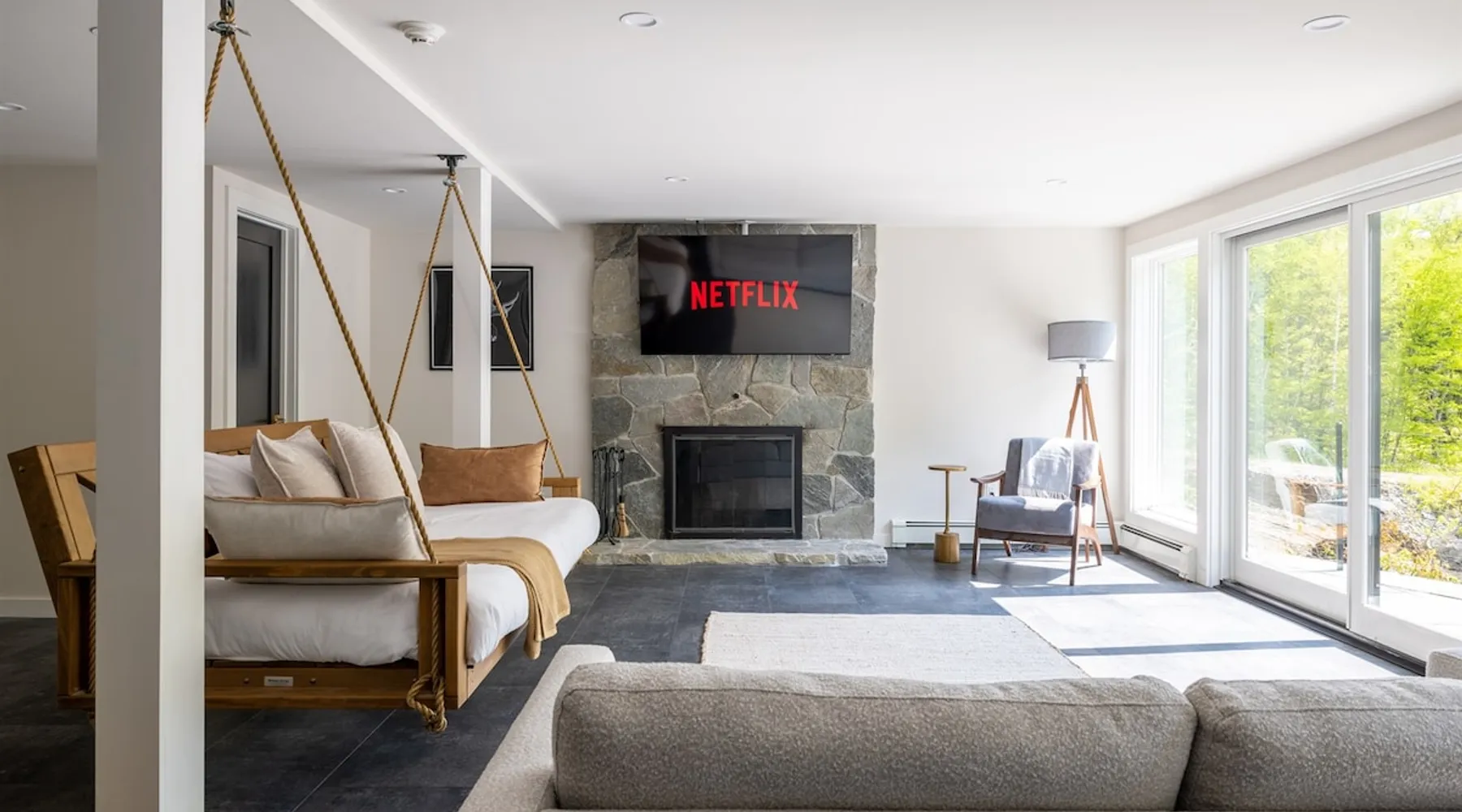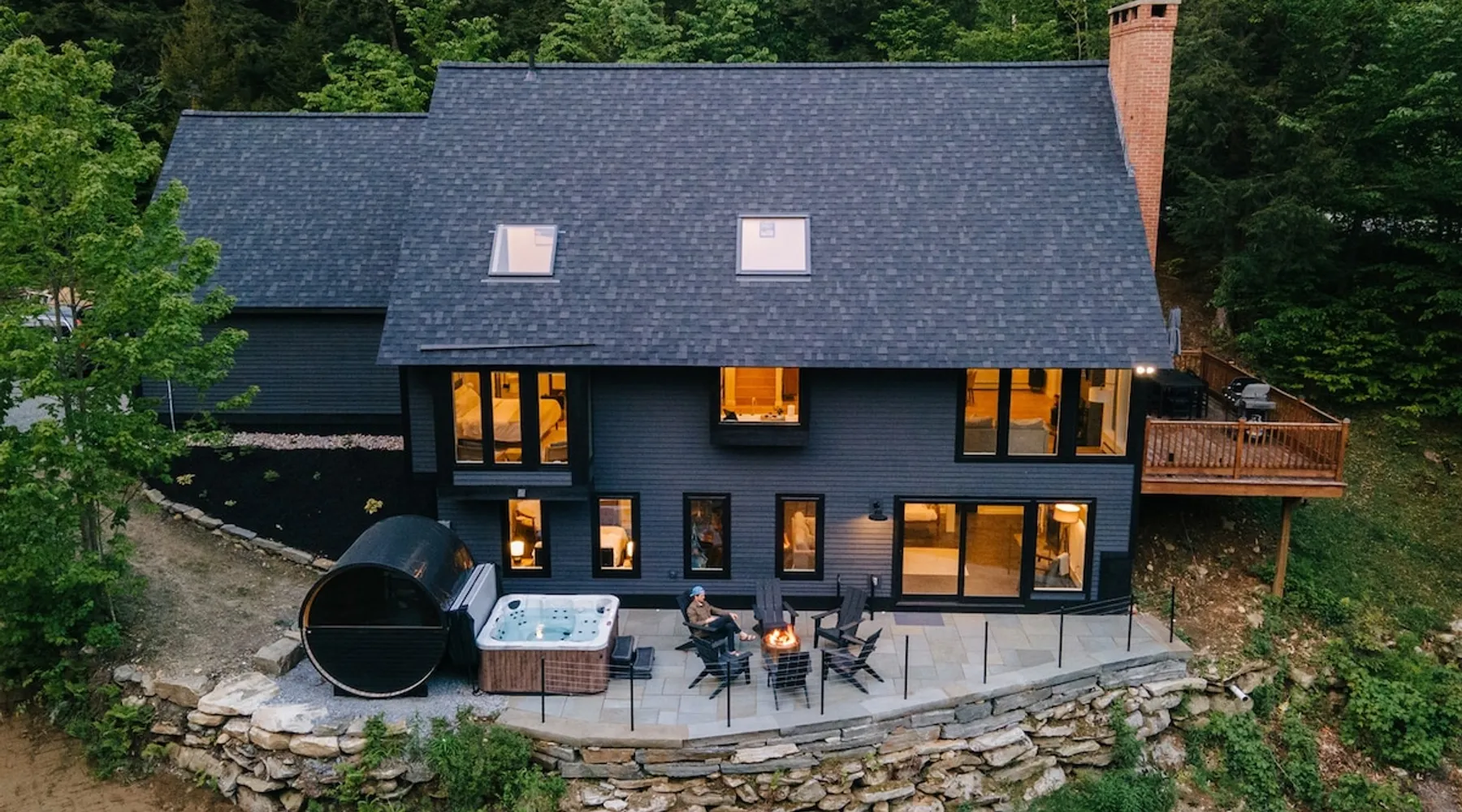 Our brand new outdoor heated plunge pool is almost complete! Escape to The Wandering Moose by 42 North LP. This meticulously curated modern home, steps from Stratton's winter shuttle, offers luxurious comfort for your group with four bedrooms and four and a half bathrooms. Enjoy a private hot tub, barrel sauna, and arcade games. With high-speed Wi-Fi and a pet-friendly policy, it's your perfectly appointed year-round base for unforgettable Vermont adventures. Book your serene getaway today! The space Experience unparalleled comfort and exquisite design on every floor of this stunning home. On the first level, you'll find a convenient half bath and an expansive, open-concept living space perfect for entertaining. The gourmet kitchen flows seamlessly into the elegant dining room and sophisticated living area. Step out onto the main level deck, complete with a BBQ and outdoor seating for eight, ideal for al fresco dining. Bedroom 1 is a serene primary suite featuring a plush king bed, a day bed with a trundle, and a full en-suite bathroom with an accessibility shower bar for ultimate comfort. Ascend to the second level for more refined accommodations. Bedroom 2 offers a luxurious queen bed with a trundle and a private en-suite bathroom with a deep soaking tub. Bedroom 3 provides flexible sleeping with two twin beds that can be easily configured as needed. A versatile loft area includes a comfortable pull-out couch and a laundry area, while a full hall bathroom with a shower serves this floor. The lower level unveils an impressive living space designed for relaxation and fun. Gather around the cozy stone fireplace or enjoy hours of entertainment on one of three arcade games. From this level, you can directly access the patio, where you'll find the private hot tub and barrel sauna, perfect for unwinding. Bedroom 4 provides a tranquil retreat with a sumptuous queen bed. A full hall bathroom with a shower and a second laundry room complete this exceptionally designed lower level. Guest access Guests will enjoy private, exclusive access to the entire Wandering Moose property, ensuring a truly private and undisturbed mountain retreat. Your convenience is our priority; check-in is seamless and flexible any time after 5 PM via our easy-to-use smart lock. We'll provide you with a unique access code before your arrival, so you can settle in at your own pace. Other things to note Here are a few friendly details to help you settle in and make the most of your mountain getaway: - Your Rental Agreement: After booking, we'll send a standard rental agreement for the primary guest to sign. It's a simple step to confirm your reservation and ensure a smooth stay. - Paws Welcome: We're happy to host your well-behaved dogs! You can bring up to two pups, with a $75 nightly fee per pet. - Primary Renter Age: The primary guest must be at least 25 years old to reserve the property. - Fresh Air Inside: For everyone's comfort, smoking is not permitted anywhere on the property, indoors or out. - Hot Tub & Sauna Ready: Your private hot tub and sauna are ready for relaxation! Their maintenance is included in your stay and they're professionally serviced between every visit. - Mountain Home Access: Like many authentic mountain homes, the Wandering Moose has stairs to access different areas. While the path to the entrance is lit, please note the property is not wheelchair accessible. - Safety & Security: For your peace of mind, there are exterior cameras on the property. The home is also equipped with a centrally monitored fire alarm for your safety. We can't wait for you to create unforgettable memories at the Wandering Moose!
