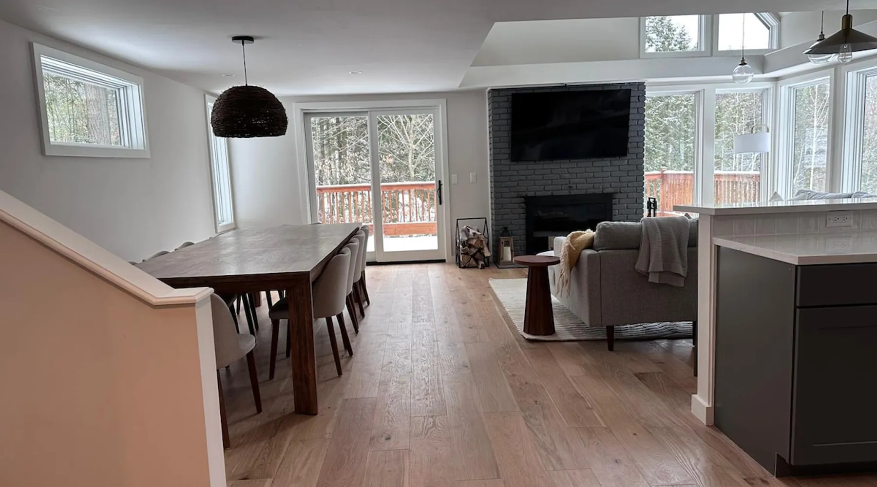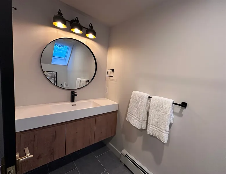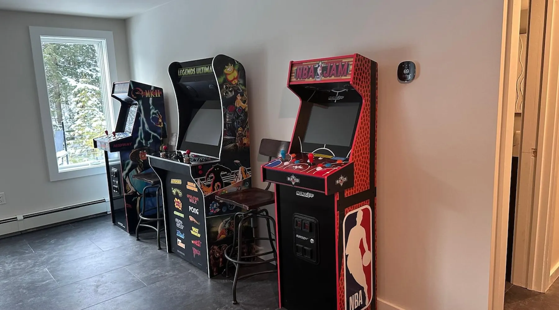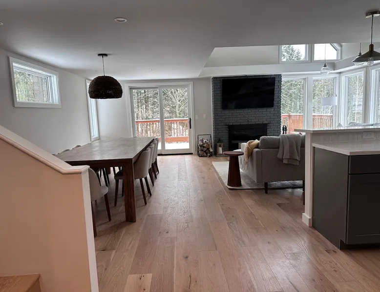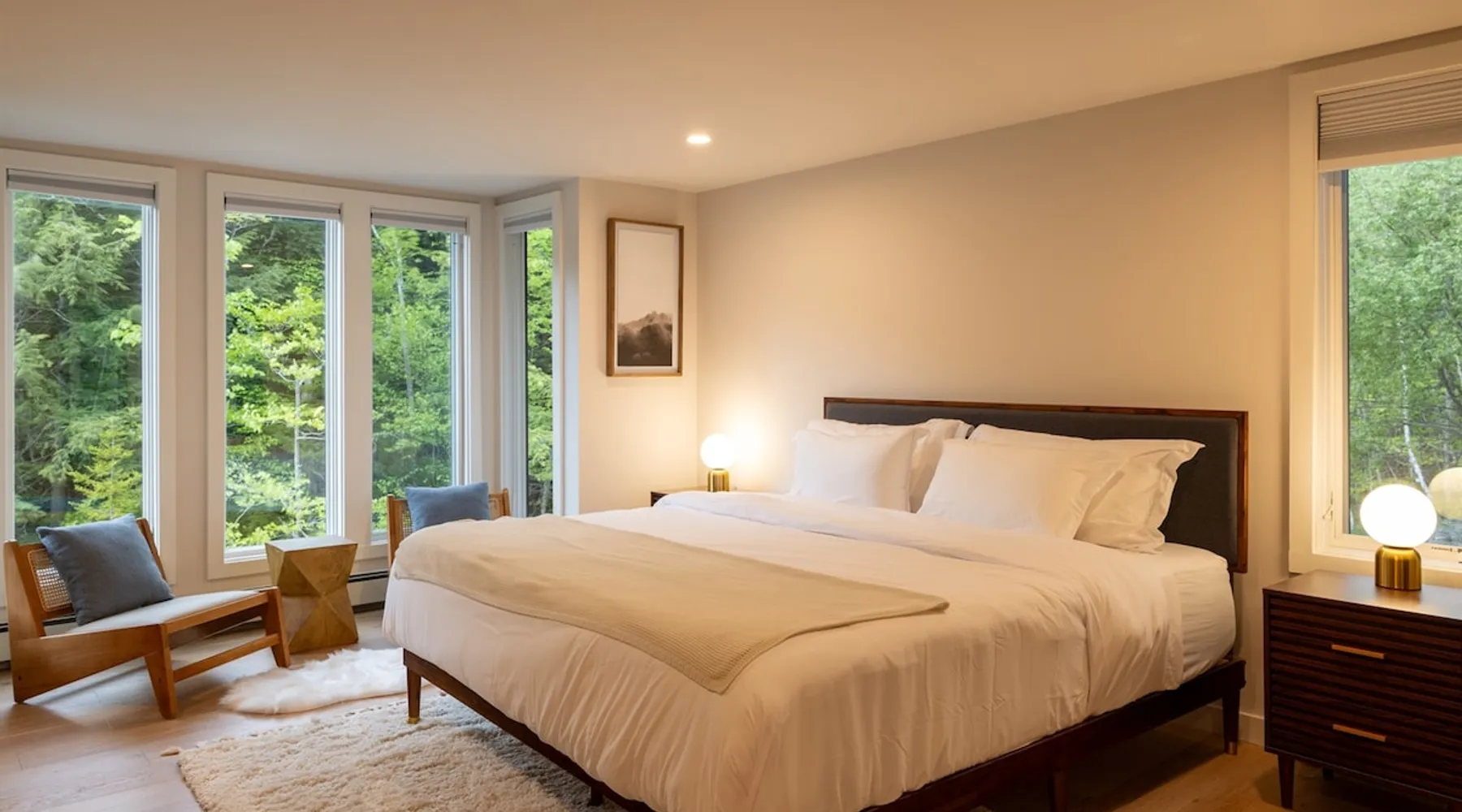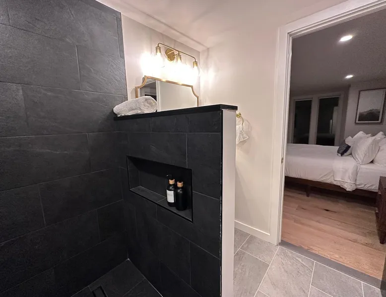 Our brand new outdoor heated plunge pool is almost complete! Escape to The Wandering Moose by 42 North LP. This meticulously curated modern home, steps from Stratton's winter shuttle, offers luxurious comfort for your group with four bedrooms and four and a half bathrooms. Enjoy a private hot tub, barrel sauna, and arcade games. With high-speed Wi-Fi and a pet-friendly policy, it's your perfectly appointed year-round base for unforgettable Vermont adventures. Book your serene getaway today! The space Experience unparalleled comfort and exquisite design on every floor of this stunning home. On the first level, you'll find a convenient half bath and an expansive, open-concept living space perfect for entertaining. The gourmet kitchen flows seamlessly into the elegant dining room and sophisticated living area. Step out onto the main level deck, complete with a BBQ and outdoor seating for eight, ideal for al fresco dining. Bedroom 1 is a serene primary suite featuring a plush king bed, a day bed with a trundle, and a full en-suite bathroom with an accessibility shower bar for ultimate comfort. Ascend to the second level for more refined accommodations. Bedroom 2 offers a luxurious queen bed with a trundle and a private en-suite bathroom with a deep soaking tub. Bedroom 3 provides flexible sleeping with two twin beds that can be easily configured as needed. A versatile loft area includes a comfortable pull-out couch and a laundry area, while a full hall bathroom with a shower serves this floor. The lower level unveils an impressive living space designed for relaxation and fun. Gather around the cozy stone fireplace or enjoy hours of entertainment on one of three arcade games. From this level, you can directly access the patio, where you'll find the private hot tub and barrel sauna, perfect for unwinding. Bedroom 4 provides a tranquil retreat with a sumptuous queen bed. A full hall bathroom with a shower and a second laundry room complete this exceptionally designed lower level. Guest access Guests will enjoy private, exclusive access to the entire Wandering Moose property, ensuring a truly private and undisturbed mountain retreat. Your convenience is our priority; check-in is seamless and flexible any time after 5 PM via our easy-to-use smart lock. We'll provide you with a unique access code before your arrival, so you can settle in at your own pace. Other things to note Here are a few friendly details to help you settle in and make the most of your mountain getaway: - Your Rental Agreement: After booking, we'll send a standard rental agreement for the primary guest to sign. It's a simple step to confirm your reservation and ensure a smooth stay. - Paws Welcome: We're happy to host your well-behaved dogs! You can bring up to two pups, with a $75 nightly fee per pet. - Primary Renter Age: The primary guest must be at least 25 years old to reserve the property. - Fresh Air Inside: For everyone's comfort, smoking is not permitted anywhere on the property, indoors or out. - Hot Tub & Sauna Ready: Your private hot tub and sauna are ready for relaxation! Their maintenance is included in your stay and they're professionally serviced between every visit. - Mountain Home Access: Like many authentic mountain homes, the Wandering Moose has stairs to access different areas. While the path to the entrance is lit, please note the property is not wheelchair accessible. - Safety & Security: For your peace of mind, there are exterior cameras on the property. The home is also equipped with a centrally monitored fire alarm for your safety. We can't wait for you to create unforgettable memories at the Wandering Moose!