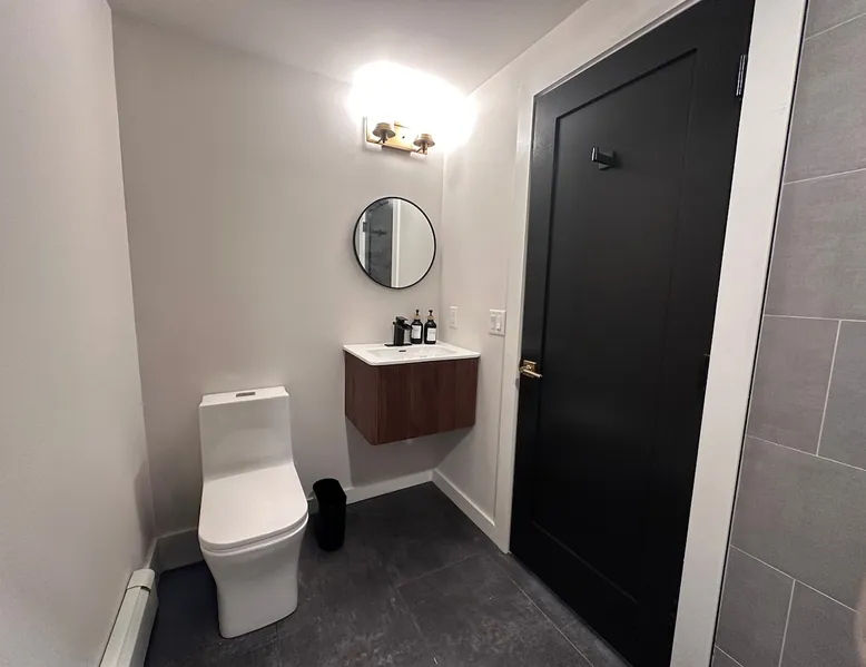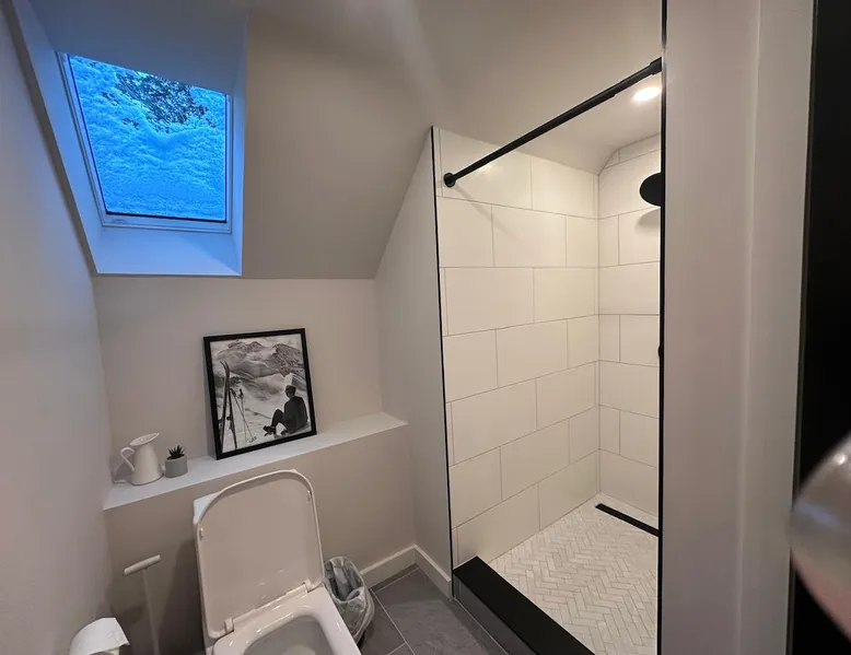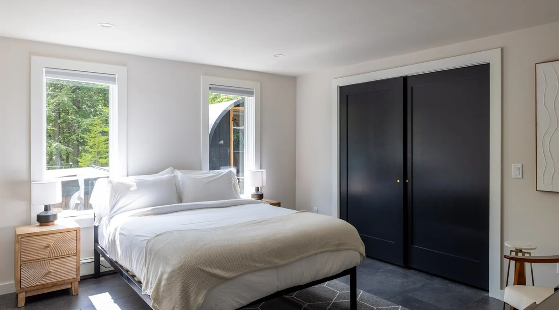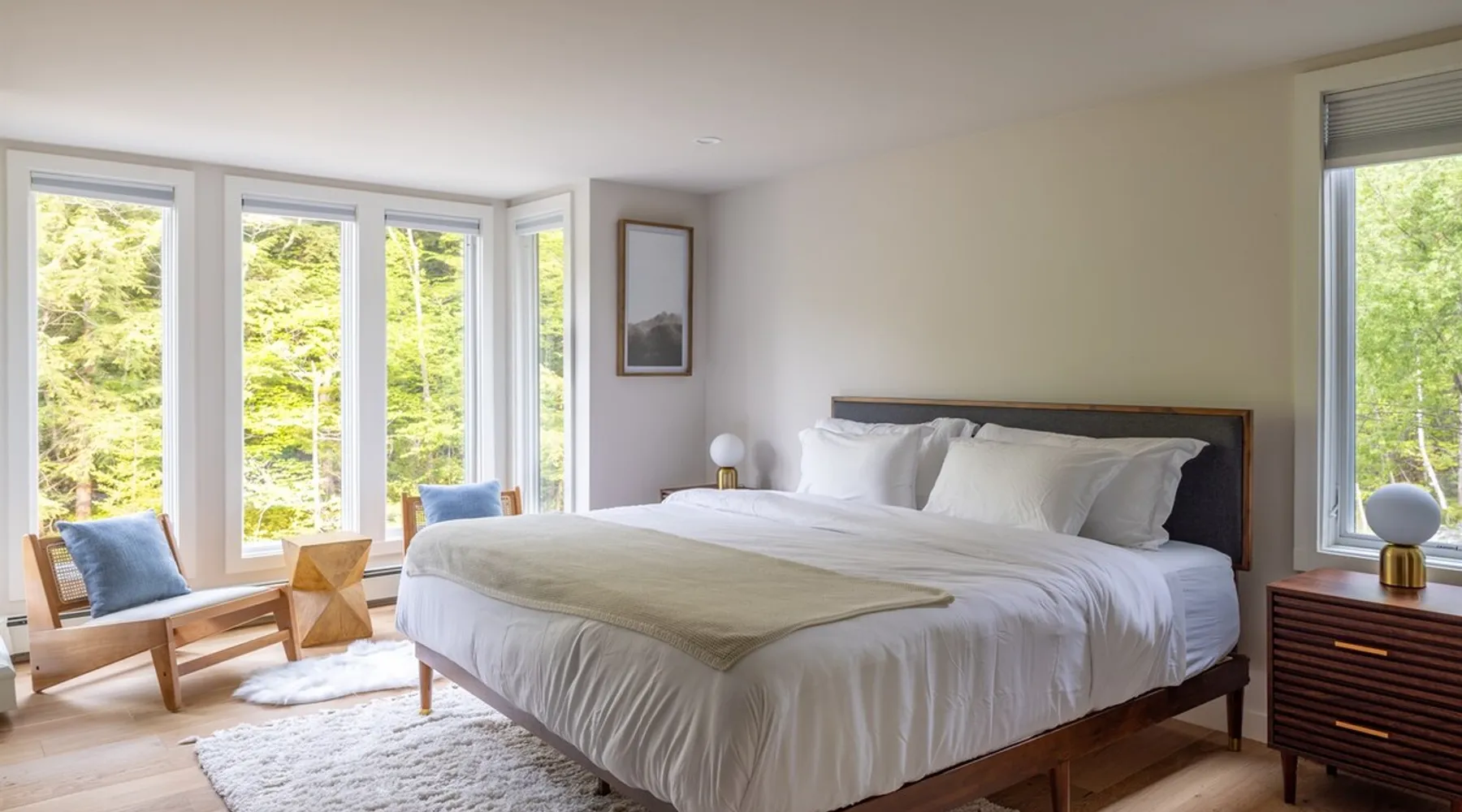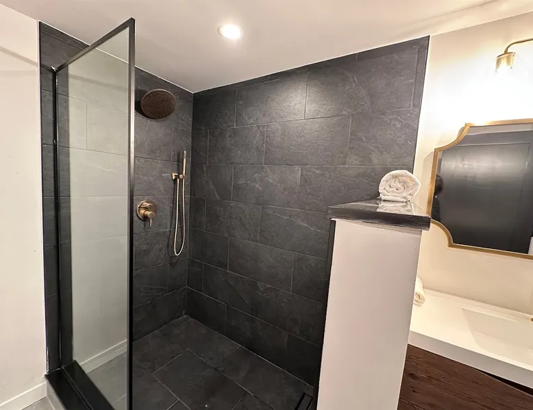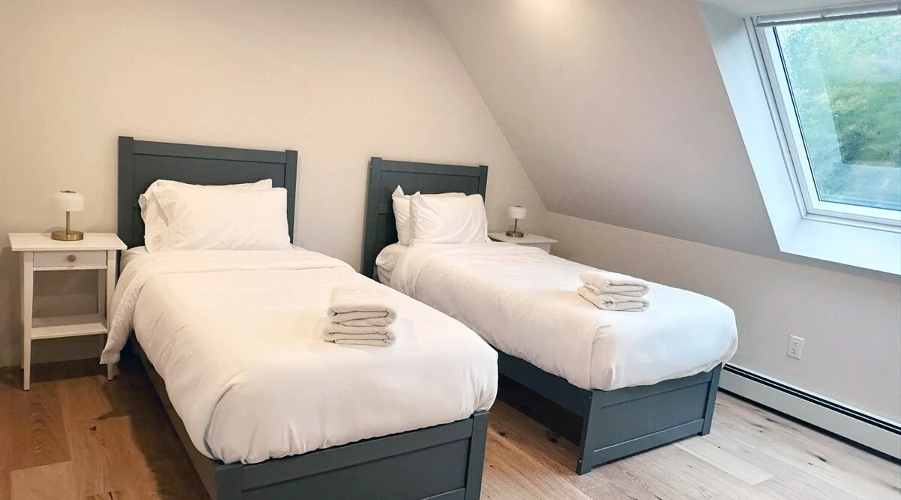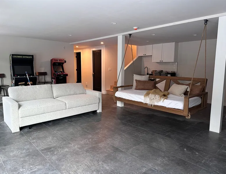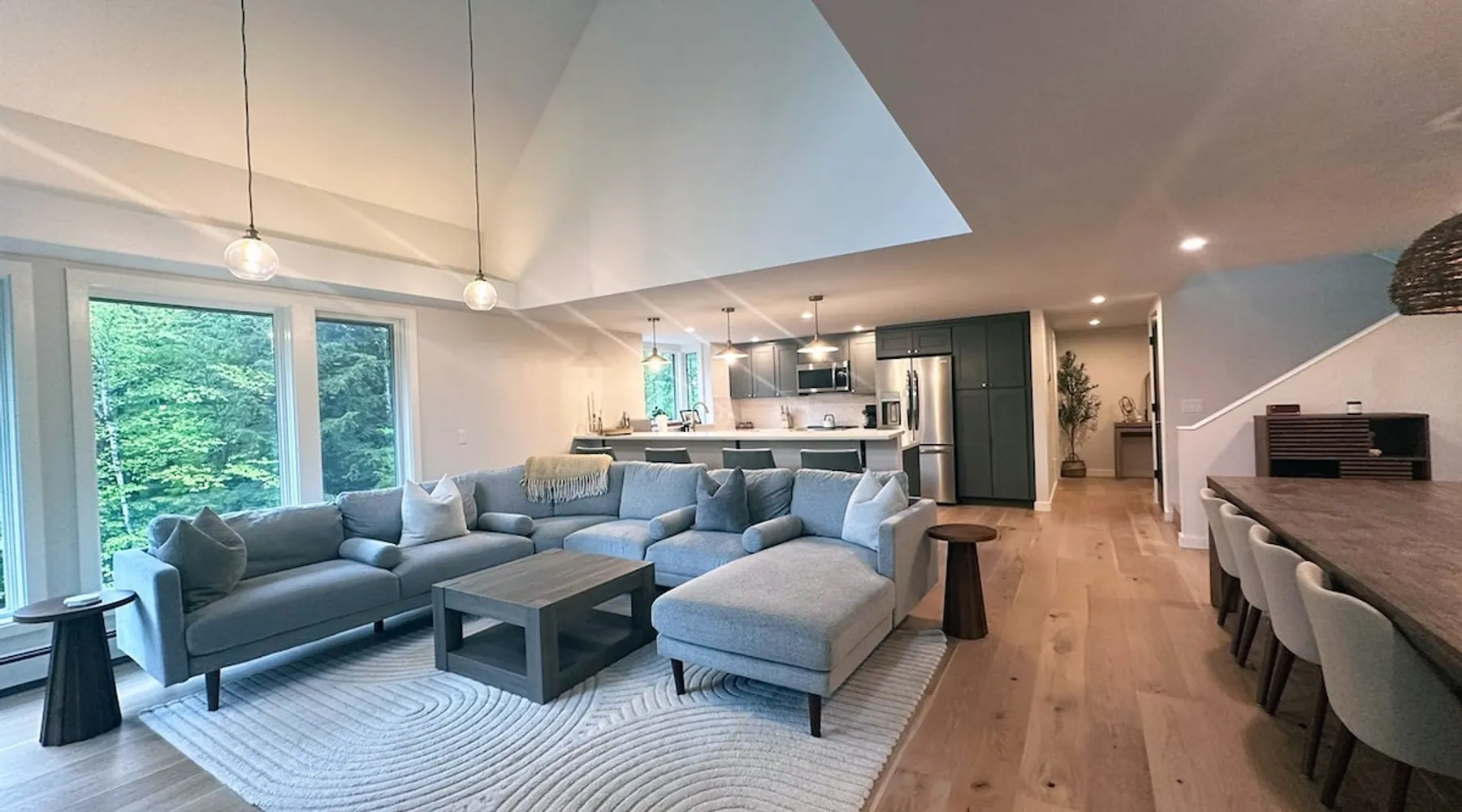 Our brand new outdoor heated plunge pool is almost complete! Escape to The Wandering Moose by 42 North LP. This meticulously curated modern home, steps from Stratton's winter shuttle, offers luxurious comfort for your group with four bedrooms and four and a half bathrooms. Enjoy a private hot tub, barrel sauna, and arcade games. With high-speed Wi-Fi and a pet-friendly policy, it's your perfectly appointed year-round base for unforgettable Vermont adventures. Book your serene getaway today! The space Experience unparalleled comfort and exquisite design on every floor of this stunning home. On the first level, you'll find a convenient half bath and an expansive, open-concept living space perfect for entertaining. The gourmet kitchen flows seamlessly into the elegant dining room and sophisticated living area. Step out onto the main level deck, complete with a BBQ and outdoor seating for eight, ideal for al fresco dining. Bedroom 1 is a serene primary suite featuring a plush king bed, a day bed with a trundle, and a full en-suite bathroom with an accessibility shower bar for ultimate comfort. Ascend to the second level for more refined accommodations. Bedroom 2 offers a luxurious queen bed with a trundle and a private en-suite bathroom with a deep soaking tub. Bedroom 3 provides flexible sleeping with two twin beds that can be easily configured as needed. A versatile loft area includes a comfortable pull-out couch and a laundry area, while a full hall bathroom with a shower serves this floor. The lower level unveils an impressive living space designed for relaxation and fun. Gather around the cozy stone fireplace or enjoy hours of entertainment on one of three arcade games. From this level, you can directly access the patio, where you'll find the private hot tub and barrel sauna, perfect for unwinding. Bedroom 4 provides a tranquil retreat with a sumptuous queen bed. A full hall bathroom with a shower and a second laundry room complete this exceptionally designed lower level. Guest access Guests will enjoy private, exclusive access to the entire Wandering Moose property, ensuring a truly private and undisturbed mountain retreat. Your convenience is our priority; check-in is seamless and flexible any time after 5 PM via our easy-to-use smart lock. We'll provide you with a unique access code before your arrival, so you can settle in at your own pace. Other things to note Here are a few friendly details to help you settle in and make the most of your mountain getaway: - Your Rental Agreement: After booking, we'll send a standard rental agreement for the primary guest to sign. It's a simple step to confirm your reservation and ensure a smooth stay. - Paws Welcome: We're happy to host your well-behaved dogs! You can bring up to two pups, with a $75 nightly fee per pet. - Primary Renter Age: The primary guest must be at least 25 years old to reserve the property. - Fresh Air Inside: For everyone's comfort, smoking is not permitted anywhere on the property, indoors or out. - Hot Tub & Sauna Ready: Your private hot tub and sauna are ready for relaxation! Their maintenance is included in your stay and they're professionally serviced between every visit. - Mountain Home Access: Like many authentic mountain homes, the Wandering Moose has stairs to access different areas. While the path to the entrance is lit, please note the property is not wheelchair accessible. - Safety & Security: For your peace of mind, there are exterior cameras on the property. The home is also equipped with a centrally monitored fire alarm for your safety. We can't wait for you to create unforgettable memories at the Wandering Moose!