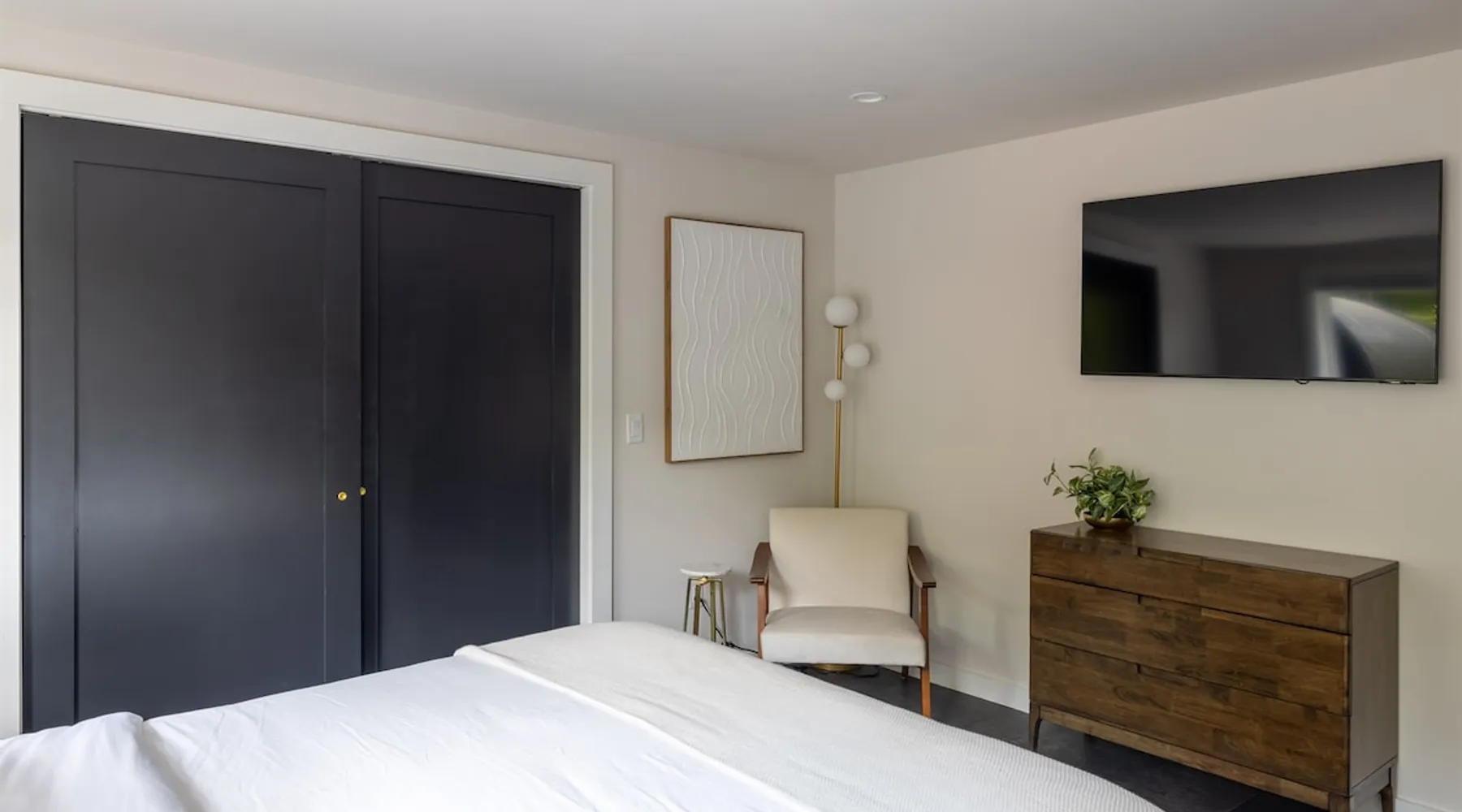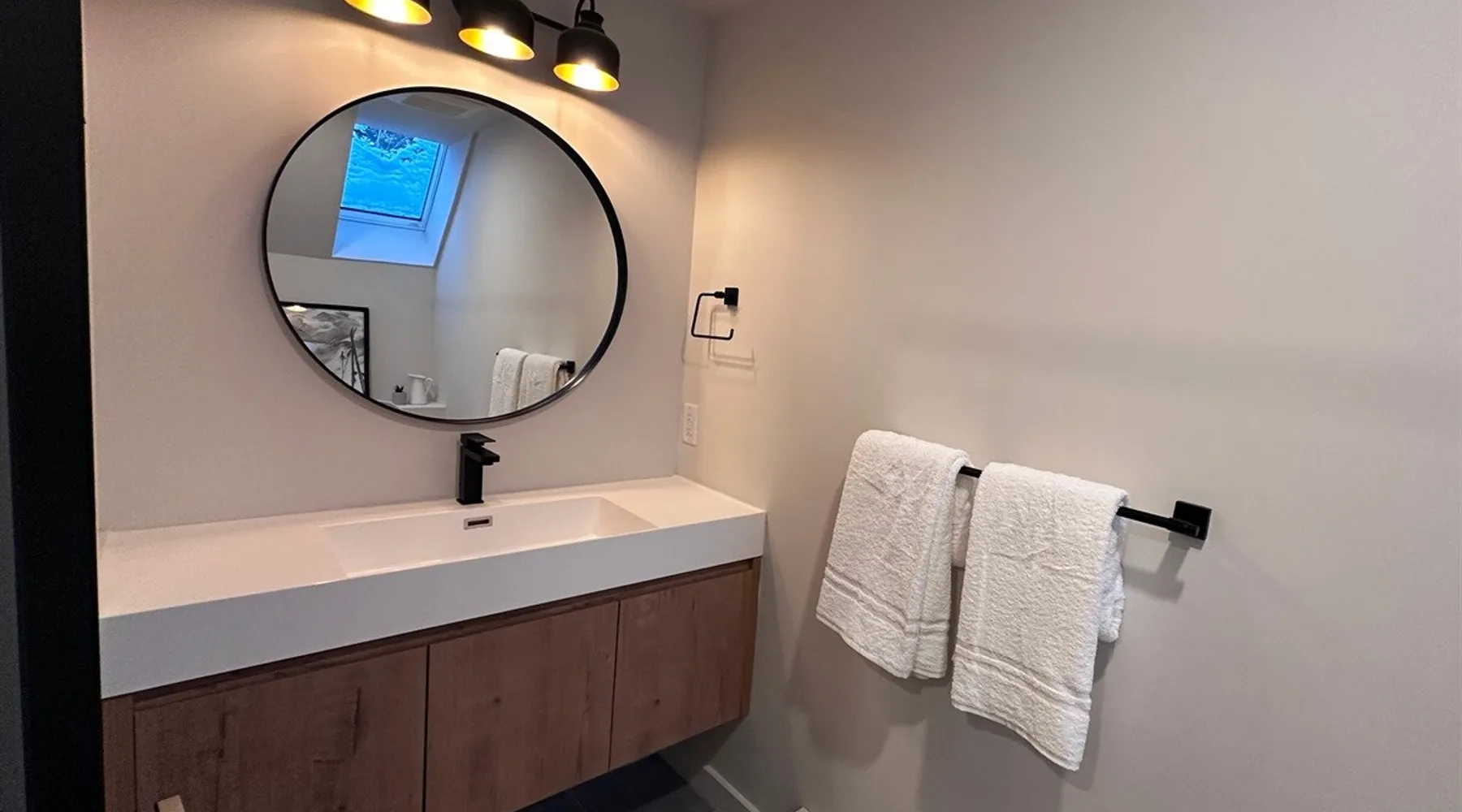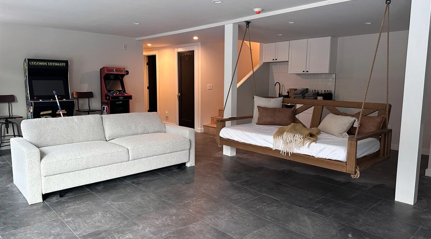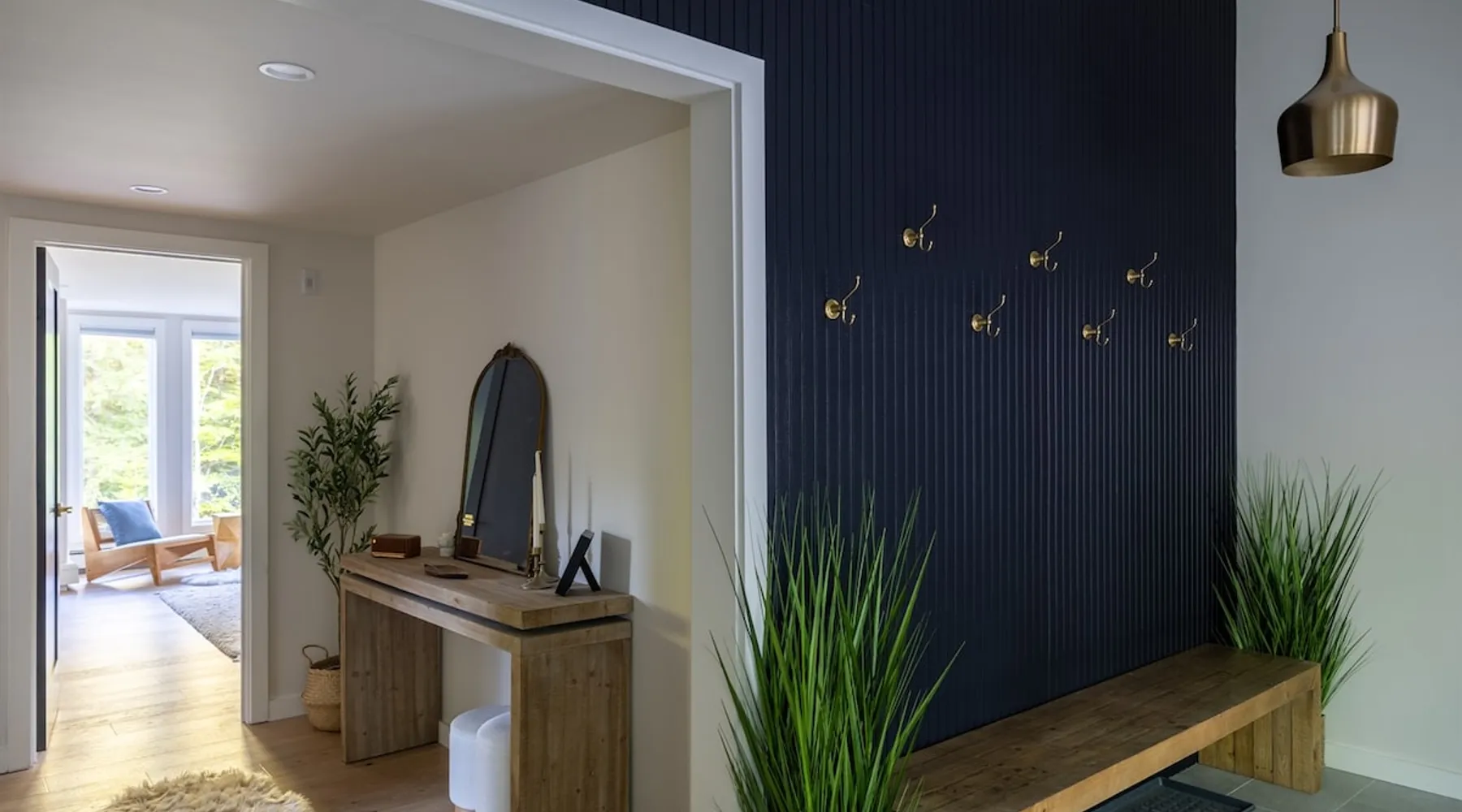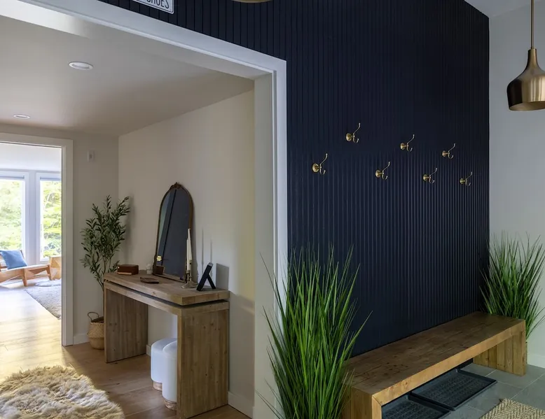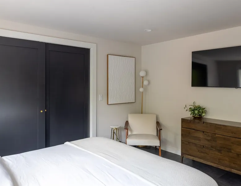 Our brand new outdoor heated plunge pool is almost complete! Escape to The Wandering Moose by 42 North LP. This meticulously curated modern home, steps from Stratton's winter shuttle, offers luxurious comfort for your group with four bedrooms and four and a half bathrooms. Enjoy a private hot tub, barrel sauna, and arcade games. With high-speed Wi-Fi and a pet-friendly policy, it's your perfectly appointed year-round base for unforgettable Vermont adventures. Book your serene getaway today! The space Experience unparalleled comfort and exquisite design on every floor of this stunning home. On the first level, you'll find a convenient half bath and an expansive, open-concept living space perfect for entertaining. The gourmet kitchen flows seamlessly into the elegant dining room and sophisticated living area. Step out onto the main level deck, complete with a BBQ and outdoor seating for eight, ideal for al fresco dining. Bedroom 1 is a serene primary suite featuring a plush king bed, a day bed with a trundle, and a full en-suite bathroom with an accessibility shower bar for ultimate comfort. Ascend to the second level for more refined accommodations. Bedroom 2 offers a luxurious queen bed with a trundle and a private en-suite bathroom with a deep soaking tub. Bedroom 3 provides flexible sleeping with two twin beds that can be easily configured as needed. A versatile loft area includes a comfortable pull-out couch and a laundry area, while a full hall bathroom with a shower serves this floor. The lower level unveils an impressive living space designed for relaxation and fun. Gather around the cozy stone fireplace or enjoy hours of entertainment on one of three arcade games. From this level, you can directly access the patio, where you'll find the private hot tub and barrel sauna, perfect for unwinding. Bedroom 4 provides a tranquil retreat with a sumptuous queen bed. A full hall bathroom with a shower and a second laundry room complete this exceptionally designed lower level. Guest access Guests will enjoy private, exclusive access to the entire Wandering Moose property, ensuring a truly private and undisturbed mountain retreat. Your convenience is our priority; check-in is seamless and flexible any time after 5 PM via our easy-to-use smart lock. We'll provide you with a unique access code before your arrival, so you can settle in at your own pace. Other things to note Here are a few friendly details to help you settle in and make the most of your mountain getaway: - Your Rental Agreement: After booking, we'll send a standard rental agreement for the primary guest to sign. It's a simple step to confirm your reservation and ensure a smooth stay. - Paws Welcome: We're happy to host your well-behaved dogs! You can bring up to two pups, with a $75 nightly fee per pet. - Primary Renter Age: The primary guest must be at least 25 years old to reserve the property. - Fresh Air Inside: For everyone's comfort, smoking is not permitted anywhere on the property, indoors or out. - Hot Tub & Sauna Ready: Your private hot tub and sauna are ready for relaxation! Their maintenance is included in your stay and they're professionally serviced between every visit. - Mountain Home Access: Like many authentic mountain homes, the Wandering Moose has stairs to access different areas. While the path to the entrance is lit, please note the property is not wheelchair accessible. - Safety & Security: For your peace of mind, there are exterior cameras on the property. The home is also equipped with a centrally monitored fire alarm for your safety. We can't wait for you to create unforgettable memories at the Wandering Moose!