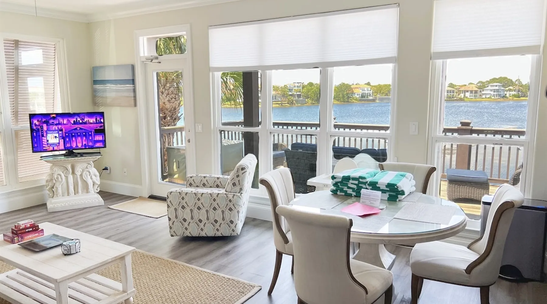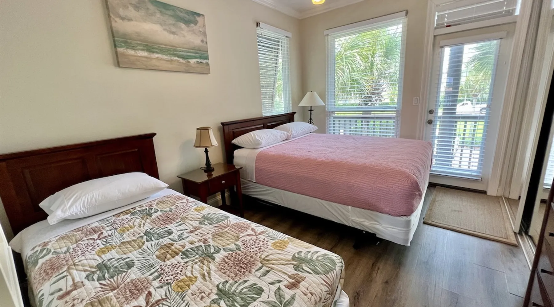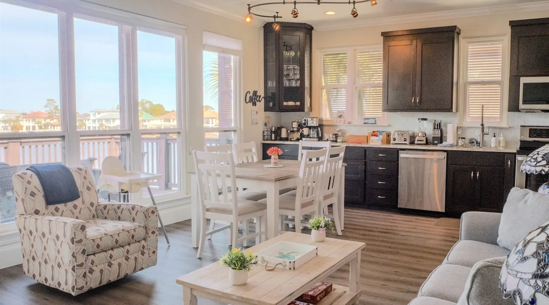 Why Remarkable Margarita Villa is a guest favorite: 🏖 200 Steps to beach 🌐 Fast Wi-Fi 🏊♀️ Heated pool 🍳 2 Full Kitchens 🛌 2 King Masters w/ensuites 📺 TV every room 🚗 Free parking 🌊 Waterfront w/2 decks 👧🏼 Beach playground, public bathhouse, Crab Trap Restaurant w/beach bar 50 steps to pool, heated about Oct 15 to Easter. (HOA can turn off heat based on weather, occupancy, and other factors). ▶︎ Click "♡ Save" to easily find us again. The space Stay at Margarita Villa in Destiny Beach Villas in Crystal Beach! Swim in the clear emerald waters of the Gulf, hop the waves, sunbathe in the Florida sun, or play in the powder-like white sands of America's #1 beach just across (or under) the street! The pool is only about 80 feet away! It is heated at Thanksgiving and from approximately December 18 to March 31. Heating may be affected by low occupancy or weather. ► From the front door of the home, it is only about 200 steps to the beach! If you are flying in, or have a full vehicle already, you'll like that we provide high-quality beach chairs with backpack-style straps, a beach wagon, toys, and beach towels. No need to buy them just to abandon. Note that we do not provide umbrellas or inflatables. The unit has 4 bedrooms; 2 King Masters with ensuite bathrooms, a guest bedroom with a queen and twin bed (not bunks), and another guest bedroom with 2 twin/full bunk beds. There are 2 other full baths as well. It is an ideal layout for a family vacation or a friend-cation. 2 well-equipped kitchens with coffee bars and 2 comfortable living areas with sofas, chairs, and HDTVs round out the home. The wall of windows on each floor with the view of the lake is the focus of this space! If your needs are smaller, we also rent the upper and lower floors separately as 2-bedroom units. The top unit (A) is property #48982004 and the lower unit (B) is #48982003. — THE HOME — ► Floor plans can be found in the photos for this listing. On the lower level is a roomy deck with dining table, beach chairs, and a deck box with storage of the other beach items. There is a spacious deck on the upper level with an outdoor sofa and chairs to relax and enjoy the Florida beach weather and the view of the lake. The lower level deck has an outdoor dining table and stores additional beach gear. The rear of the home is directly on the shore of Four Prong Lake. This fresh-water lake is generally so clear that you can see the bottom for quite some ways out from shore. Watch the waterfowl and fish in the mornings, then the turtles become active in the afternoon and evening. There is a lakeside walking path. No swimming or fishing is permitted in the lake though. Fishing is allowed on the beach, with a fishing license. In front of the home, the upper balcony has a cafe table set that offers partial views of the Gulf water. Doors from both upper bedrooms offer access to the balcony. The lower unit has a small porch with access from both bedrooms. The bench and chairs make it a great spot to hangout. Tastefully decorated and comfortably furnished throughout, the bedrooms and the living area each have ceiling fans. HDTVs with Roku streaming capability are throughout the home. With Roku Guest mode, just use your logins from your favorite streaming services or cable/satellite account. Roku offers our guests a wealth of options, including many no-cost providers. ⏤ KITCHENS ⏤ Each kitchen is well-equipped with the glassware, dinnerware, serving ware, and cookware needed to create meals for your group. There is even a coffee bar area with a drip brewer, a k-cup machine, and an electric water kettle. With a garbage disposal, microwave, dishwasher, oven and cooktop, and a larger refrigerator, it is a perfect setting to prepare your meals. The dining table upstairs seats 4 while the table downstairs seats 6. And, of course, there are Margarita glasses. Sorry, but Margaritas are not included. ⏤ THE POOL ⏤ Take a dip in the sparkling swimming pool located less than 50 steps from the front door and on the way to/from the beach! The pool area includes an outdoor rinse station (for removing that beach sand before swimming), restrooms with showers, as well as plenty of seating. Pool hours are generally 8:00 am to 10:00 pm. Children must be accompanied by an adult and there is no lifeguard on duty. Pool is heated from mid-Oct thru Easter. HOA may adjust the schedule based on weather, demand, and other factors. ⏤ WORK-CATION ⏤ Get some work done, attend virtual meetings and online school, and/or participate in video-conference meetings while visiting! We have a high-speed 1 gigabit Internet service with the latest mesh WiFi technology. This lets many devices be online without interference. ⏤ PARKING ⏤ There is free parking for up to 4 vehicles in the private parking lot. Spaces are not assigned, but parking passes are provided and are strictly required. If you choose to rent a golf cart during your visit, it counts as one of the 4 permitted vehicles. ► Permits *must* be displayed or vehicles will be towed. Due to being right across from the beach, the community vigorously enforces this to ensure there is sufficient parking for residents and our guests. ⏤ WHAT WE PROVIDE ⏤ - bed linens - bath towels & washcloths - hand towels - make-up towels - bath mats - blankets/comforters - beach wagon - beach chairs - beach toys* - beach towels - first aid kit - iron & ironing board - kitchen essentials such as foil, plastic wrap, salt/pepper, basic spices, etc.* - basic cleaners and cleaning tools (sponge, mop, bucket, broom, vacuum)* - starter set of soaps, shampoo, toilet paper, paper towels, and trash bags. - pack-n-play & high chair *We and our team do our very best to see that these items are stocked. However, it is not always possible to inventory every single item after every stay since our focus is on cleanliness. If we have not been alerted by a guest that something like salt/pepper or c